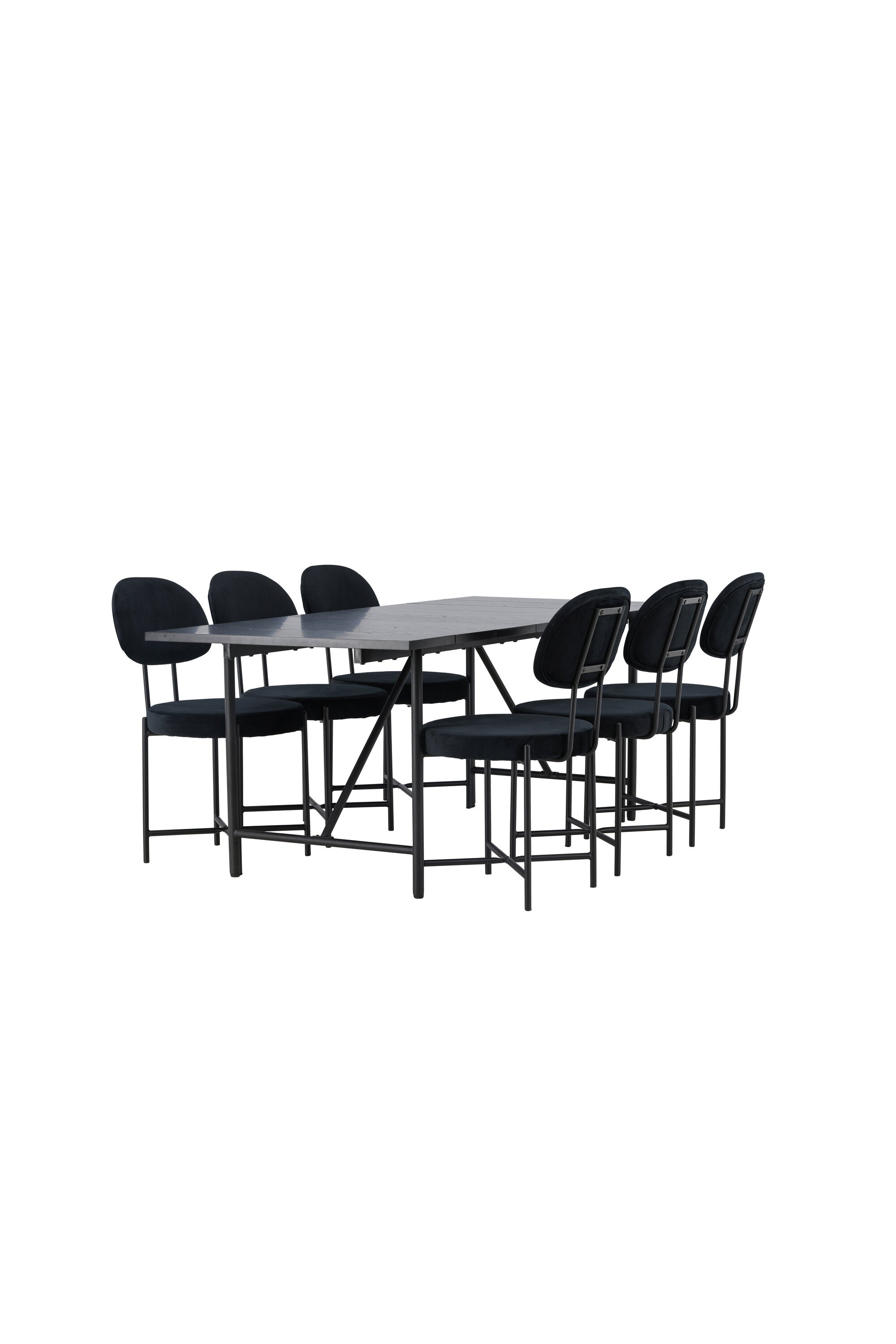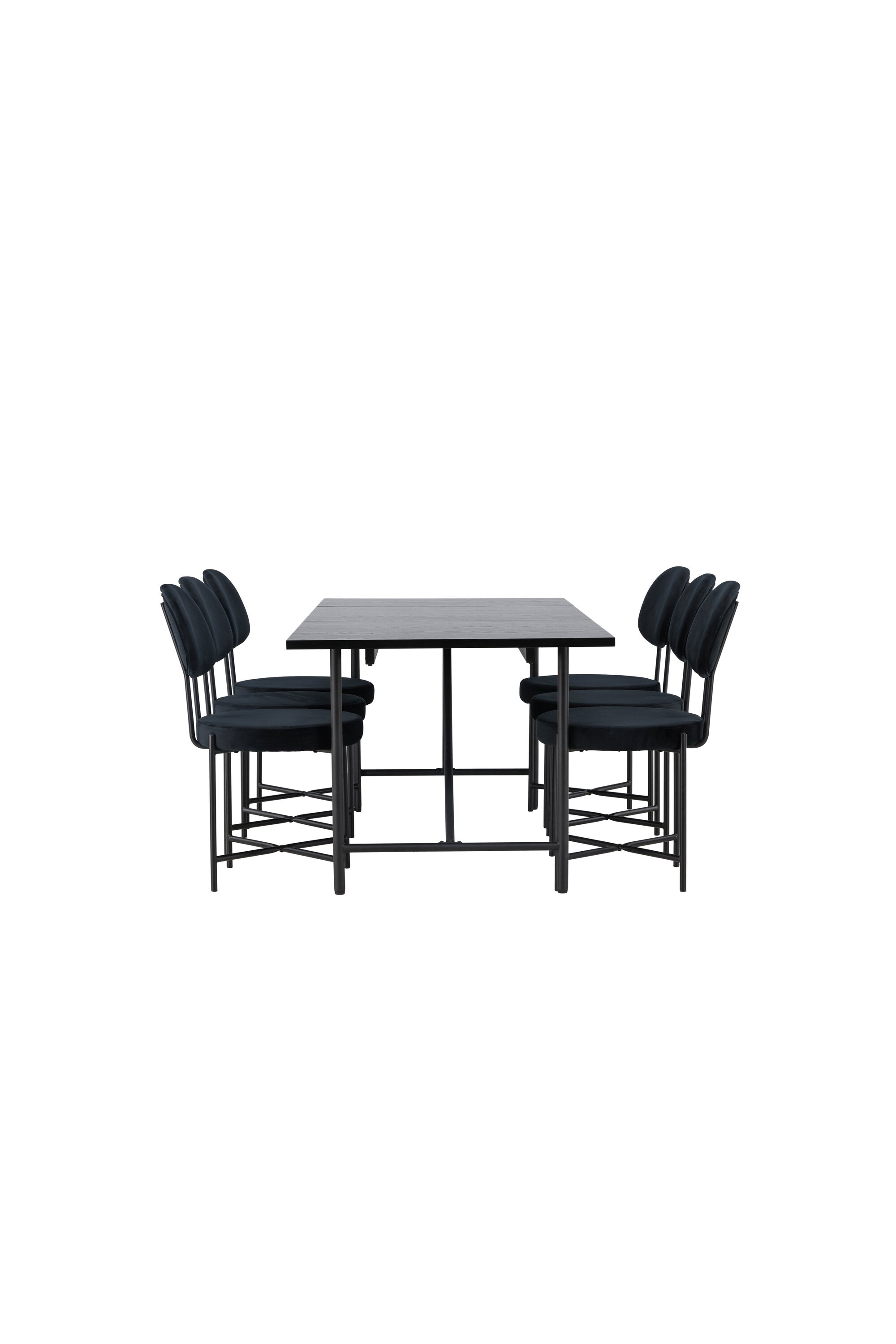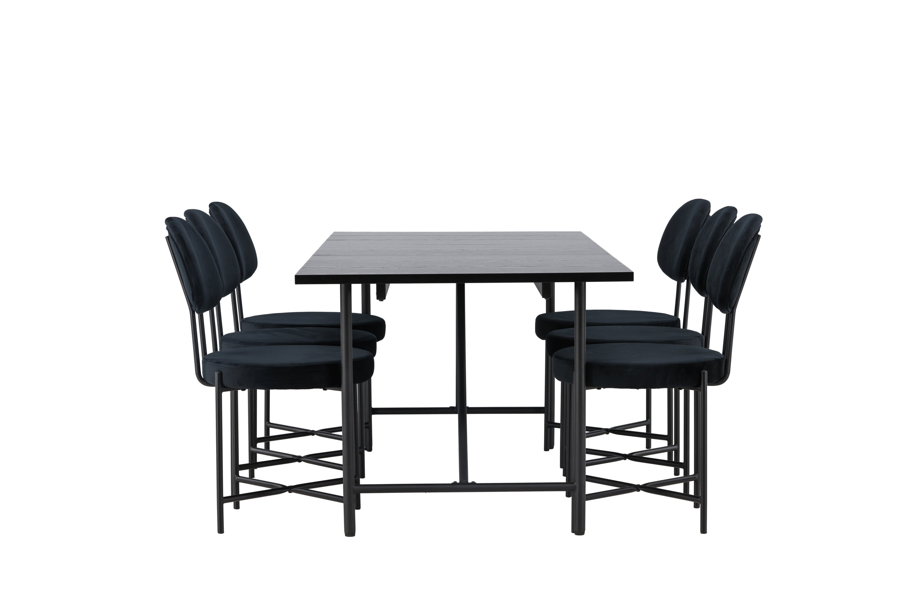 Astrid Jídelní stůl 200*75 - Matná černá / Matná černá MDF s dýhou + Jídelní židle Stella - Černá / Black Velvet _6