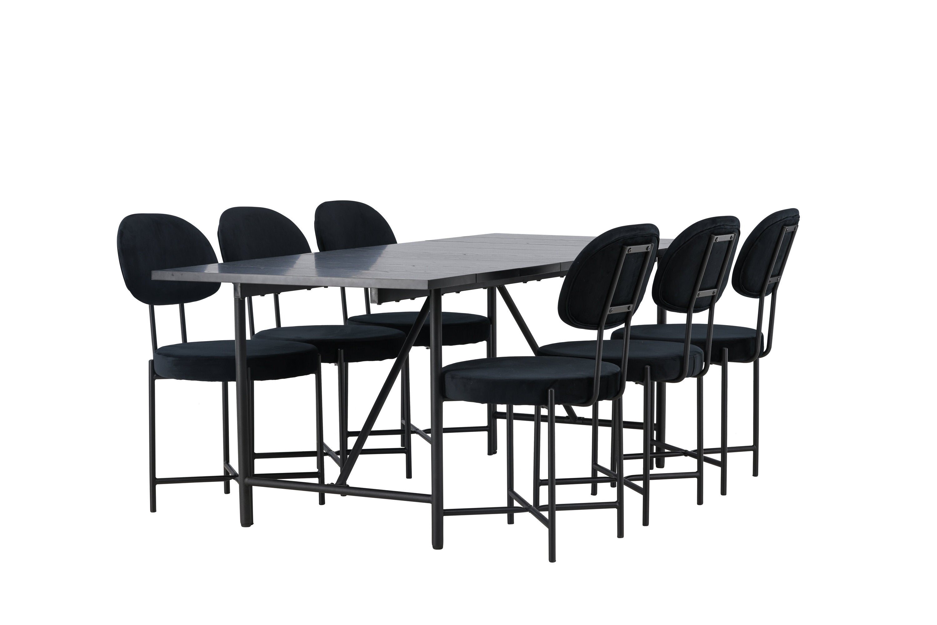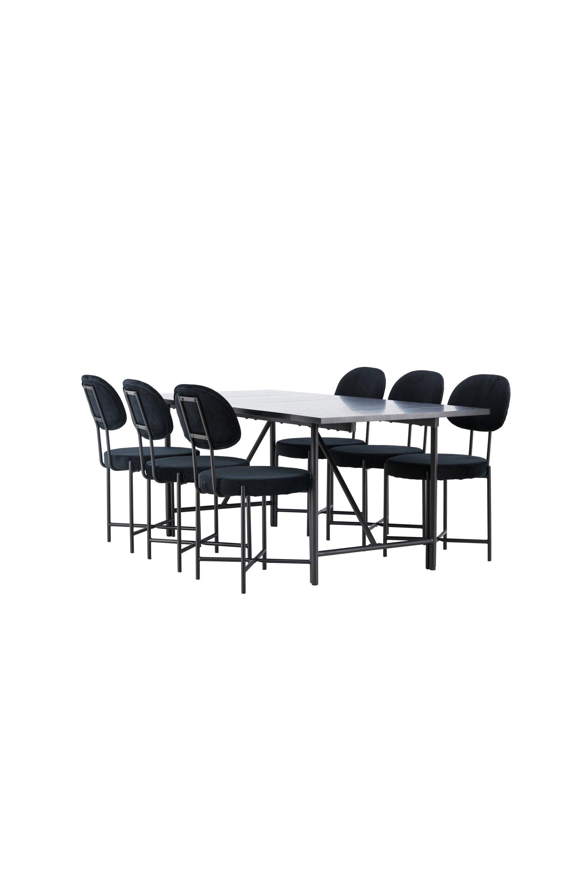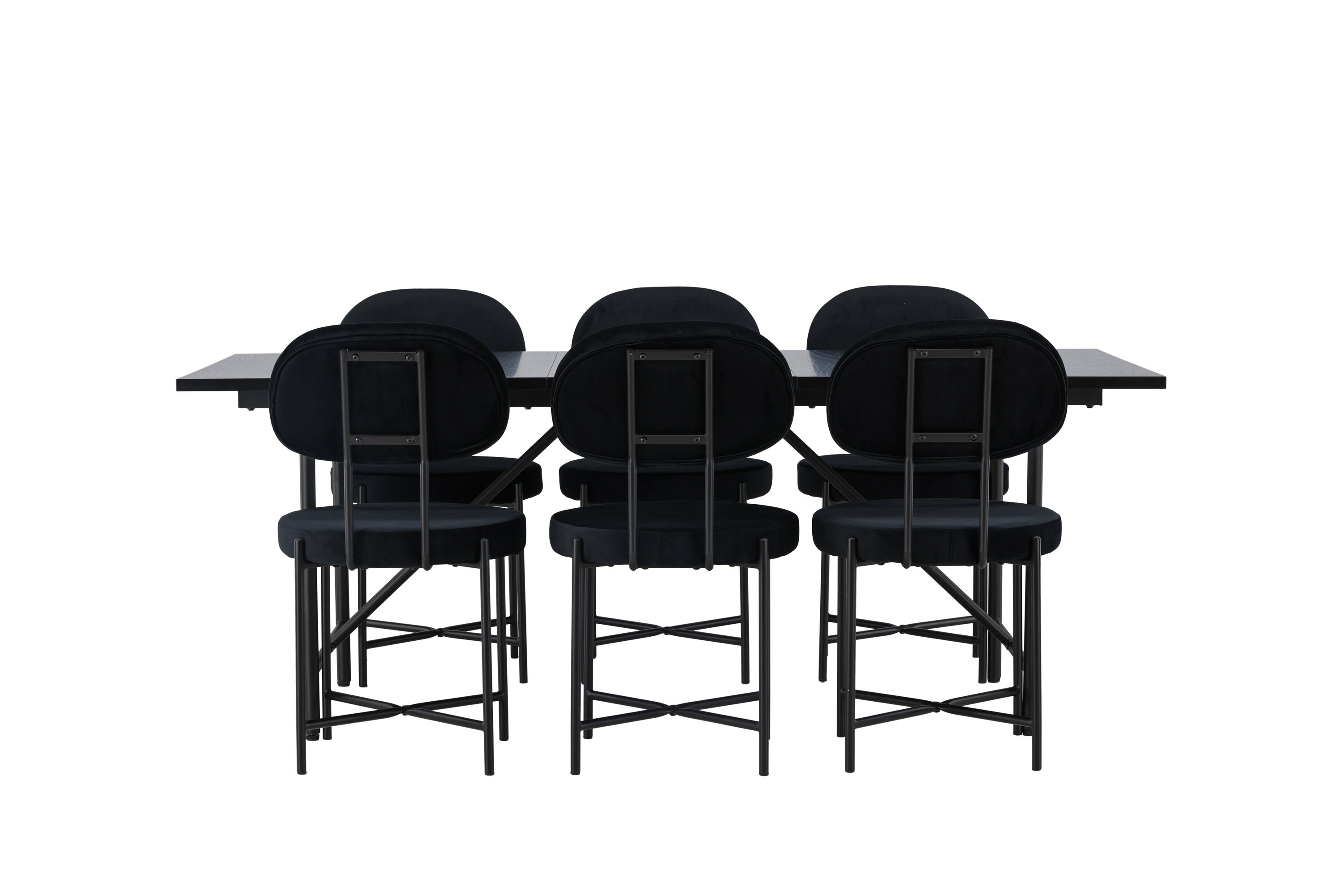 Astrid Jídelní stůl 200*75 - Matná černá / Matná černá MDF s dýhou + Jídelní židle Stella - Černá / Black Velvet _6