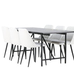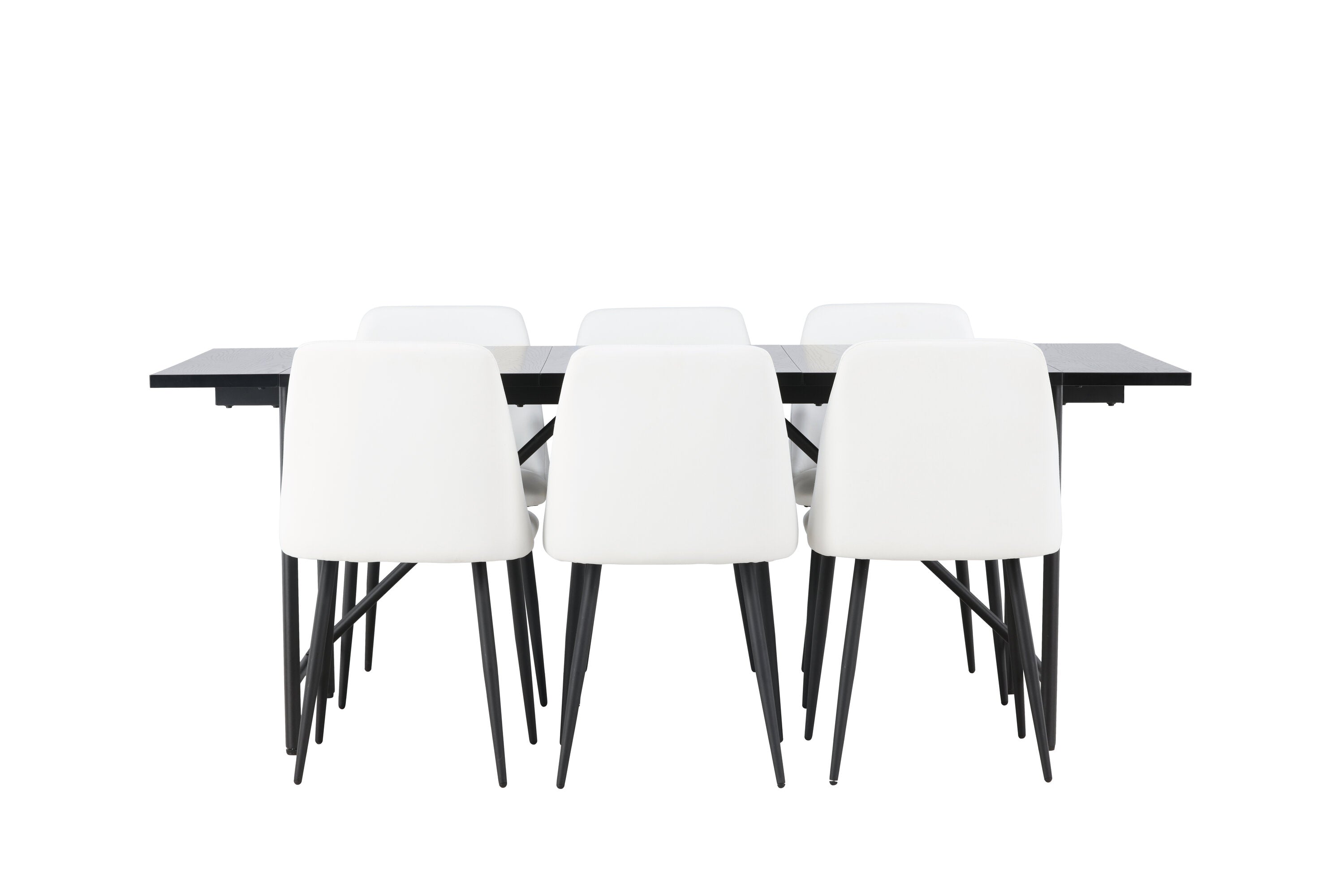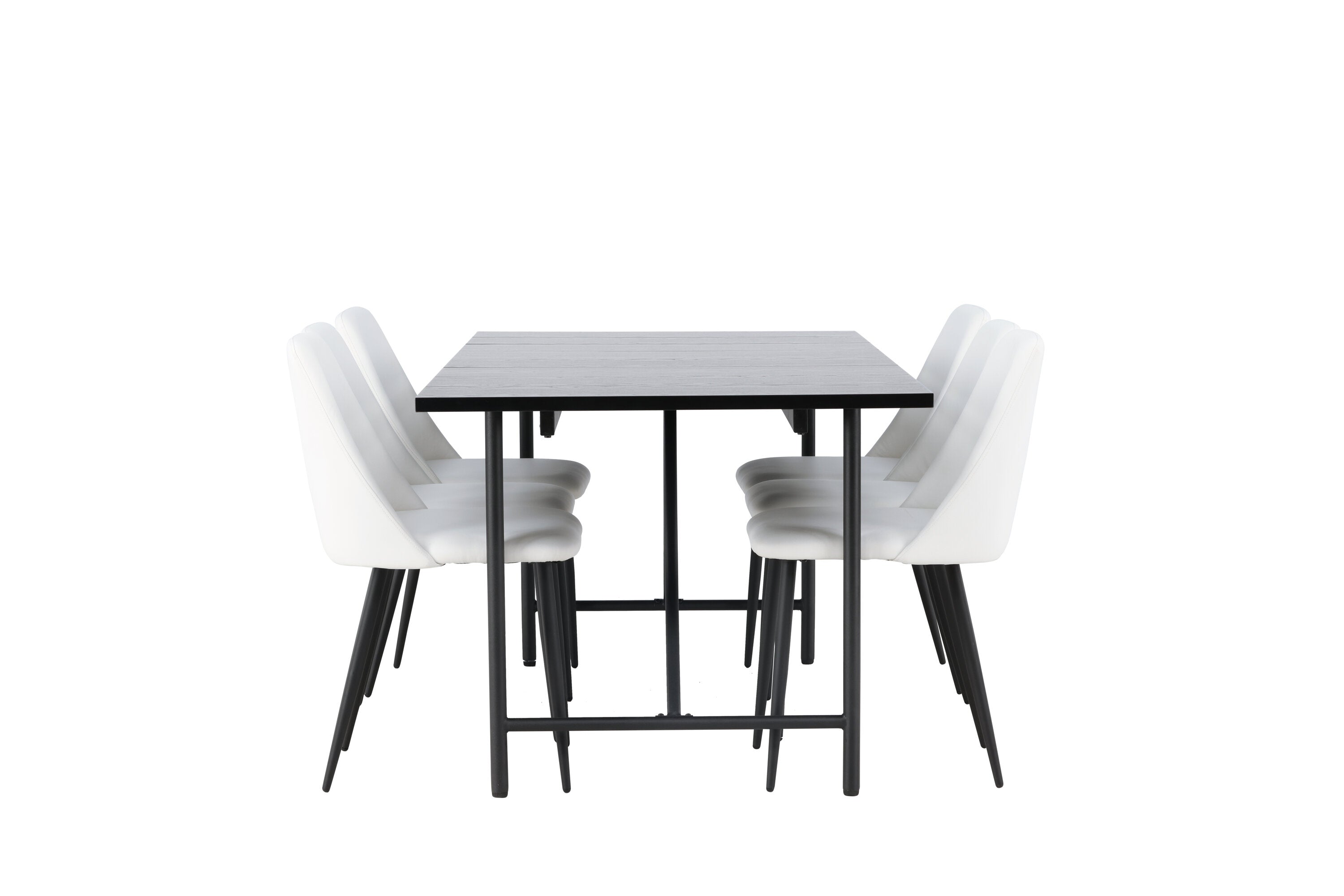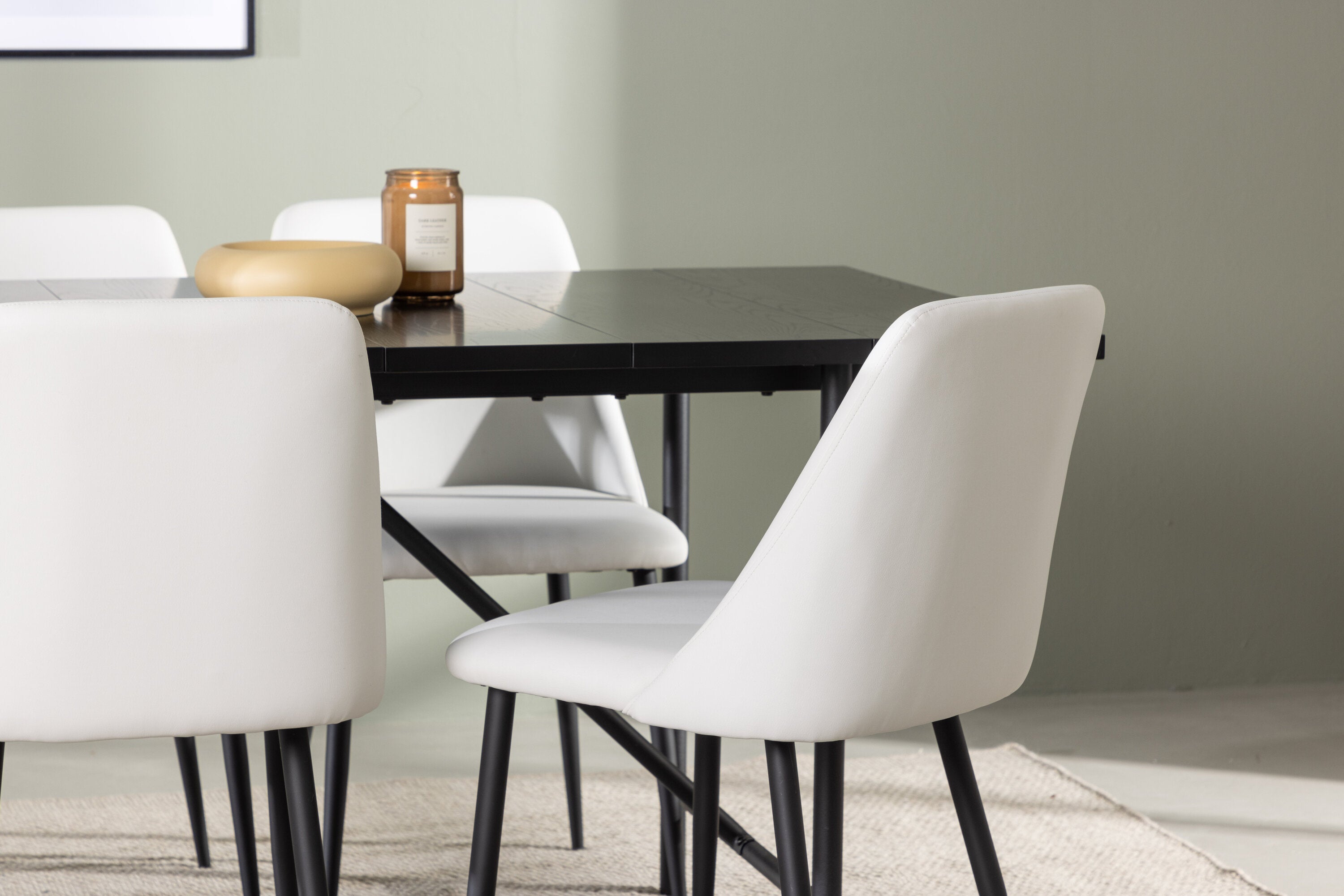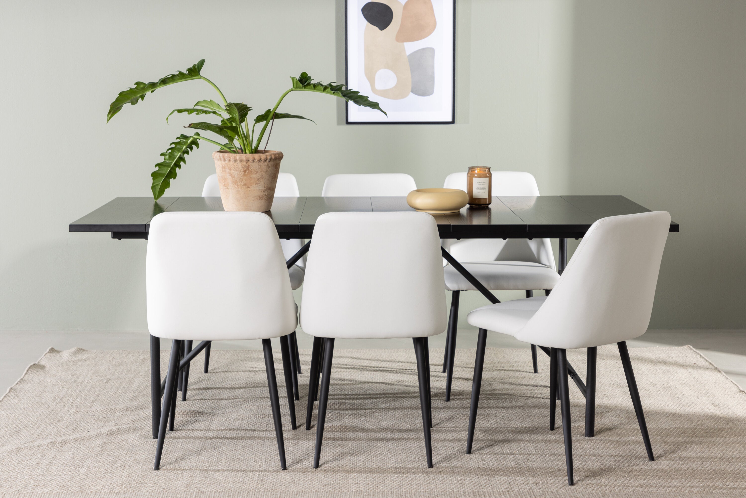 Astrid Jídelní stůl 200*75 - Matná černá / Matná černá MDF s dýhou + Noční jídelní židle - Černá / Bílá PU _6