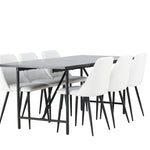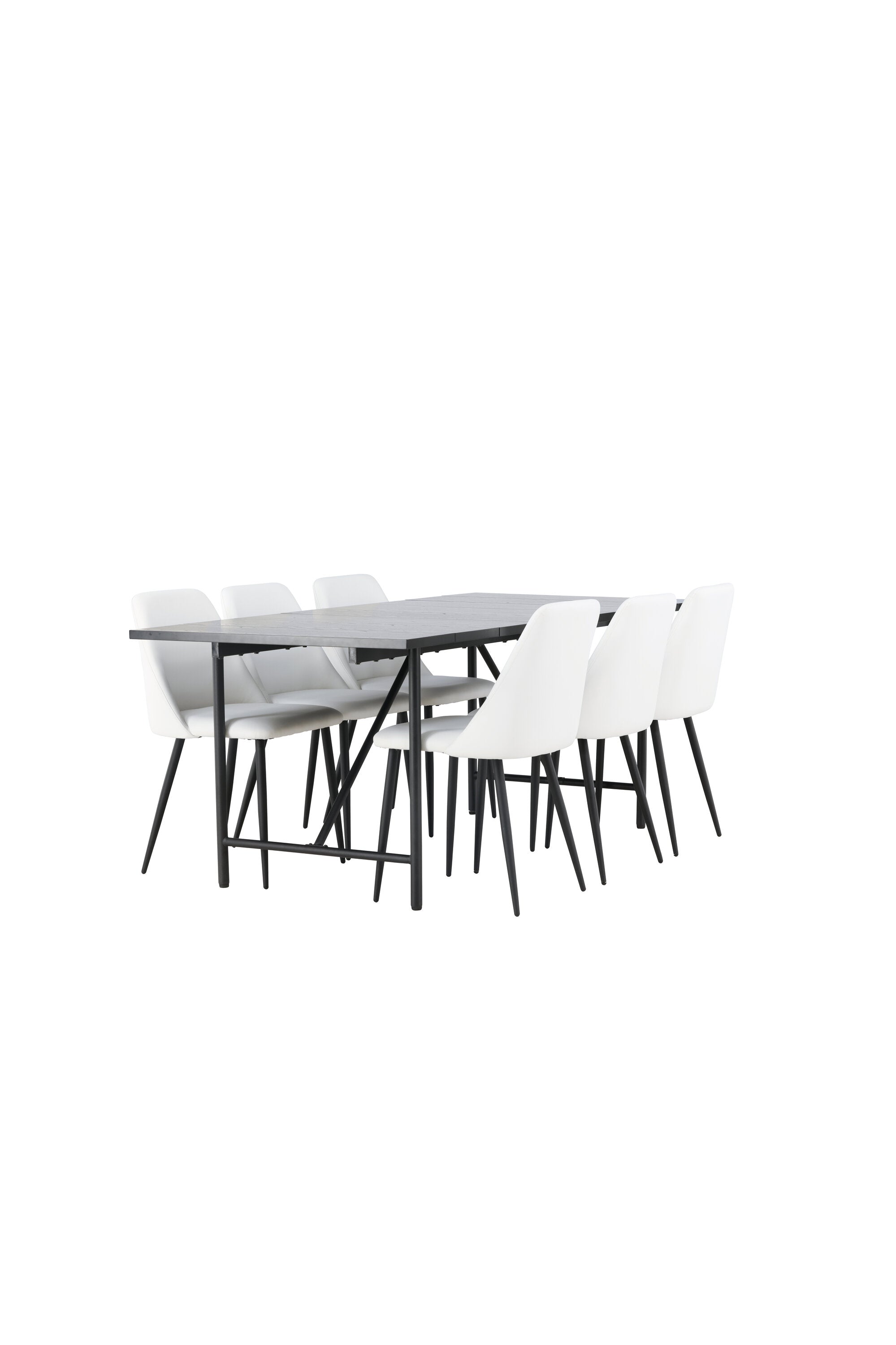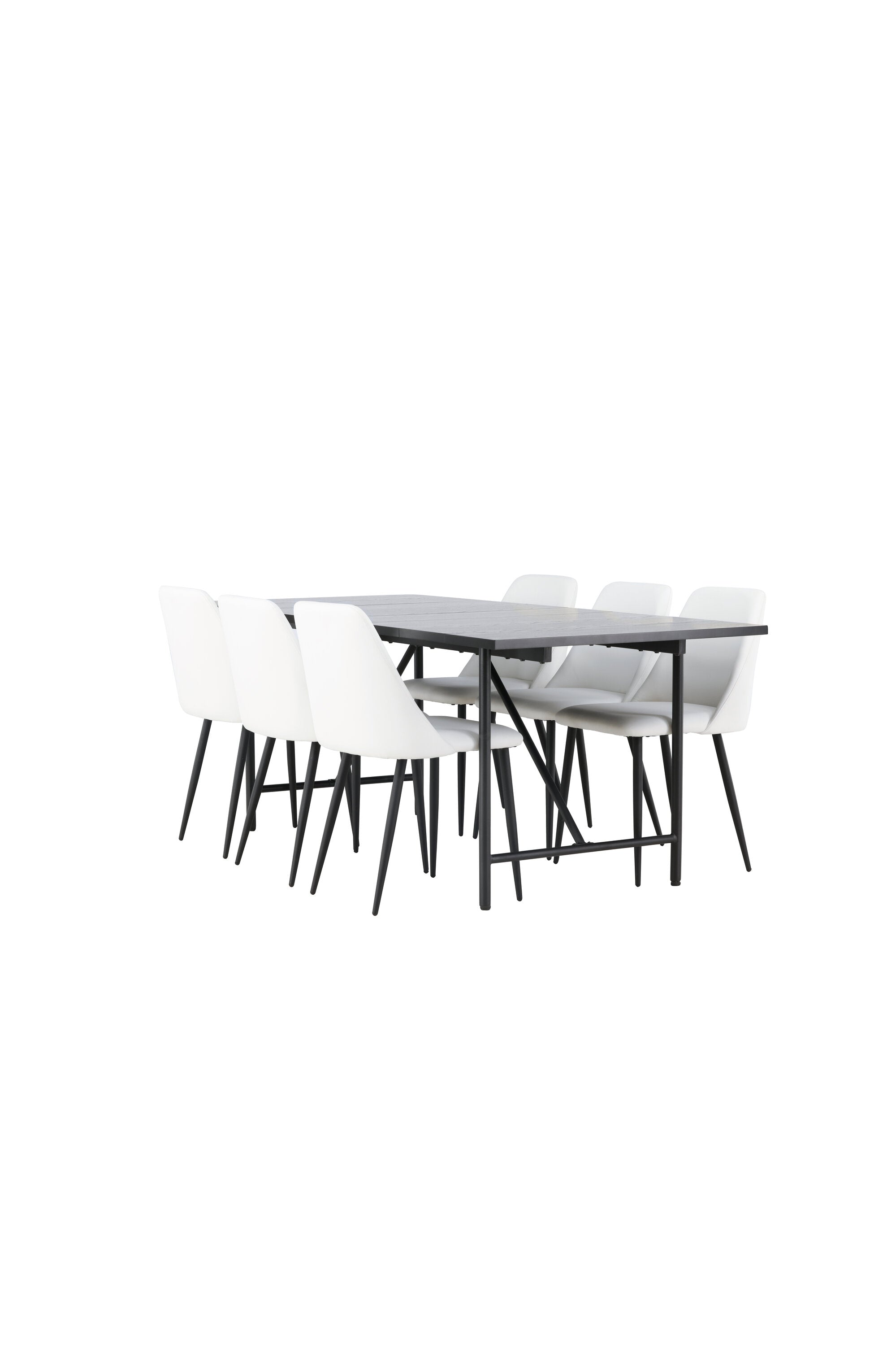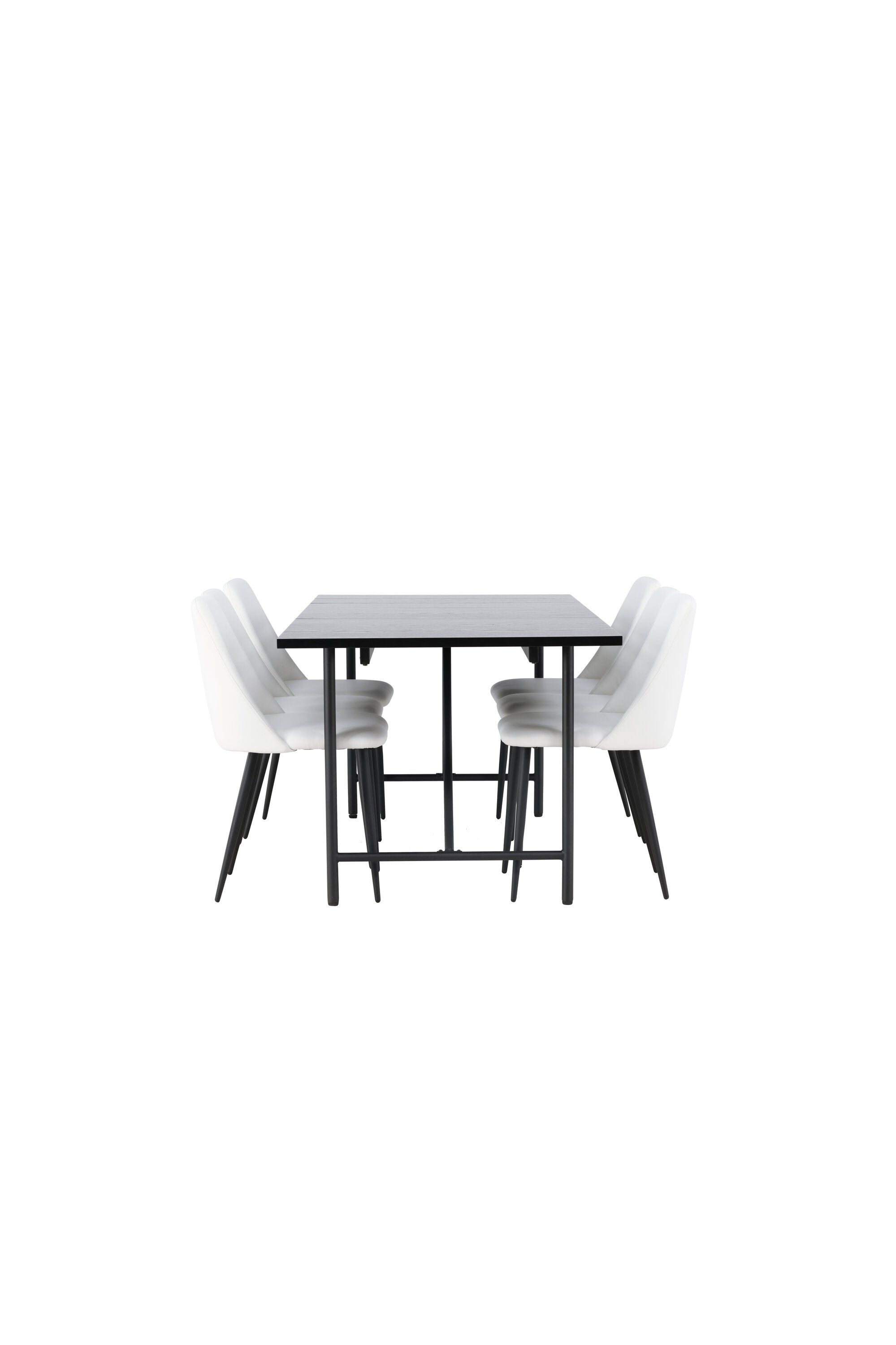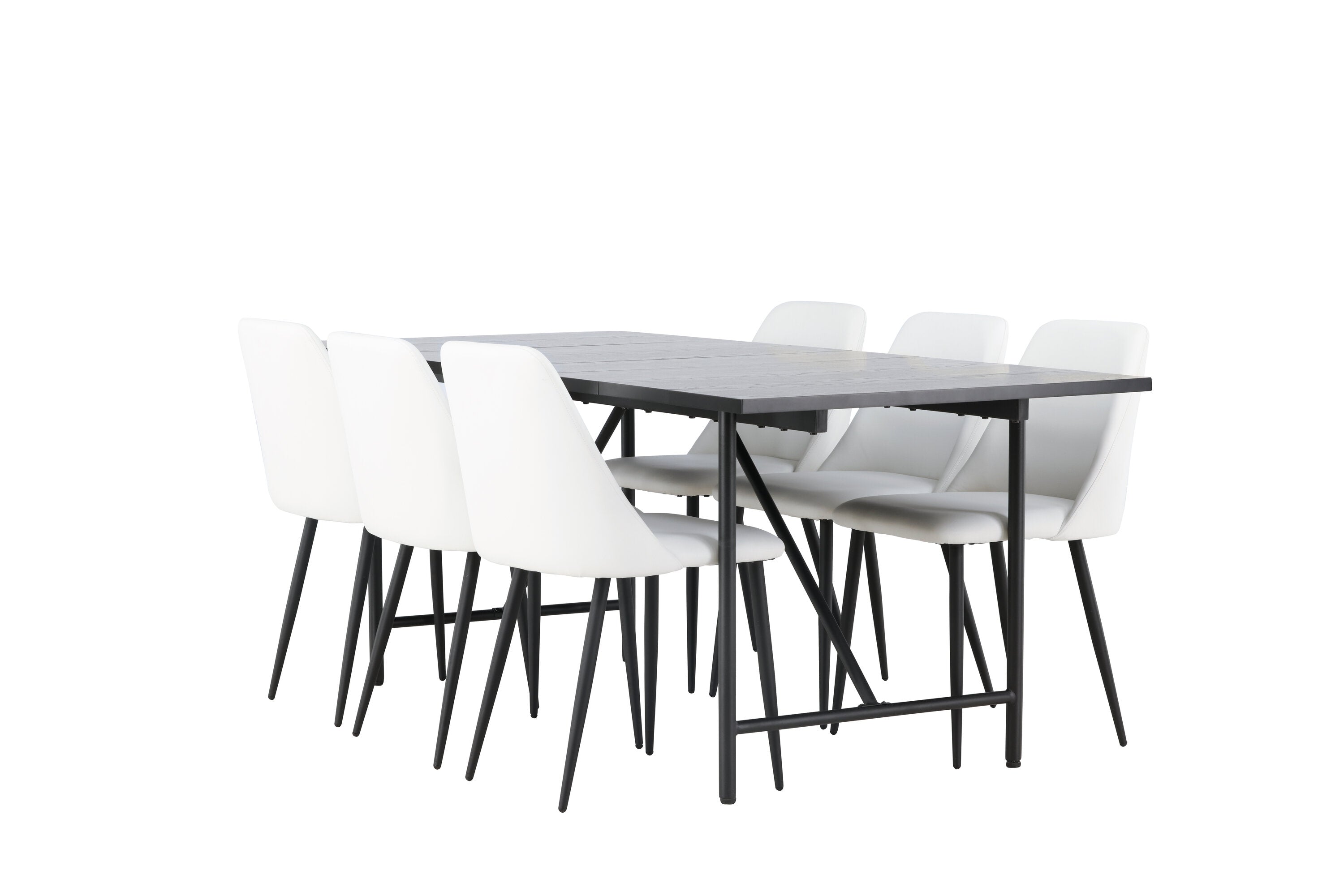 Astrid Jídelní stůl 200*75 - Matná černá / Matná černá MDF s dýhou + Noční jídelní židle - Černá / Bílá PU _6