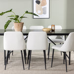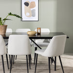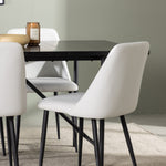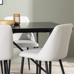 K jídelnímu stolu jsme ho spárovali s našimi bílými židlemi ze série Night, které spojují pohodlí s uhlazenou elegancí. Sedák židle je celočalouněný bílou PU kůží a nohy židle ladí se stolem ve stylovém černém odstínu. Díky svému pohodlnému a luxusnímu dojmu je židle Night dokonalým společníkem jídelního stolu Astrid.