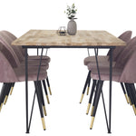 Jídelní stůl Bali ve štíhlém designu spolu s růžovými jídelními židlemi Velvet - perfektní kombinace pro ty, kteří chtějí trendy skupinu jídel. Vysoký komfort sezení křesel zve k dlouhým a úžasným chvilkám společenského života!