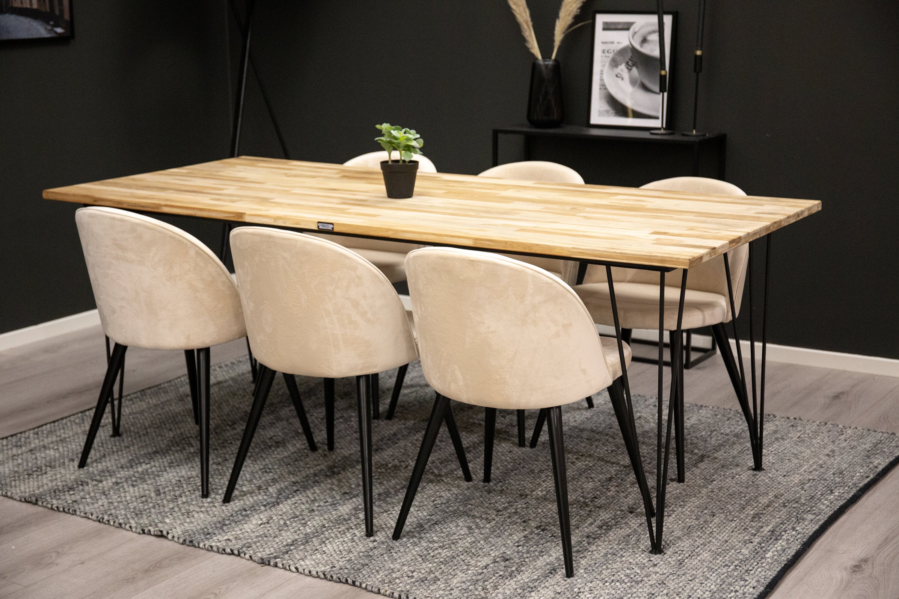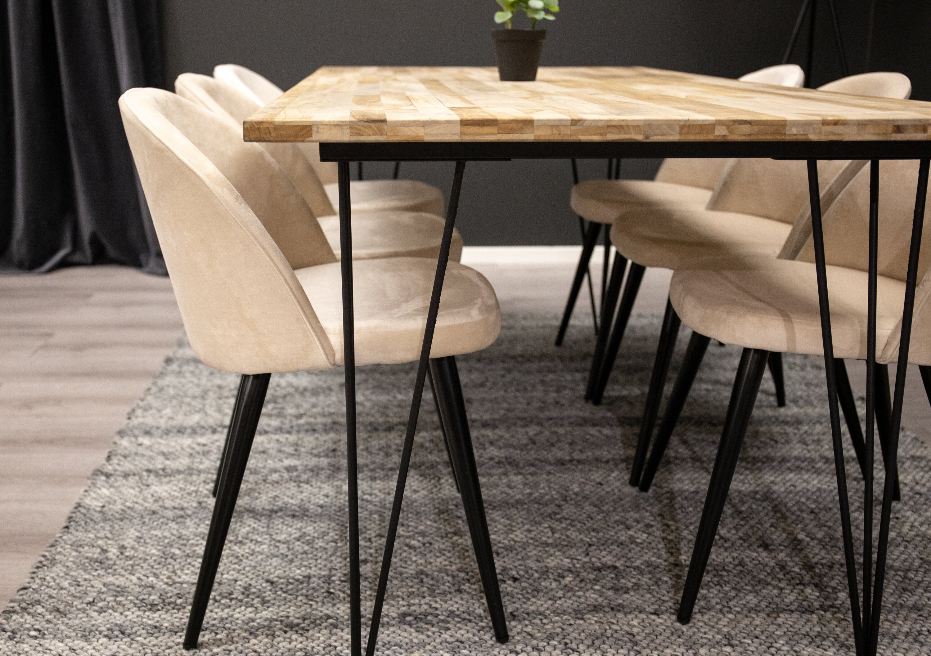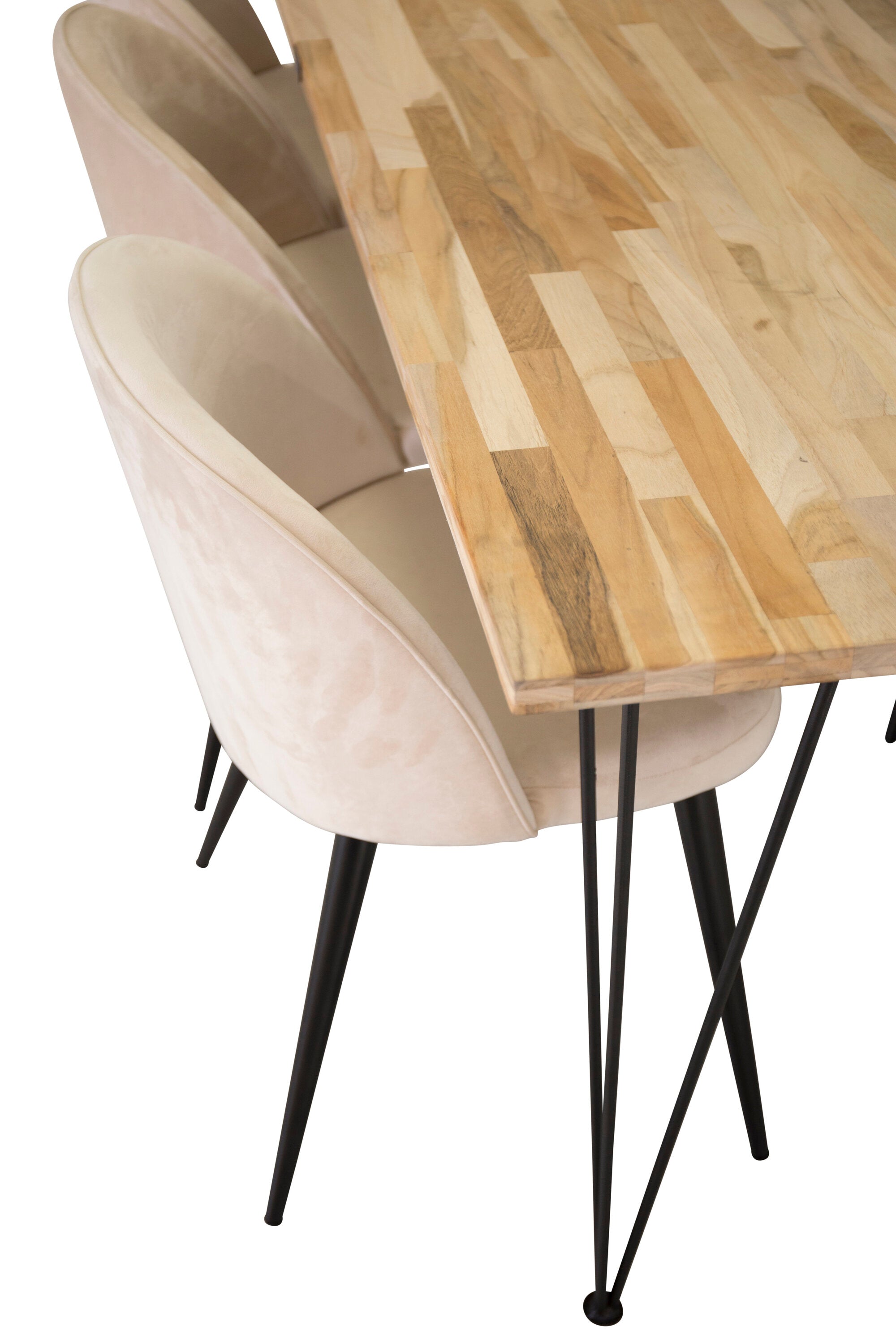 Elegantní a luxusní - náš jídelní stůl Bali in Trälook spolu s růžovými sametovými židlemi ze série Velvet slaví úspěch v mnoha domácnostech. Průmyslové a sladké zároveň!