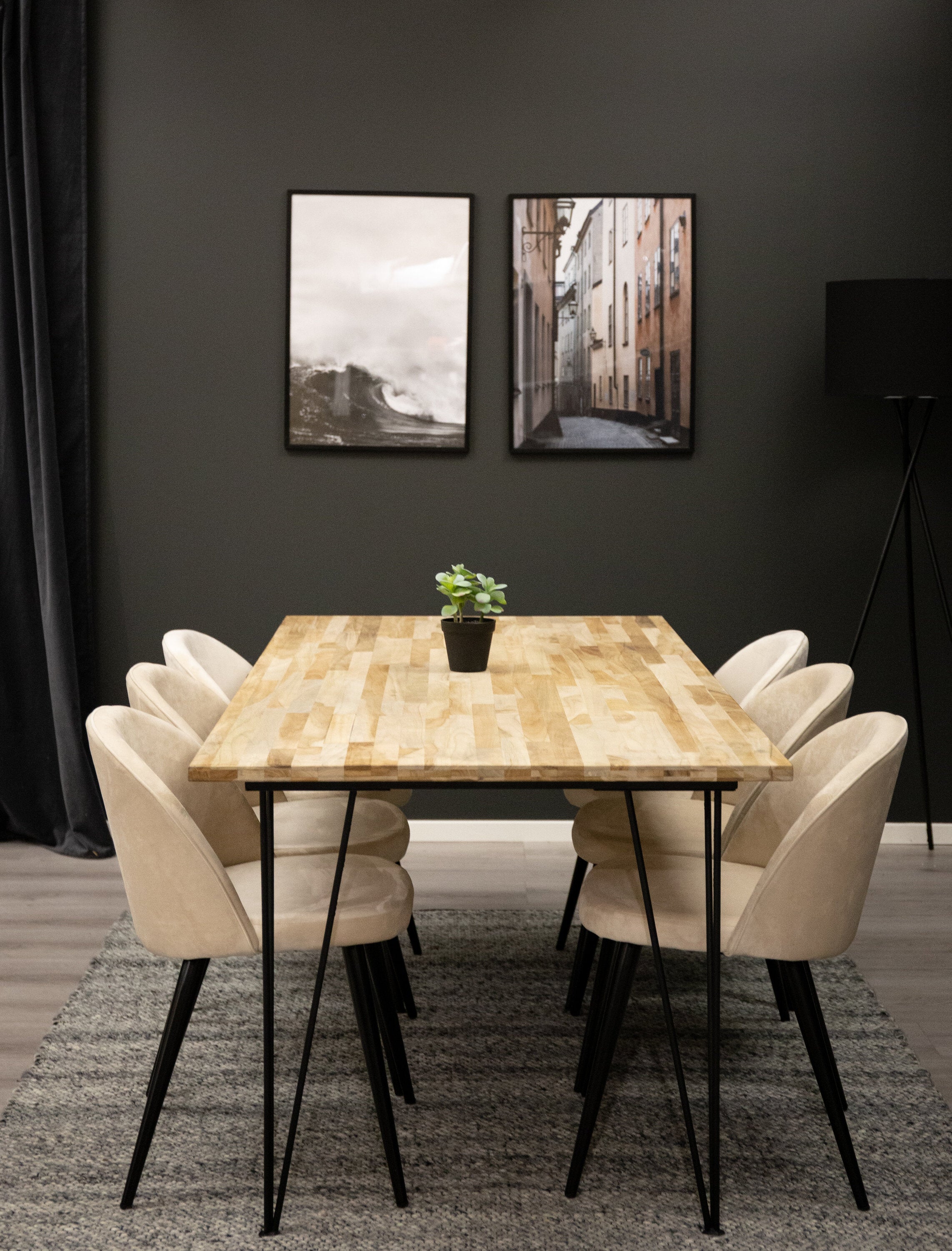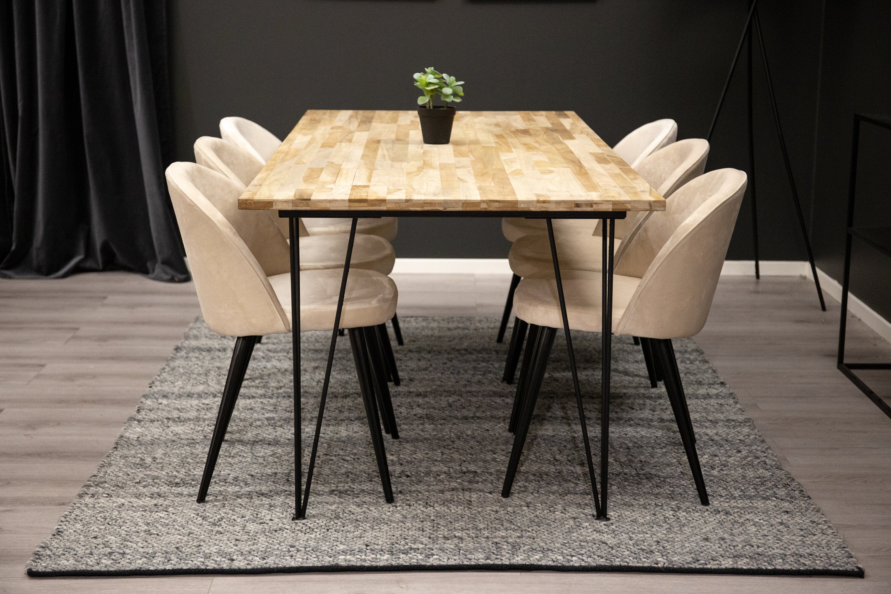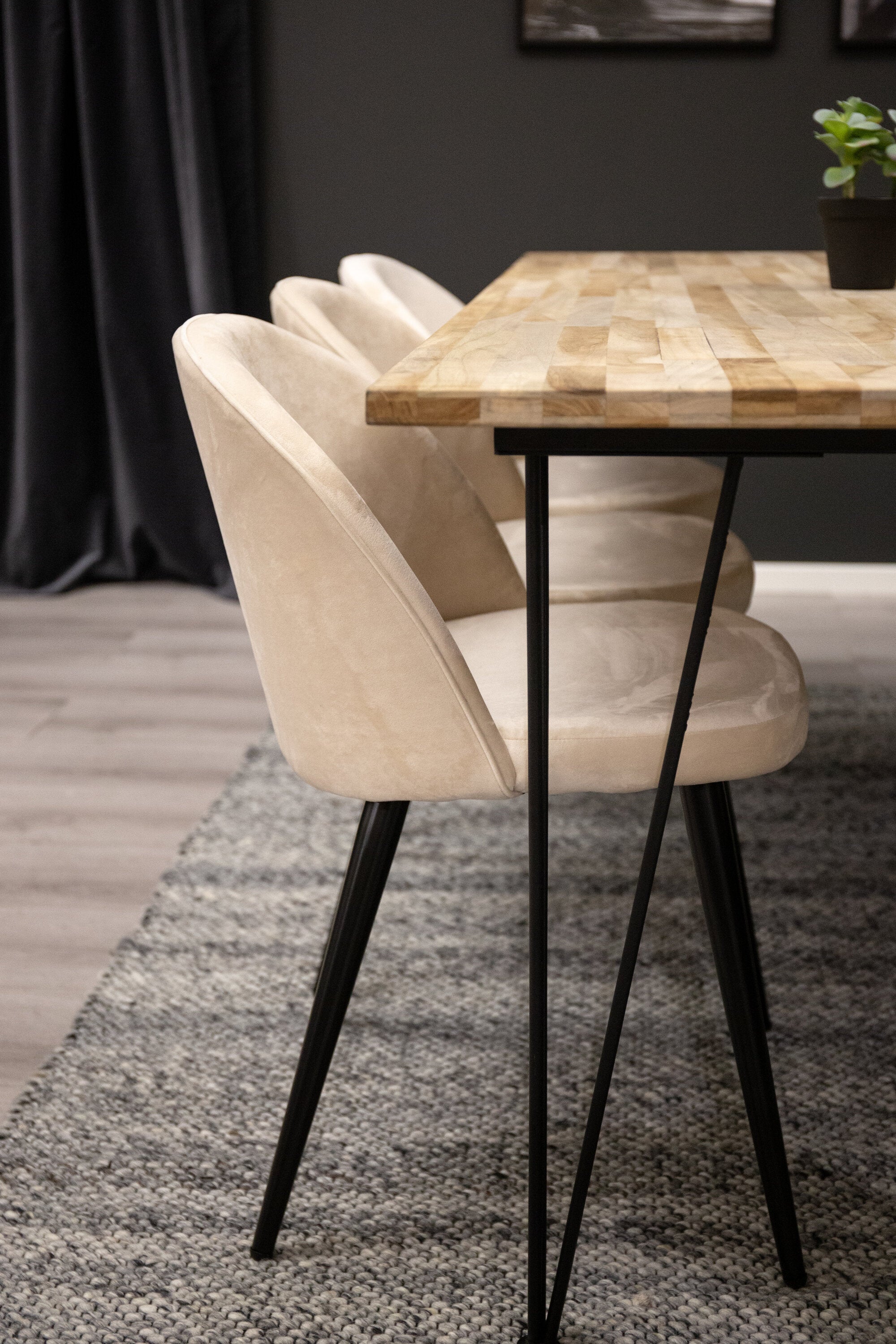 Elegantní a luxusní - náš jídelní stůl Bali in Trälook spolu s růžovými sametovými židlemi ze série Velvet slaví úspěch v mnoha domácnostech. Průmyslové a sladké zároveň!