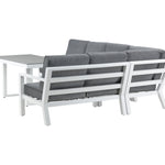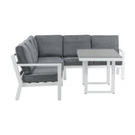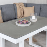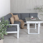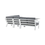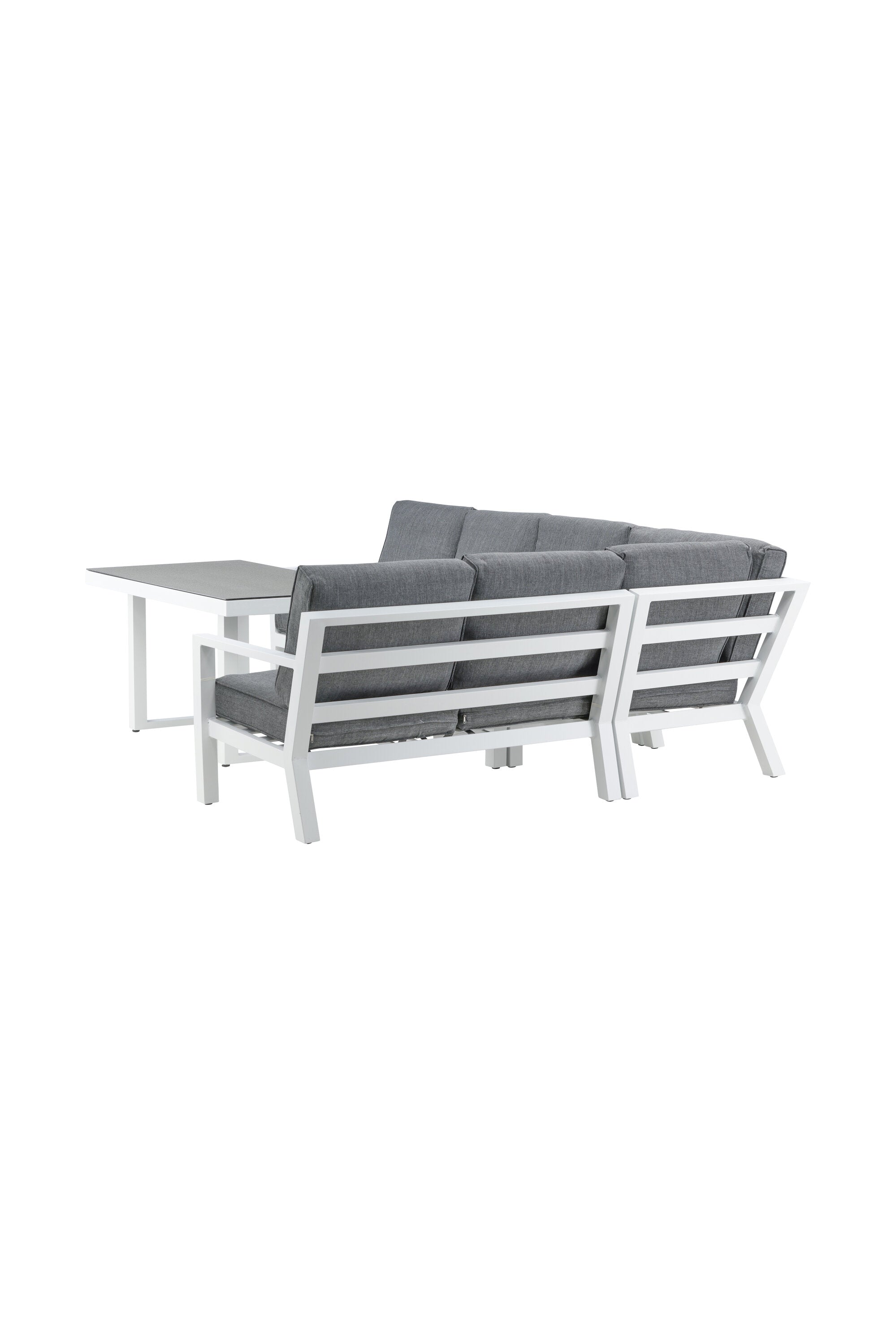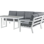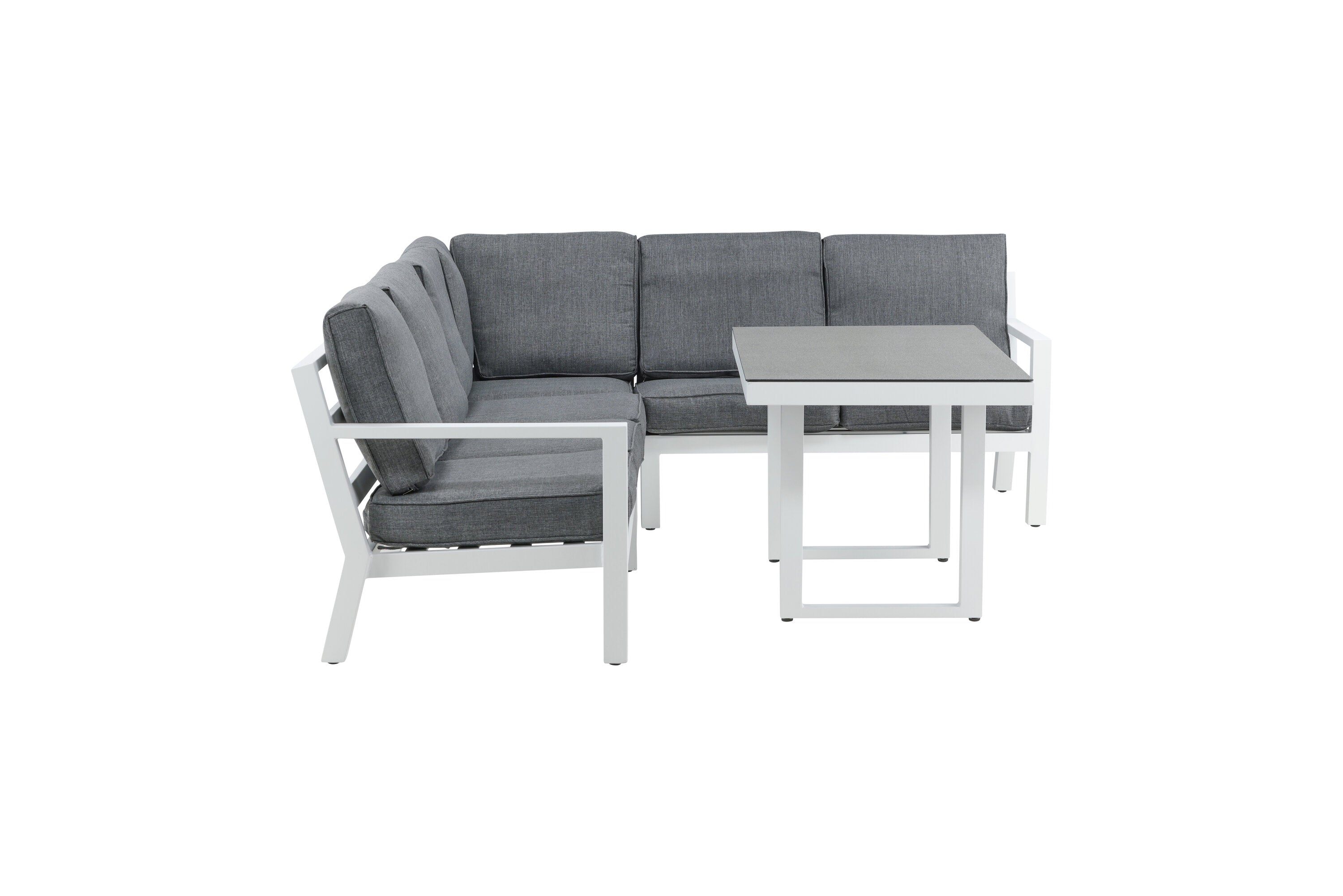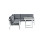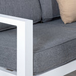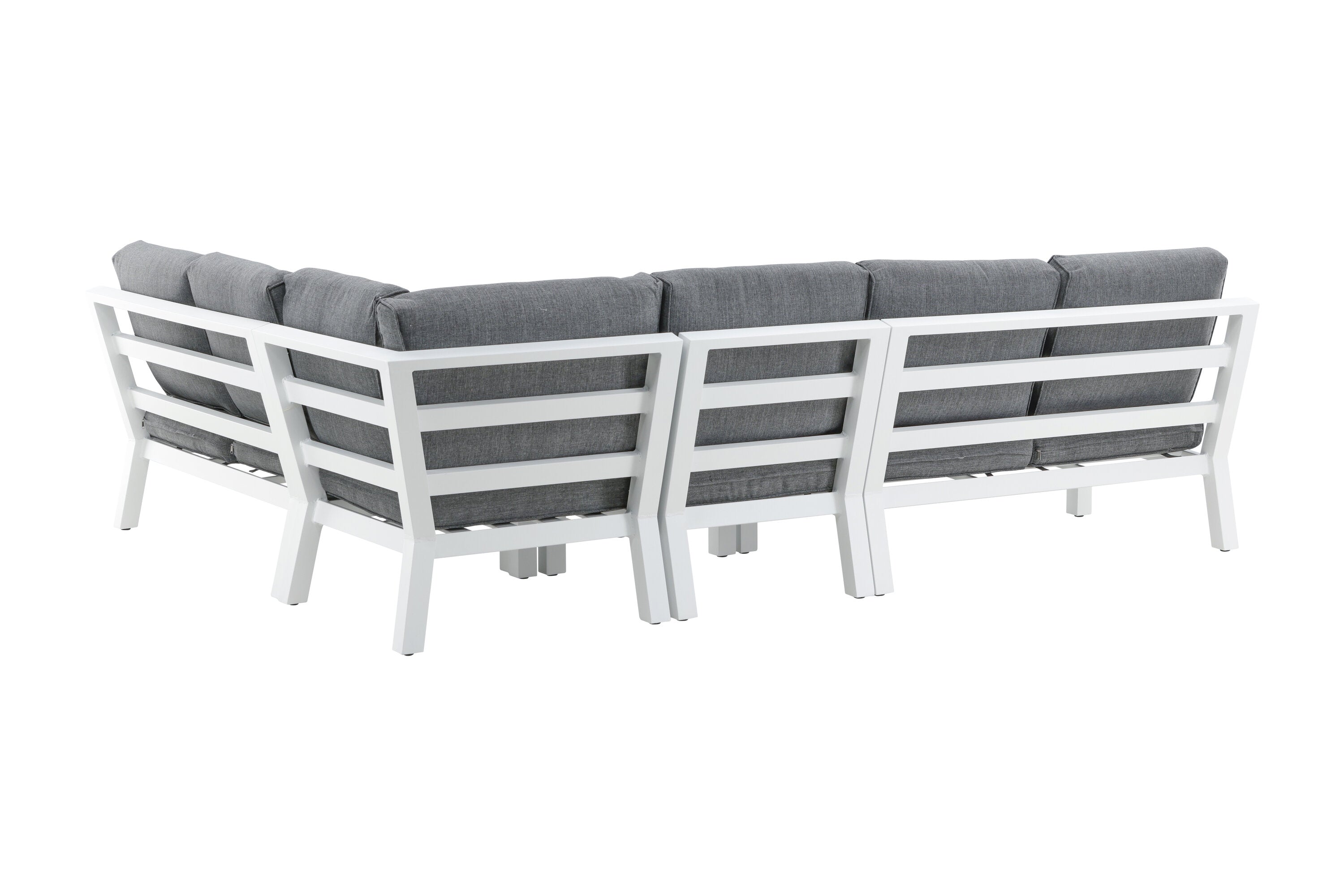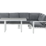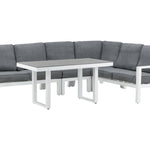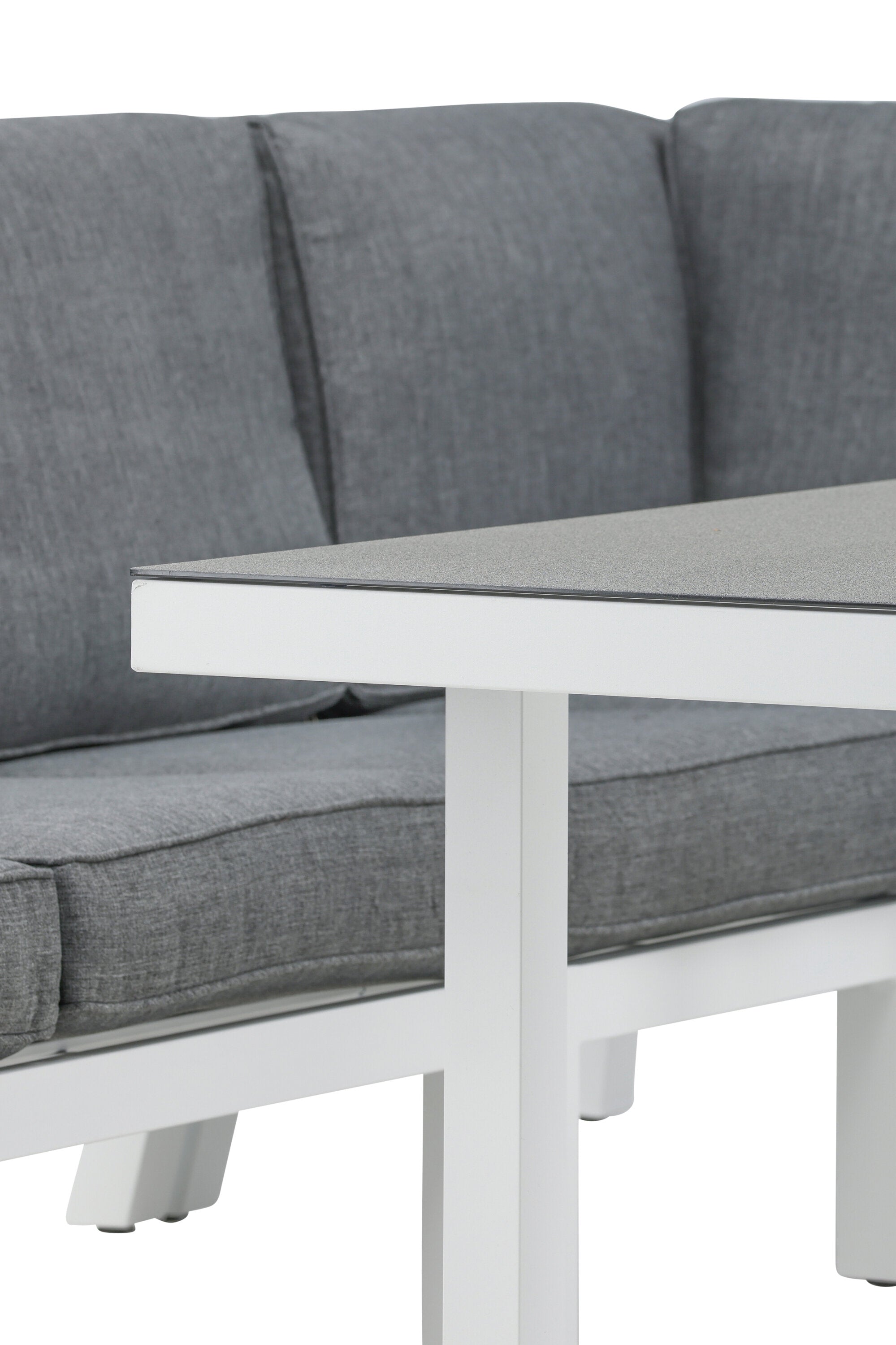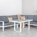 Vytvořte okouzlující středobod, kde se letos v létě shromáždíte na terase s rodinou a přáteli! Skupina pohovek Barcelona je pěkná a stylová skupina v bílém hliníku s přidruženými stolky, které ladí se skleněnou horní deskou. Součástí jsou odolné polštáře v černé barvě. Rozměry stolu: 140x75x68,5 cm. Rozměr pohovky: 267x254 cm. ROZMĚRY: 254x55x31 cm. Není nutná žádná montáž. Zlikvidujte odpolední kávu a vychutnejte si - zde můžete pohodlně sedět a relaxovat celé hodiny!