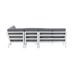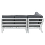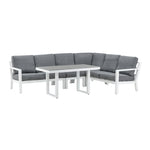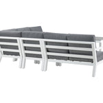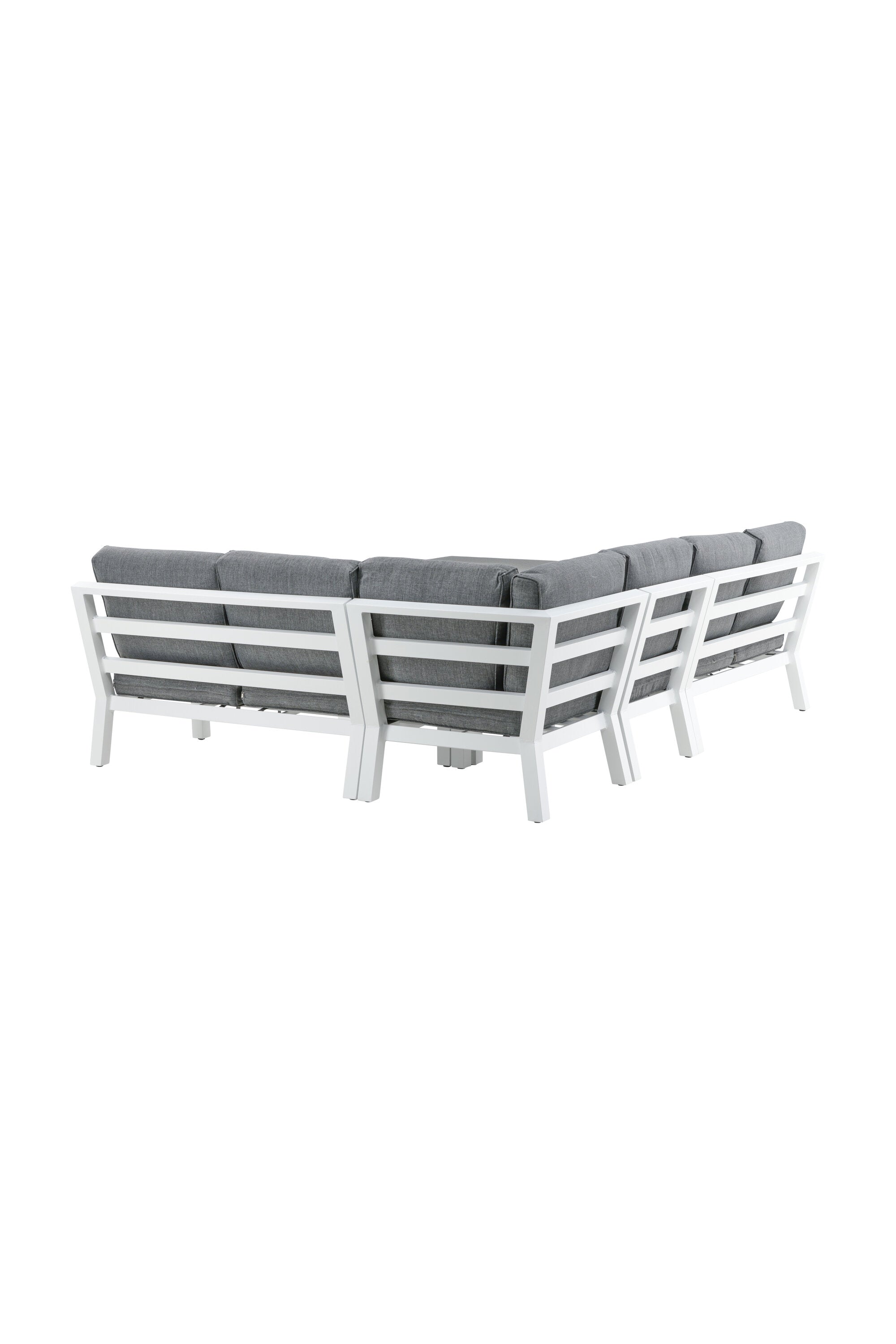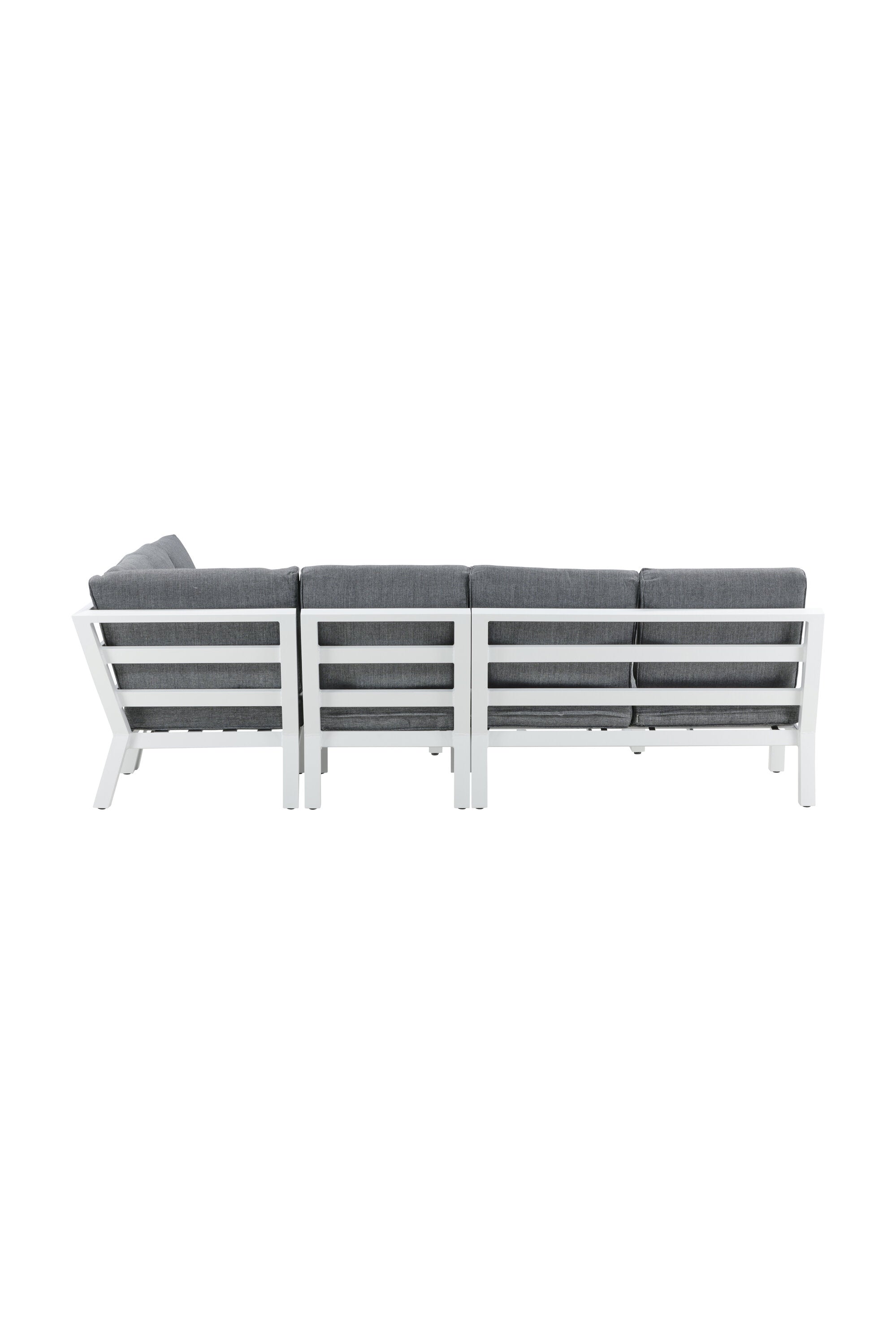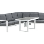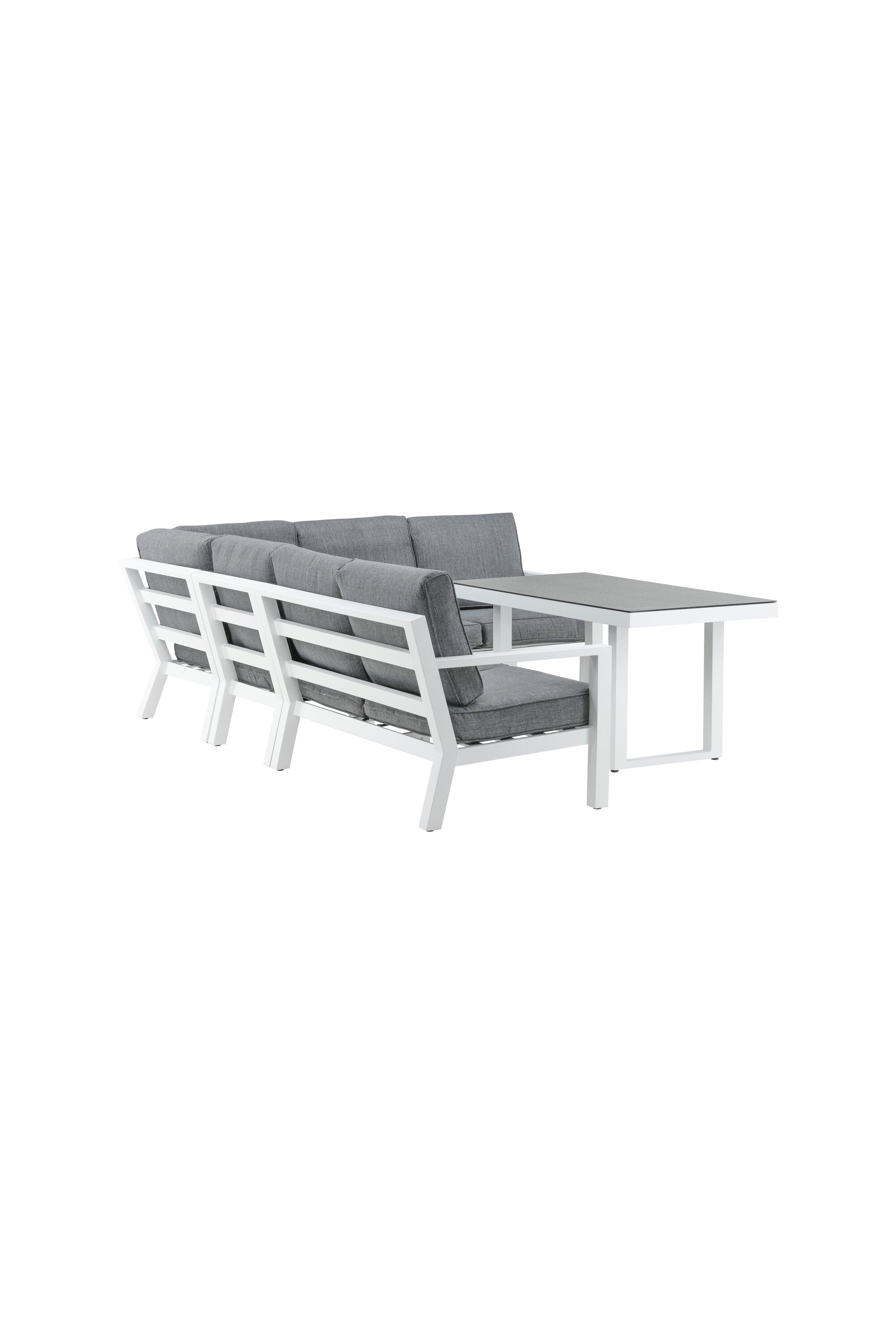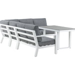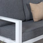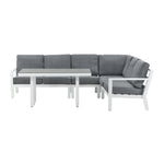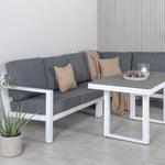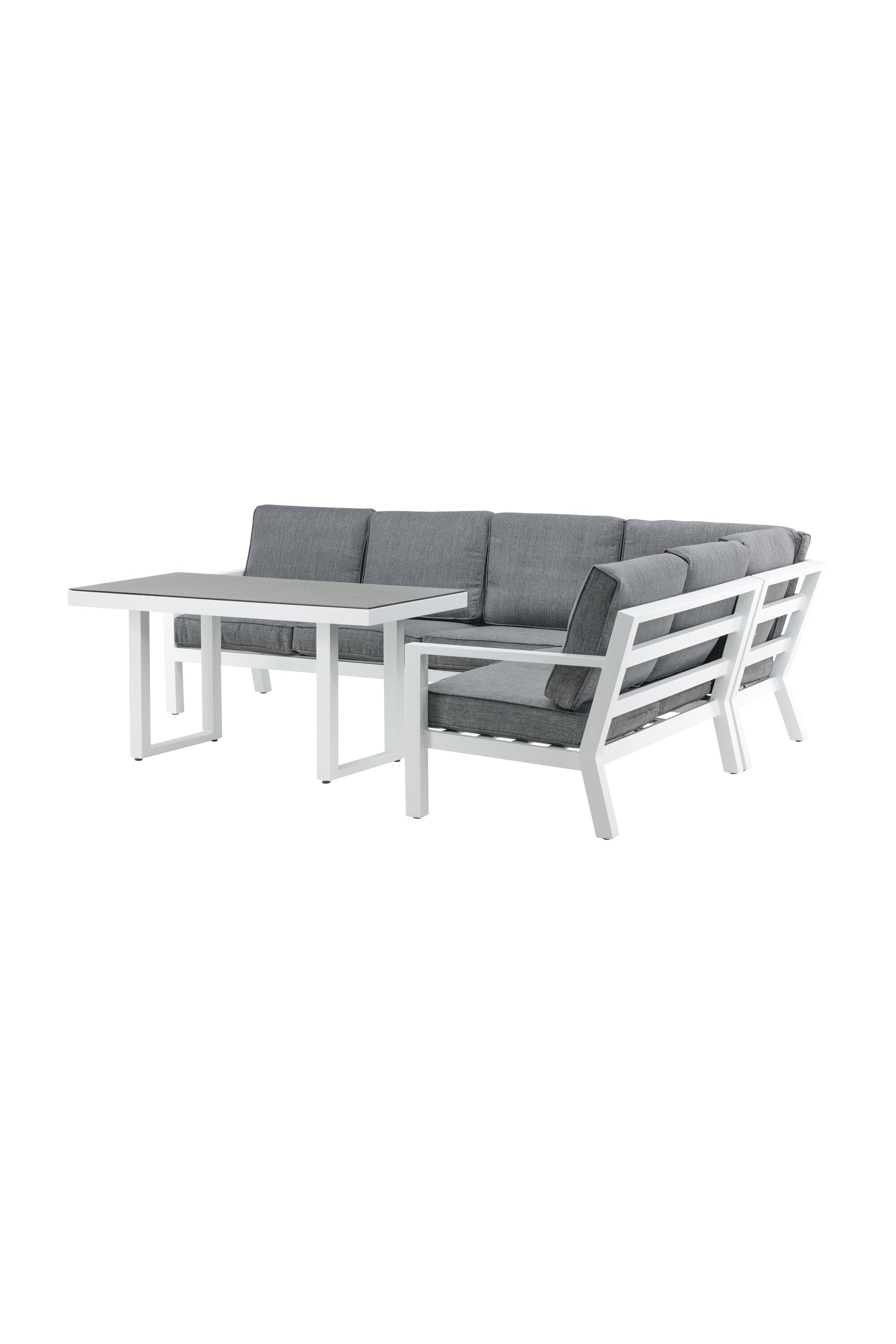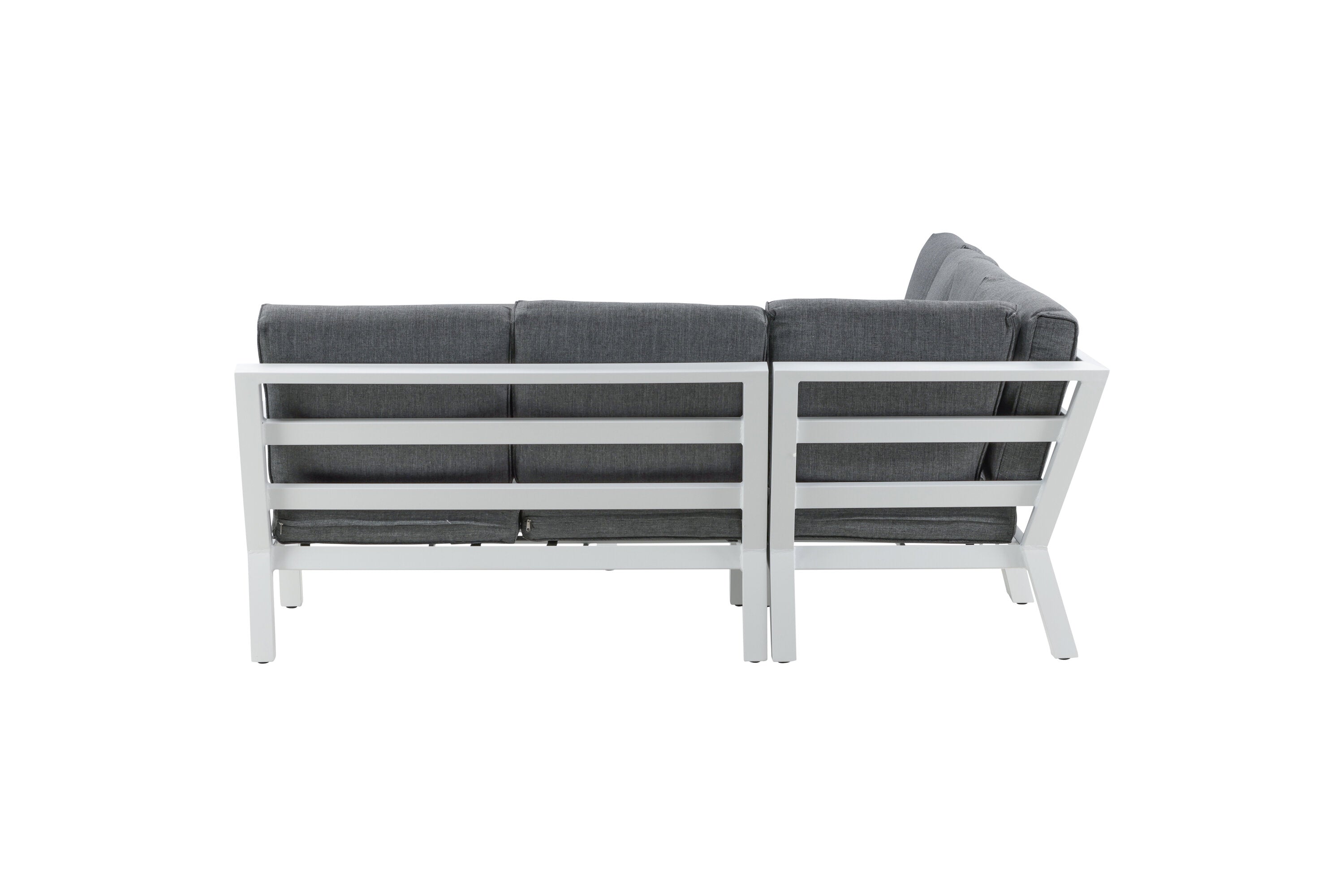 Vytvořte okouzlující středobod, kde se letos v létě shromáždíte na terase s rodinou a přáteli! Skupina pohovek Barcelona je pěkná a stylová skupina v bílém hliníku s přidruženými stolky, které ladí se skleněnou horní deskou. Součástí jsou odolné polštáře v černé barvě. Rozměry stolu: 140x75x68,5 cm. Rozměr pohovky: 267x254 cm. ROZMĚRY: 254x55x31 cm. Není nutná žádná montáž. Zlikvidujte odpolední kávu a vychutnejte si - zde můžete pohodlně sedět a relaxovat celé hodiny!