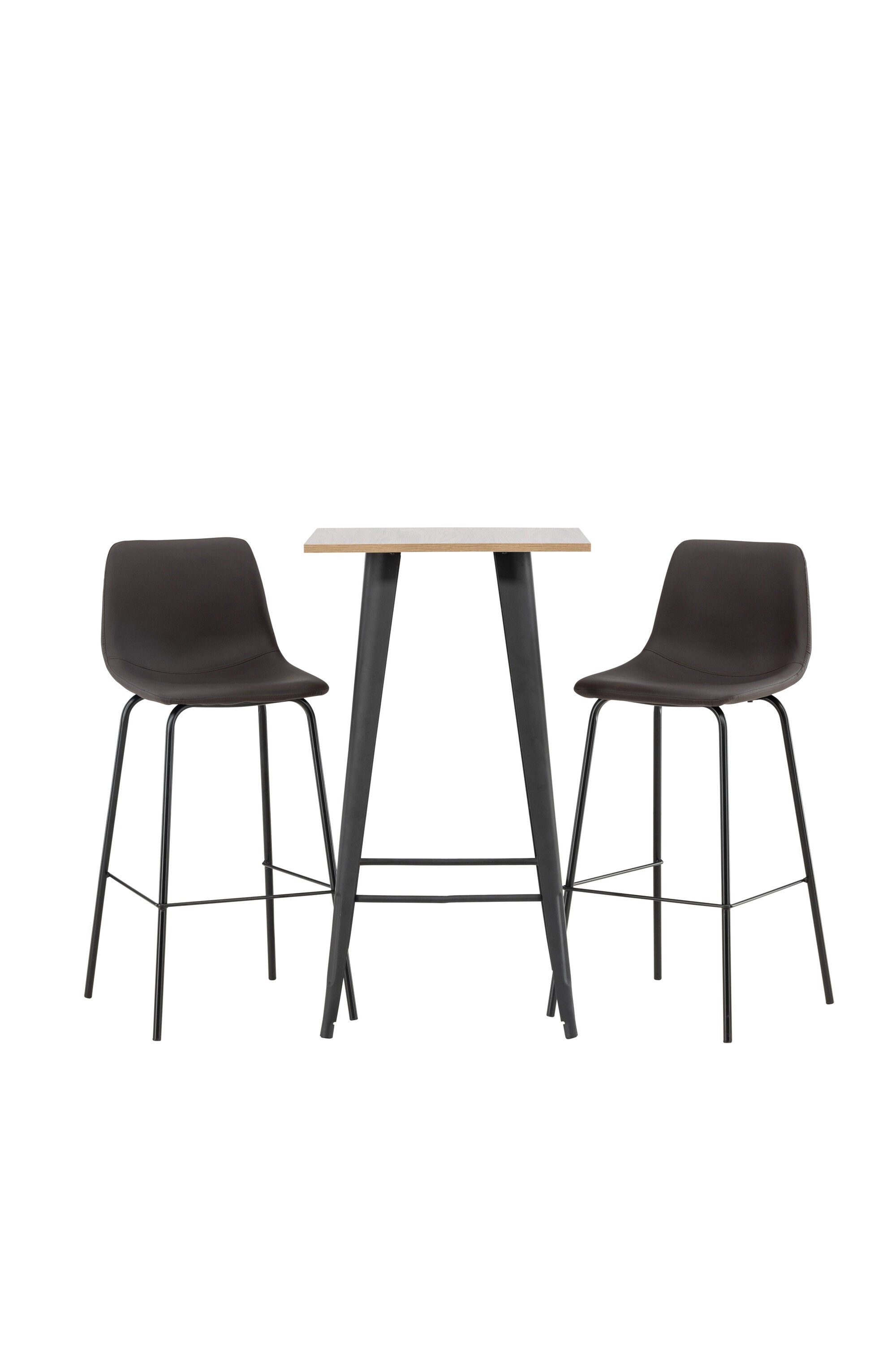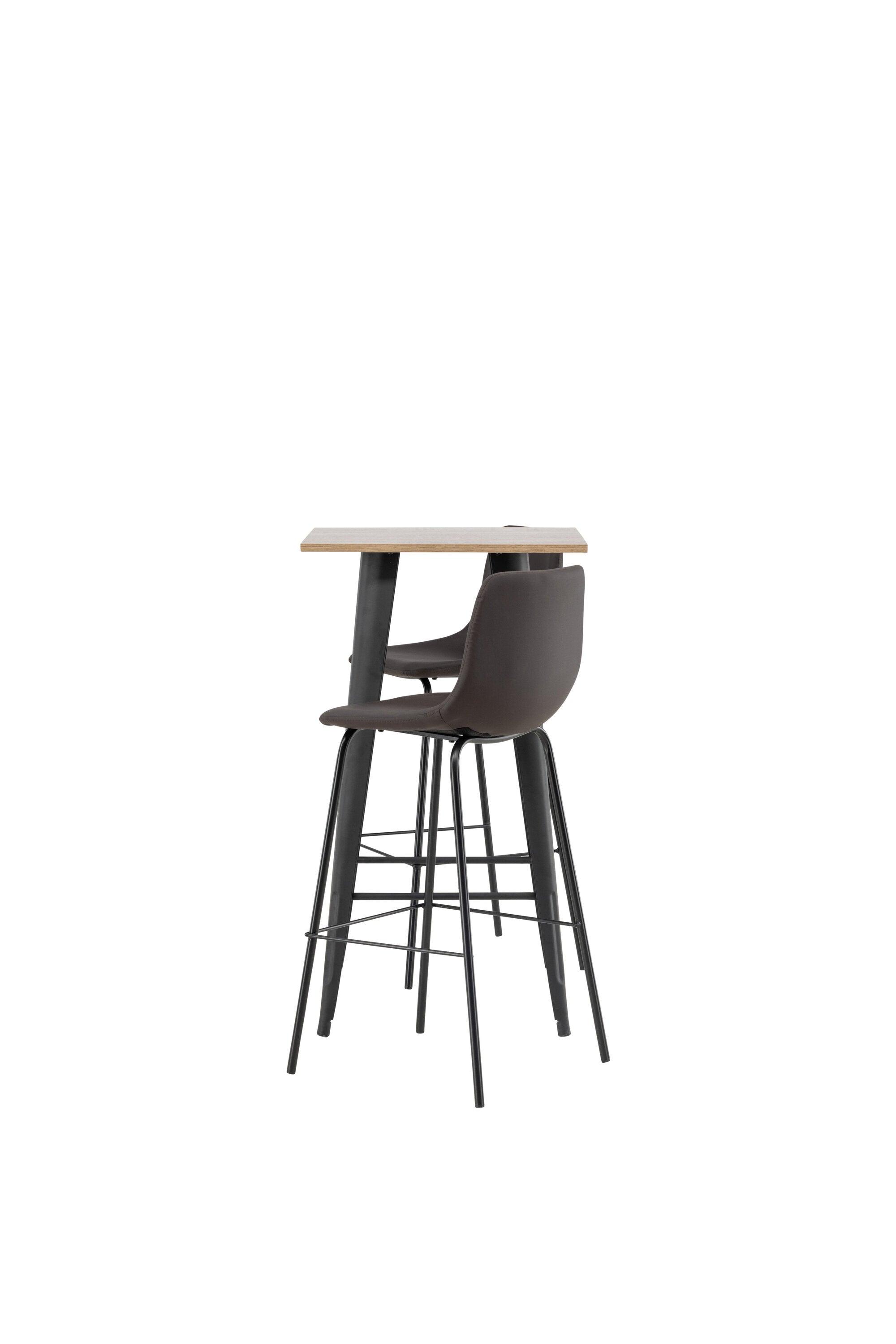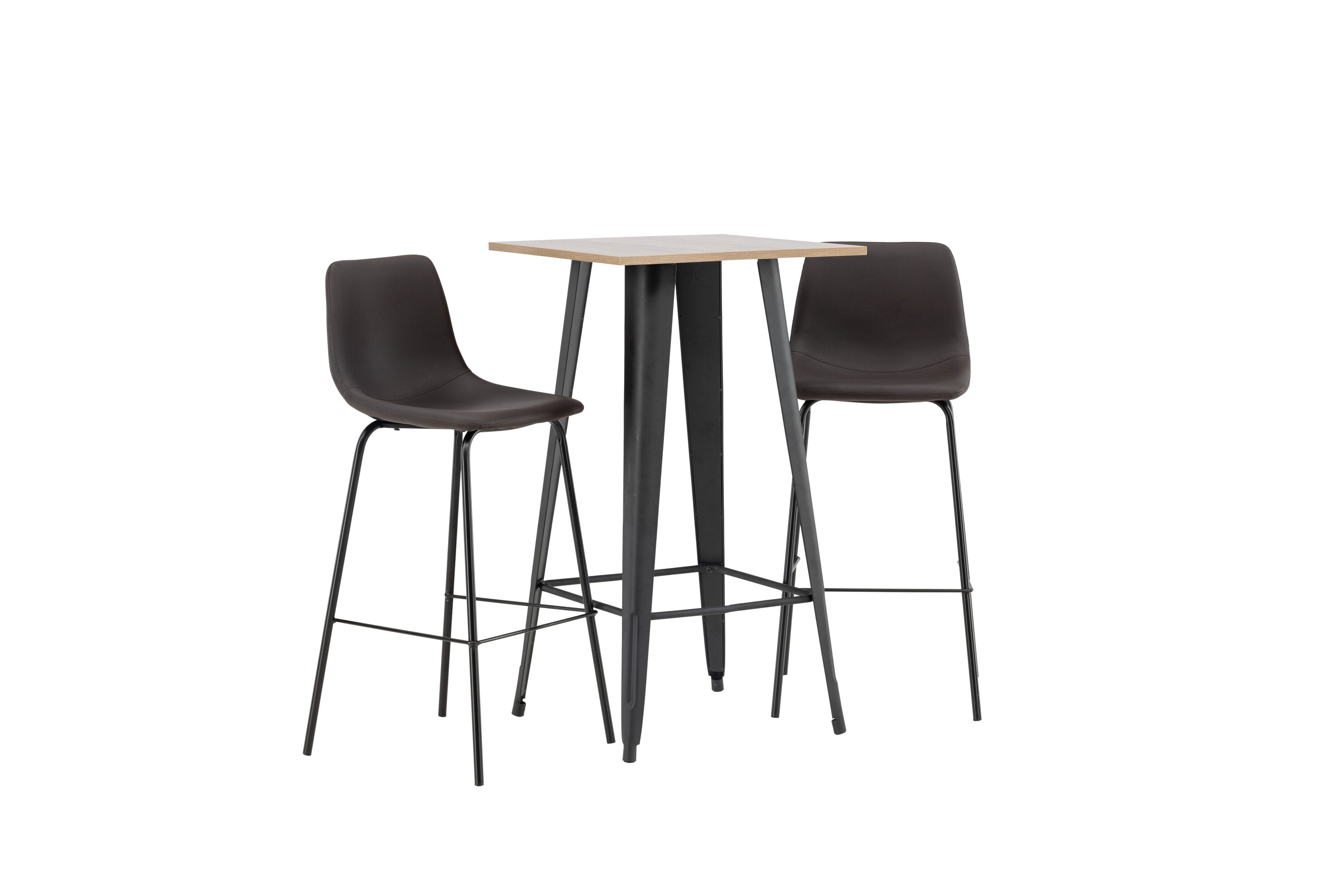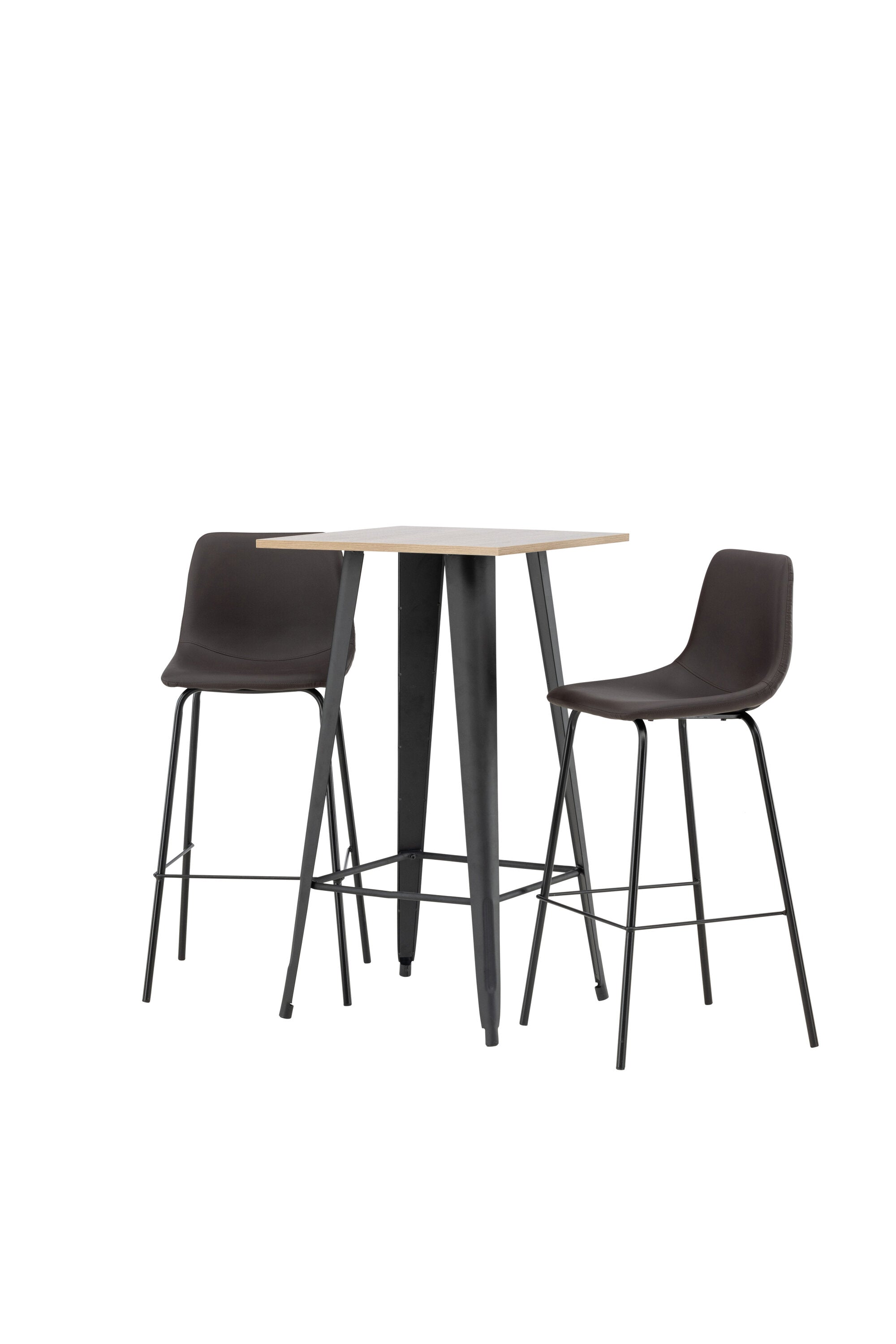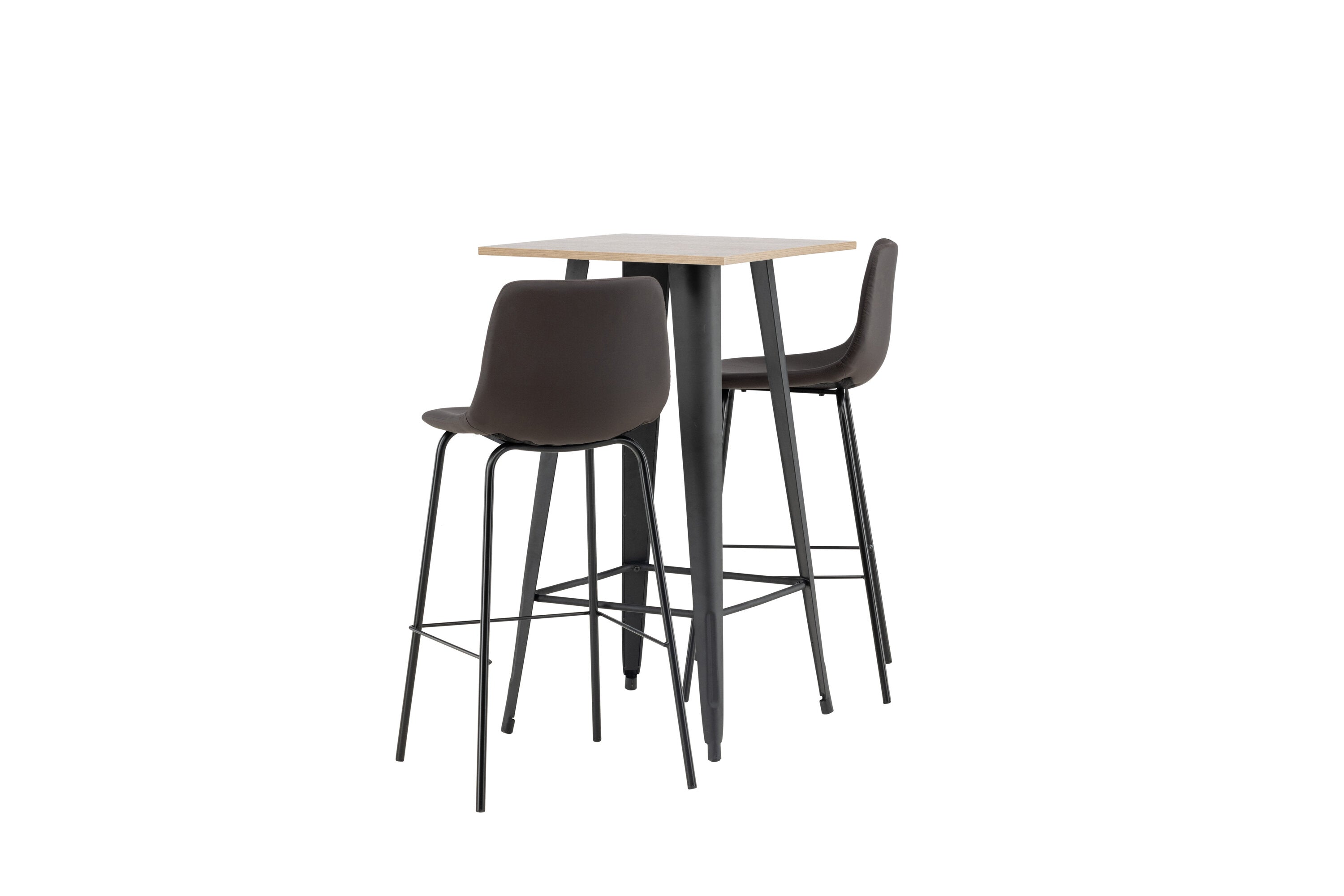 Spojte minimalismus a udržitelné materiály! Barový stůl Tempe má čtvercovou desku z MDF v barvě ořechu a mírně rozšířené nohy stolu z černého kovu s rámem pro podnožku pro větší pohodlí. Zde ve stylové kombinaci s hnědými barovými židlemi ze série Alexi. Design je dobře promyšlený s celočalouněným křeslem z hnědé čalouněné polyuretanové kůže a polyesteru a úzkými nohami z černého kovu s práškovým nástřikem s integrovanou podnožkou pro větší pohodlí. Měl by se cítit pohodlně na všech úrovních! Rozměry stolu: 60 x 60 cm.