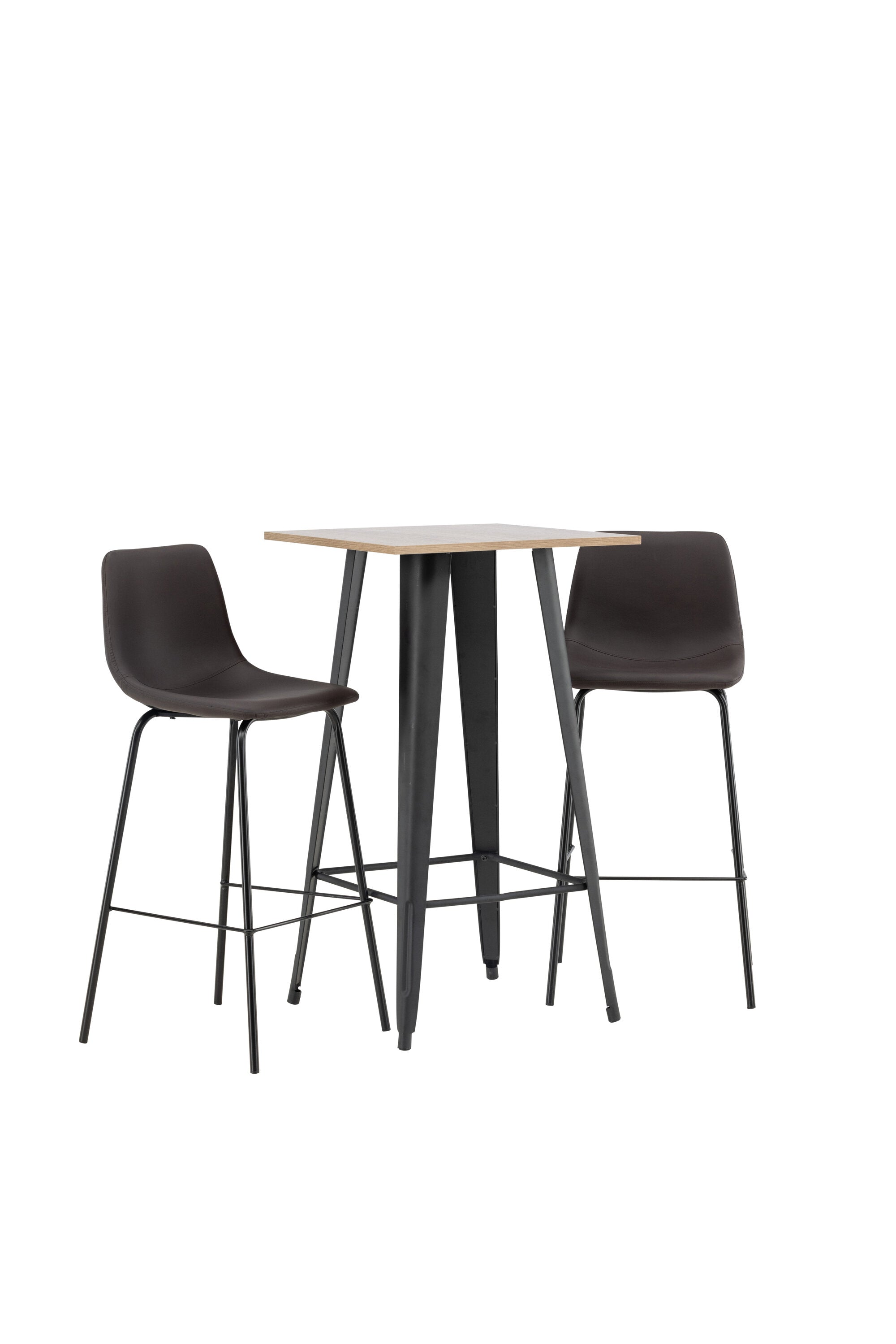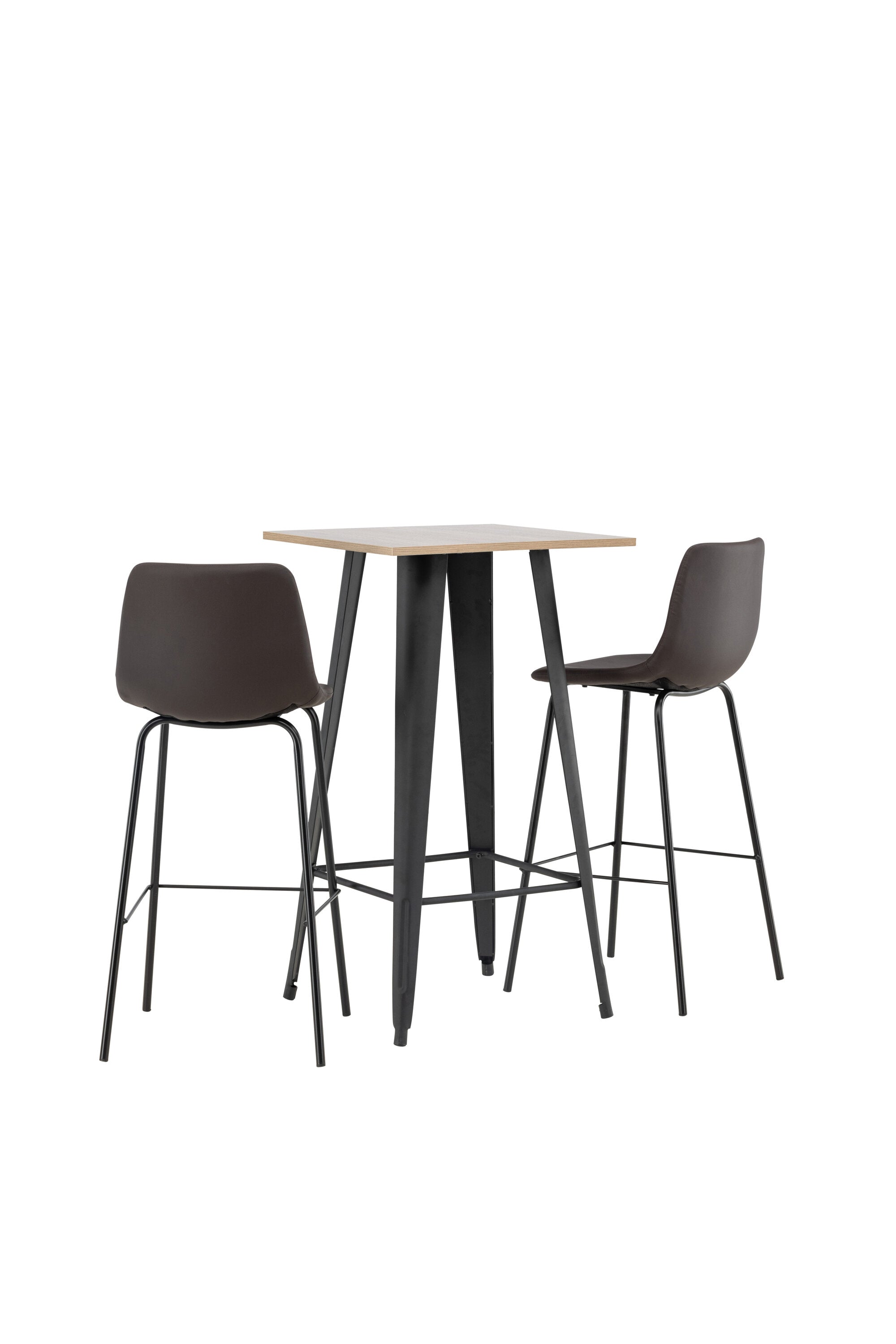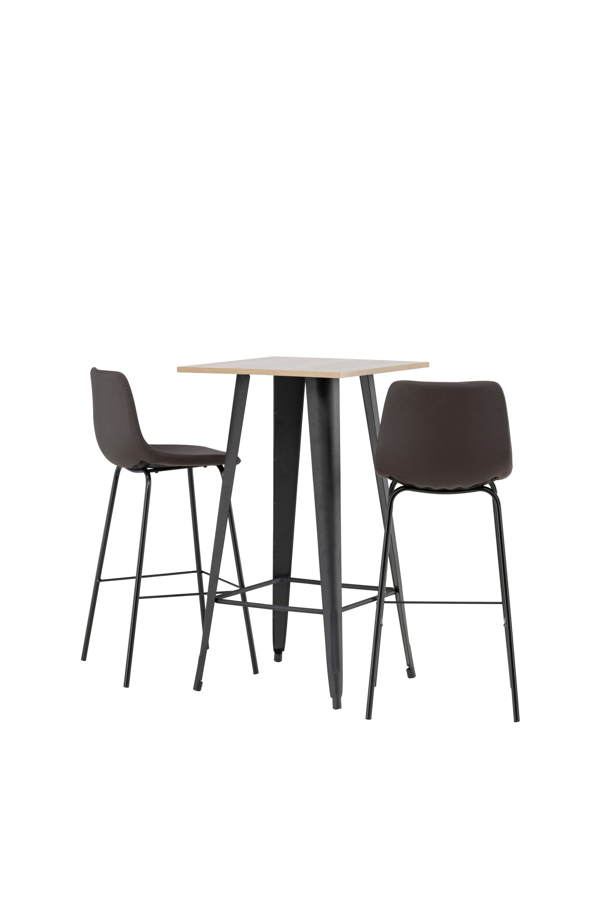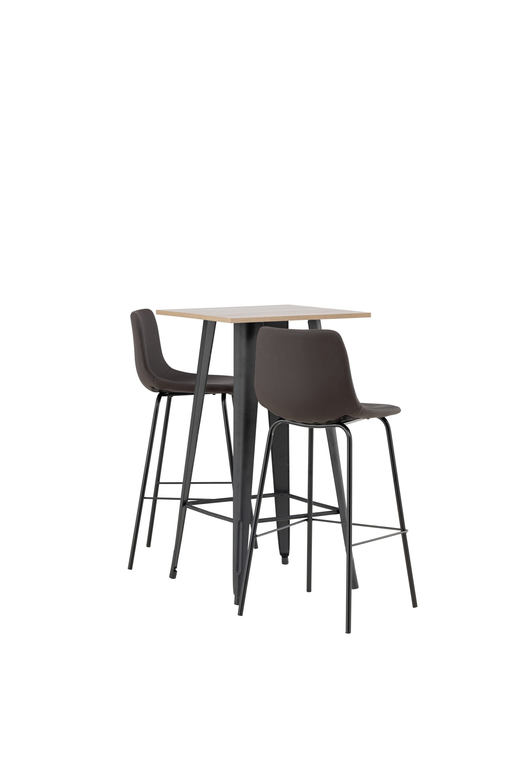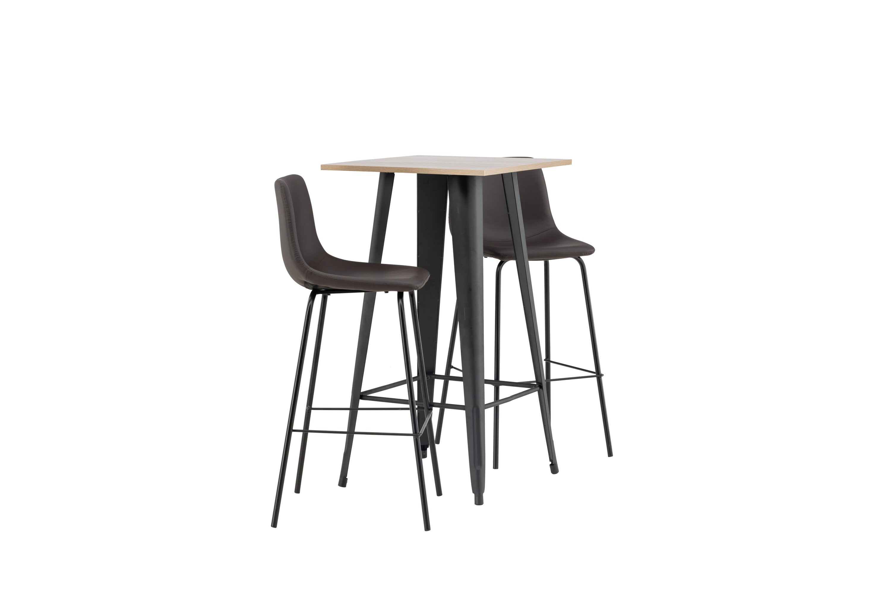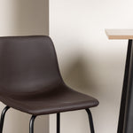 Spojte minimalismus a udržitelné materiály! Barový stůl Tempe má čtvercovou desku z MDF v barvě ořechu a mírně rozšířené nohy stolu z černého kovu s rámem pro podnožku pro větší pohodlí. Zde ve stylové kombinaci s hnědými barovými židlemi ze série Alexi. Design je dobře promyšlený s celočalouněným křeslem z hnědé čalouněné polyuretanové kůže a polyesteru a úzkými nohami z černého kovu s práškovým nástřikem s integrovanou podnožkou pro větší pohodlí. Měl by se cítit pohodlně na všech úrovních! Rozměry stolu: 60 x 60 cm.