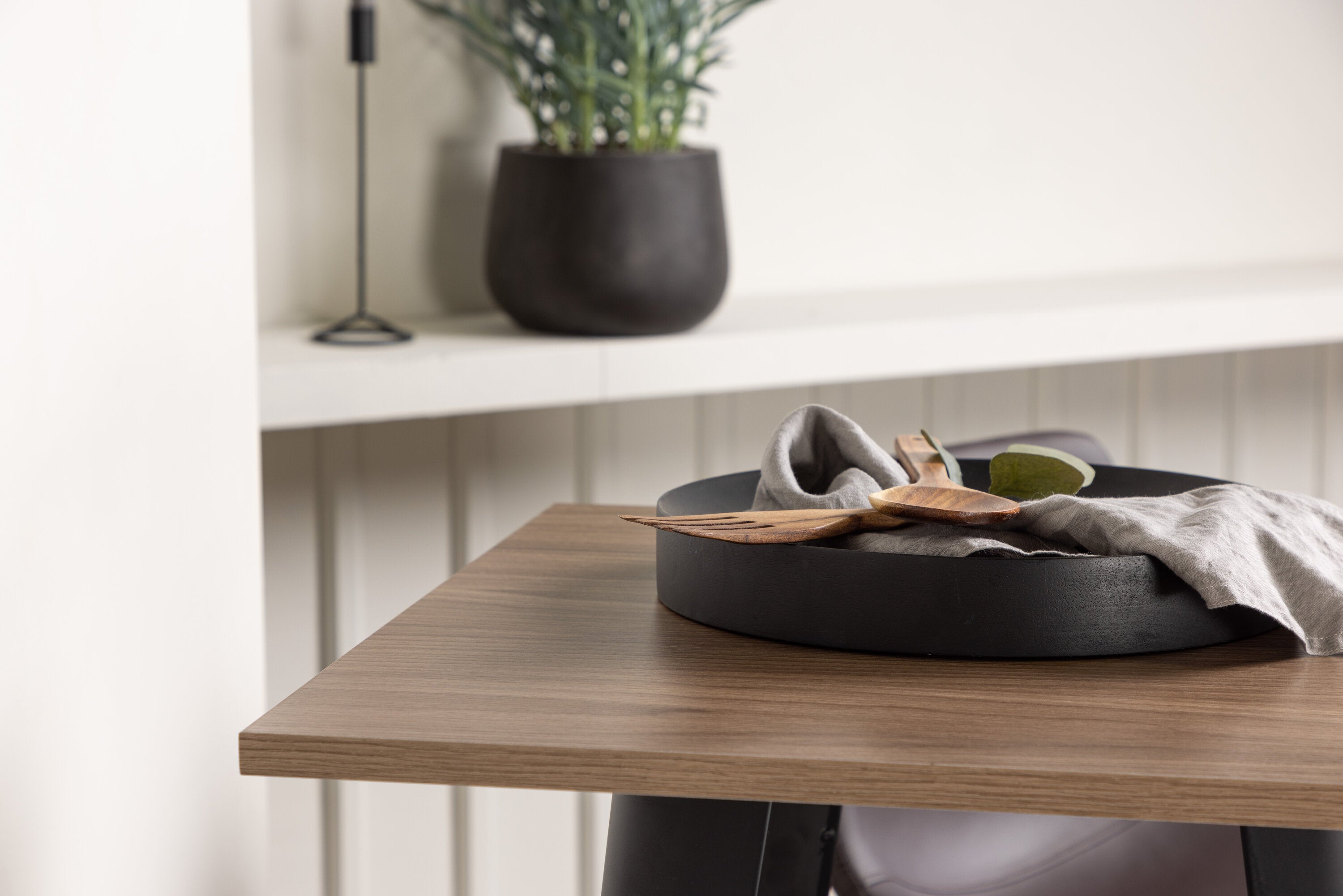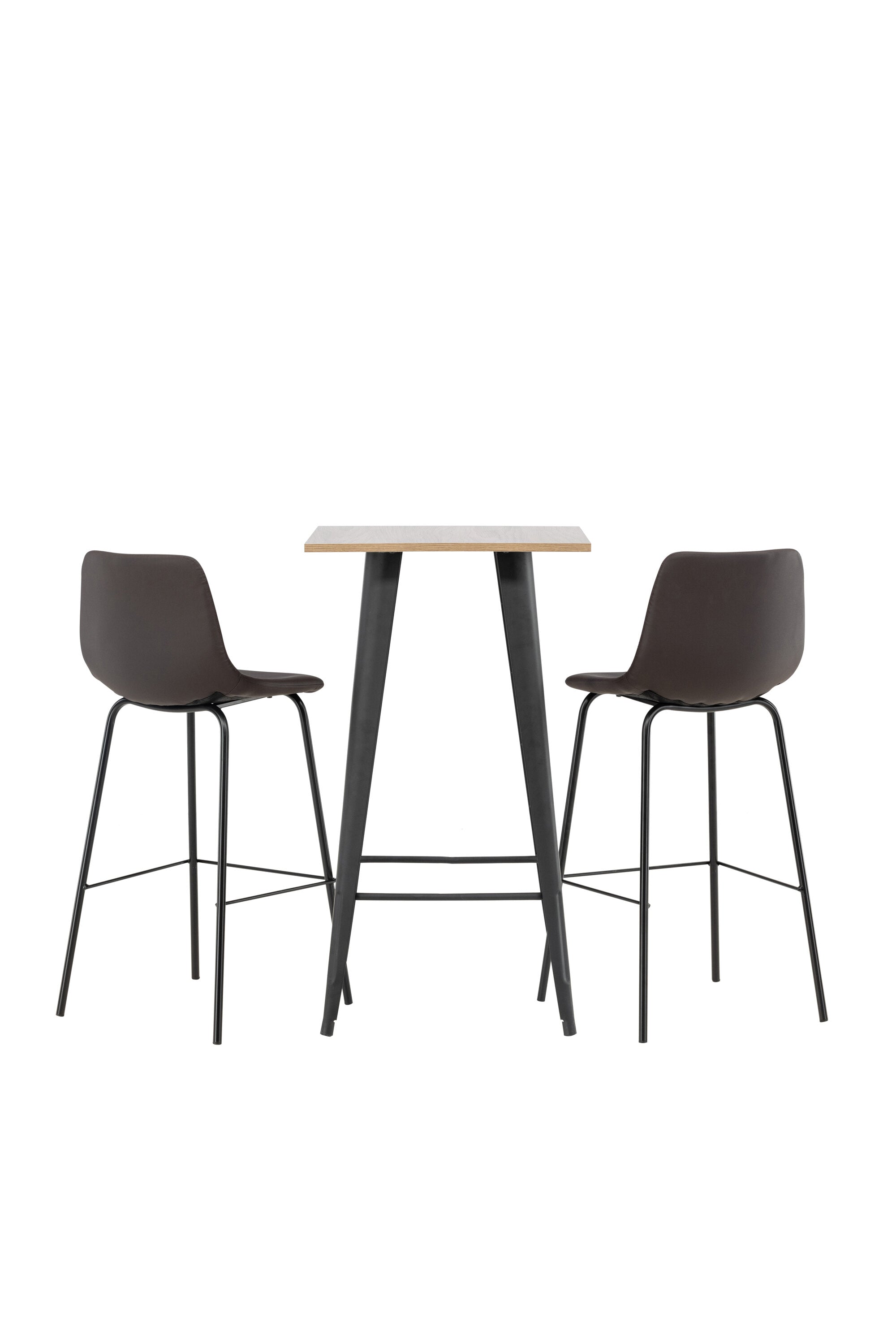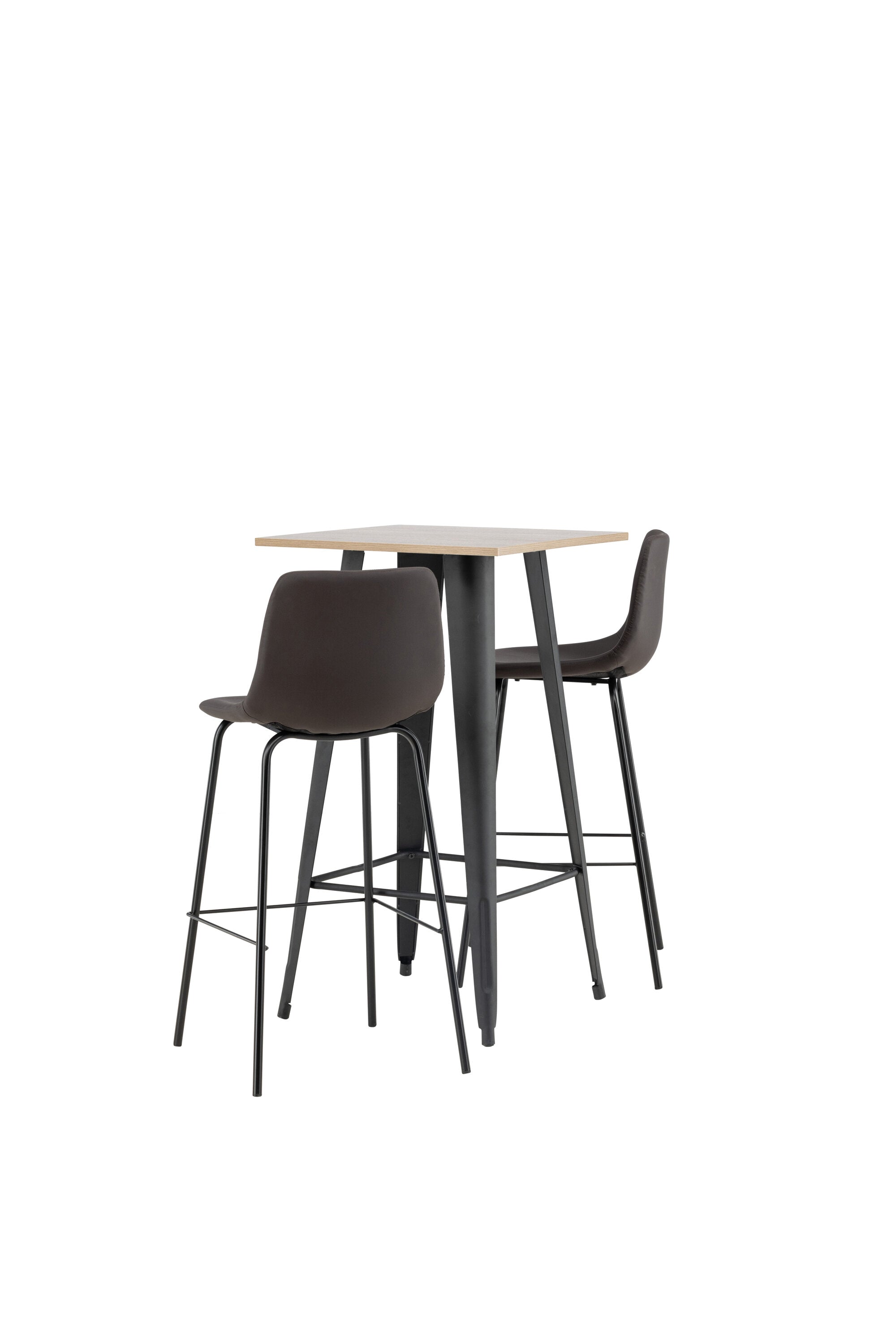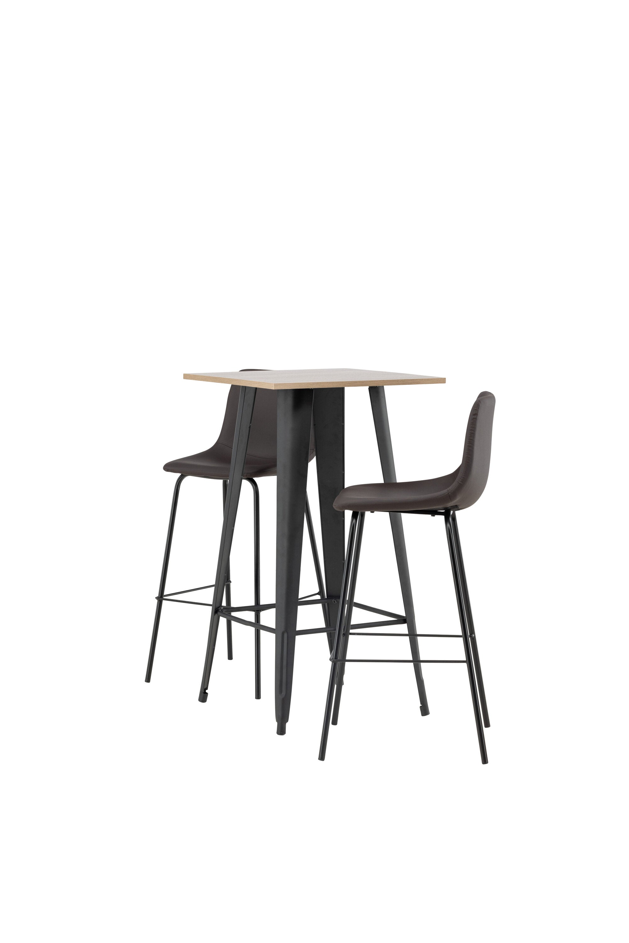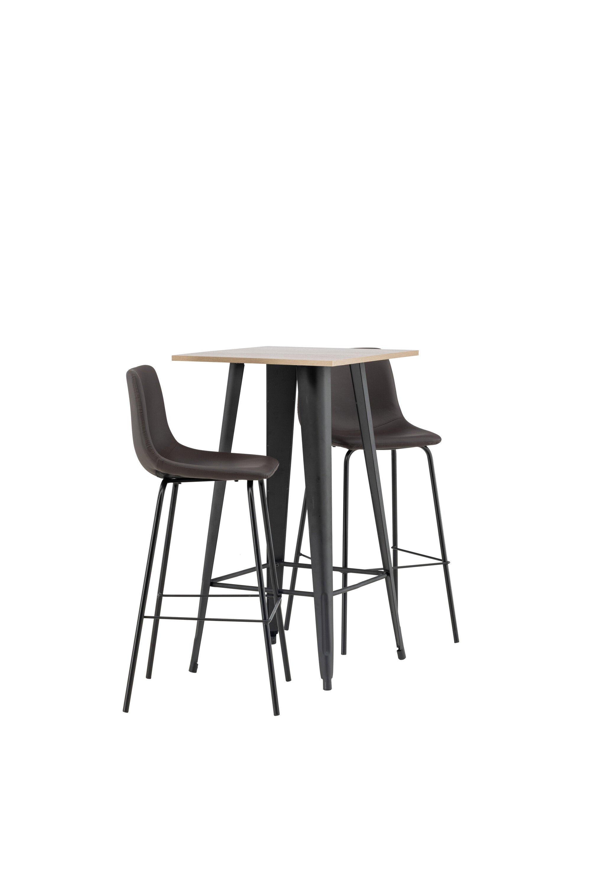 Spojte minimalismus a udržitelné materiály! Barový stůl Tempe má čtvercovou desku z MDF v barvě ořechu a mírně rozšířené nohy stolu z černého kovu s rámem pro podnožku pro větší pohodlí. Zde ve stylové kombinaci s hnědými barovými židlemi ze série Alexi. Design je dobře promyšlený s celočalouněným křeslem z hnědé čalouněné polyuretanové kůže a polyesteru a úzkými nohami z černého kovu s práškovým nástřikem s integrovanou podnožkou pro větší pohodlí. Měl by se cítit pohodlně na všech úrovních! Rozměry stolu: 60 x 60 cm.