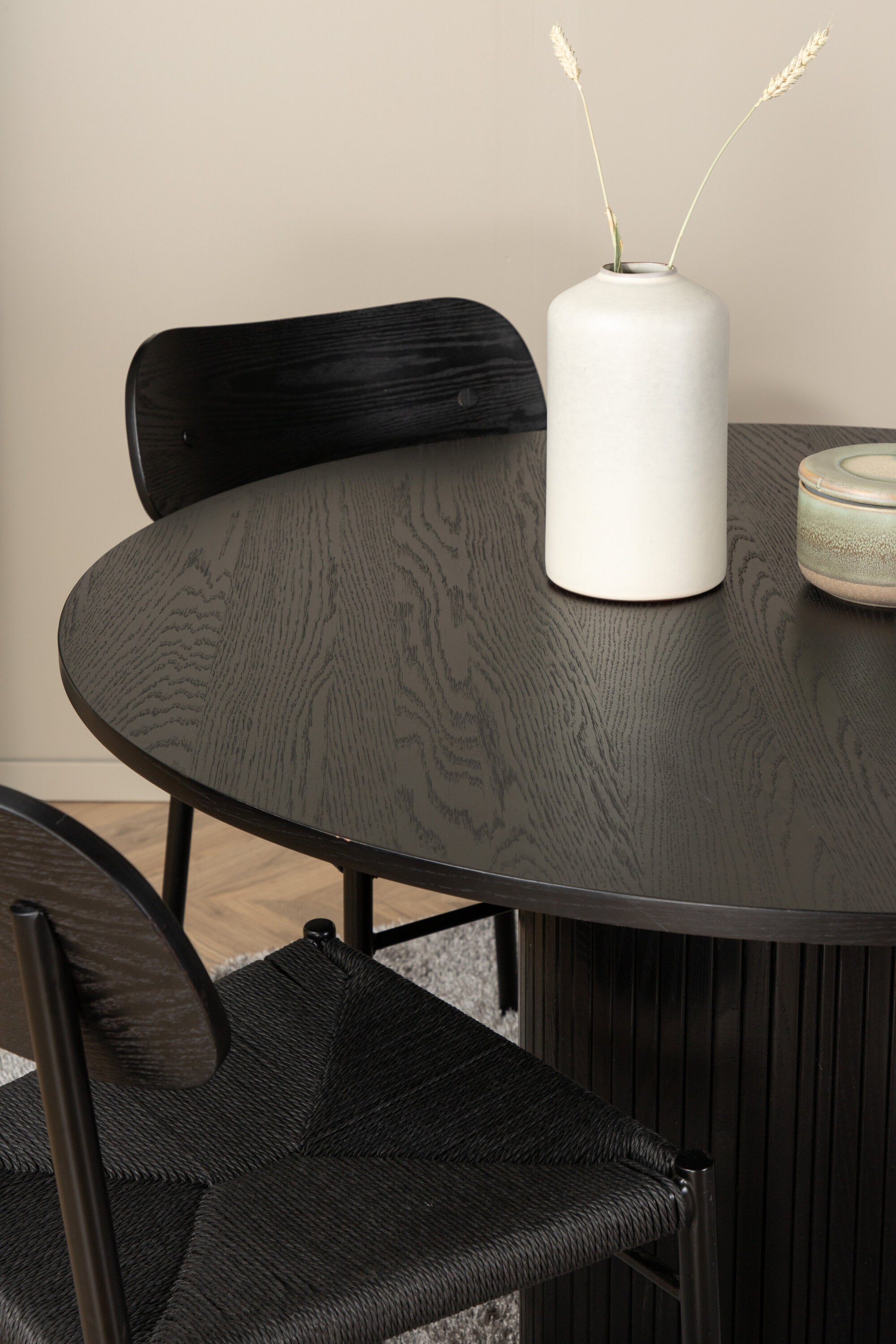 Bianca kulatý jídelní stůl – černá / černá dýha + 2-balení jídelní židle Polly – černá / černá _4
