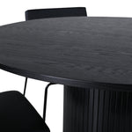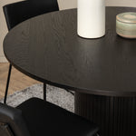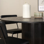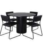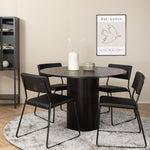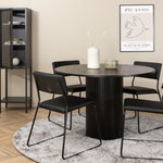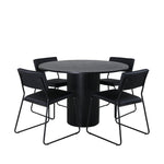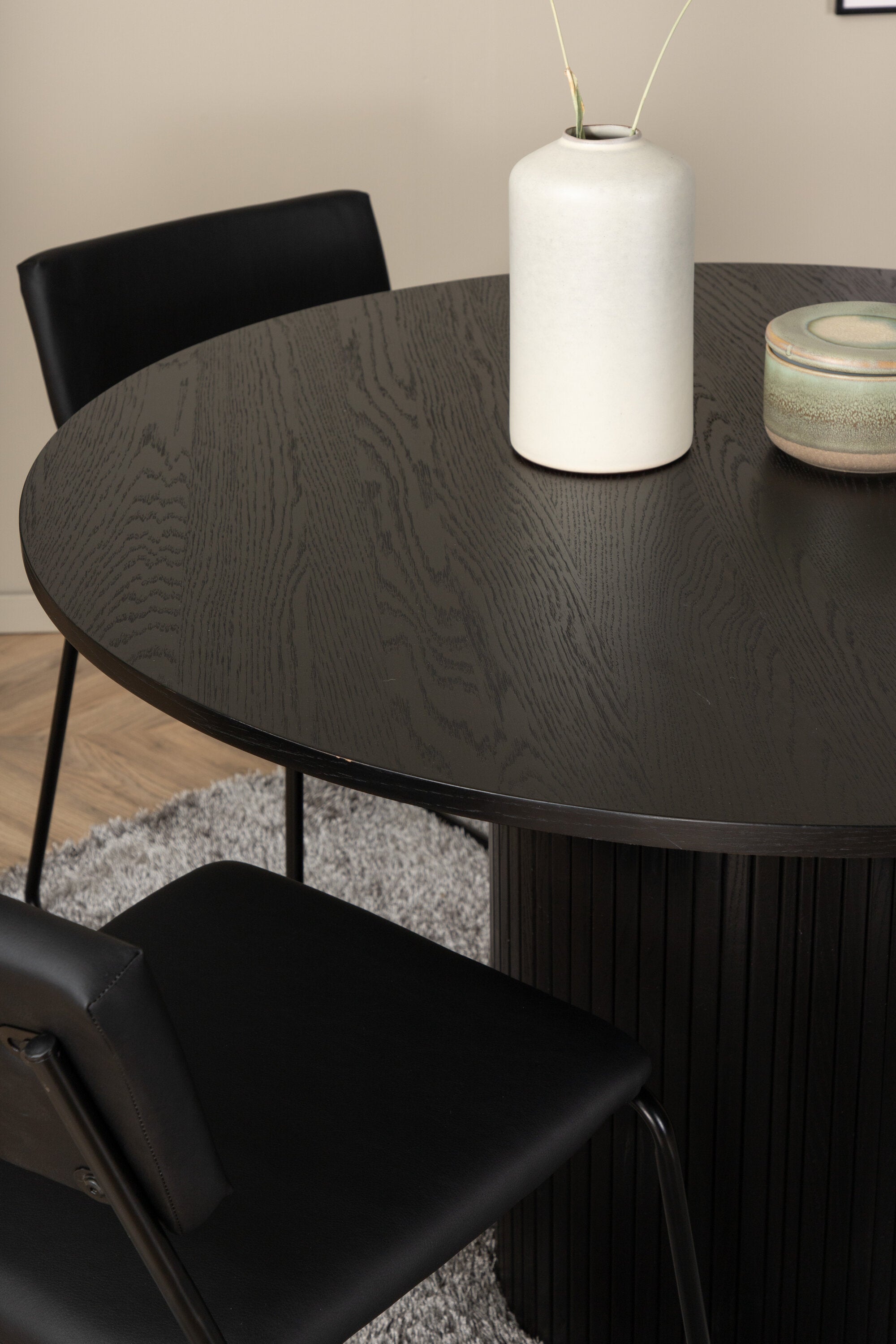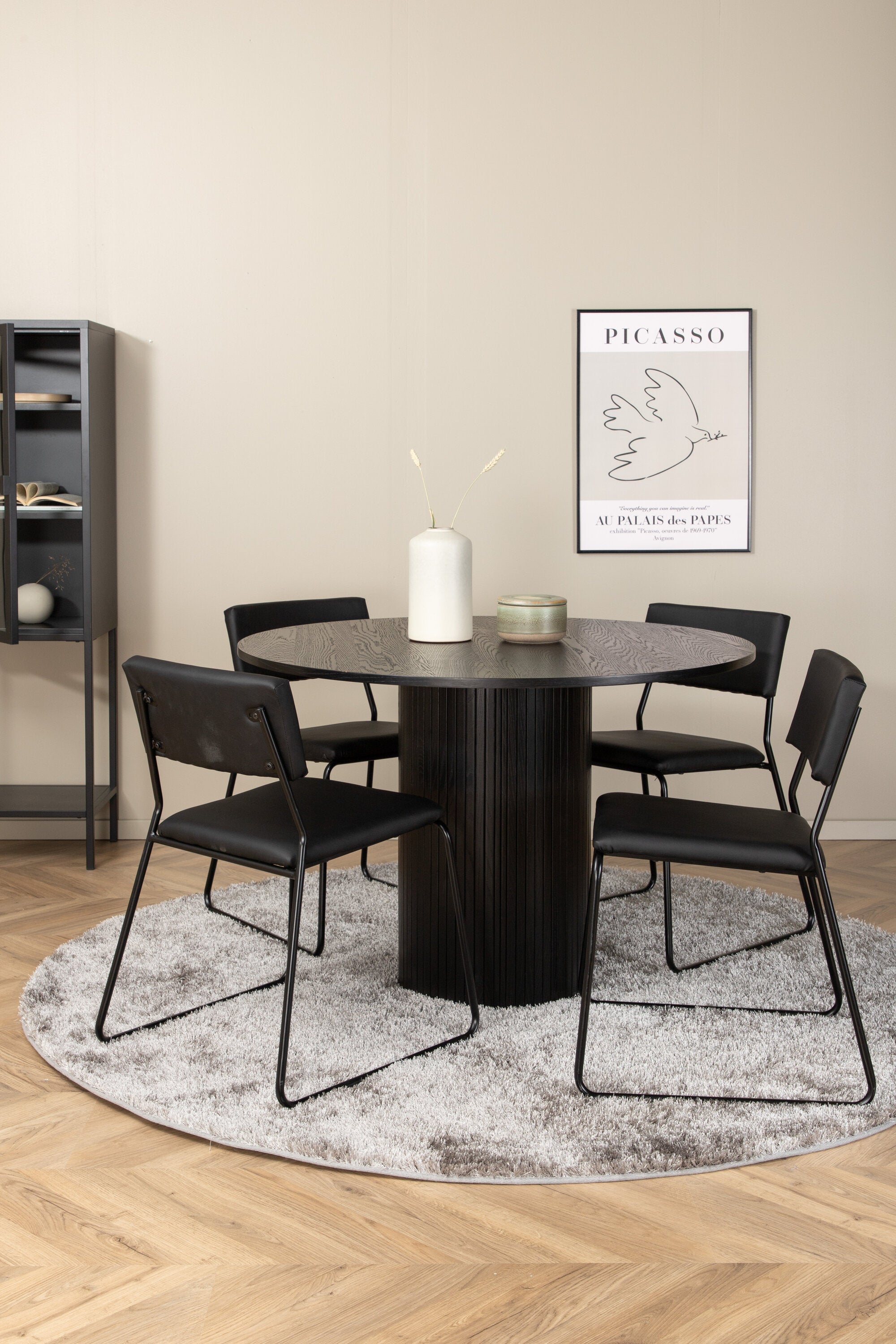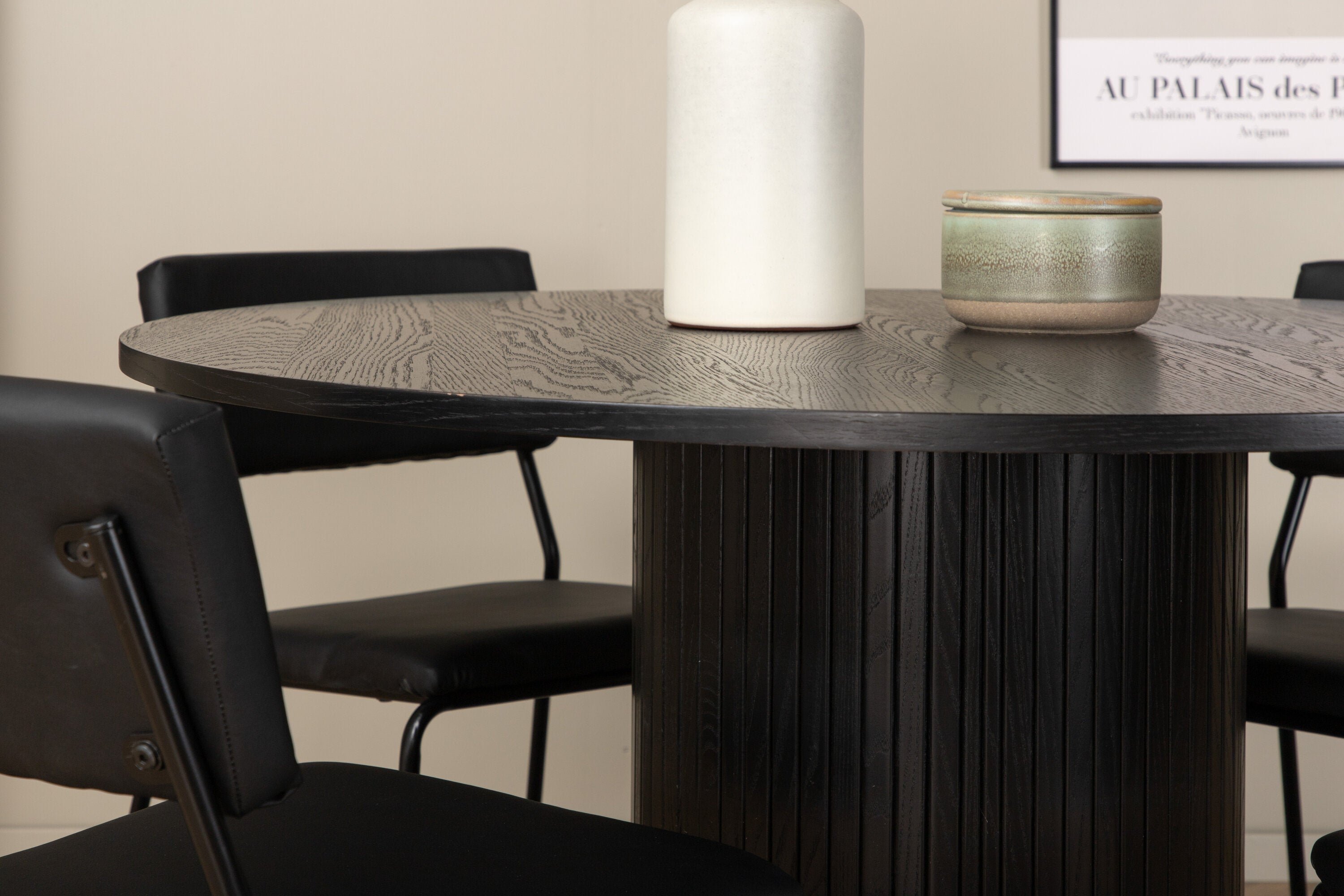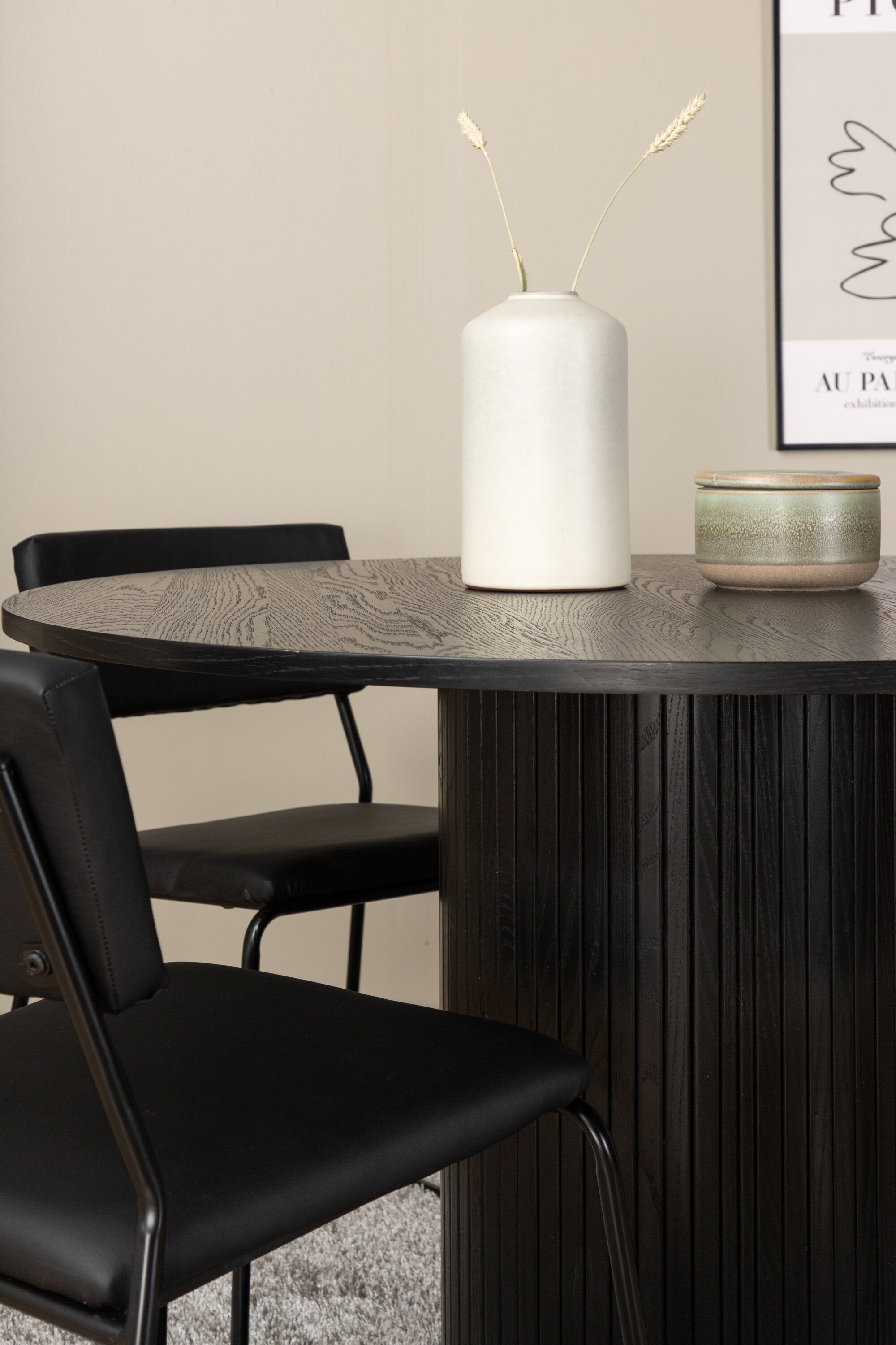 Dokonalá kombinace robustnosti a minimalismu! Kolem našeho kulatého jídelního stolu Bianca vytvoříte úžasnou komunitu, kde nikdo neriskuje, že se dostane na okraj. Deska stolu je vyrobena z MDF a má válcový rám v masivním provedení a žebrovaném provedení. Konzistentně černá barva je nadčasová i stylová a lze ji snadno sladit s jiným dekorem. Rozměry stolu: Průměr: 110 cm, Výška: 74 cm. V kombinaci se 4. z našich elegantních jídelních židlí Kenth v černé umělé kůži a podnoží ze železa. Rozměry židle: Výška: 76 cm, výška sedáku: 48,5 cm, šířka: 40 cm, hloubka: 52 cm.