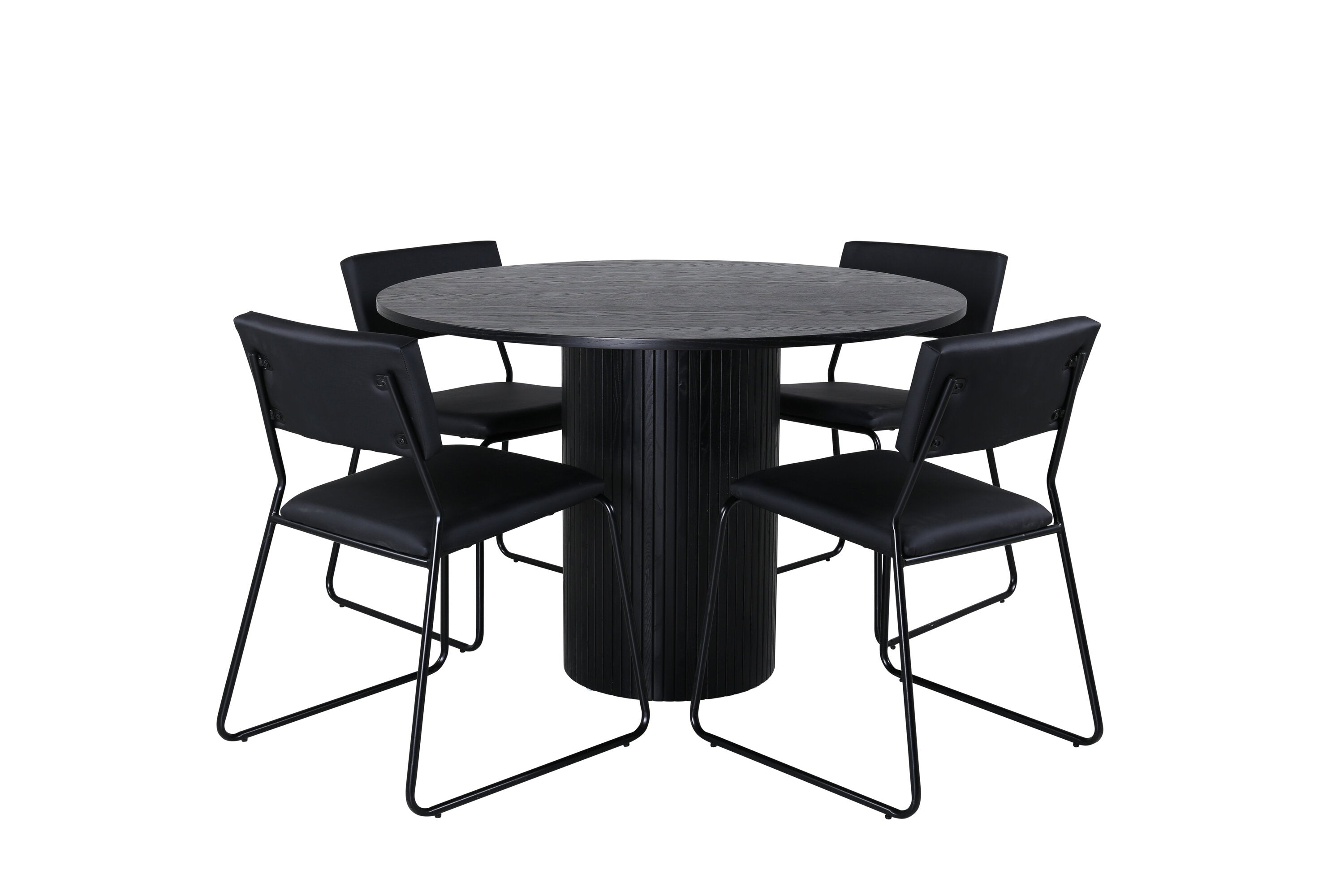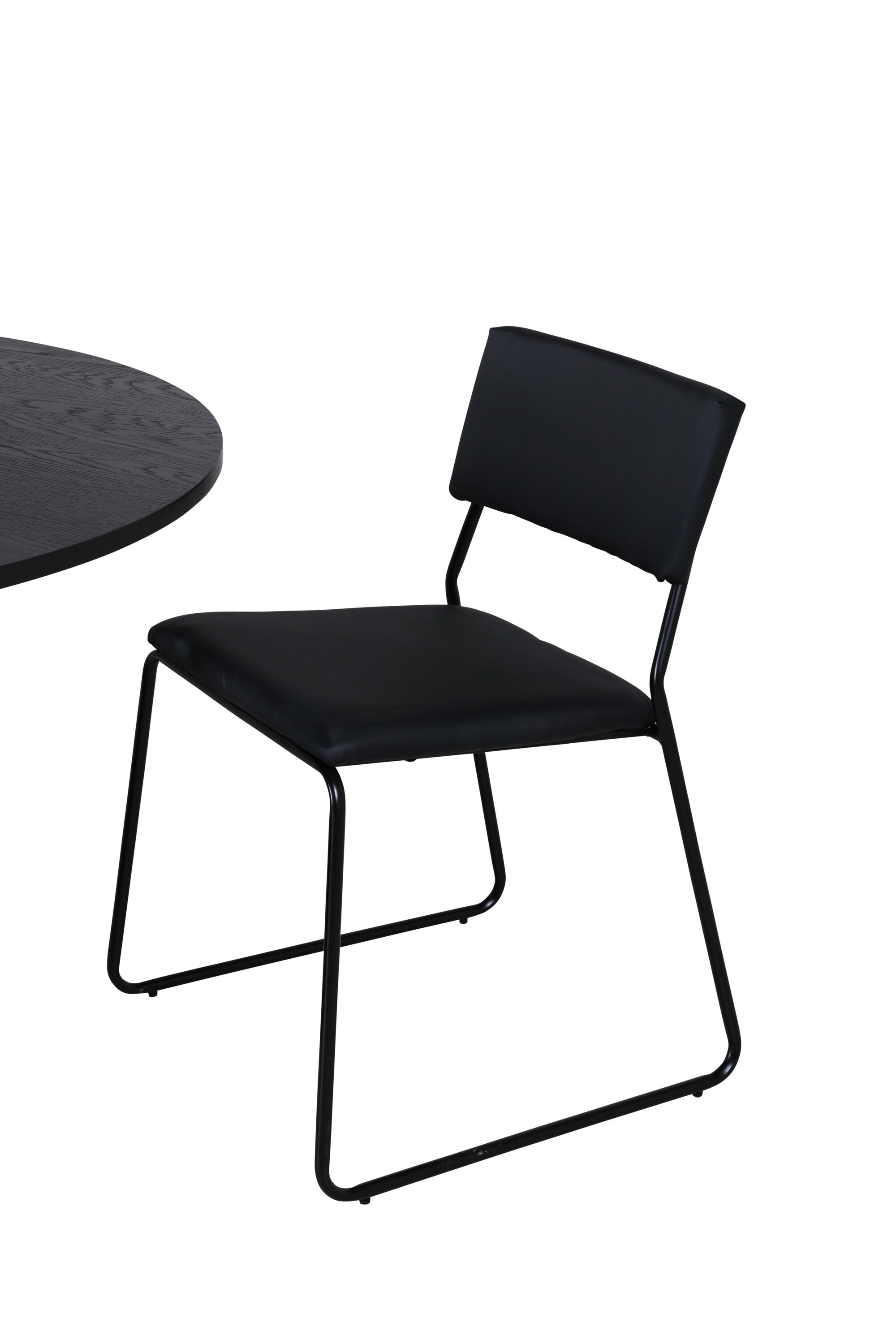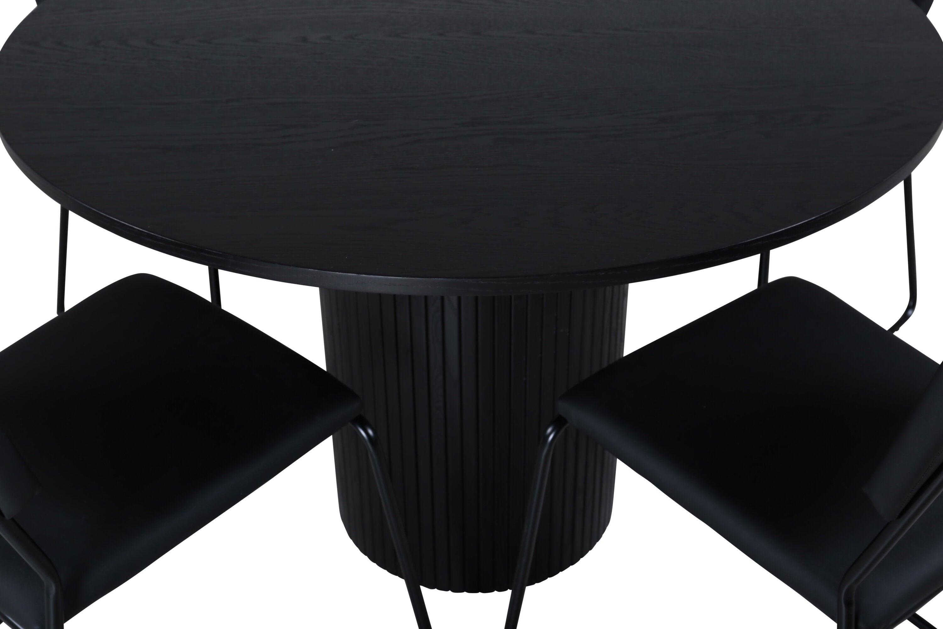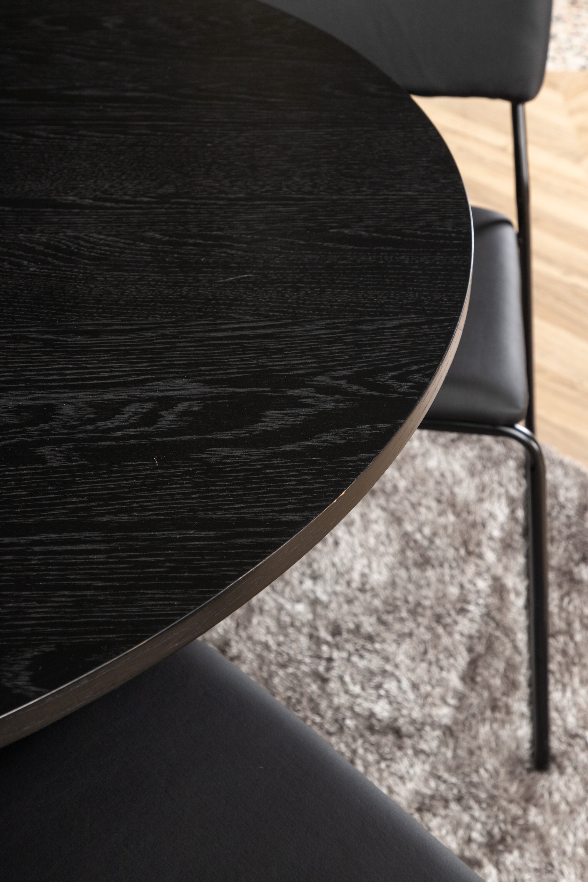 Bianca kulatý jídelní stůl , černá černá dýha + židle Kenth , černá černá PU_4
