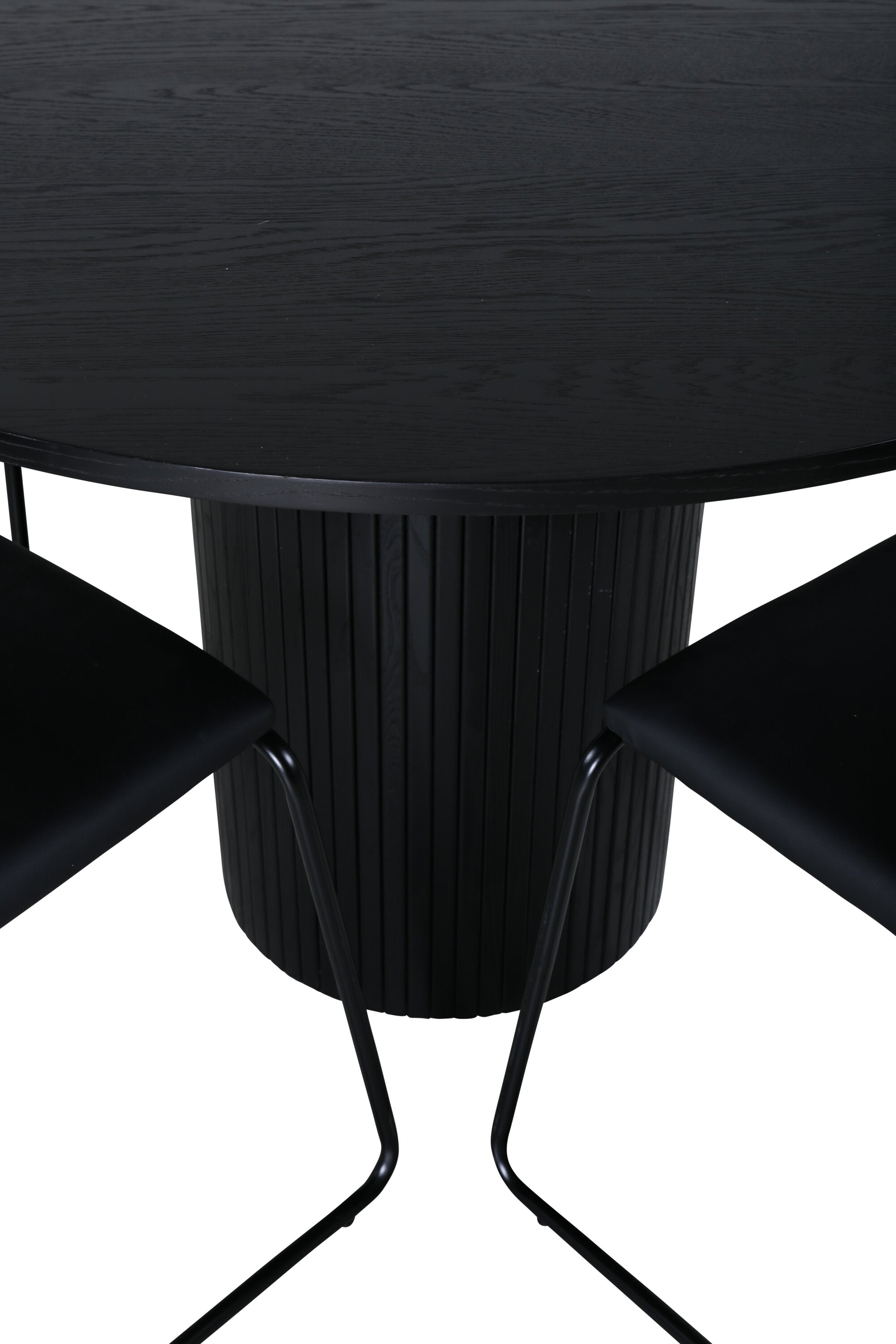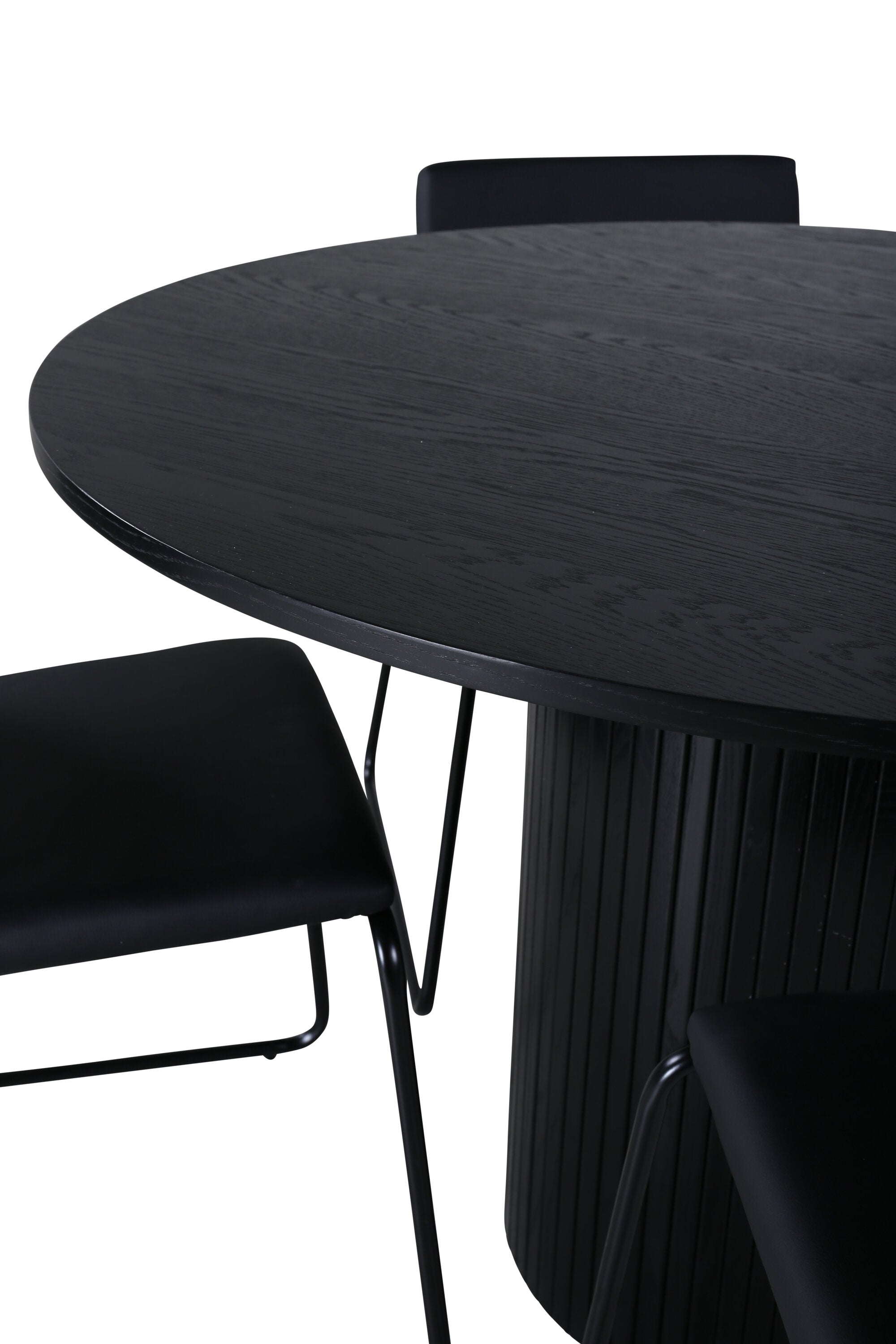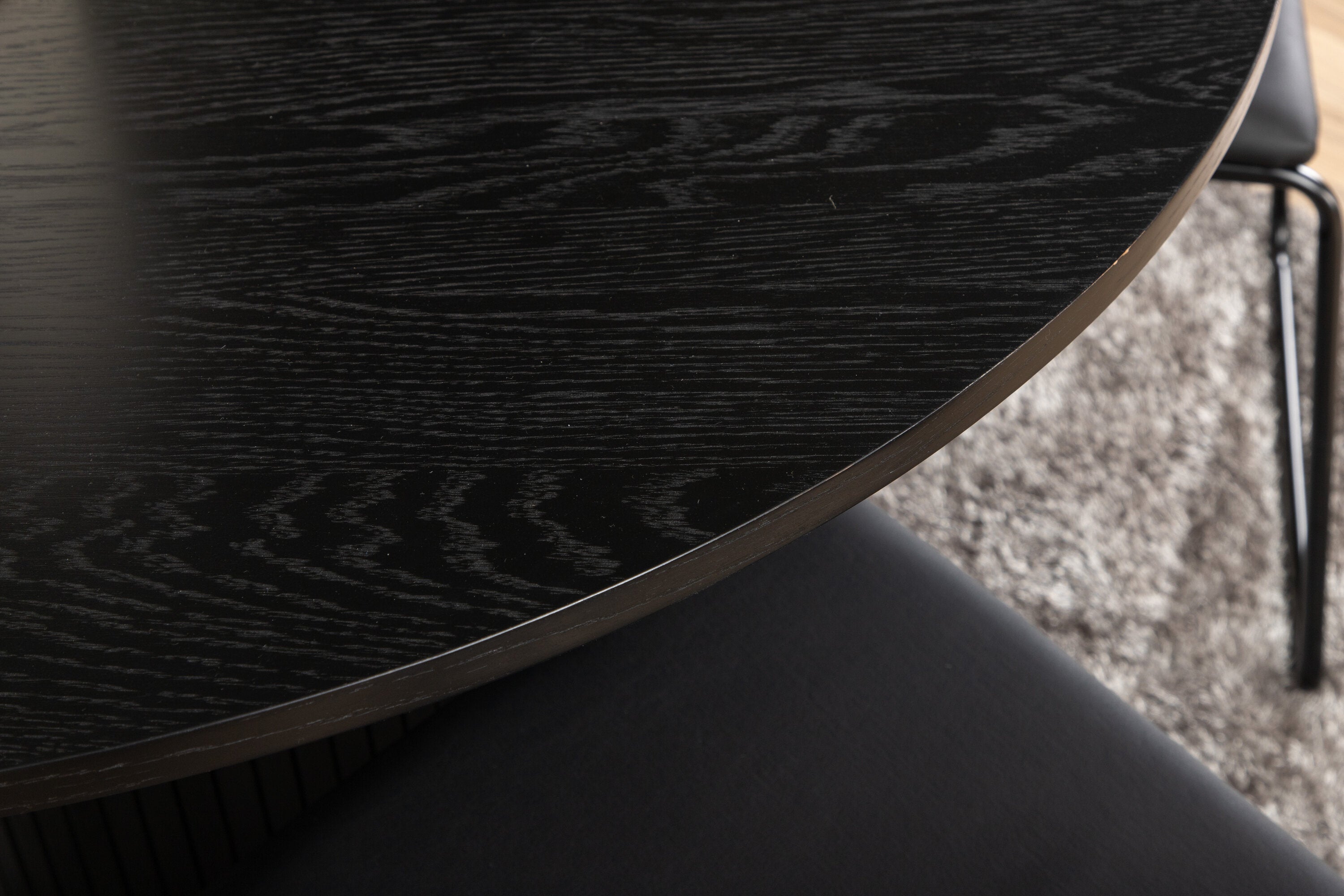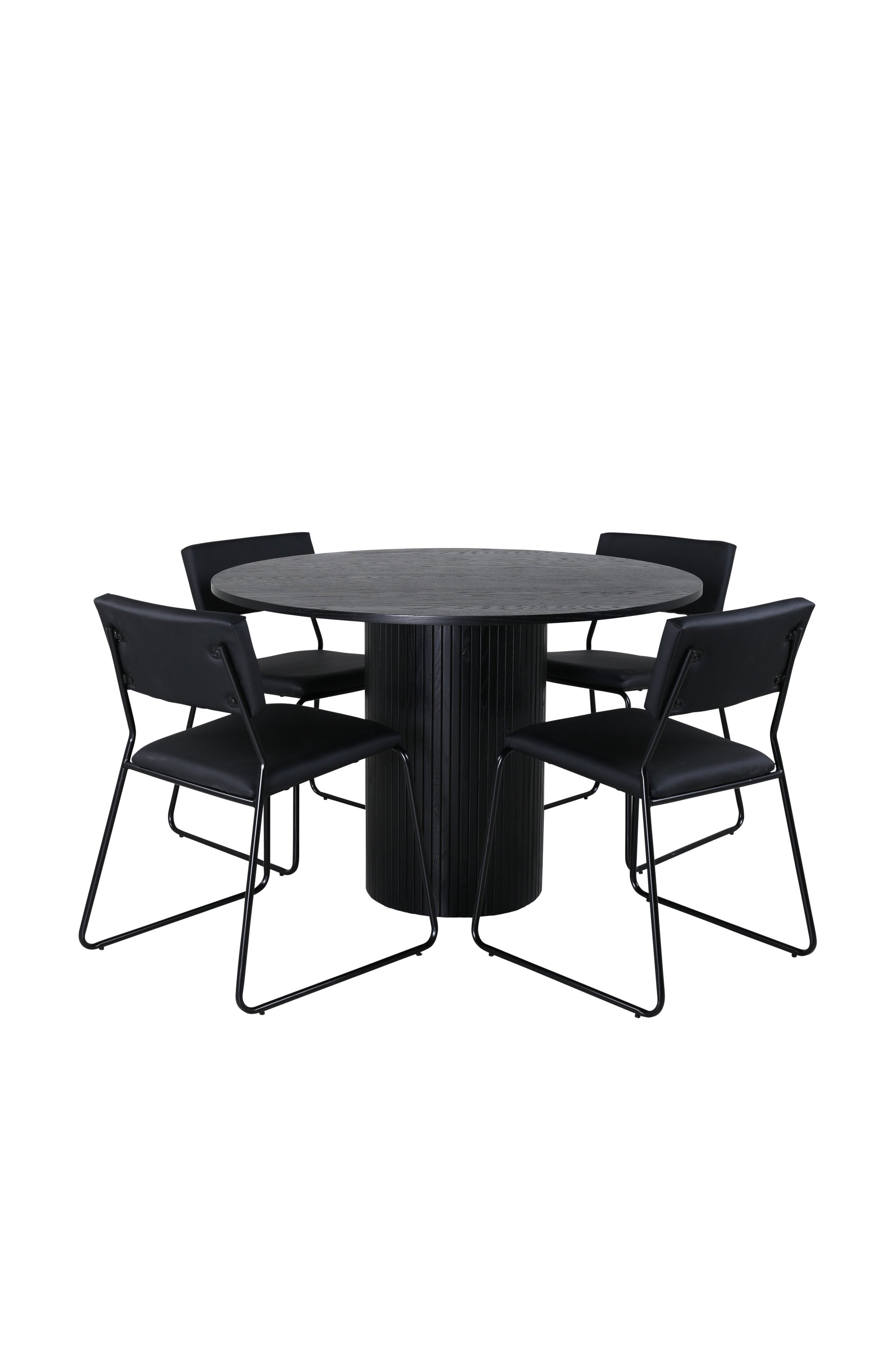 Bianca kulatý jídelní stůl , černá černá dýha + židle Kenth , černá černá PU_4