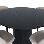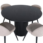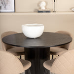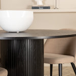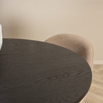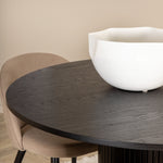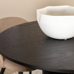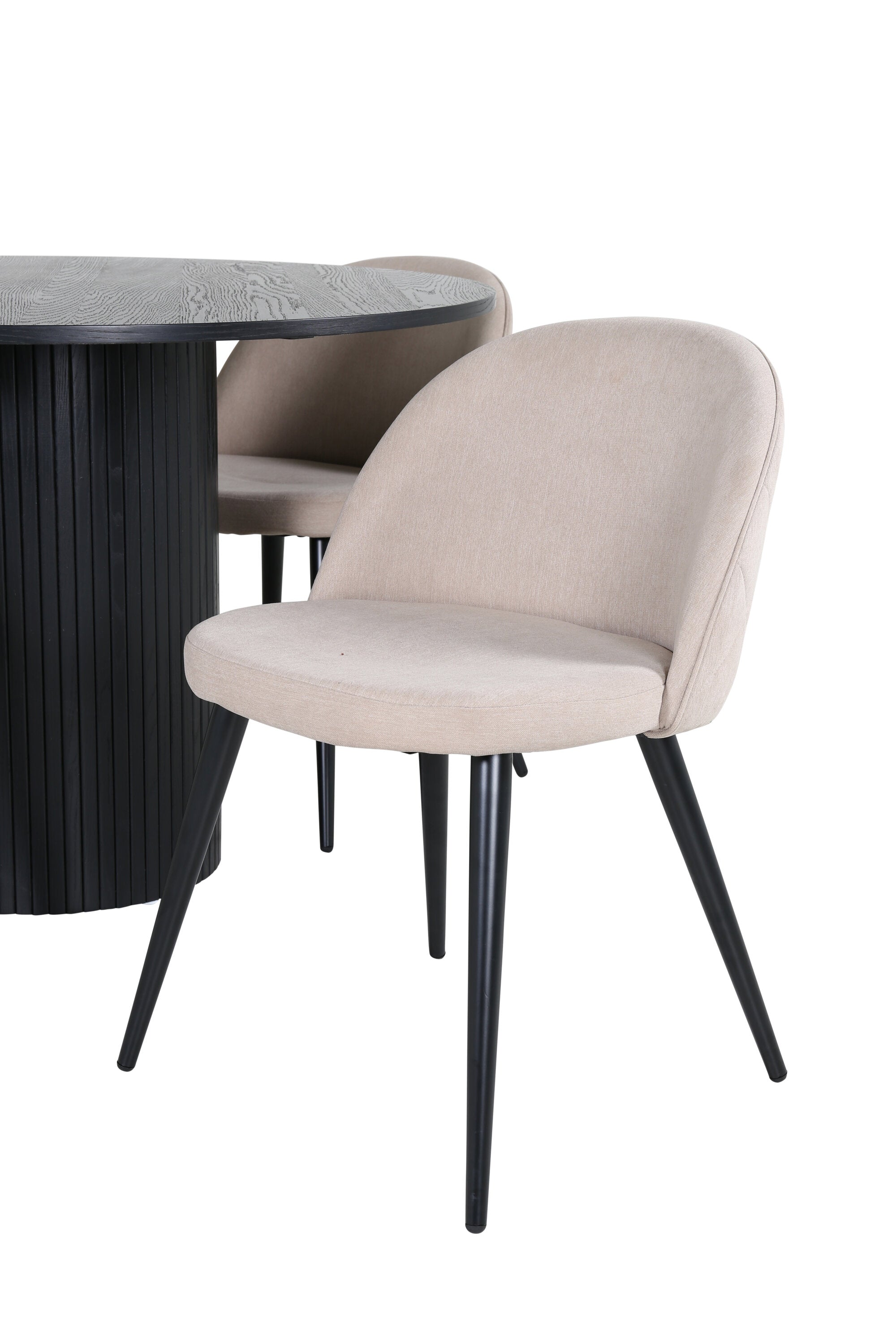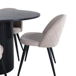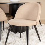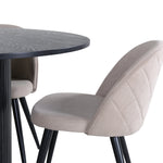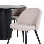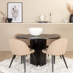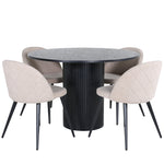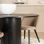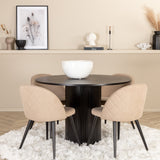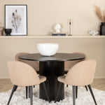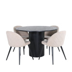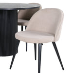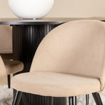 Bianca kulatý jídelní stůl - černá / černá dýha + židle se sametovými stehy - černá / béžová látka (polyesterové prádlo)_4