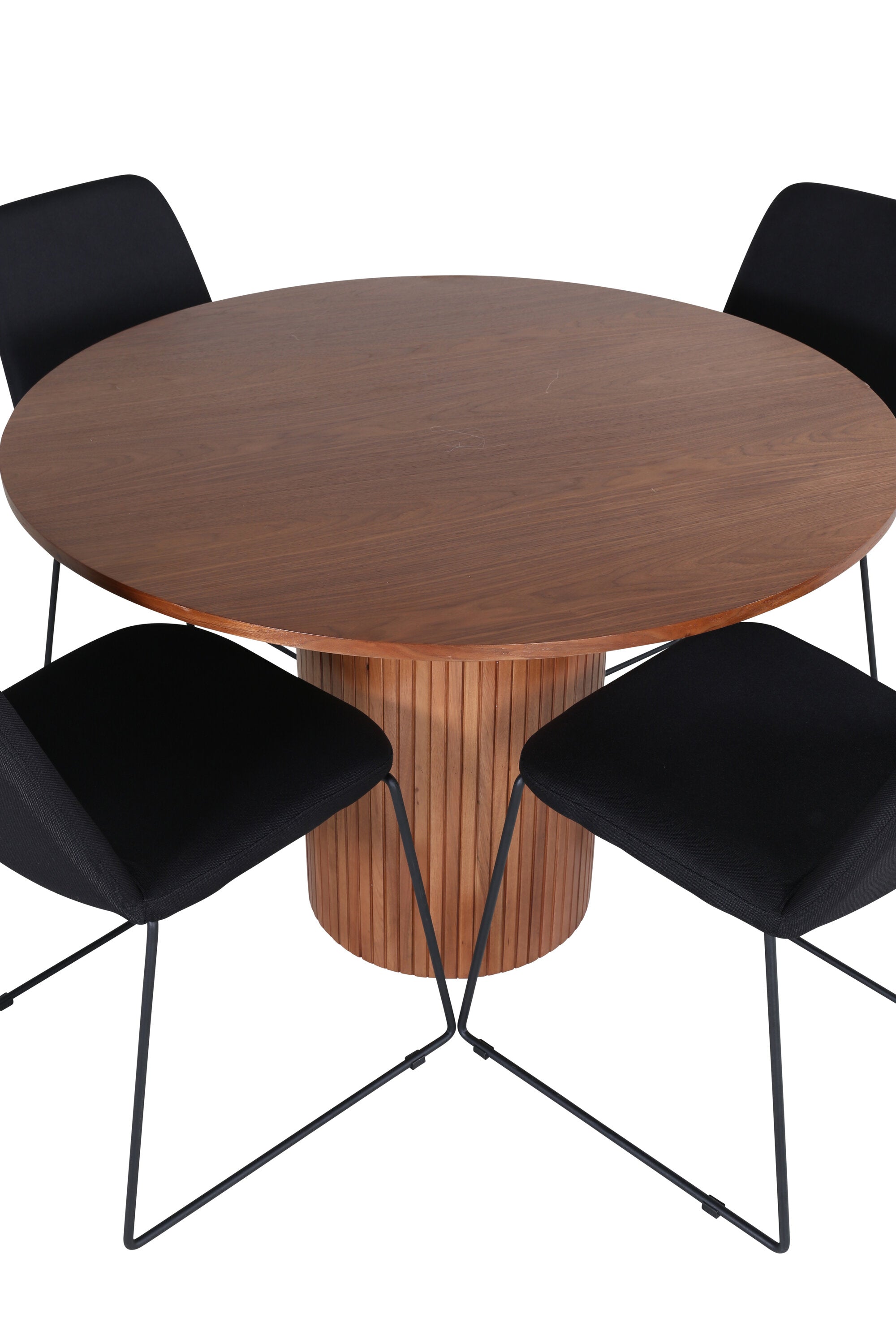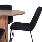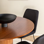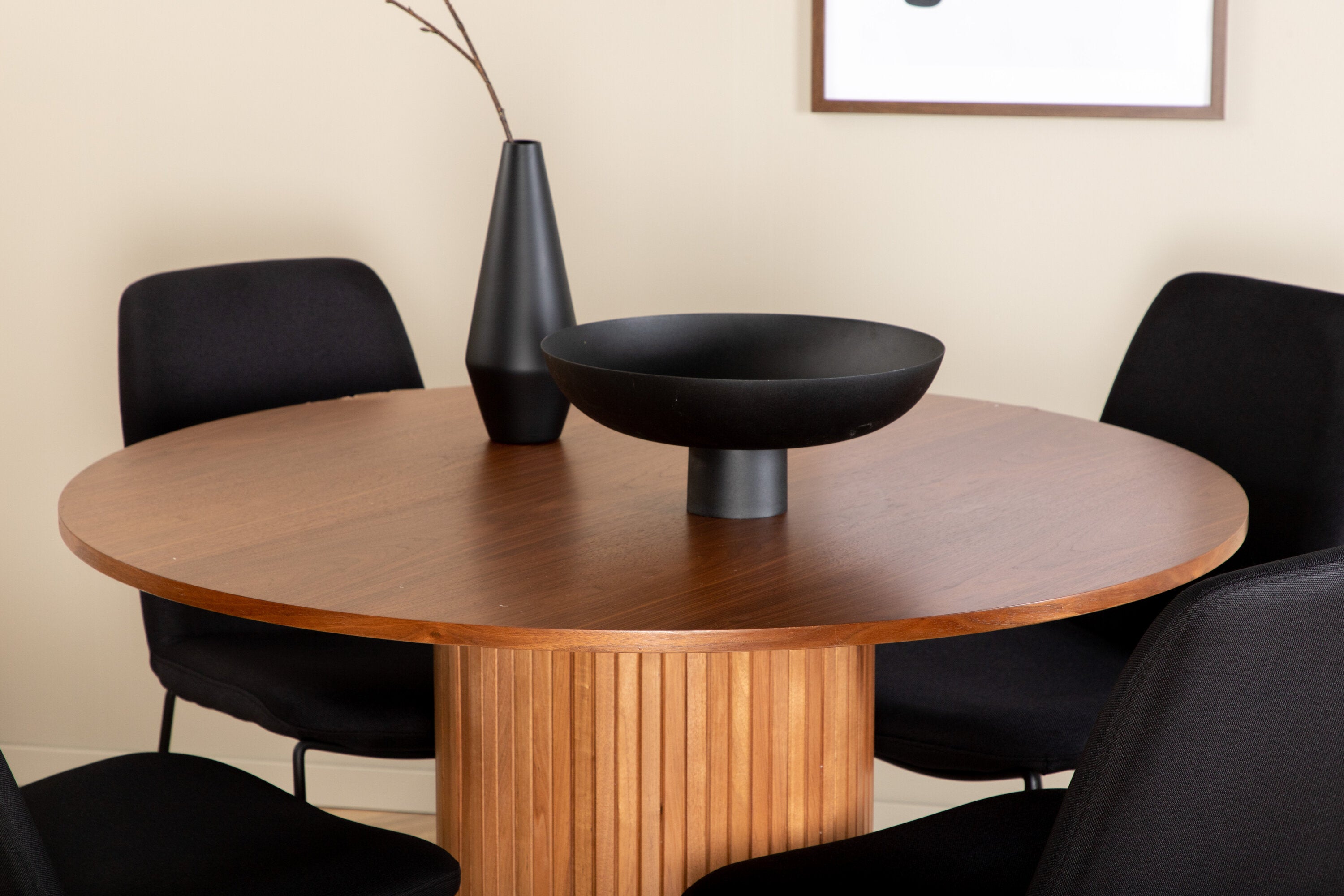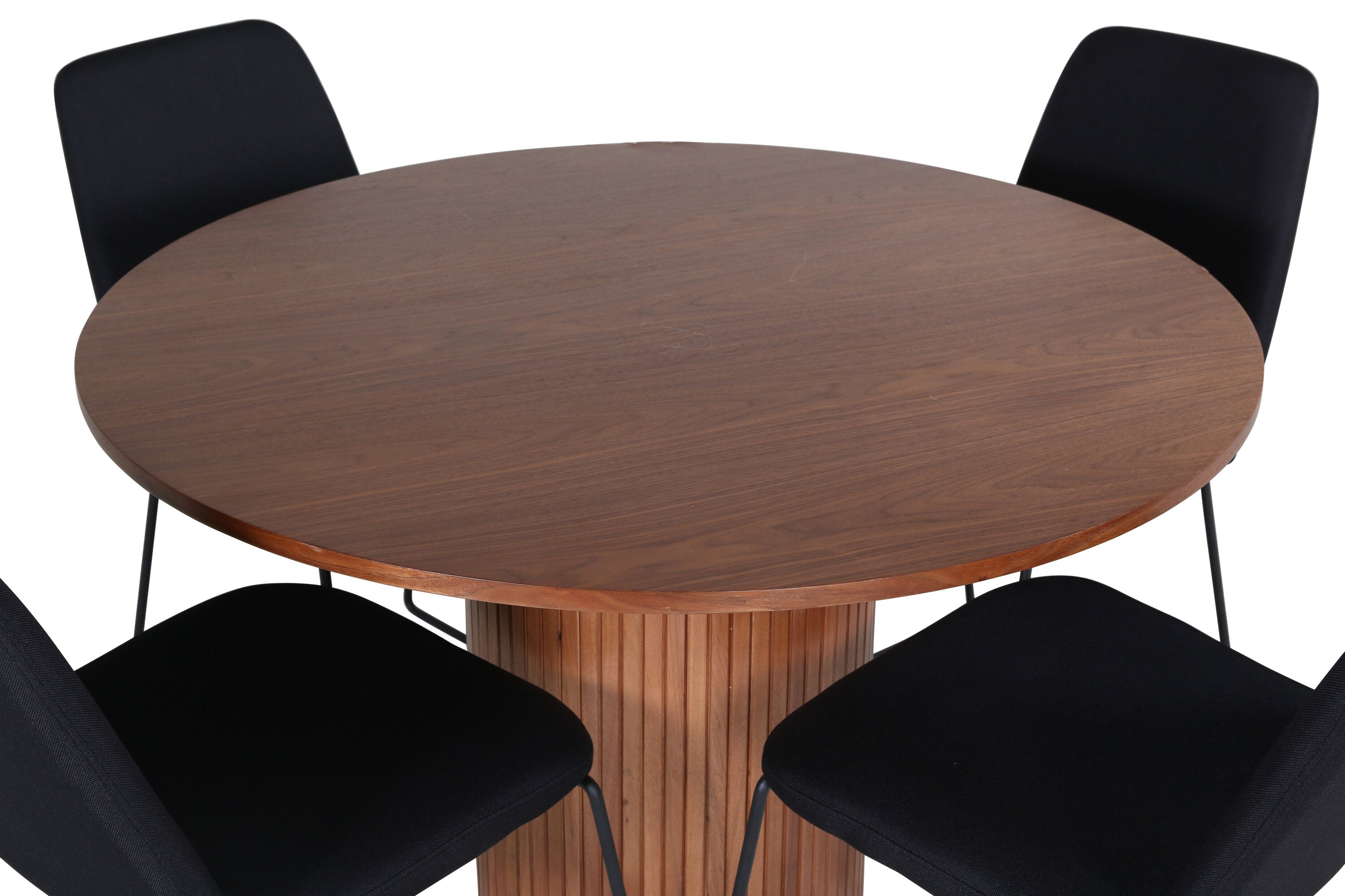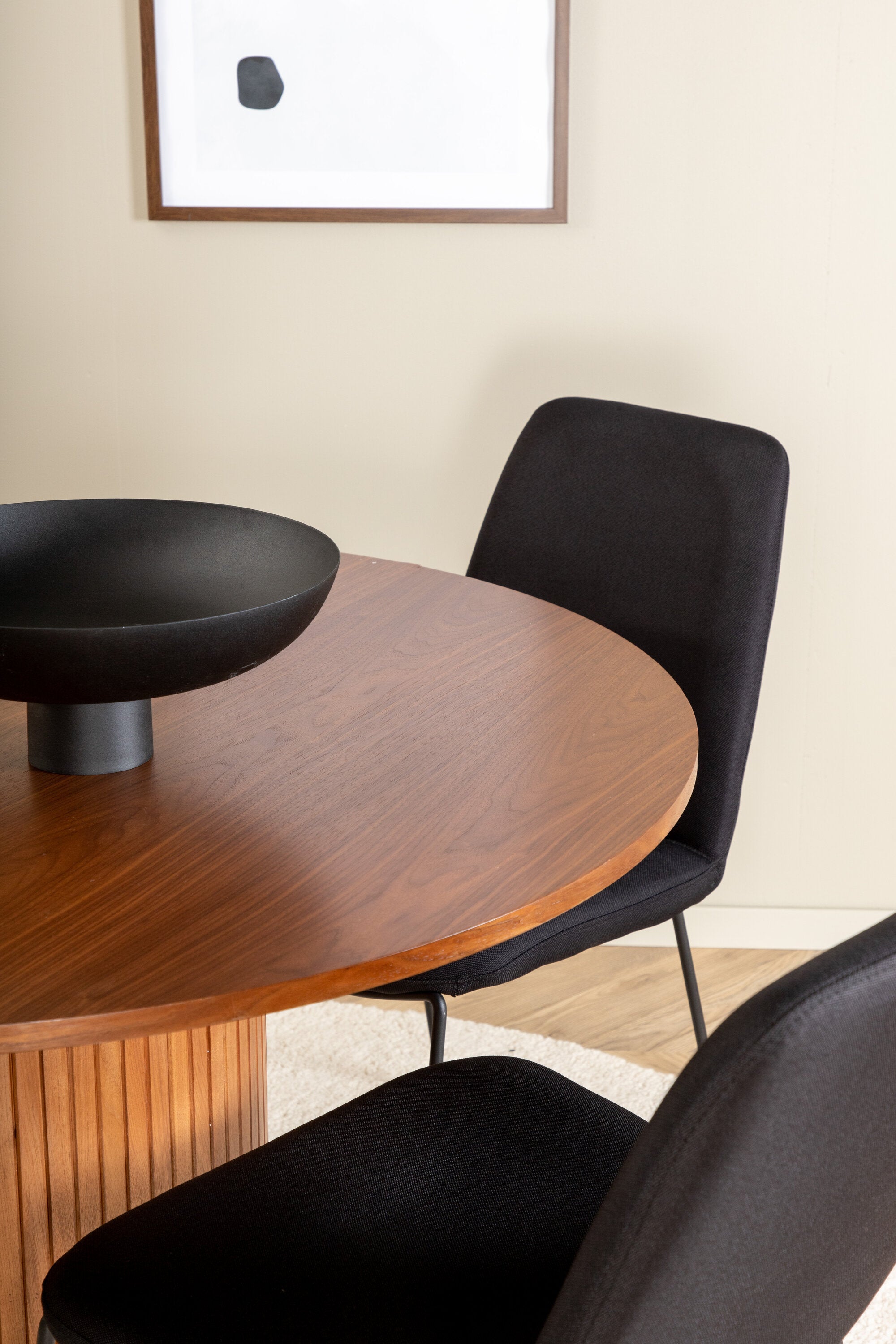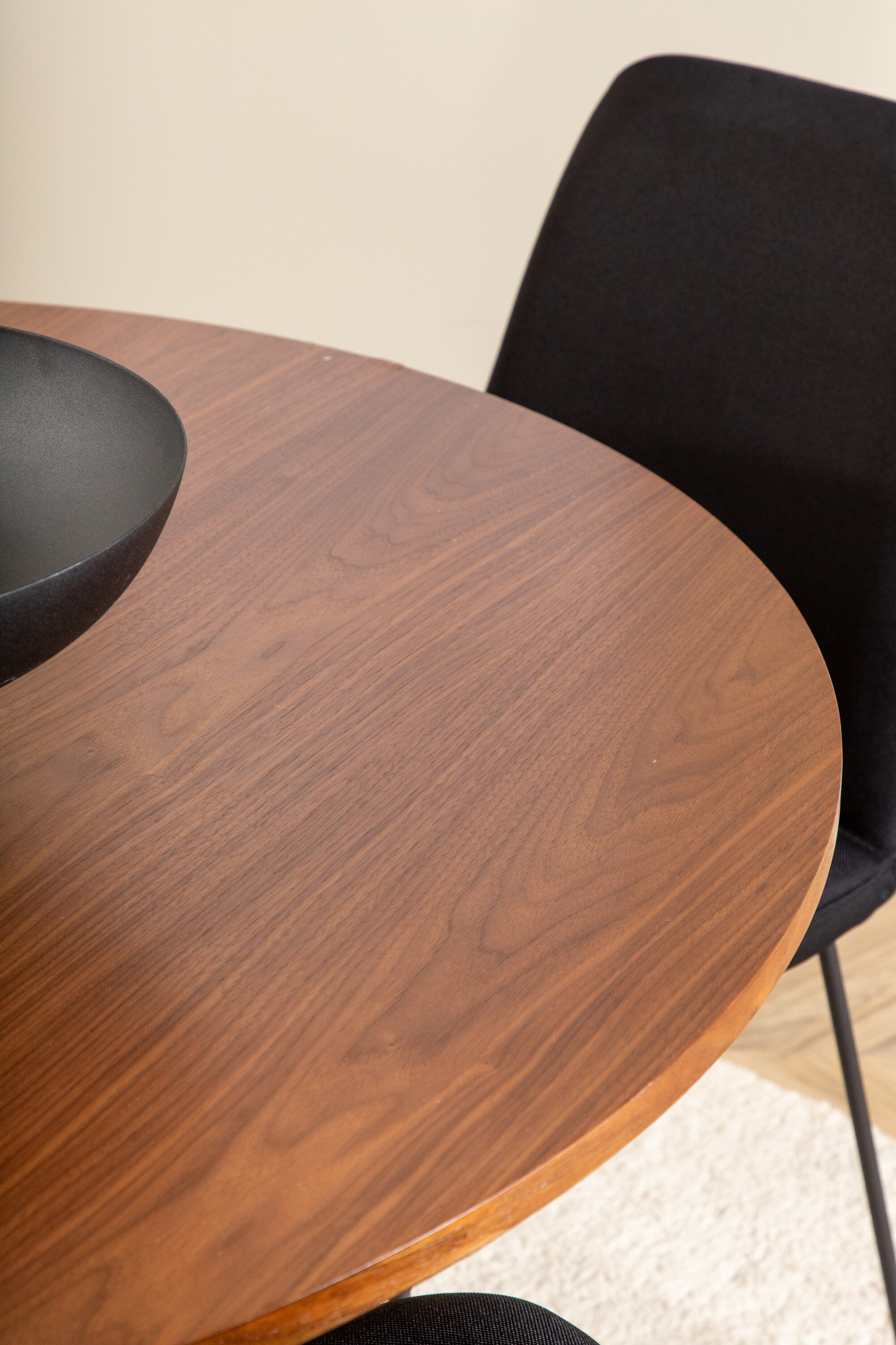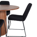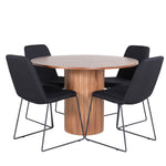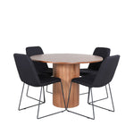 Bianca kulatý jídelní stůl – ořech/černá dýha+muce jídelní židle – černé nohy – černá látka_4