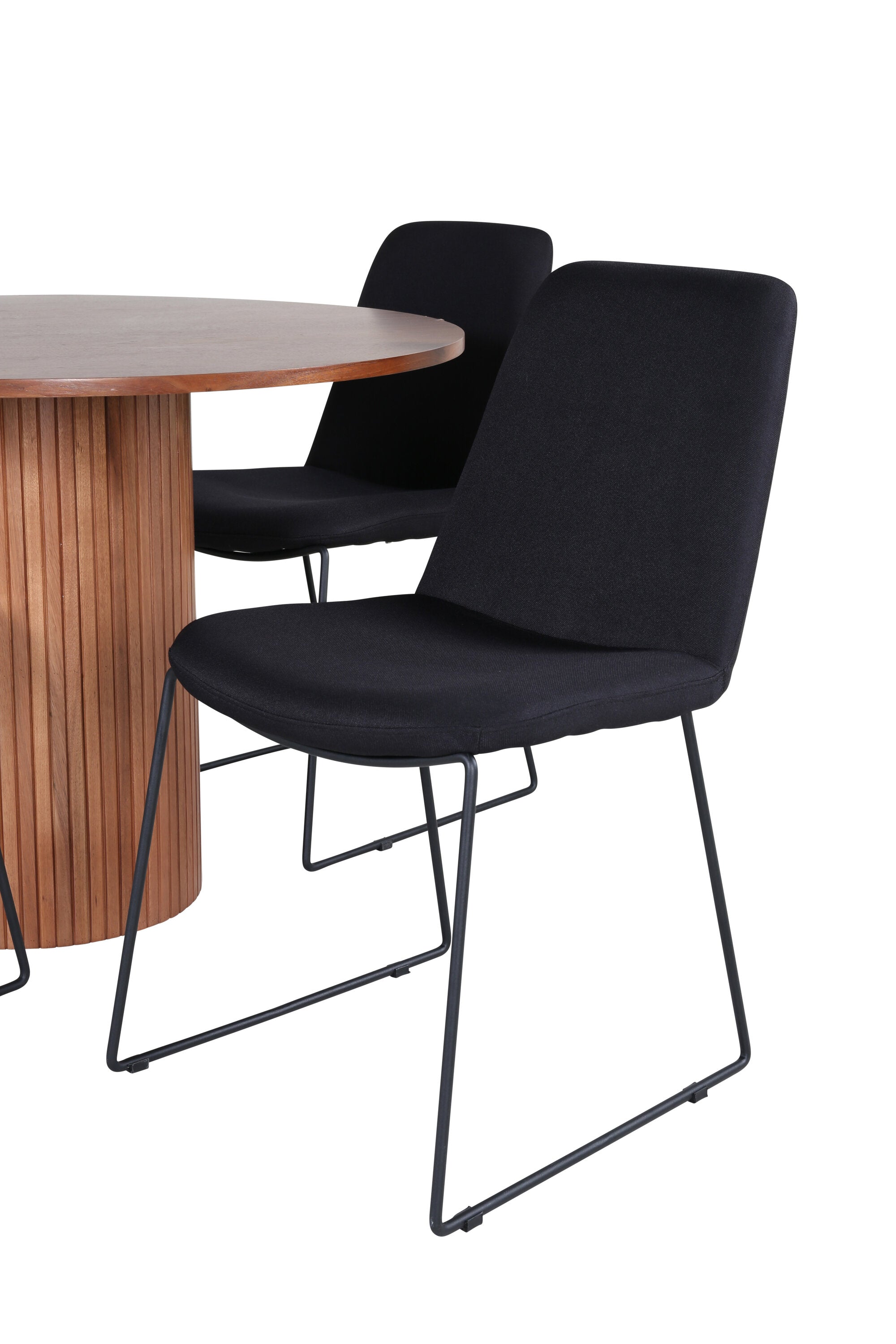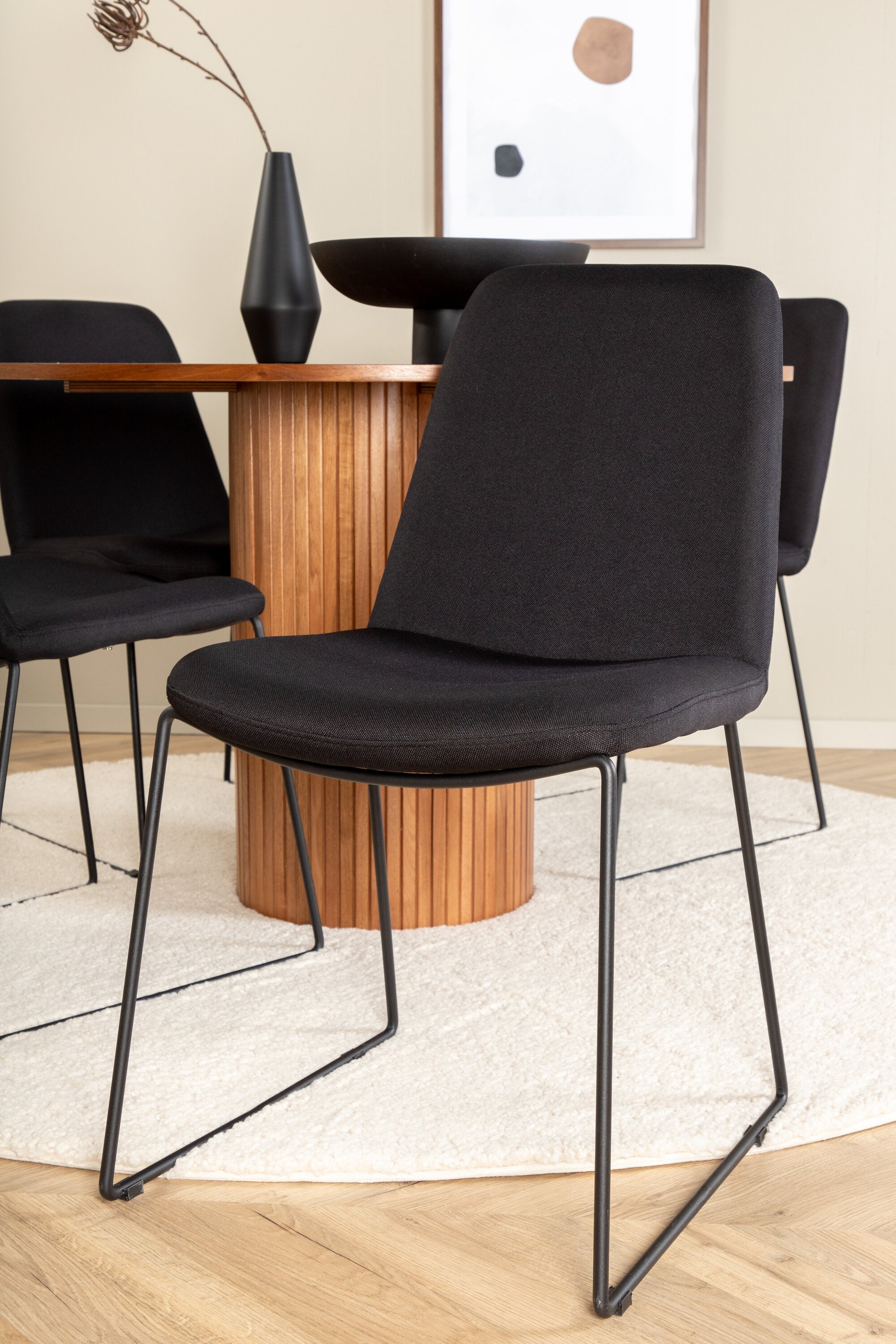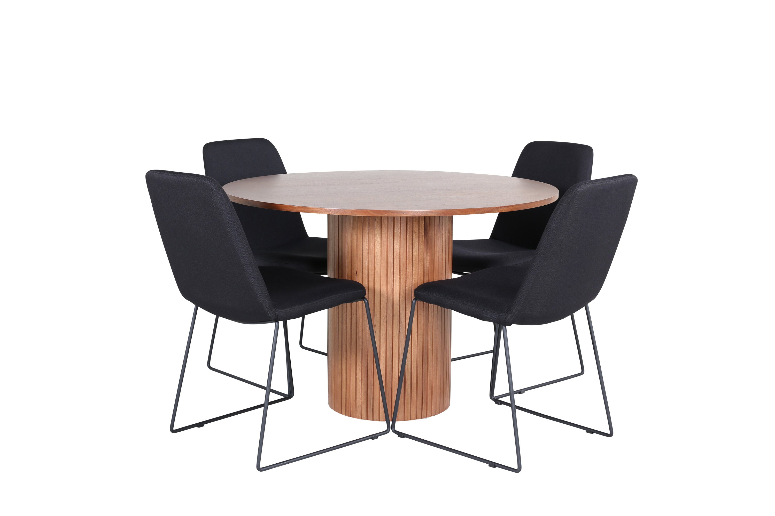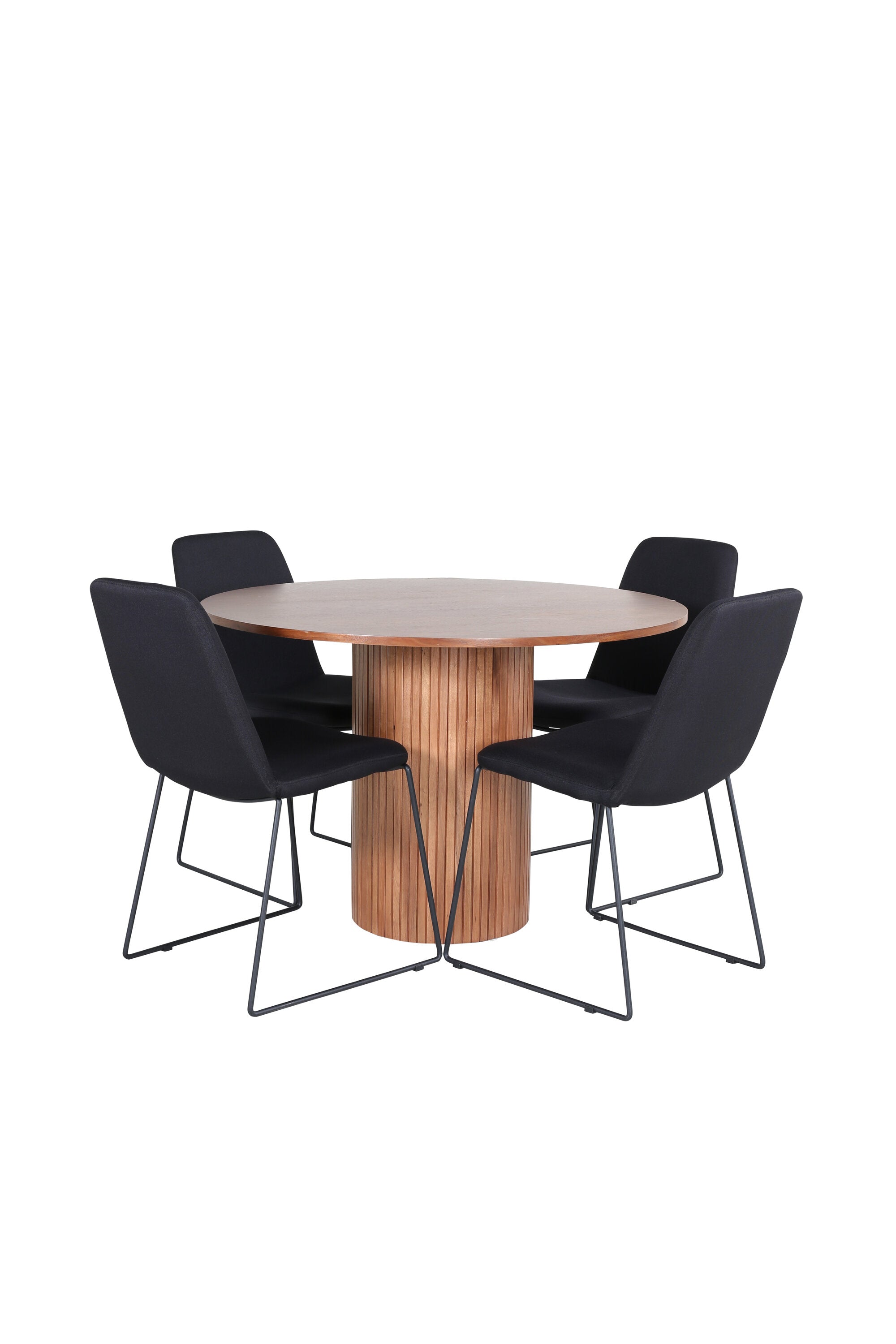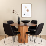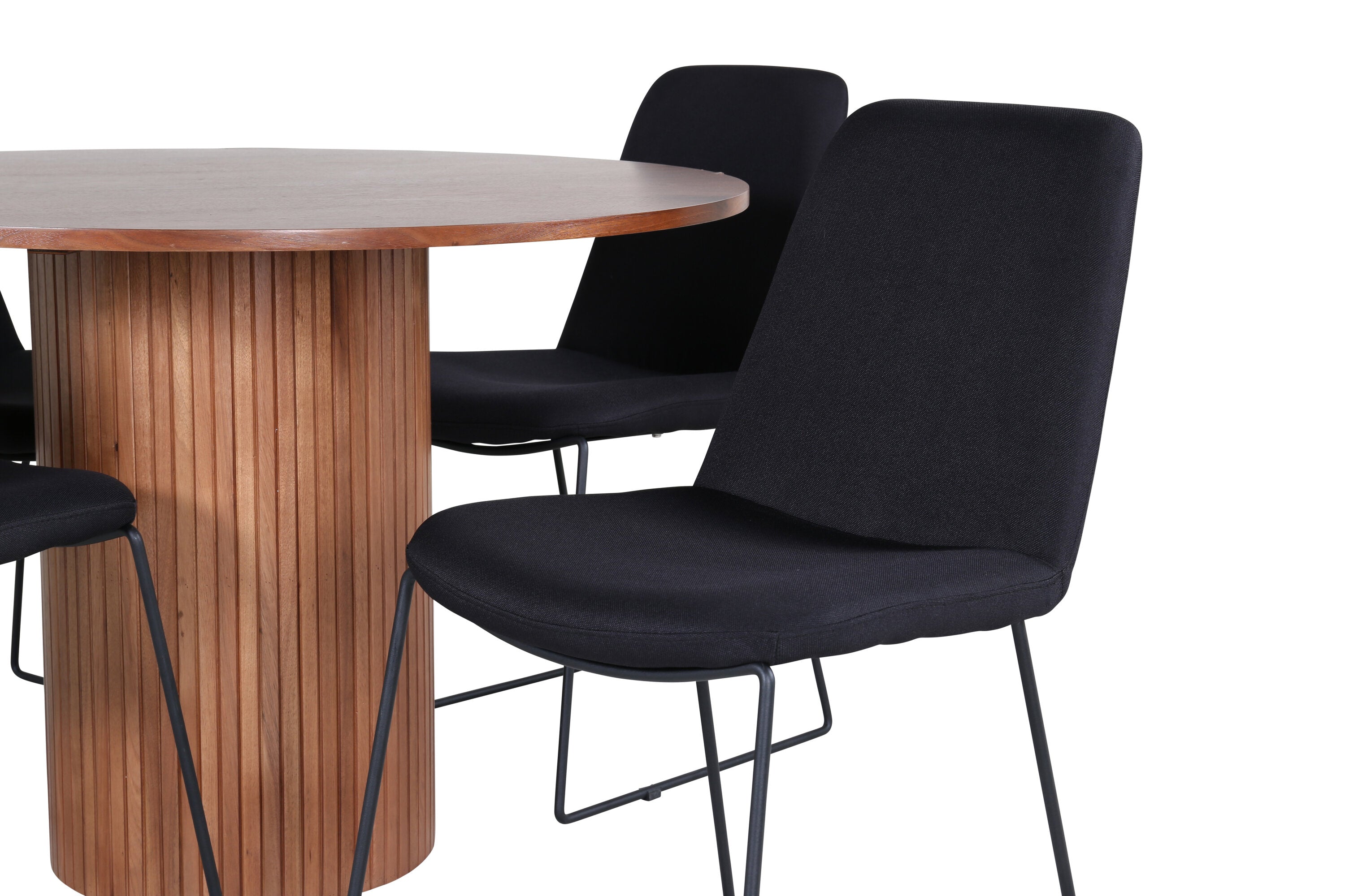 Bianca kulatý jídelní stůl – ořech/černá dýha+muce jídelní židle – černé nohy – černá látka_4