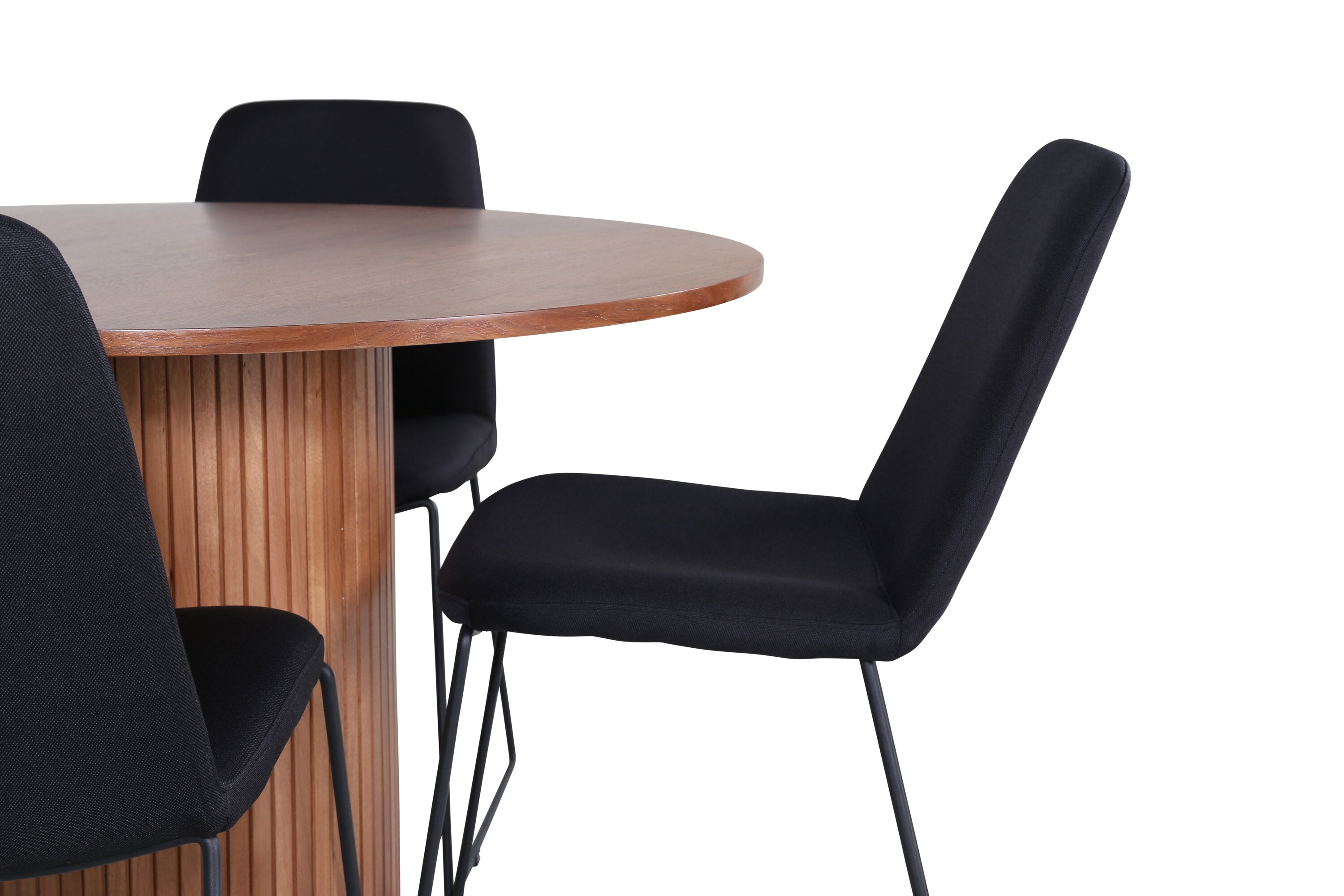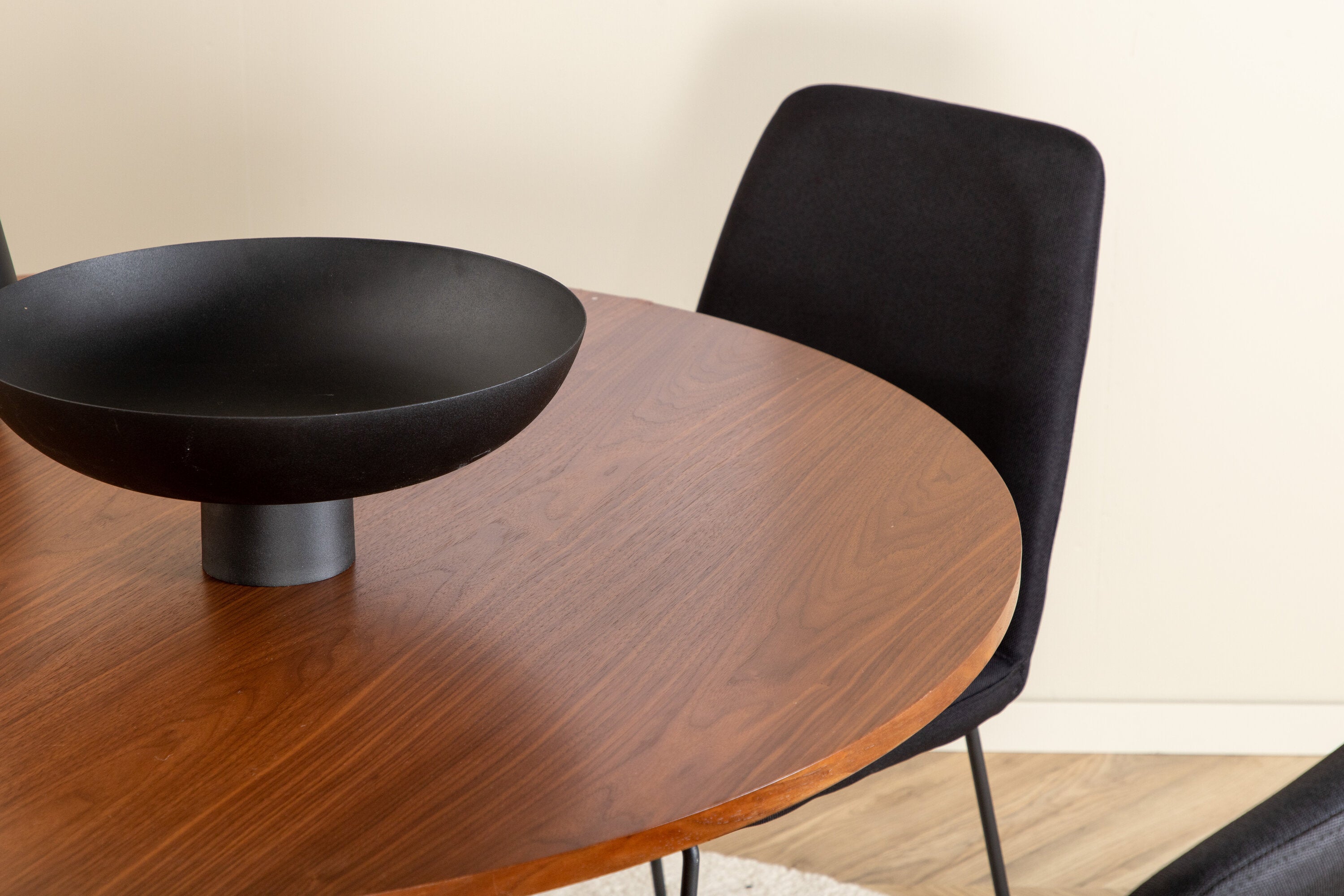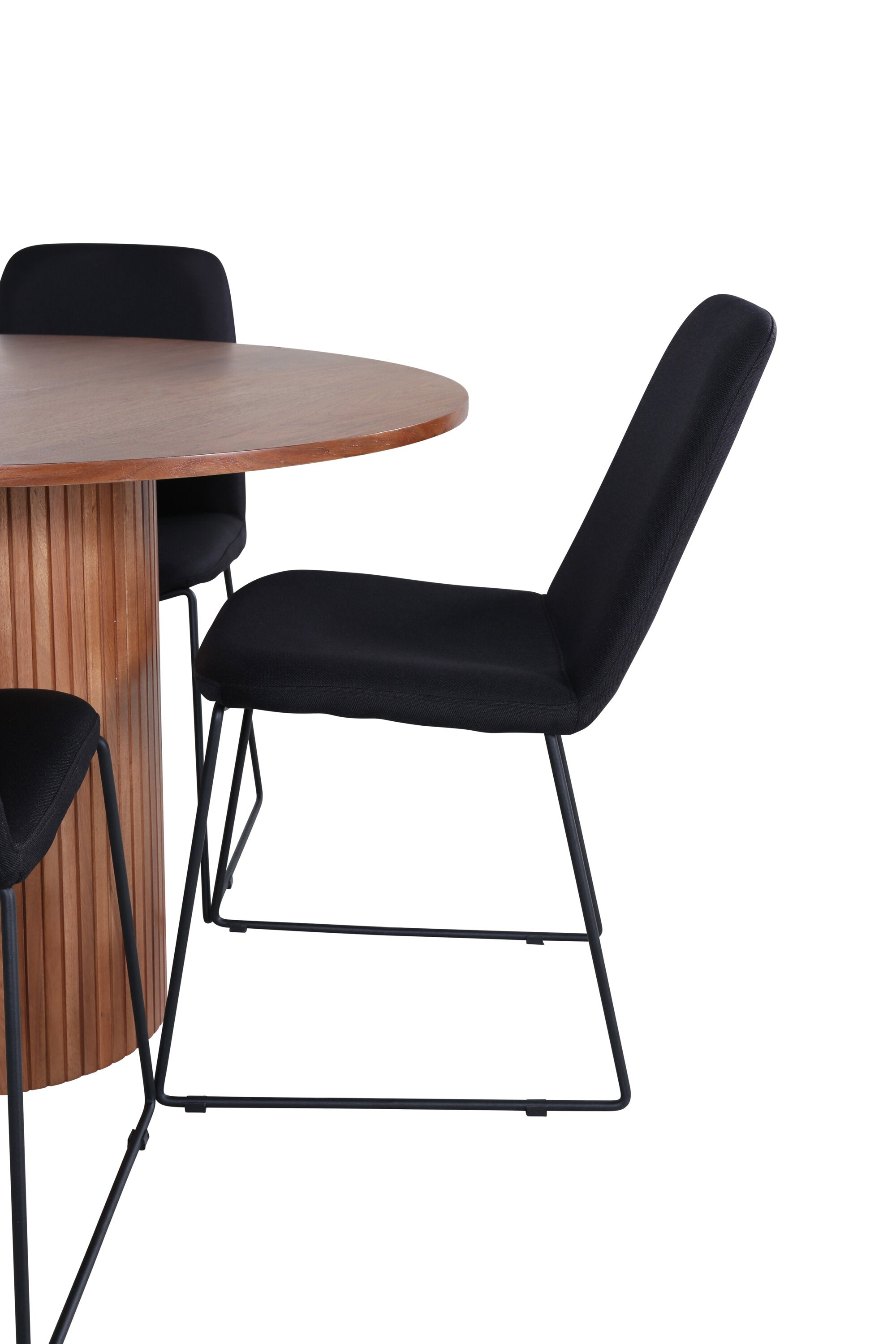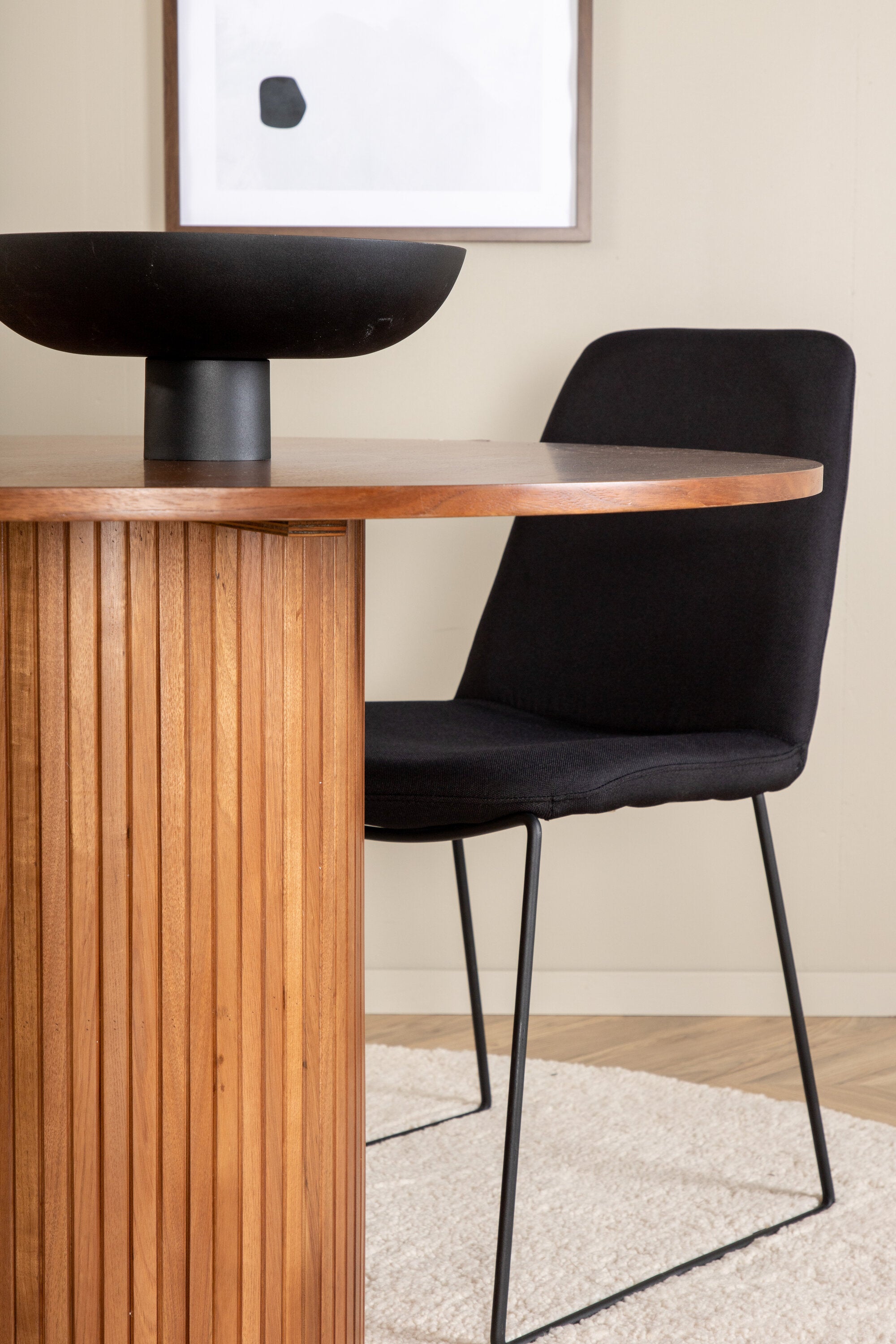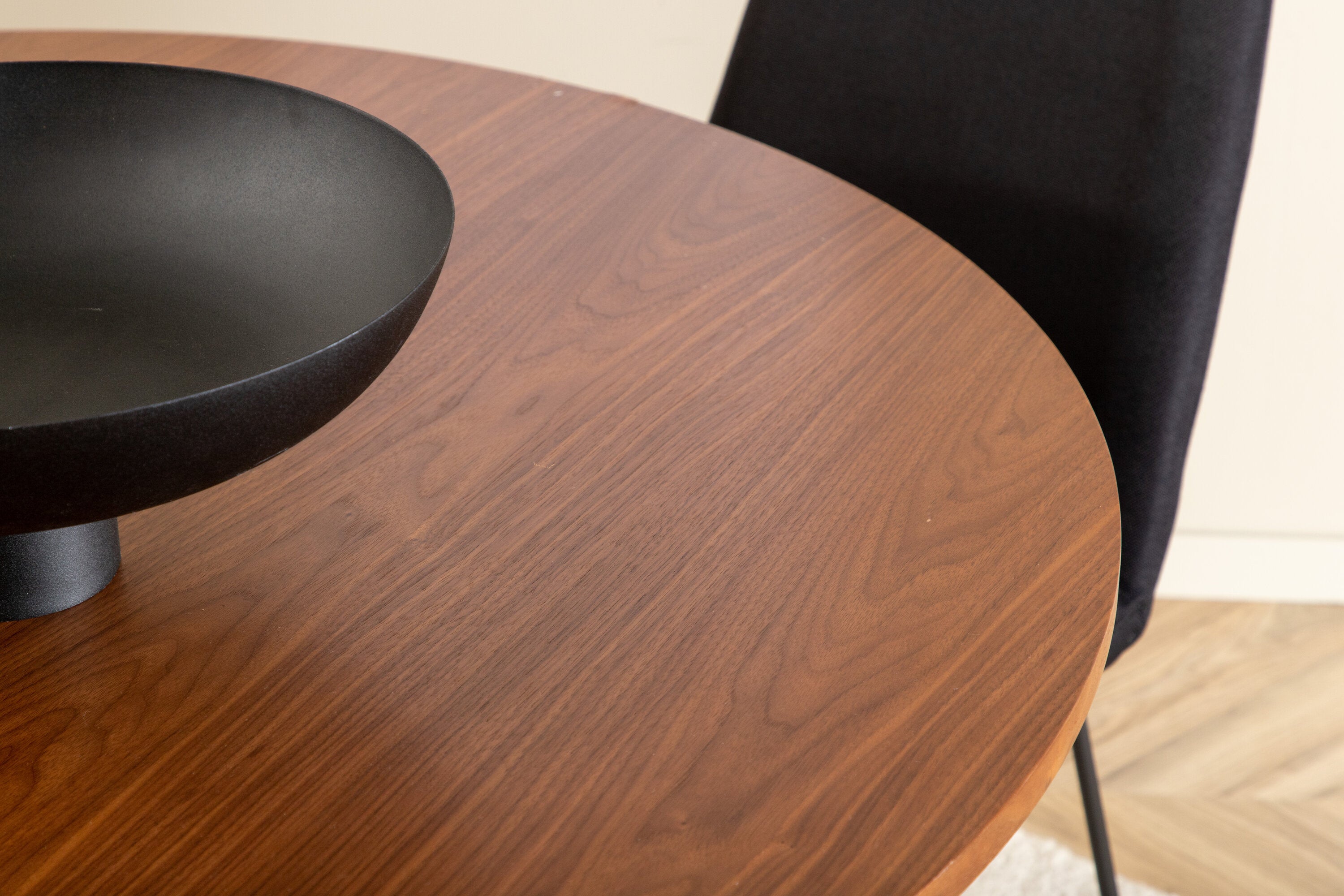 Bianca kulatý jídelní stůl – ořech/černá dýha+muce jídelní židle – černé nohy – černá látka_4