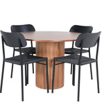 Bianca kulatý jídelní stůl - ořech / ořechová dýha + jídelní židle Polly - černá / černá _4