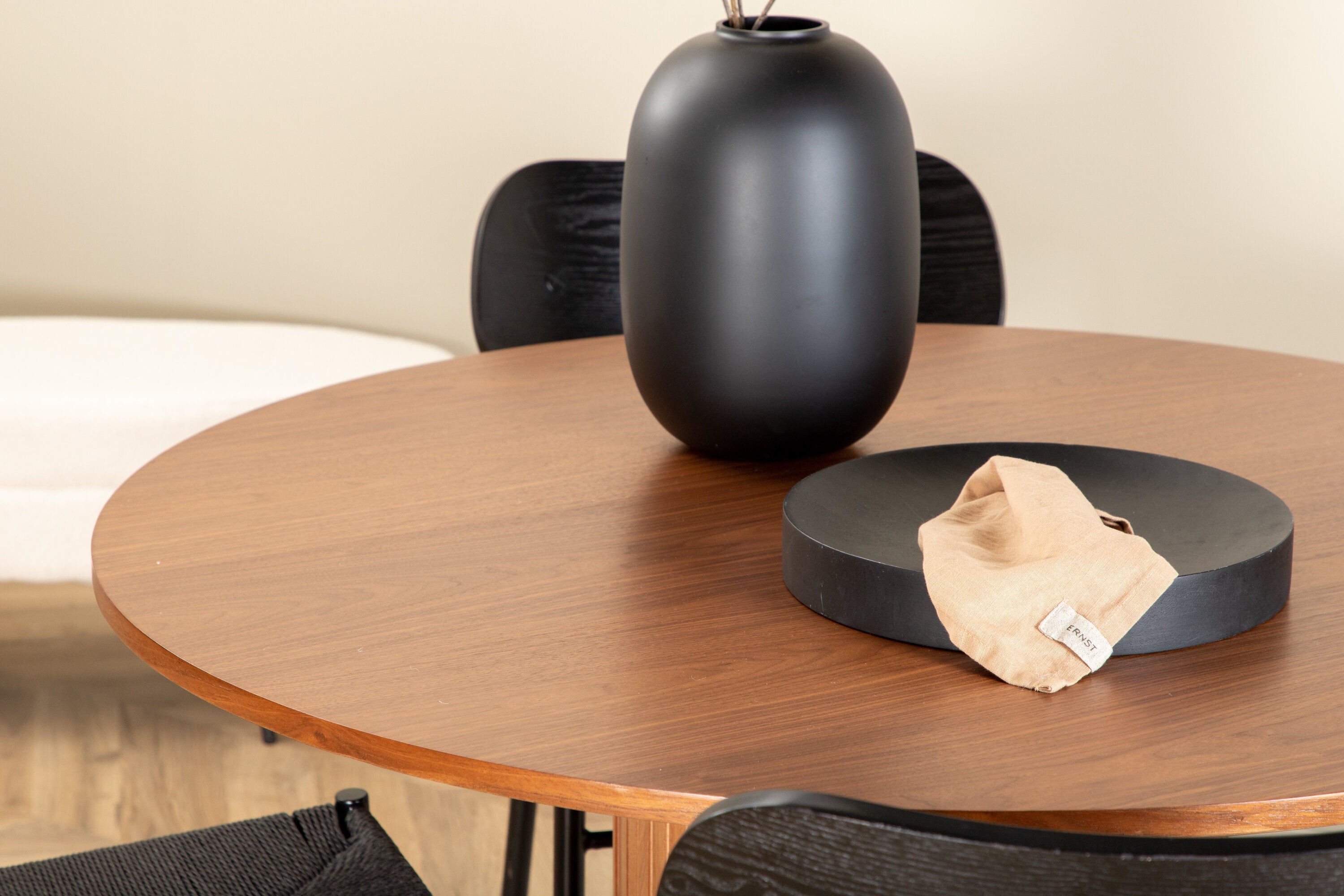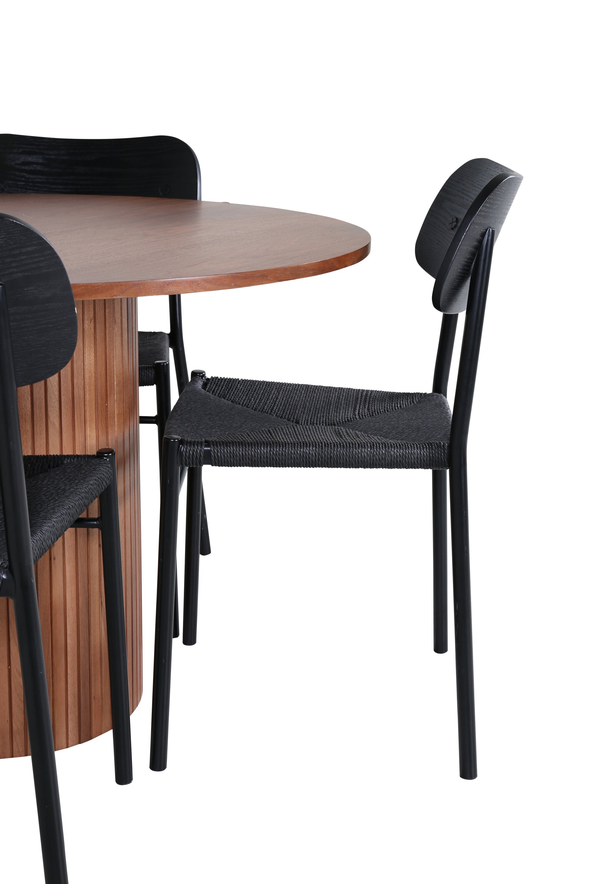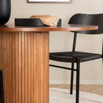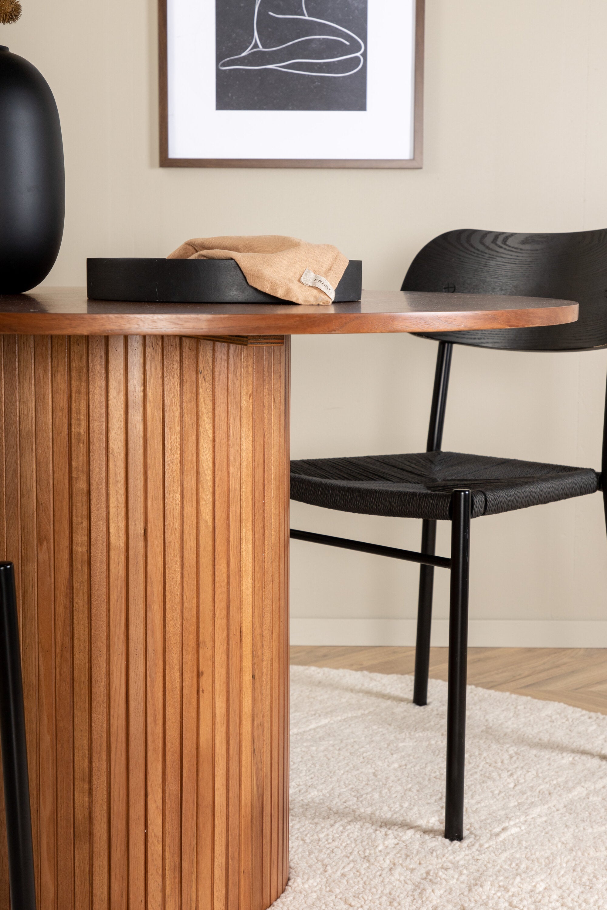 Lahodná sladká skupina potravin v moderním designu – co víc si přát? Kolem našeho kulatého jídelního stolu Bianca vytvoříte úžasnou komunitu, kde nikdo neriskuje, že se dostane na okraj. Deska stolu je vyrobena z MDF a má válcový rám v robustním provedení a žebrovaném provedení. Trendy ořechový sochař je nadčasový i stylový a lze jej snadno sladit s jiným dekorem. V kombinaci se 4 jídelními židlemi Polly v černé barvě s kovovými nohami židlí a černými sedáky z provazu. Užijte si všechna jídla dne!