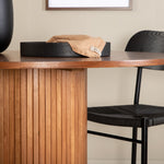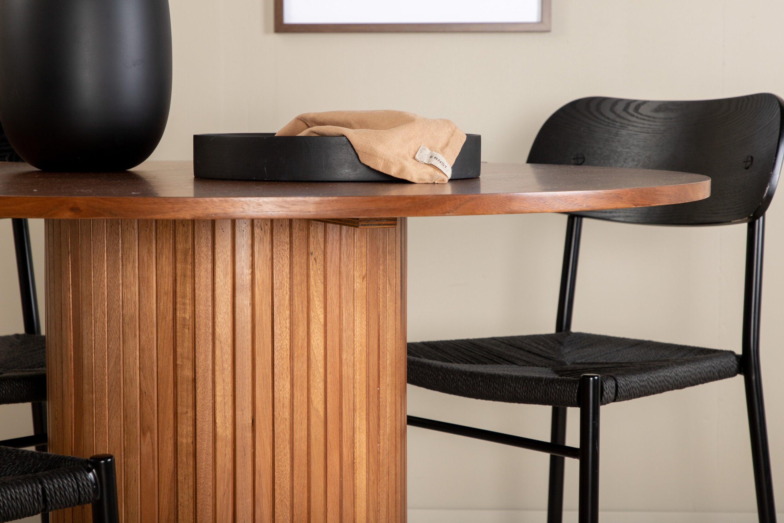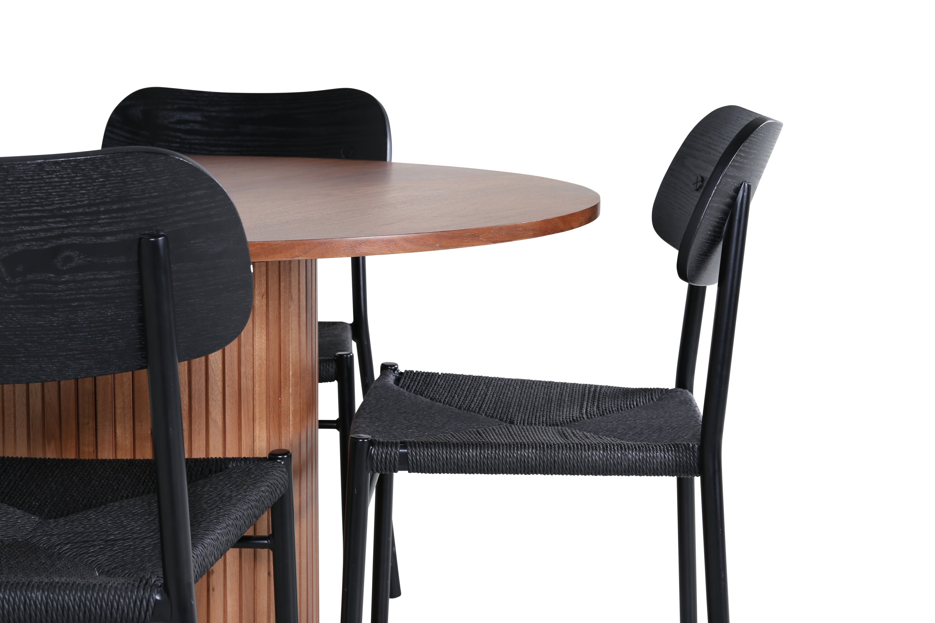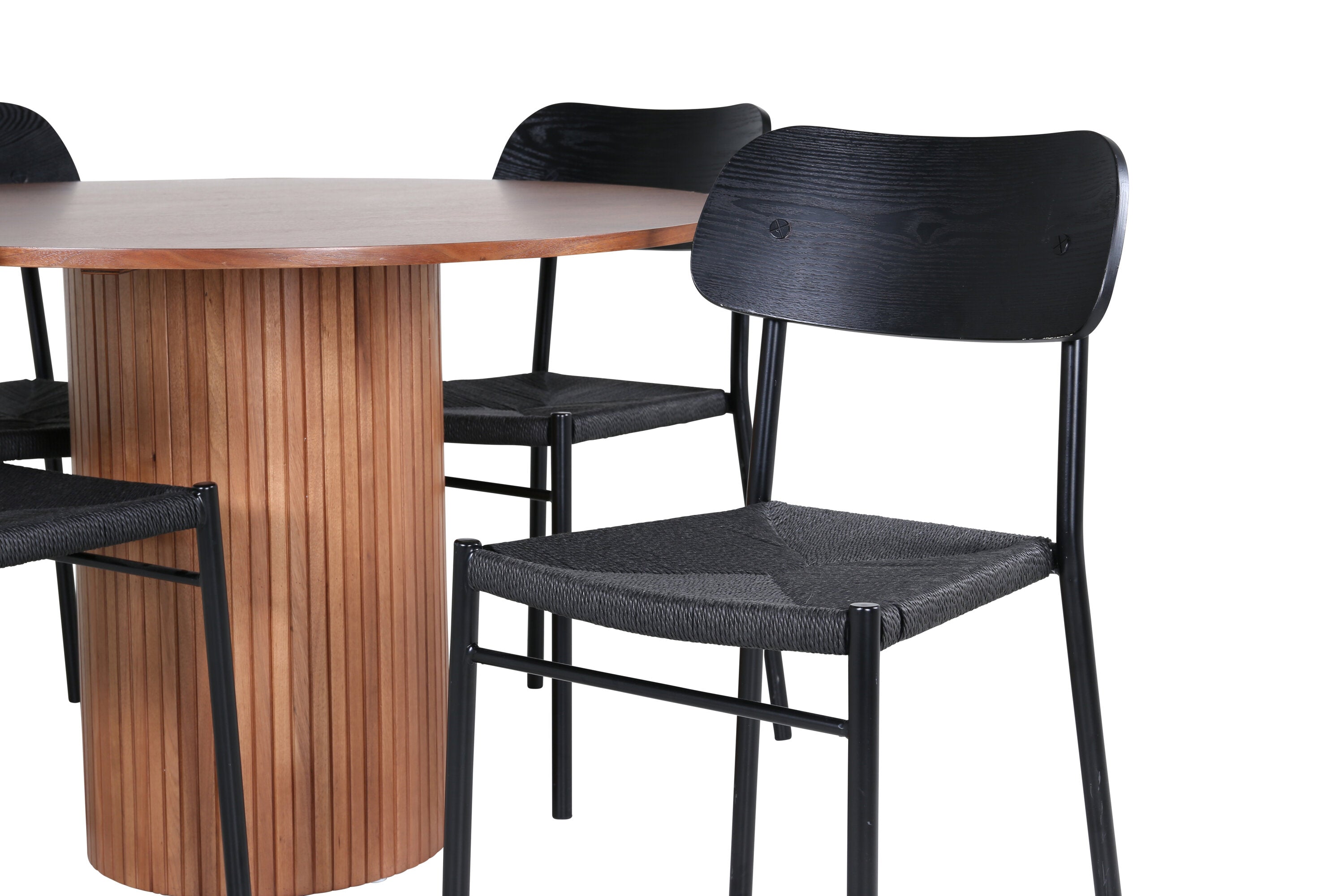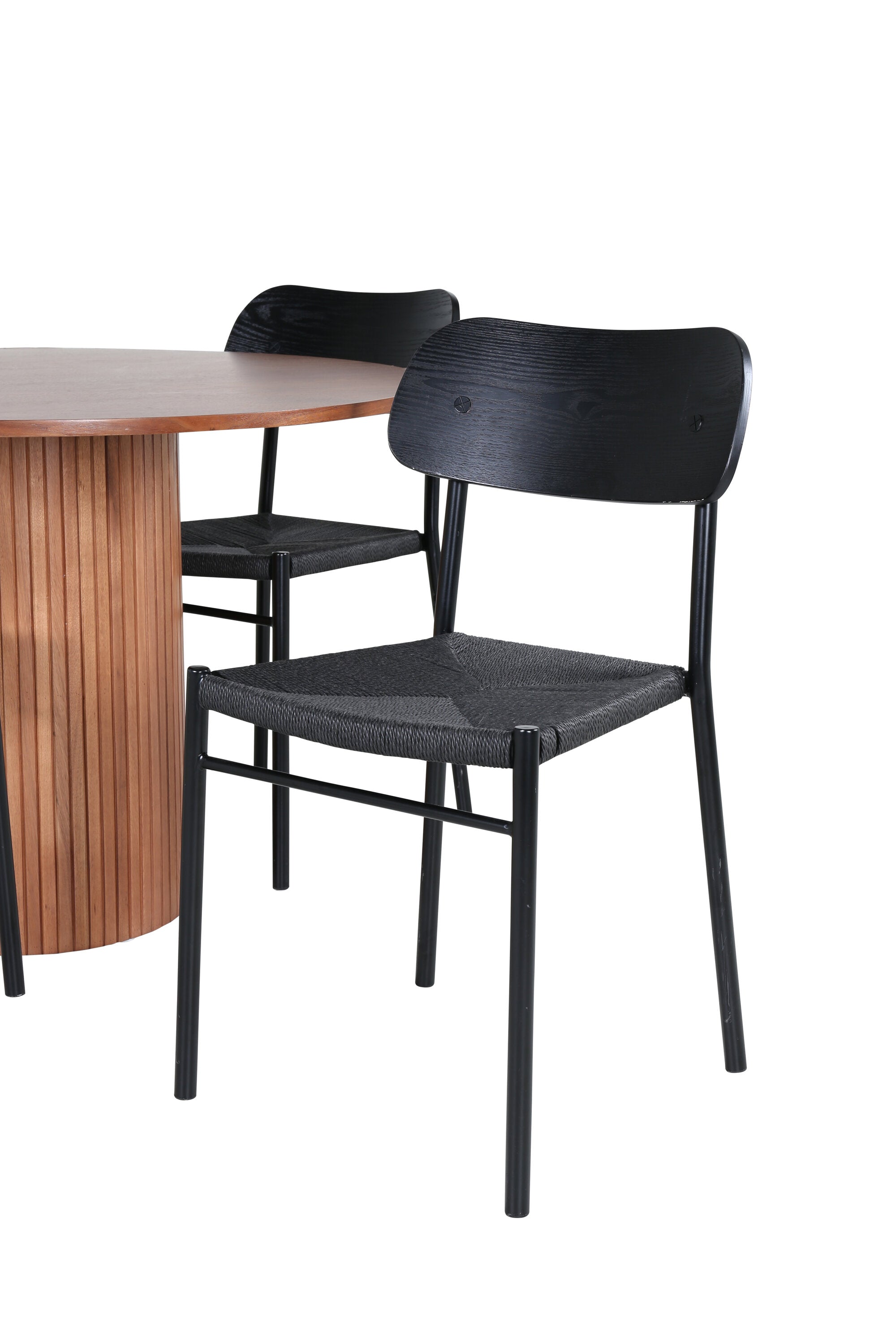 Lahodná sladká skupina potravin v moderním designu – co víc si přát? Kolem našeho kulatého jídelního stolu Bianca vytvoříte úžasnou komunitu, kde nikdo neriskuje, že se dostane na okraj. Deska stolu je vyrobena z MDF a má válcový rám v robustním provedení a žebrovaném provedení. Trendy ořechový sochař je nadčasový i stylový a lze jej snadno sladit s jiným dekorem. V kombinaci se 4 jídelními židlemi Polly v černé barvě s kovovými nohami židlí a černými sedáky z provazu. Užijte si všechna jídla dne!