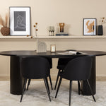 Bianca oválný jídelní stůl, černá černá dýha + sametová jídelní křeslo, černé nohy, černá látka_4