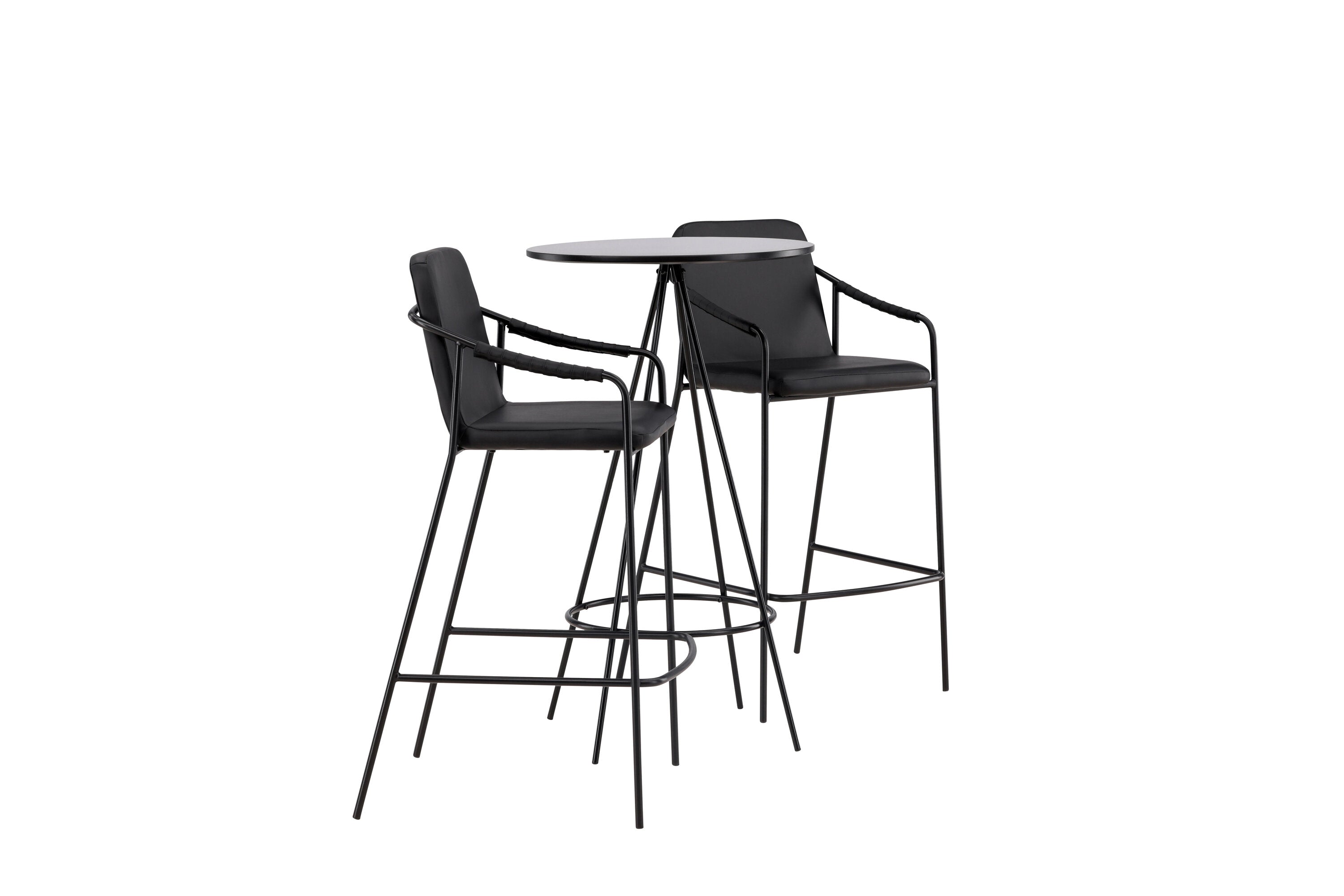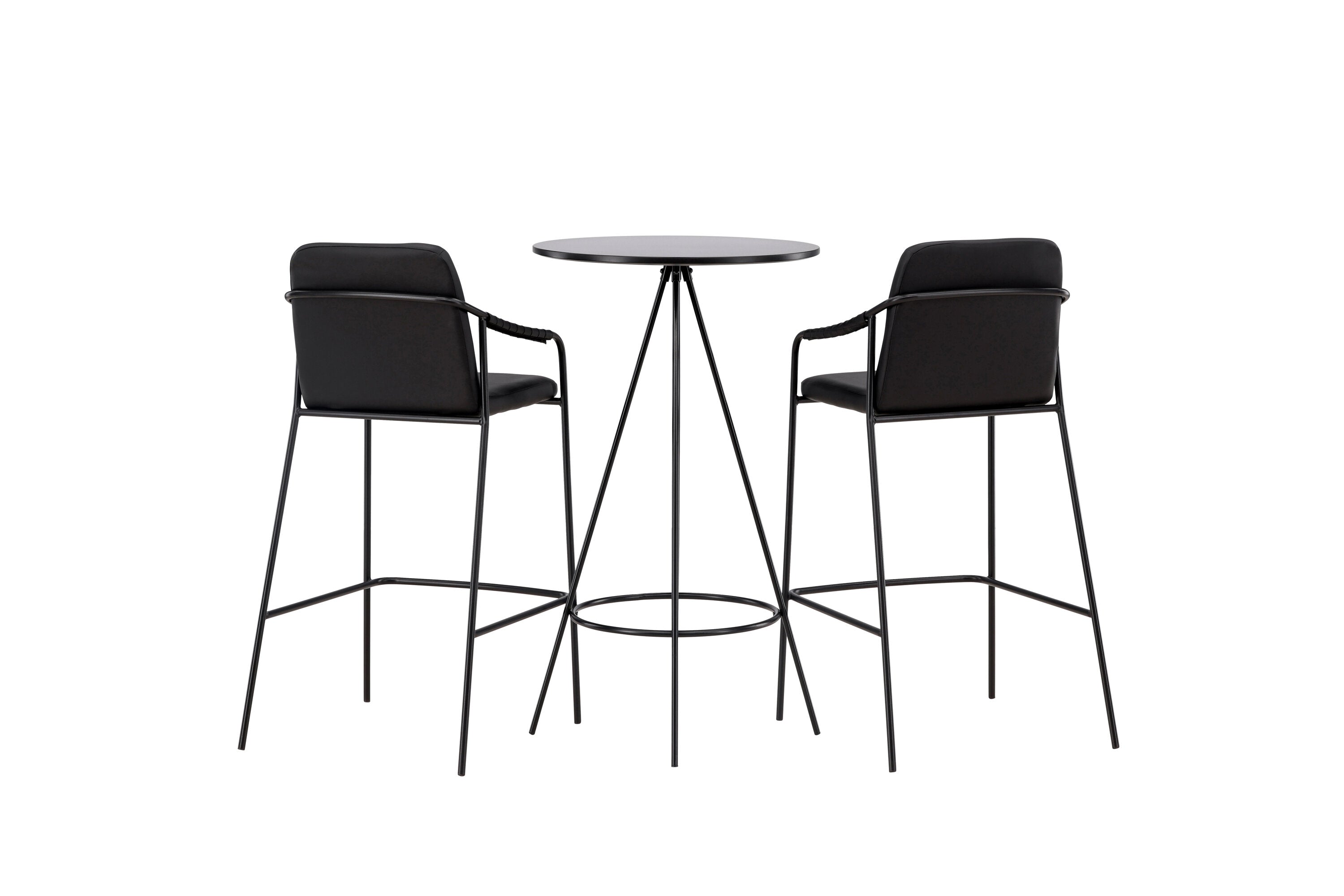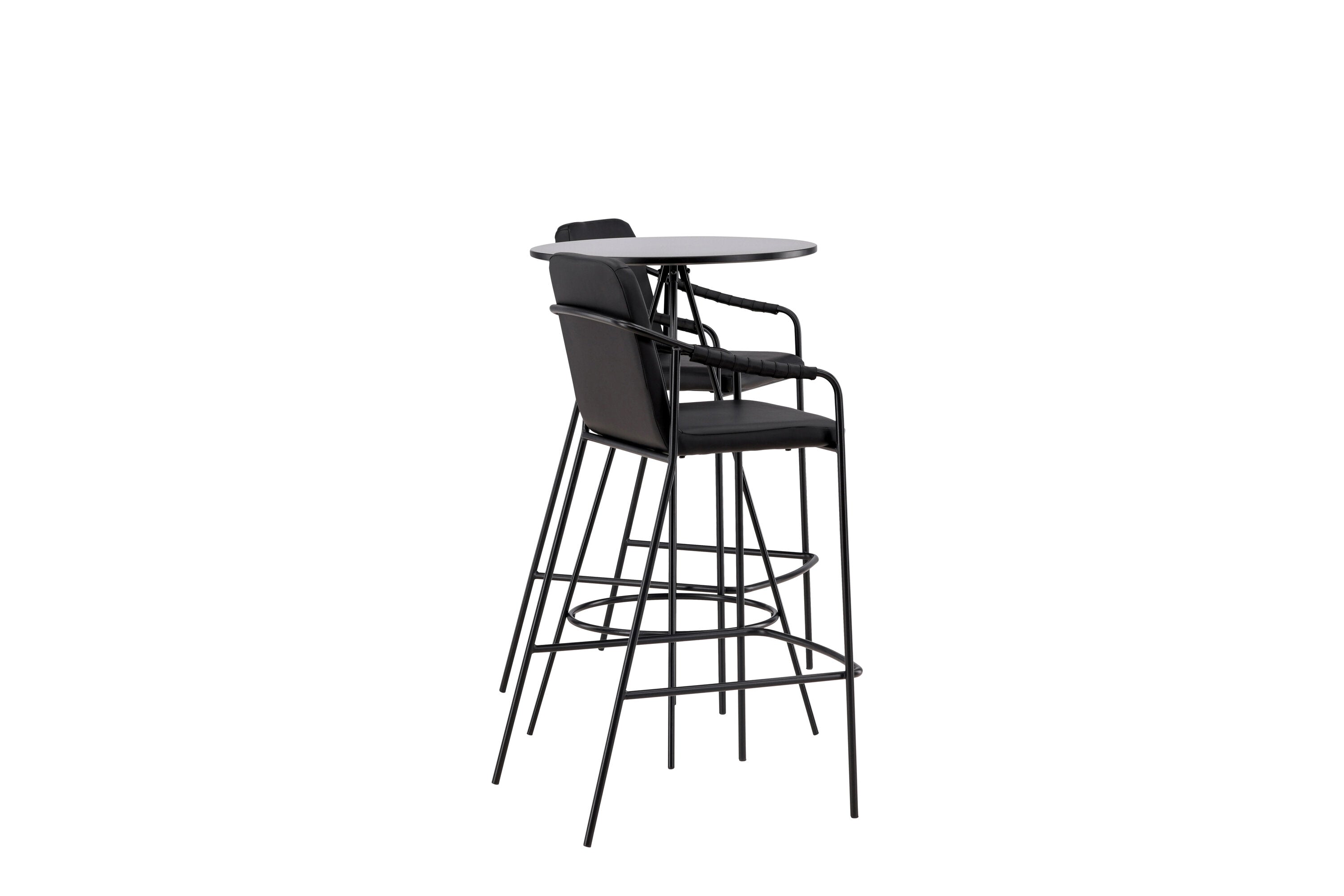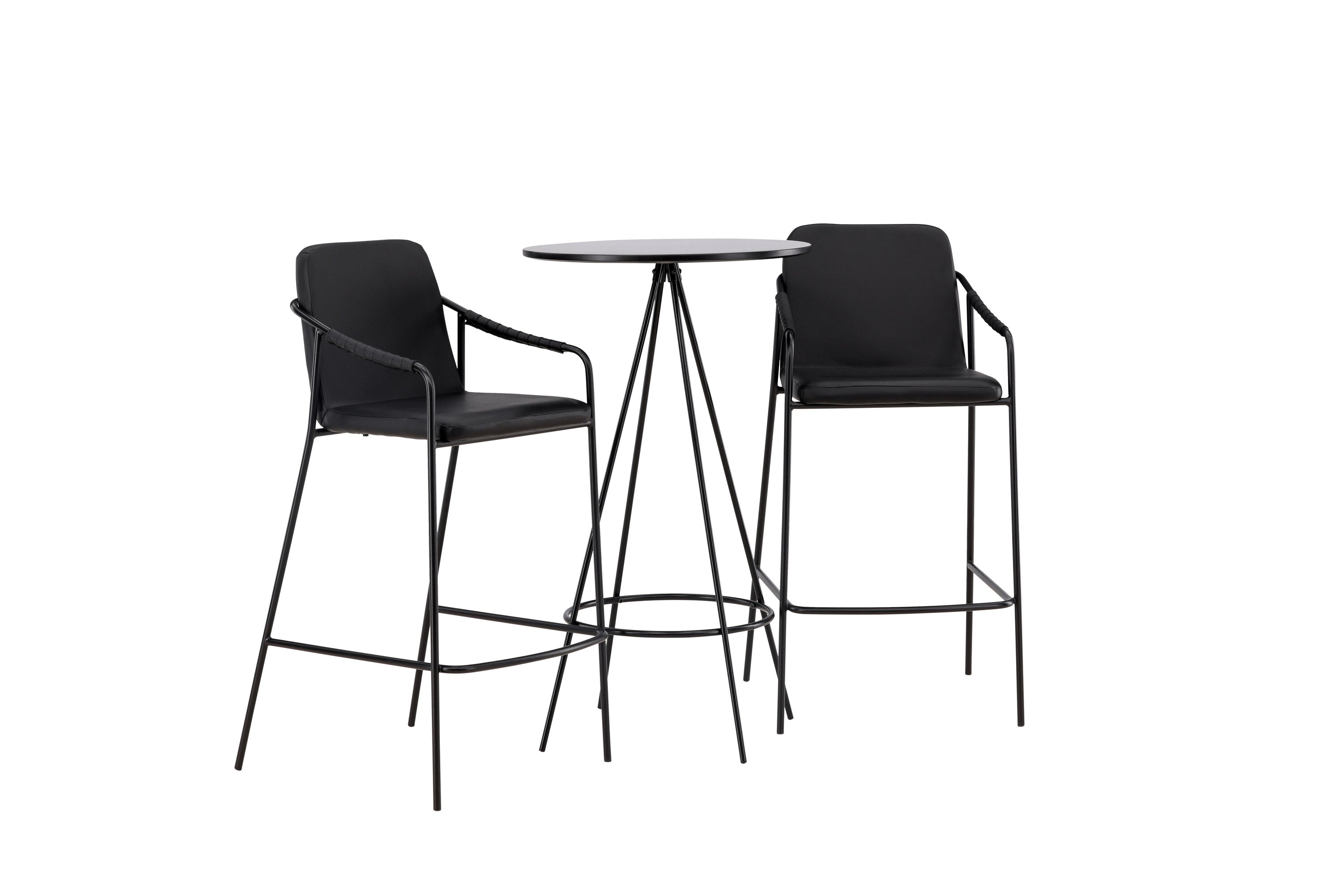 Lepší kombinace než toto už neexistuje! Barový stůl Bistro má minimalistický, skandinávský design s kulatou stolní deskou z černé MDF s dýhou. Vzdušné, kuželovité nohy stolu jsou mírně rozšířené v černém kovu a mají integrovaný rám pro podnožku. Zde spolu s černými barovými židlemi ze série Dispute. Židle má čalouněný sedák a celočalouněné provedení v černém PU s minimalistickými nohami židle a integrovanými područkami z černé oceli. Mělo by to být stejně příjemné jako příjemné! Rozměry stolu: 60 cm.