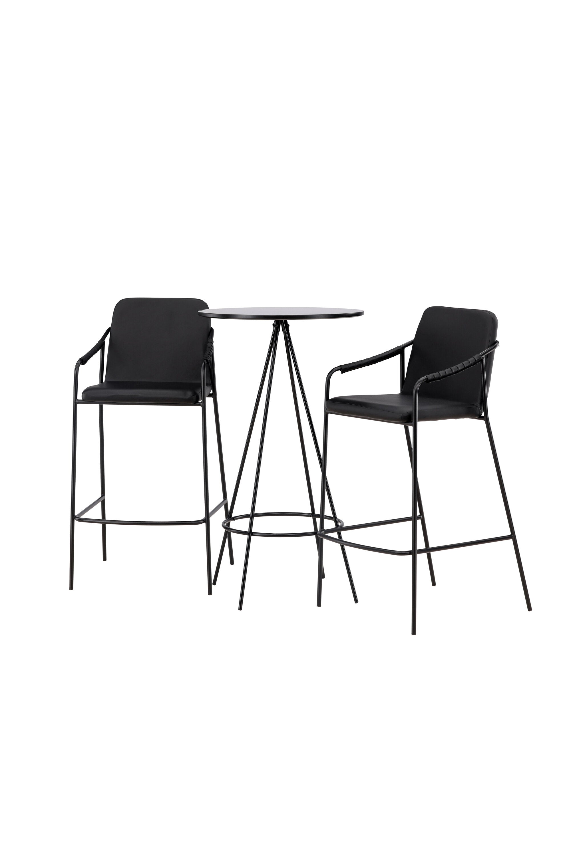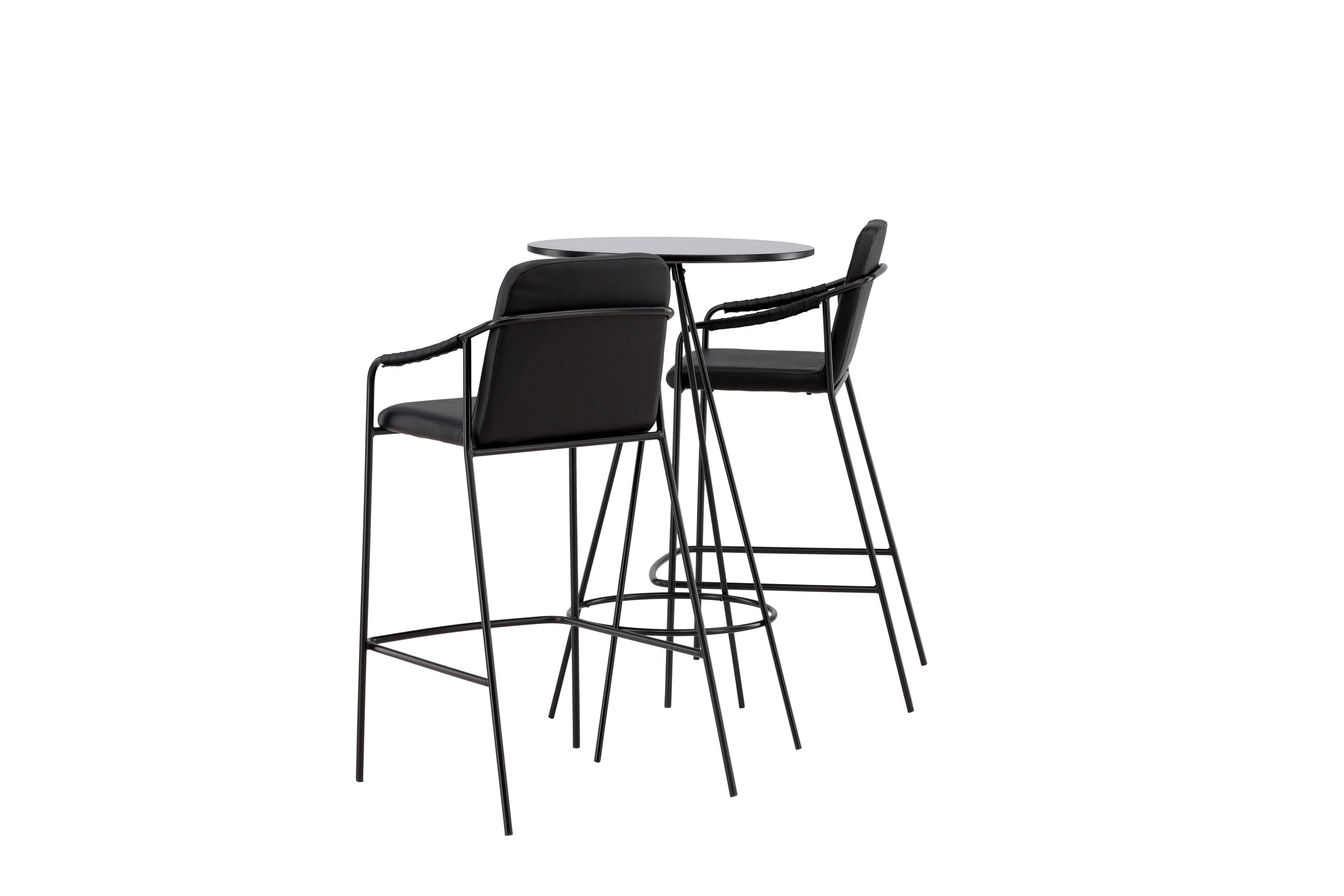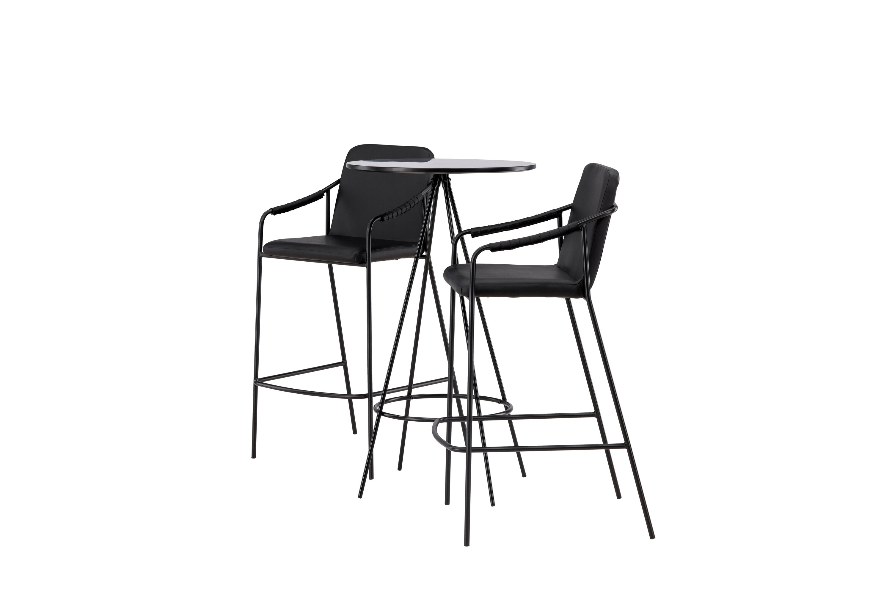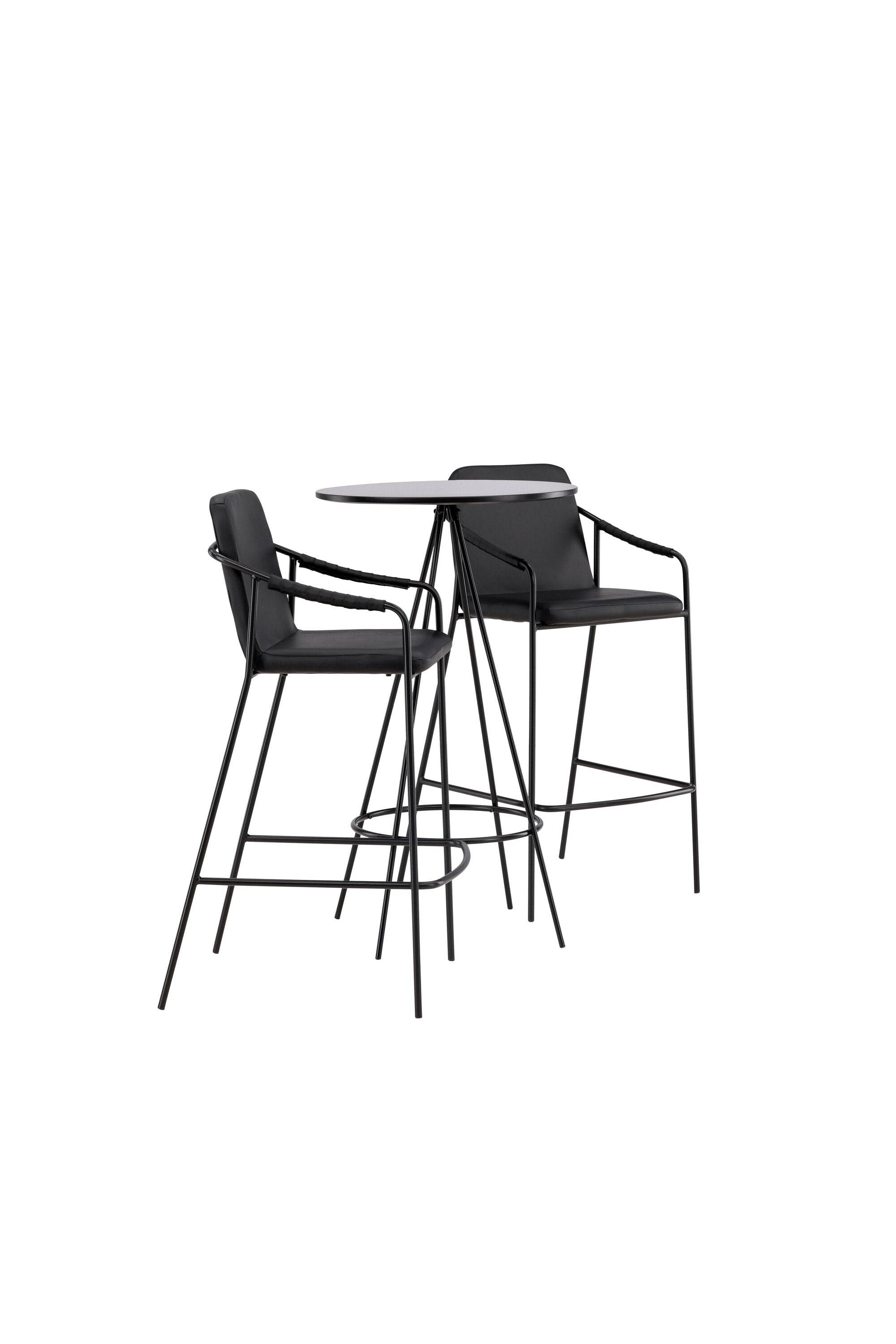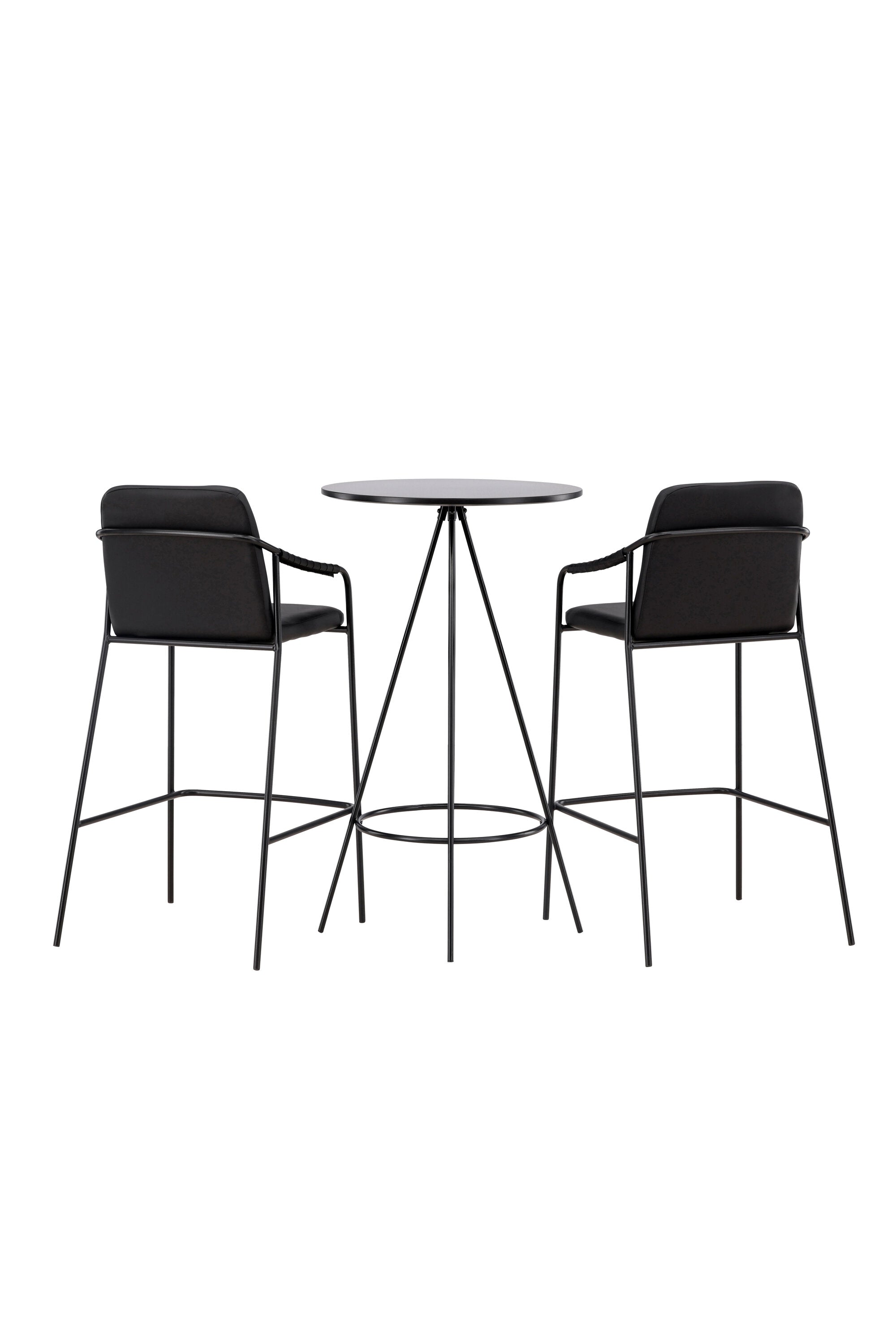 Lepší kombinace než toto už neexistuje! Barový stůl Bistro má minimalistický, skandinávský design s kulatou stolní deskou z černé MDF s dýhou. Vzdušné, kuželovité nohy stolu jsou mírně rozšířené v černém kovu a mají integrovaný rám pro podnožku. Zde spolu s černými barovými židlemi ze série Dispute. Židle má čalouněný sedák a celočalouněné provedení v černém PU s minimalistickými nohami židle a integrovanými područkami z černé oceli. Mělo by to být stejně příjemné jako příjemné! Rozměry stolu: 60 cm.