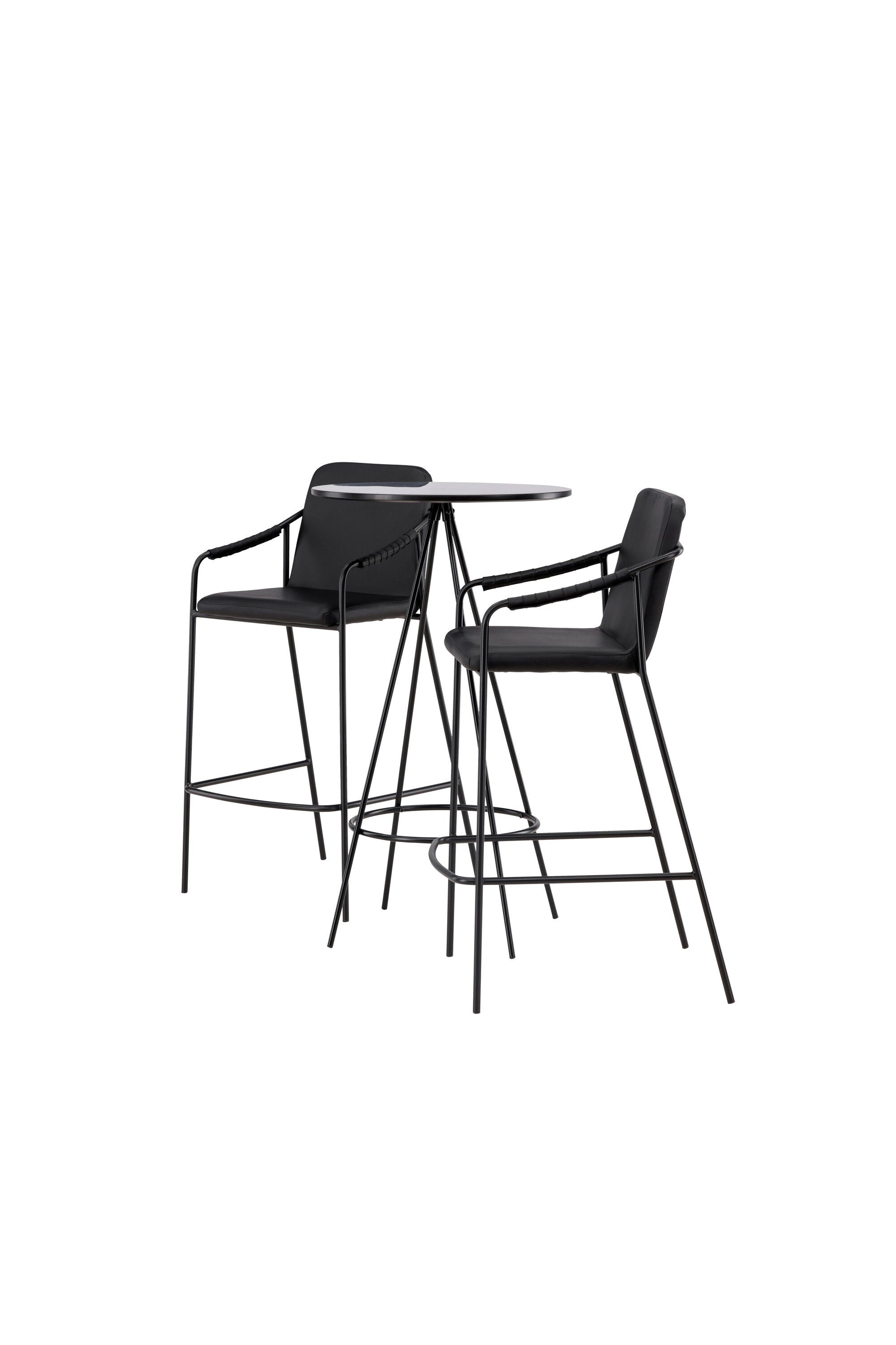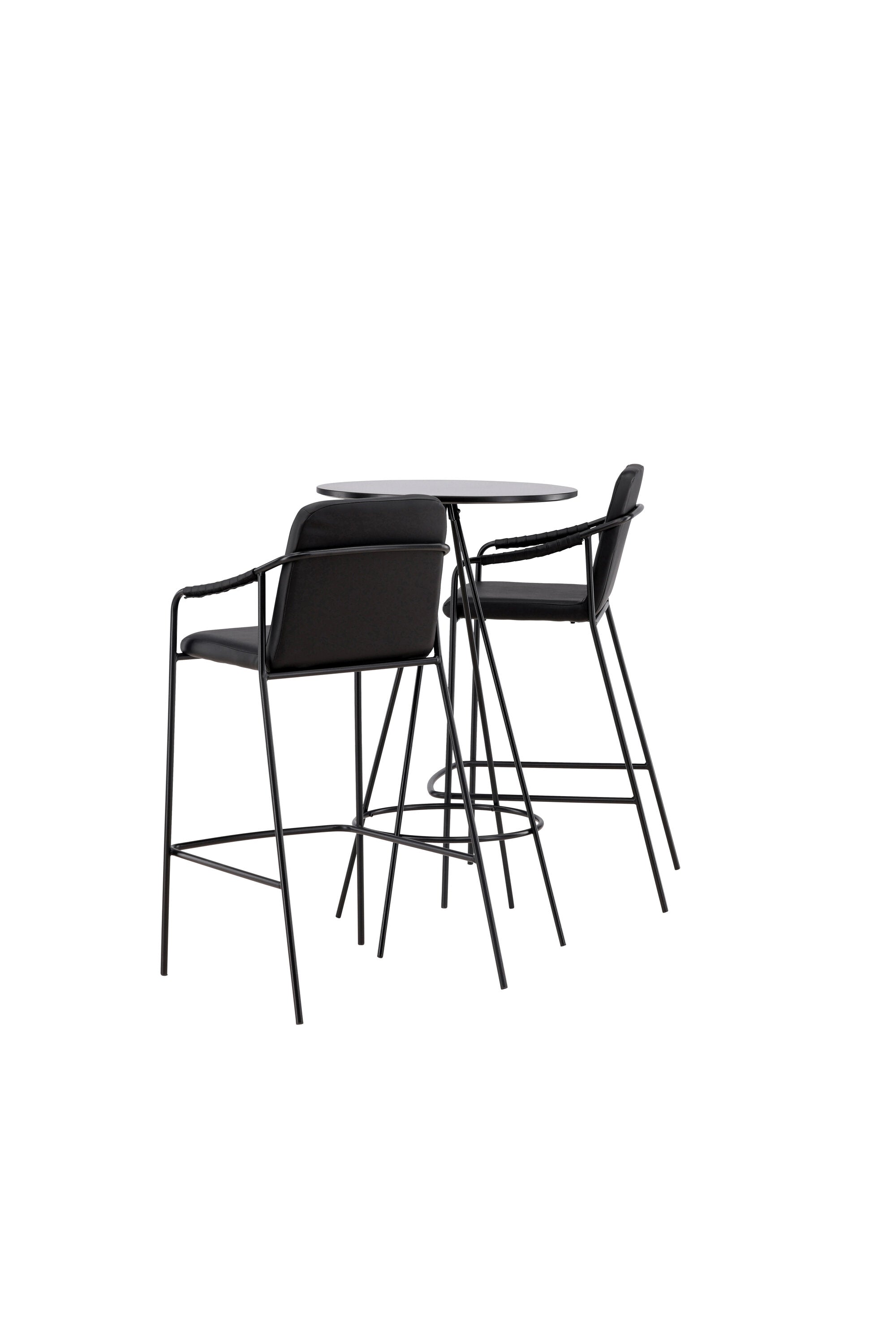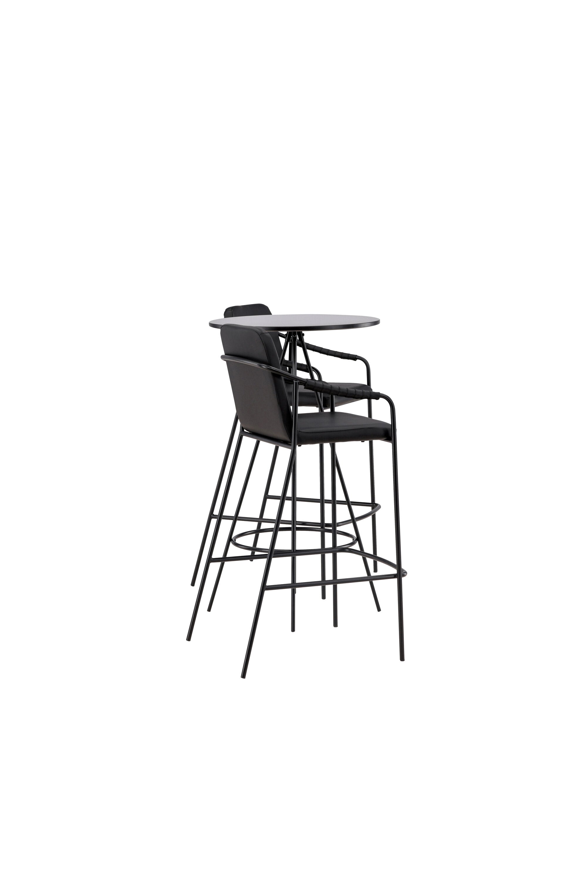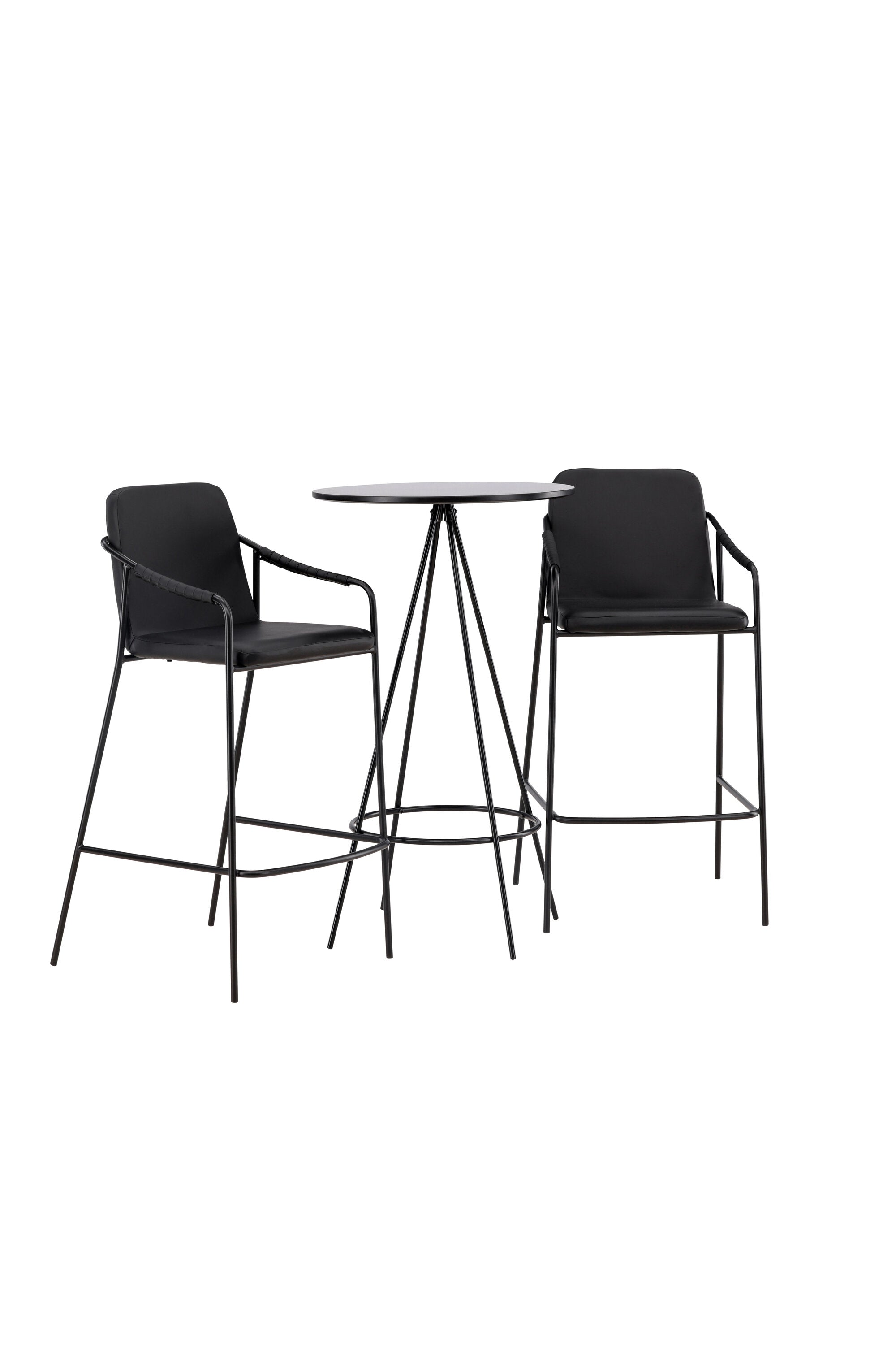 Lepší kombinace než toto už neexistuje! Barový stůl Bistro má minimalistický, skandinávský design s kulatou stolní deskou z černé MDF s dýhou. Vzdušné, kuželovité nohy stolu jsou mírně rozšířené v černém kovu a mají integrovaný rám pro podnožku. Zde spolu s černými barovými židlemi ze série Dispute. Židle má čalouněný sedák a celočalouněné provedení v černém PU s minimalistickými nohami židle a integrovanými područkami z černé oceli. Mělo by to být stejně příjemné jako příjemné! Rozměry stolu: 60 cm.