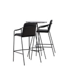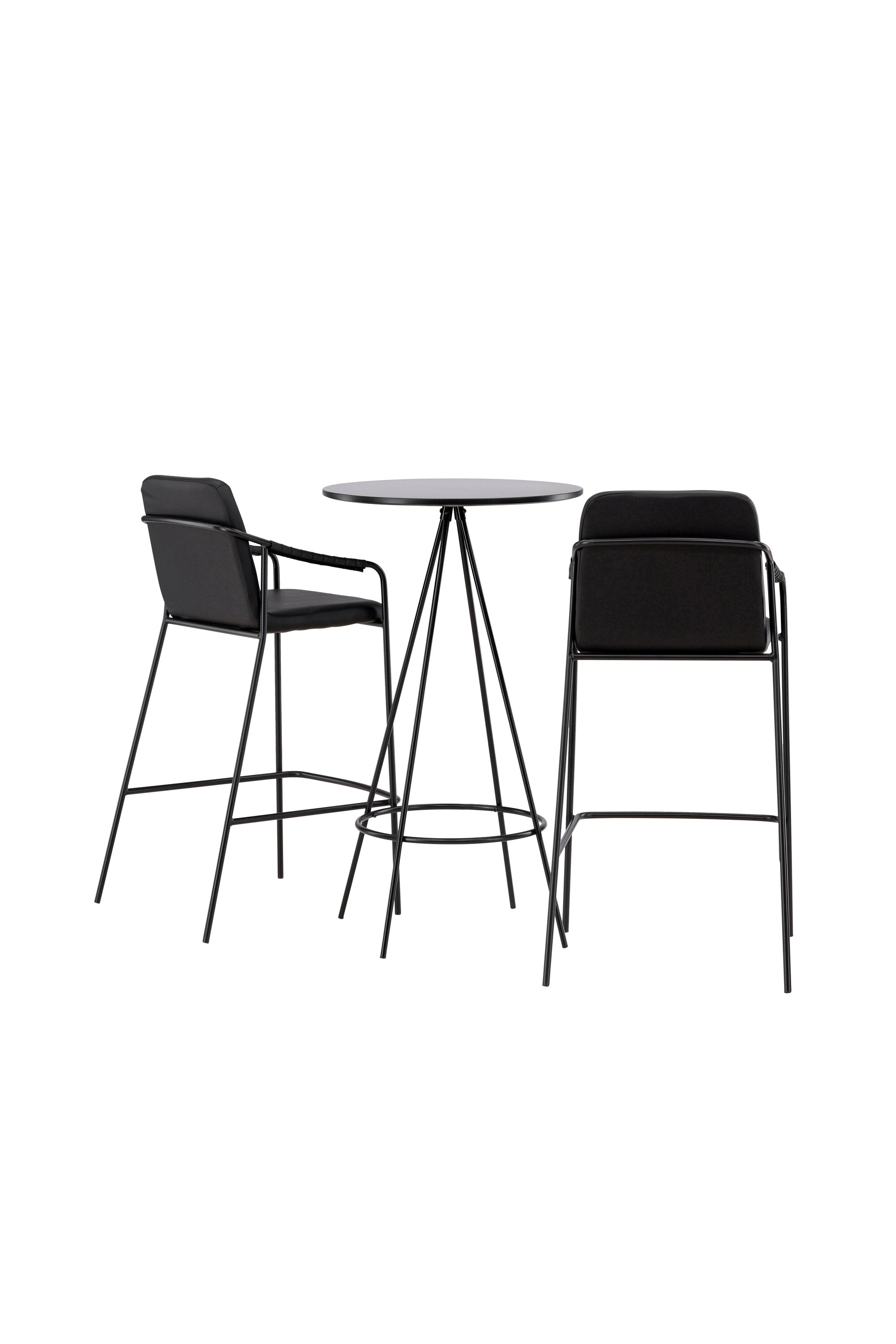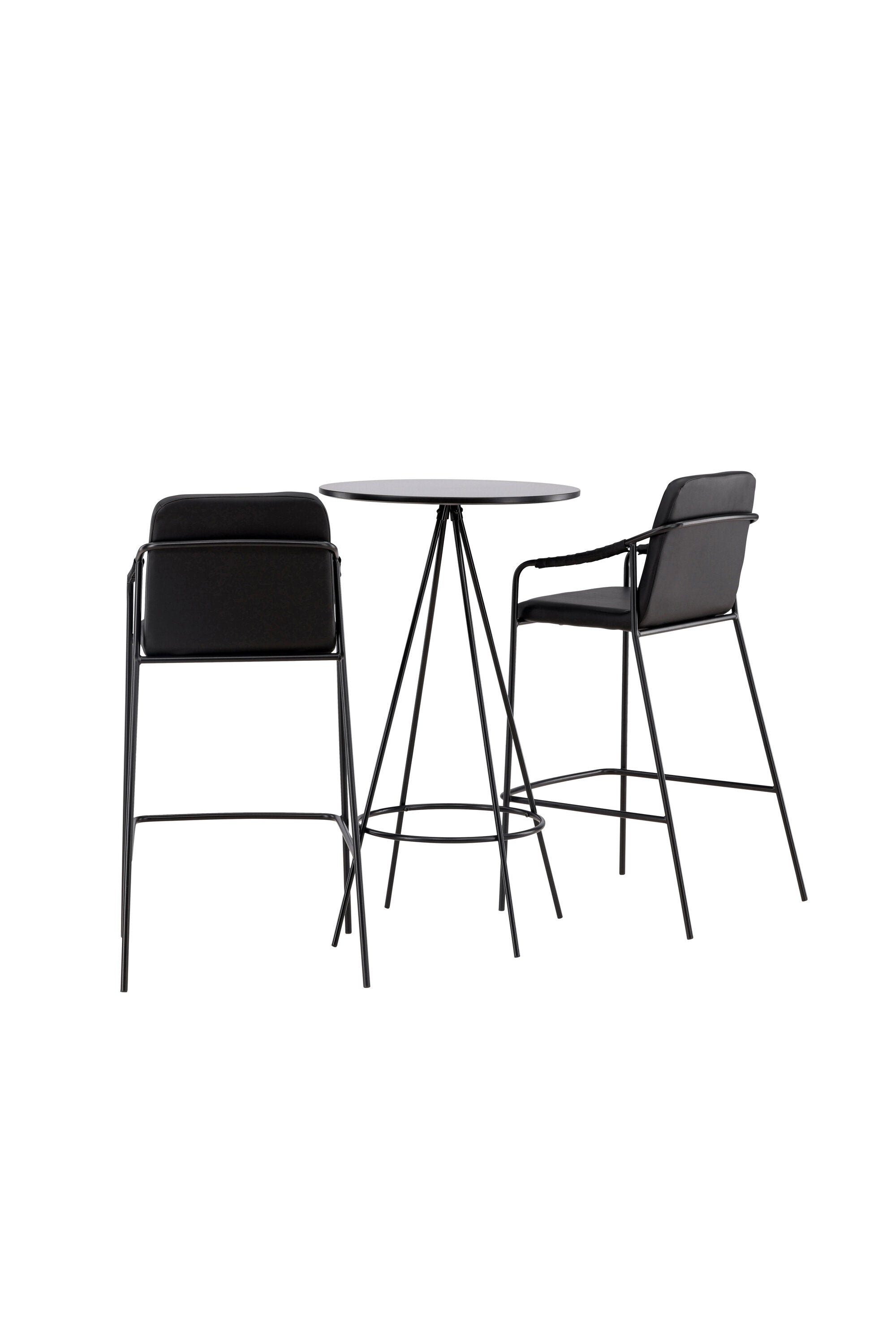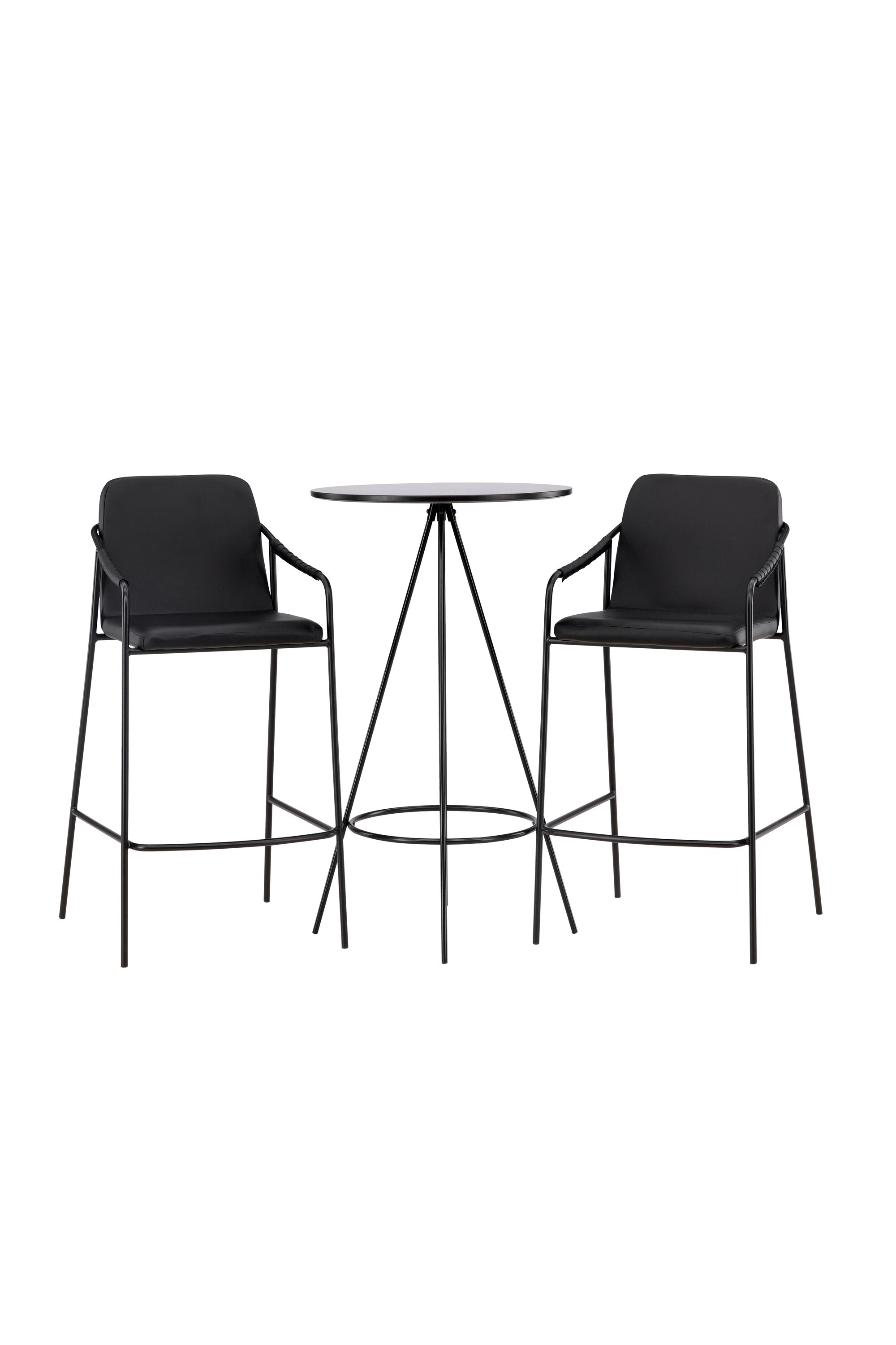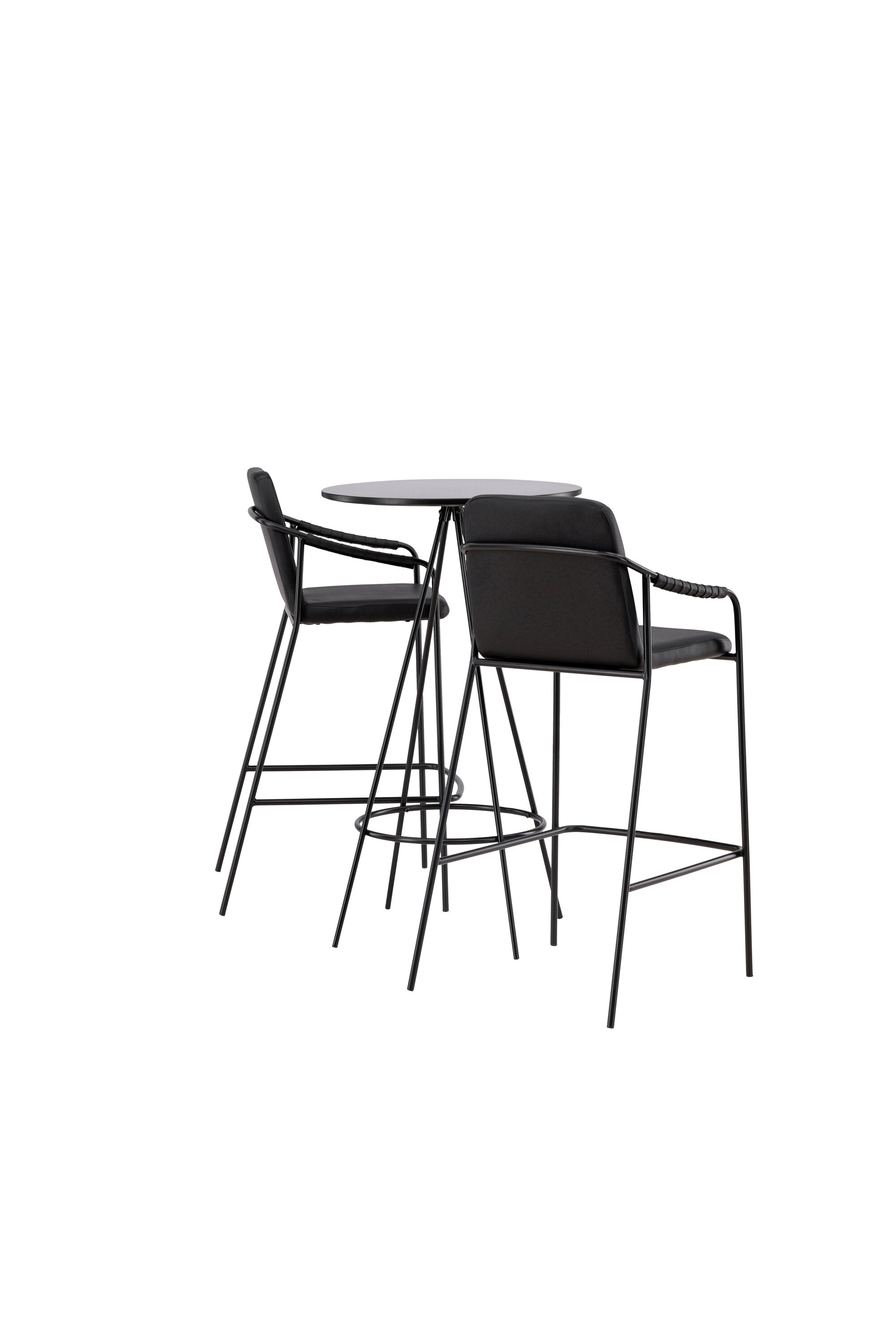Lepší kombinace než toto už neexistuje! Barový stůl Bistro má minimalistický, skandinávský design s kulatou stolní deskou z černé MDF s dýhou. Vzdušné, kuželovité nohy stolu jsou mírně rozšířené v černém kovu a mají integrovaný rám pro podnožku. Zde spolu s černými barovými židlemi ze série Dispute. Židle má čalouněný sedák a celočalouněné provedení v černém PU s minimalistickými nohami židle a integrovanými područkami z černé oceli. Mělo by to být stejně příjemné jako příjemné! Rozměry stolu: 60 cm.