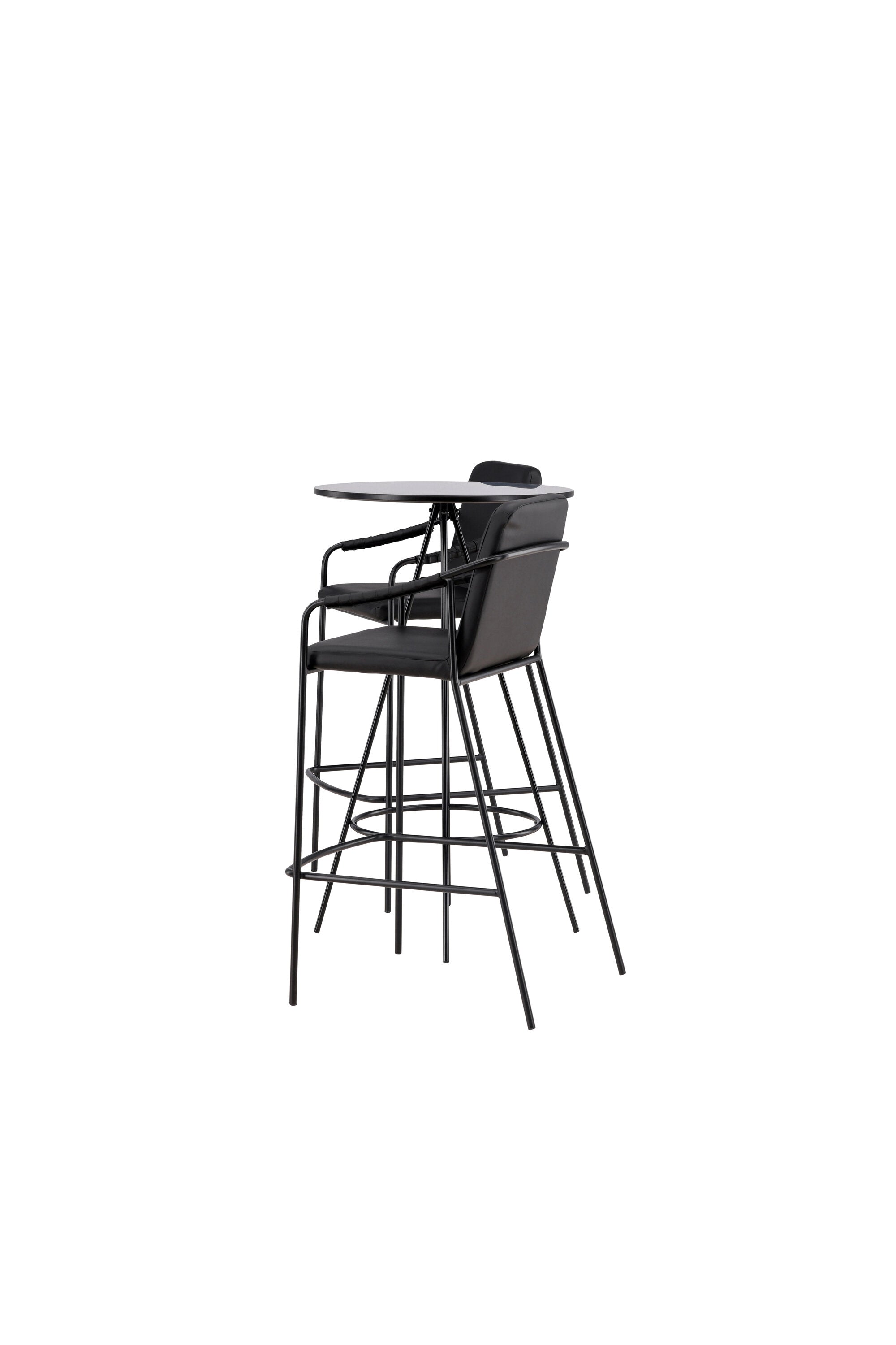 Bistro Barový stůl φ60 - Černá / MDF s dýhou + Tvist Barová židle - Černá / Černá PU _2