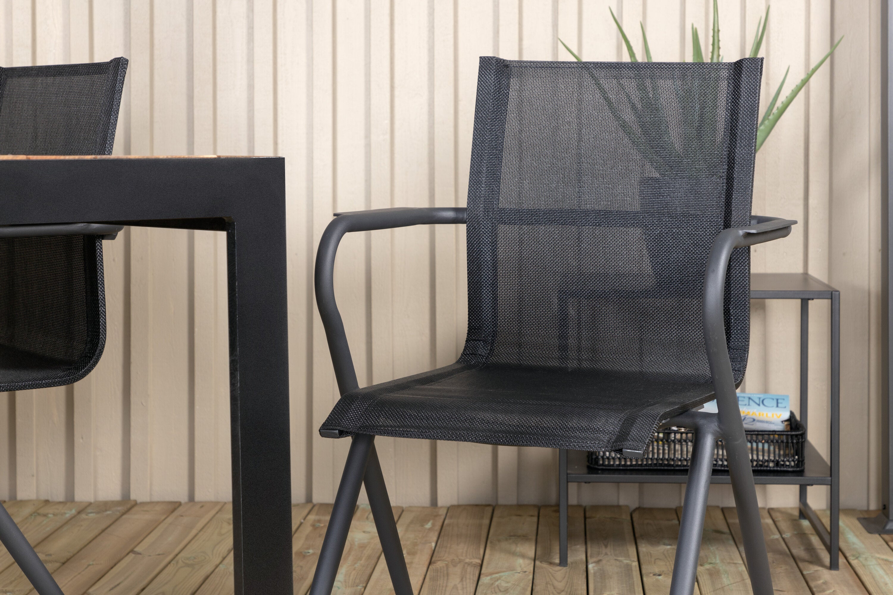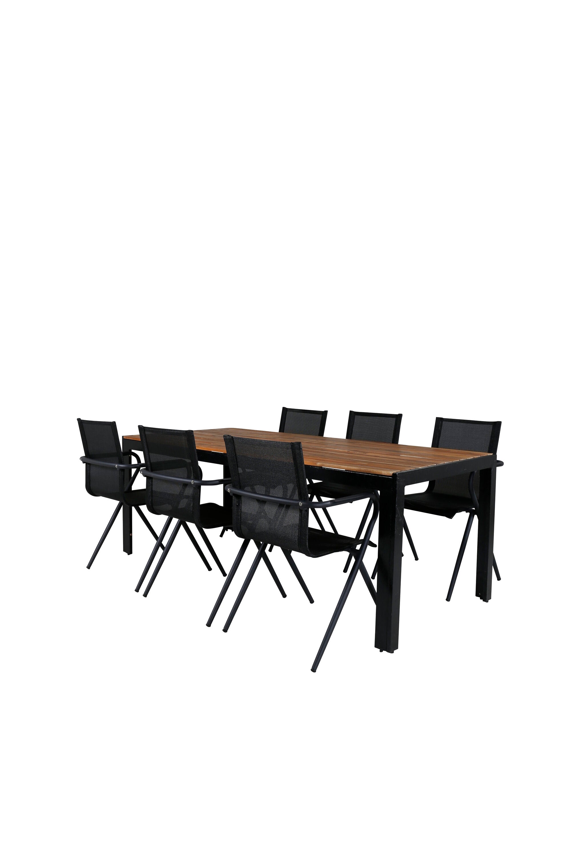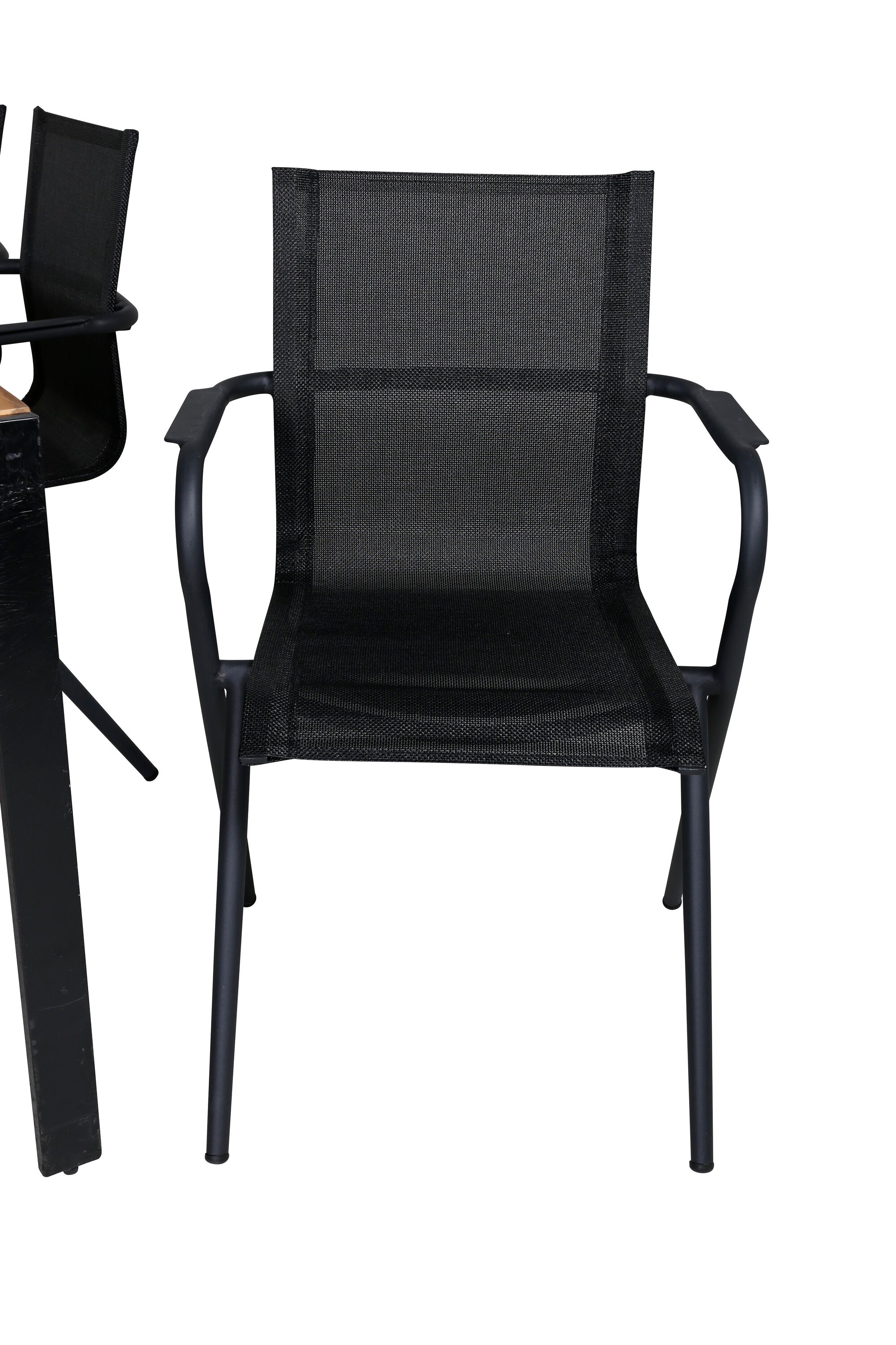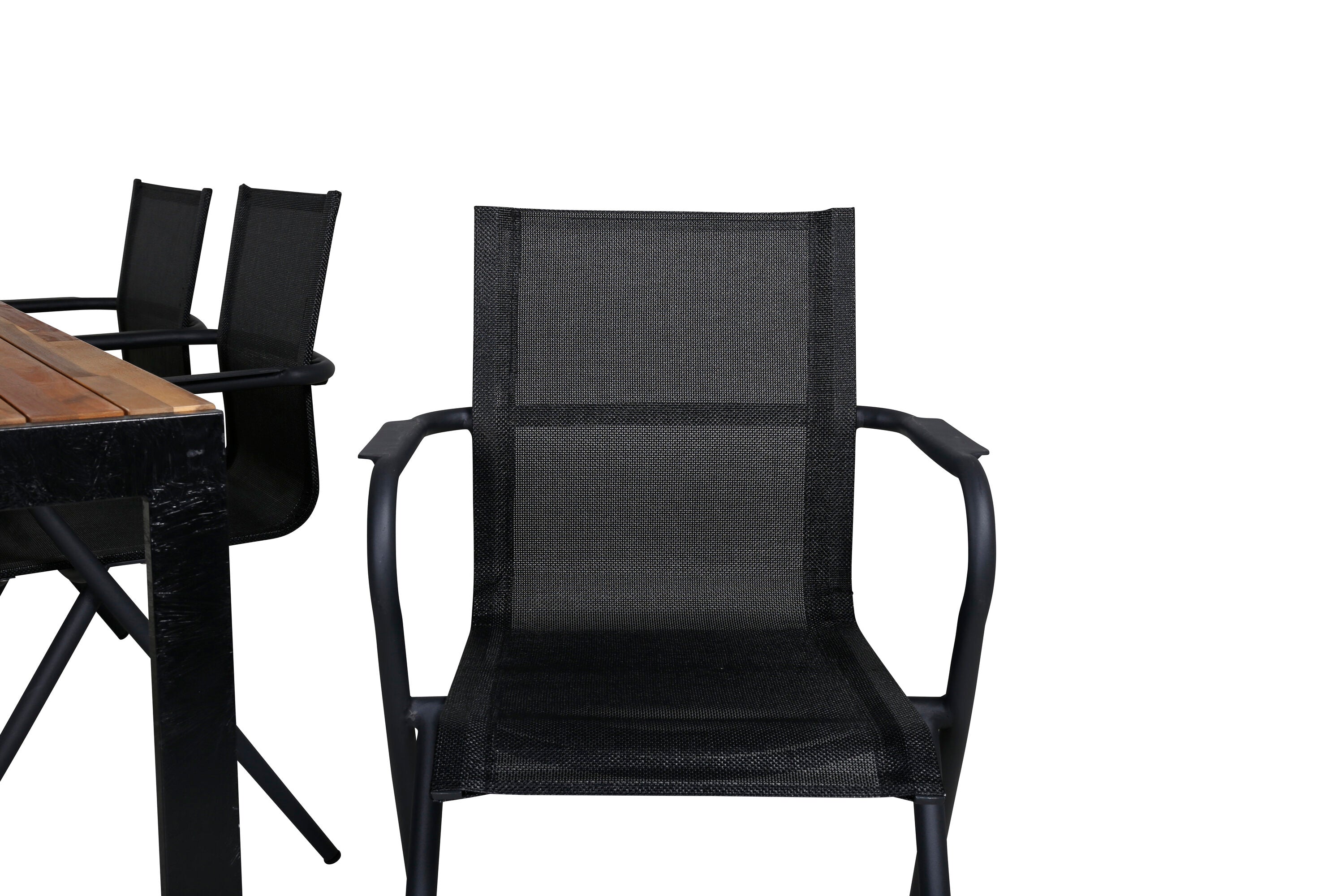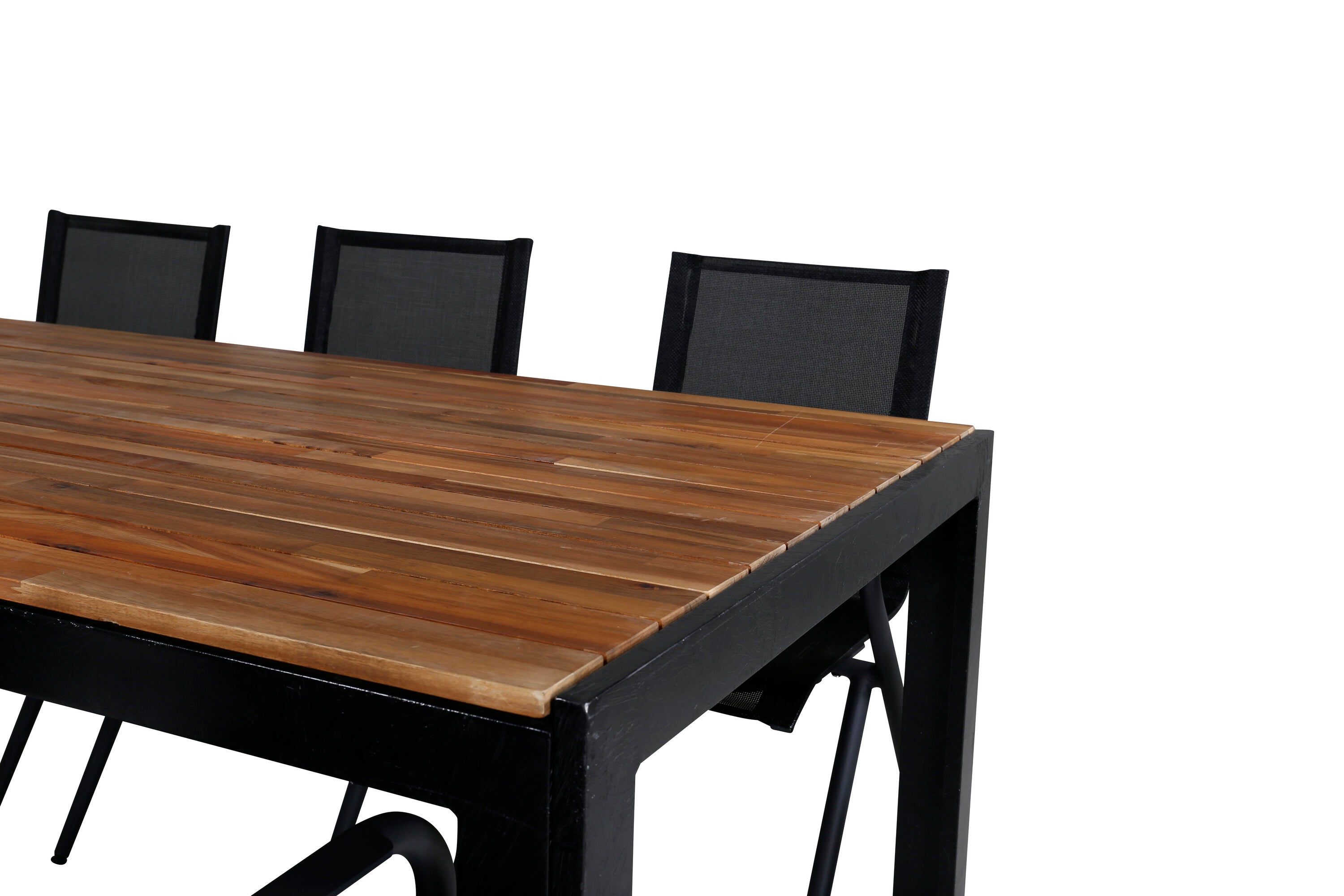 Bois Jídelní stůl 205*90cm - Černé nohy / Acacia + Alina Jídelní židle - Black Alu / Black Textilene_6