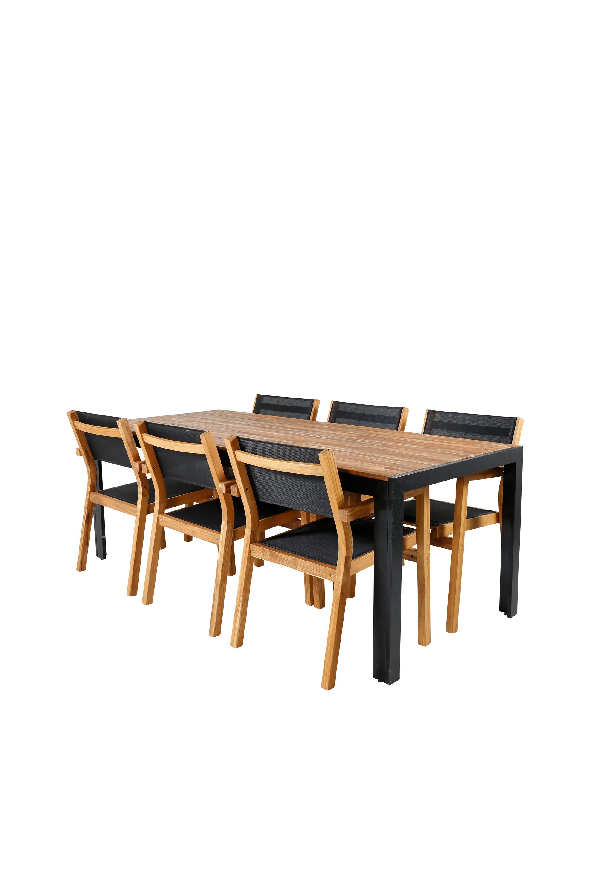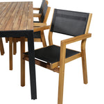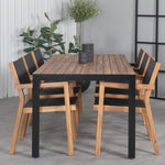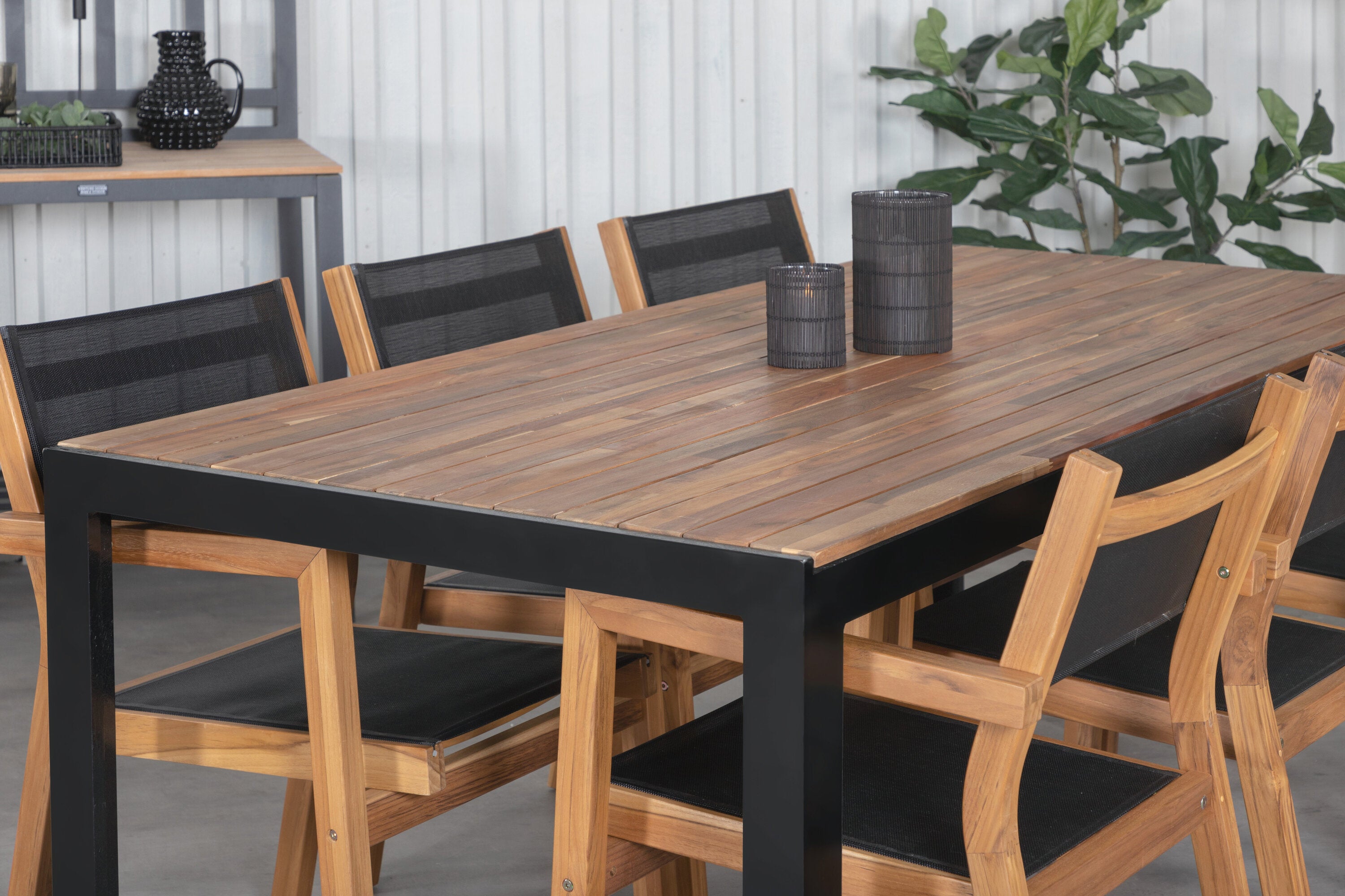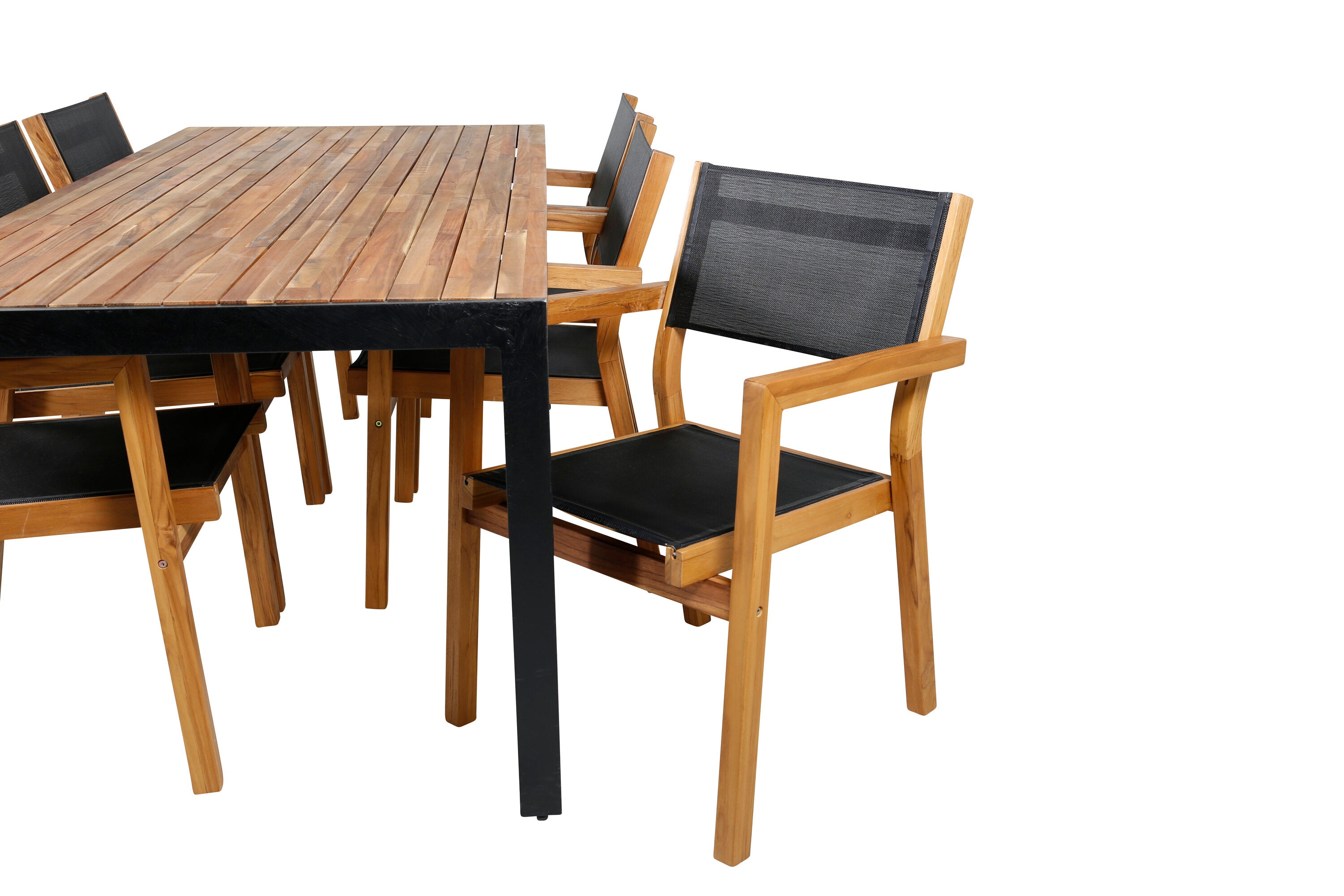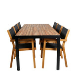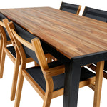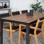 Bois Jídelní stůl 205*90cm - Černé nohy / Akácie + Stohovací židle Venice - Teak / Černá textilní_6