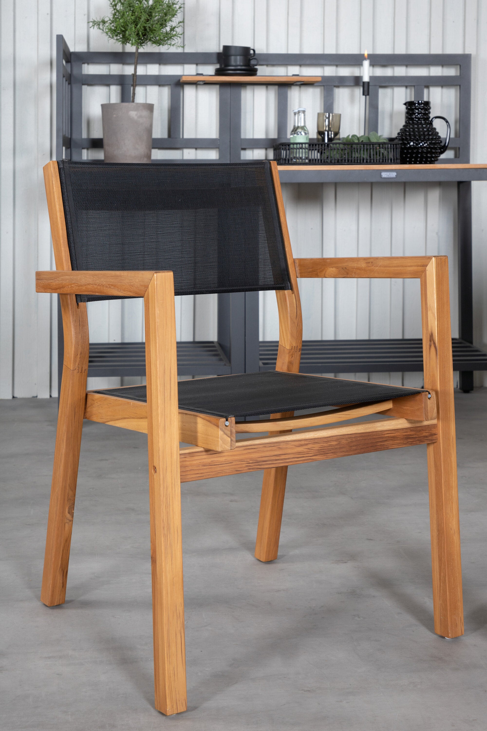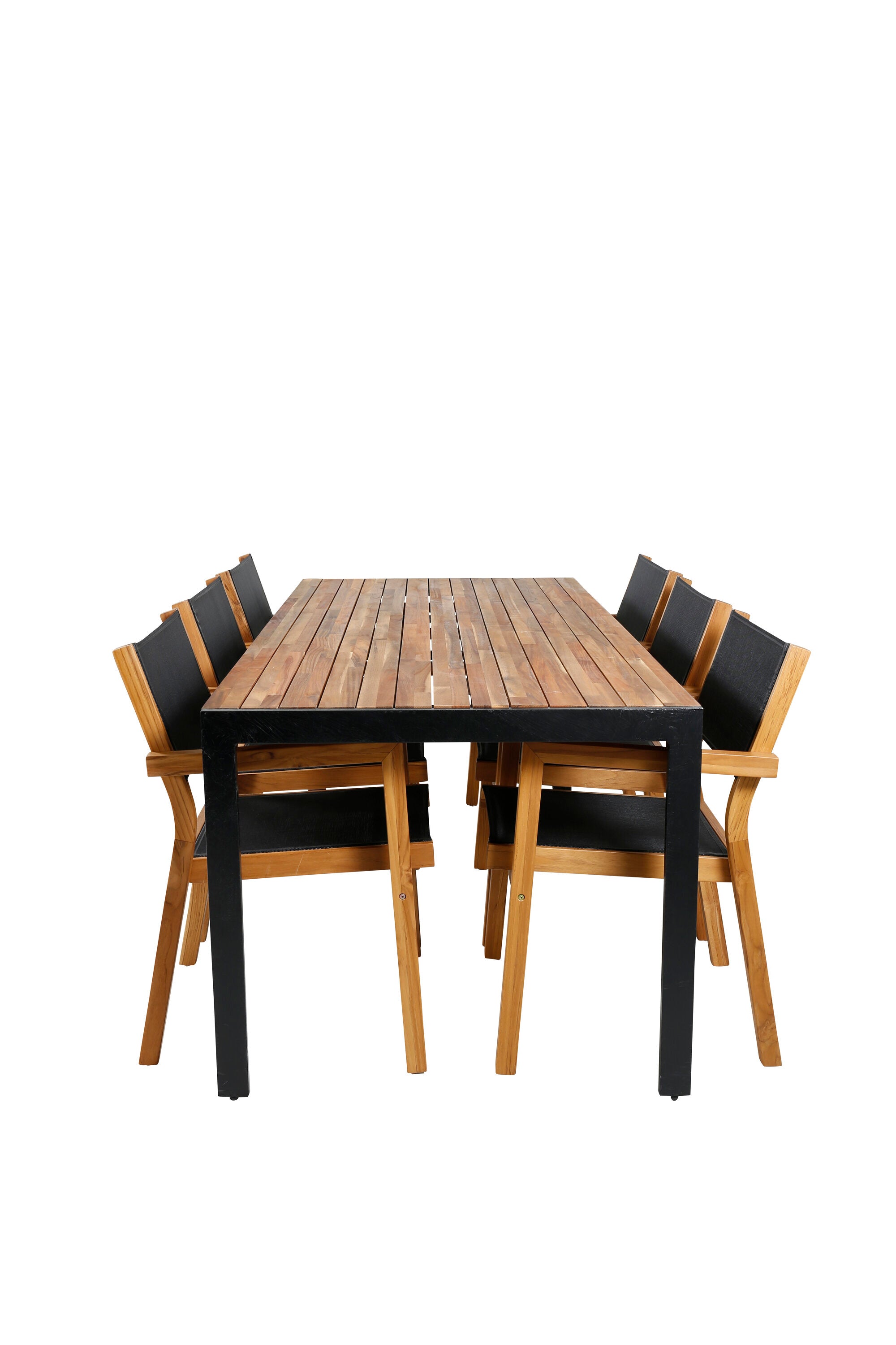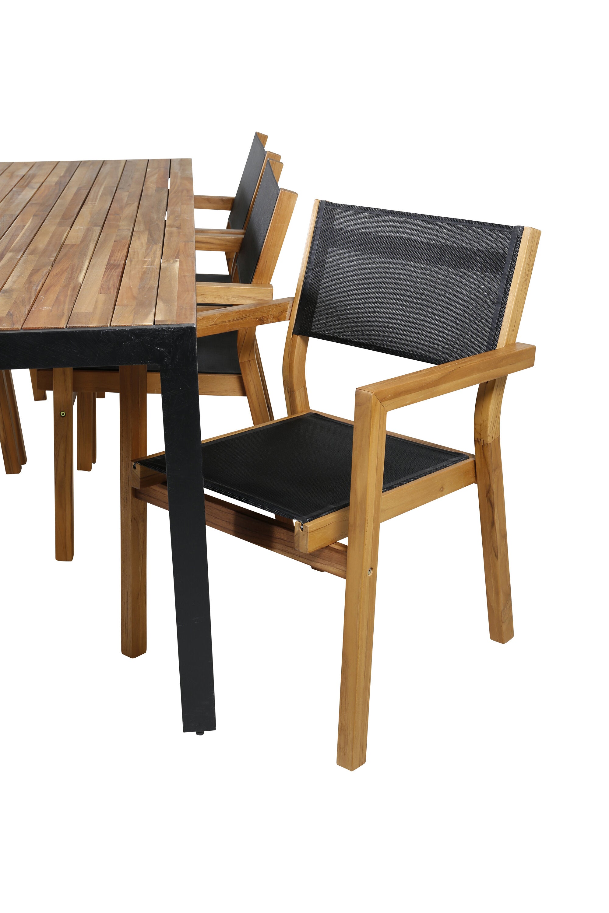 Bois Jídelní stůl 205*90cm - Černé nohy / Akácie + Stohovací židle Venice - Teak / Černá textilní_6