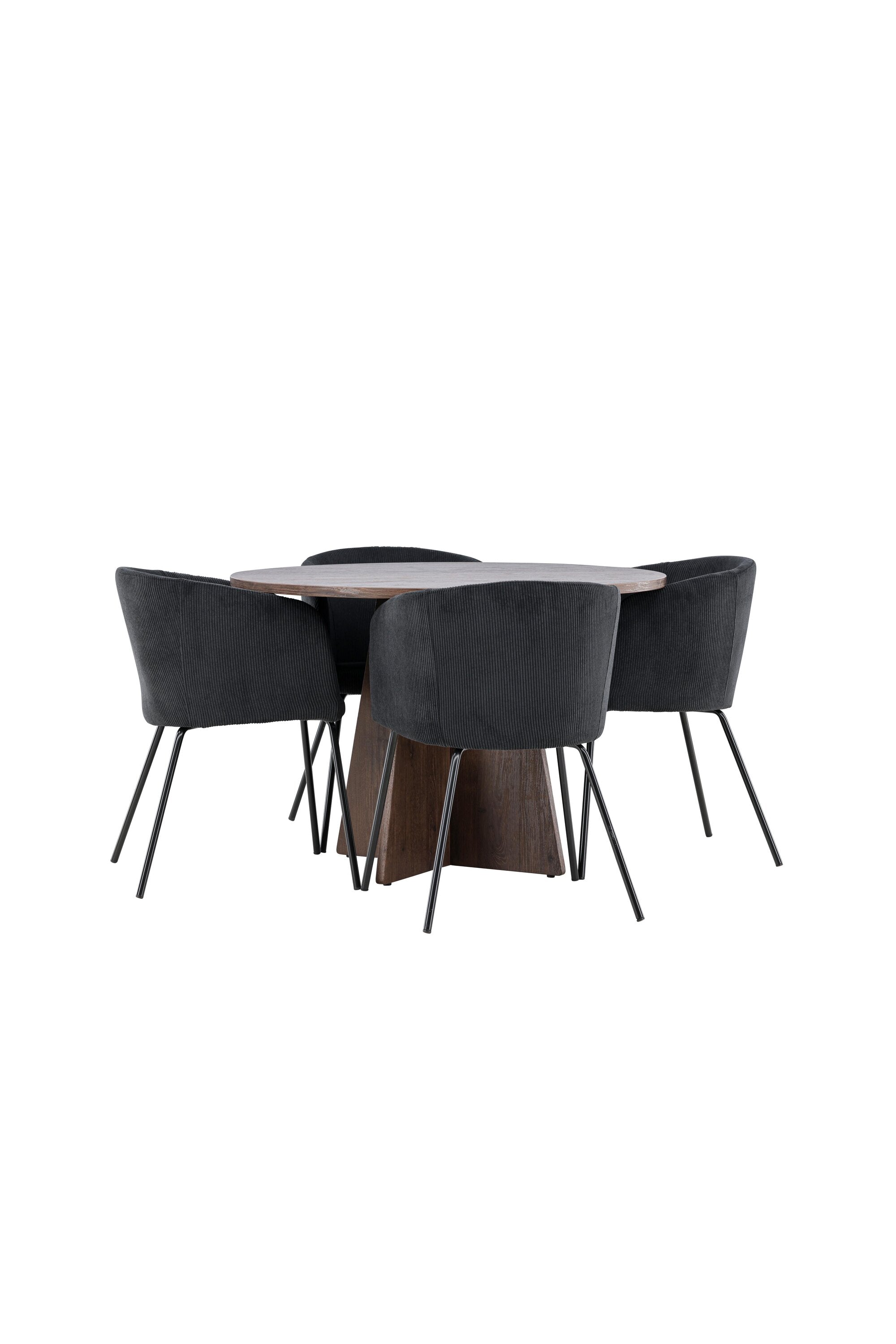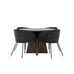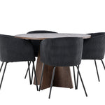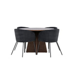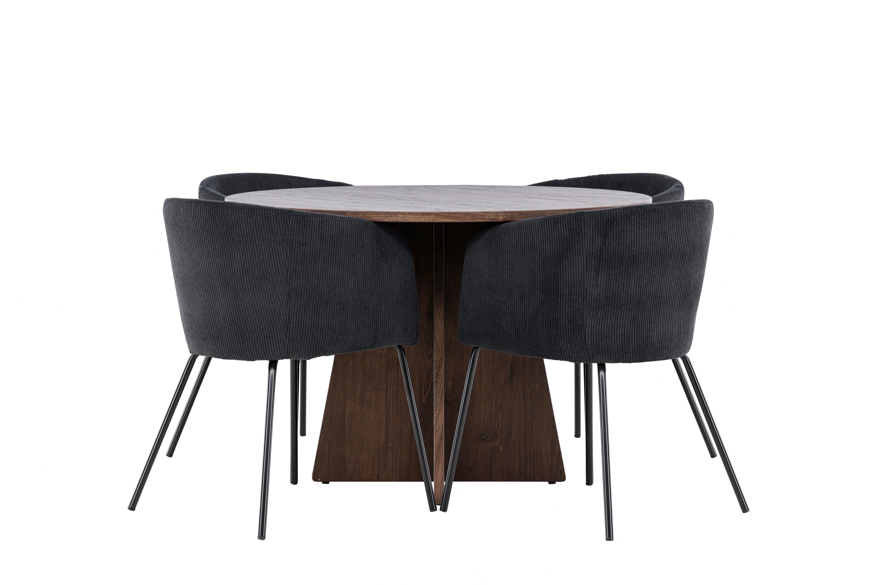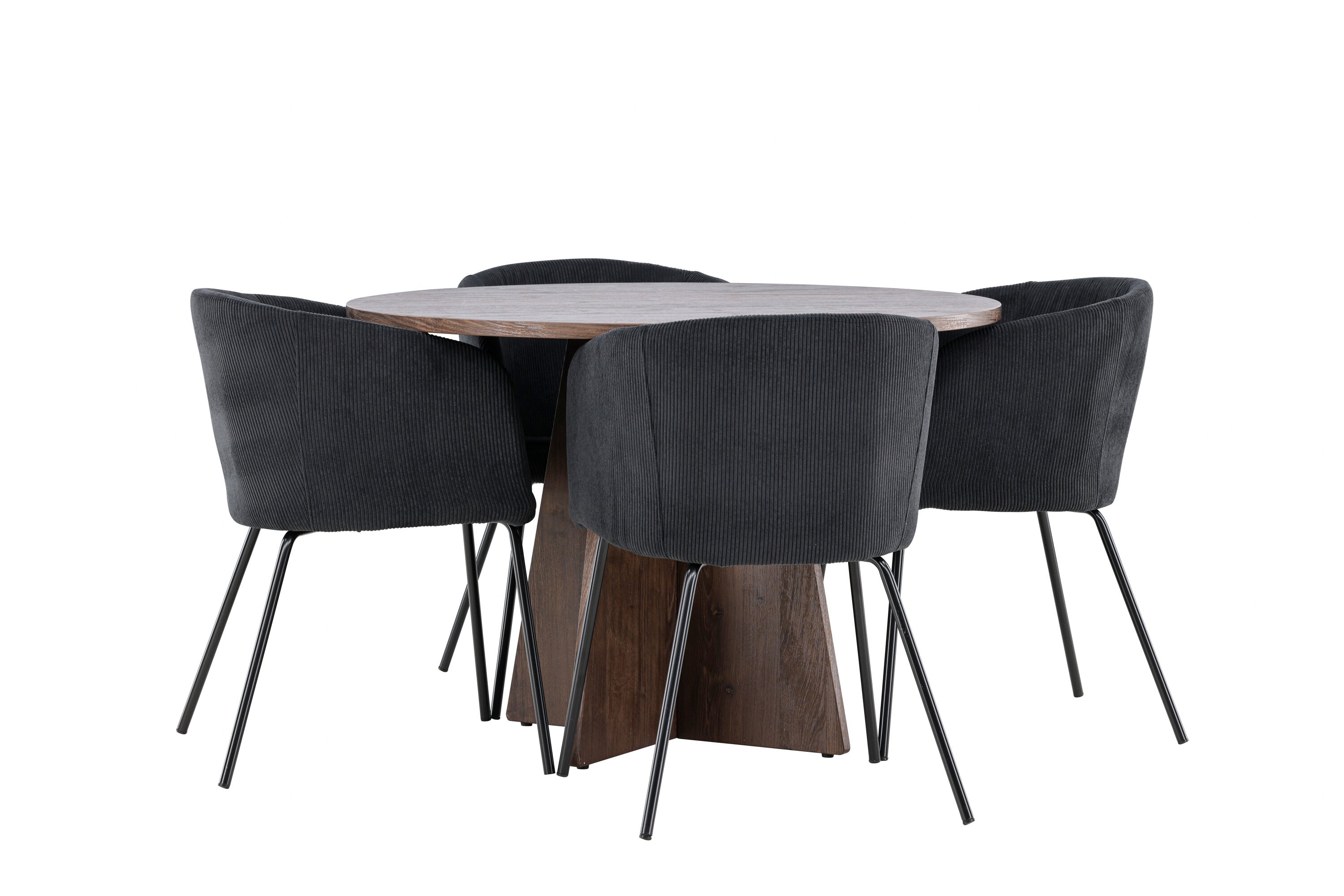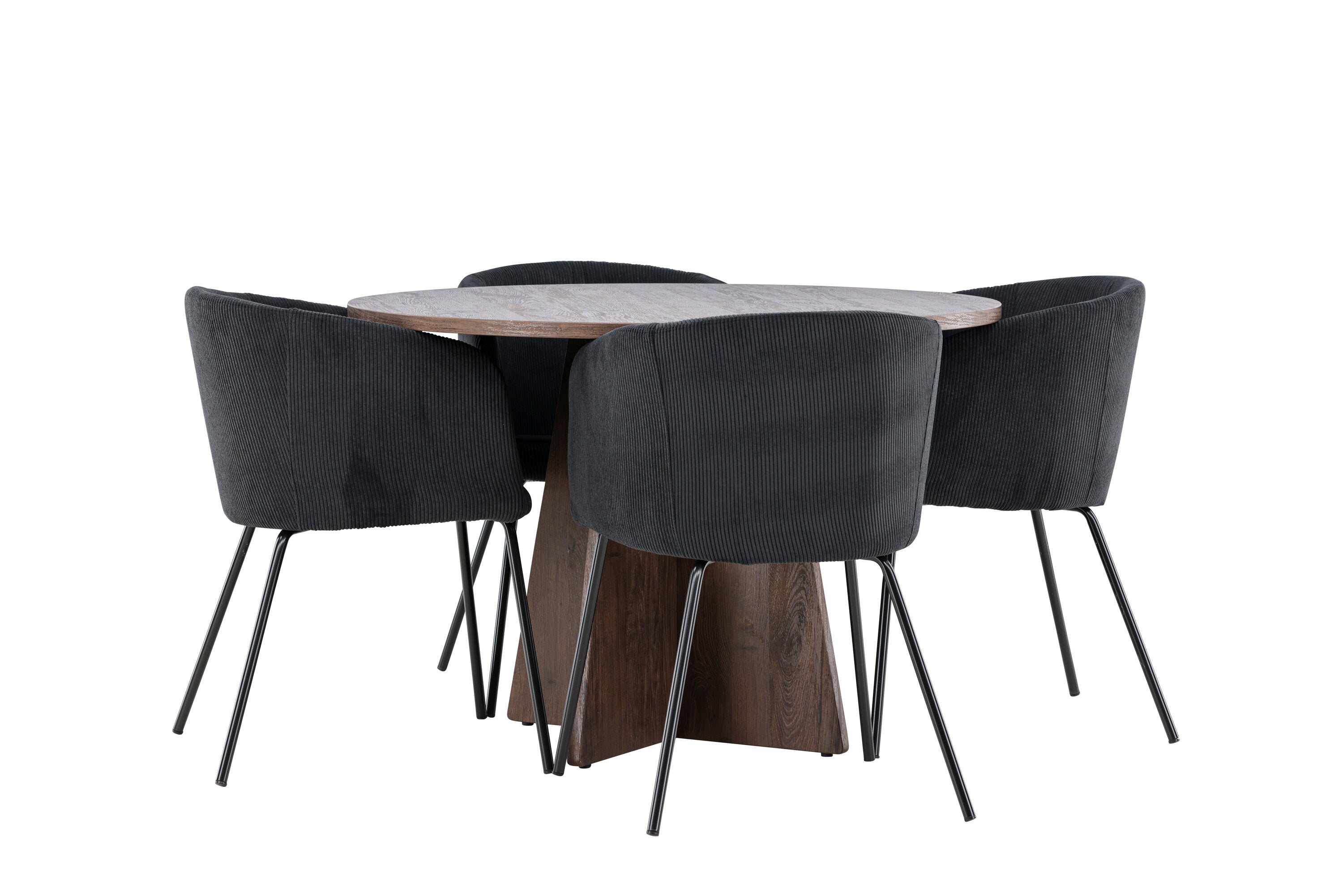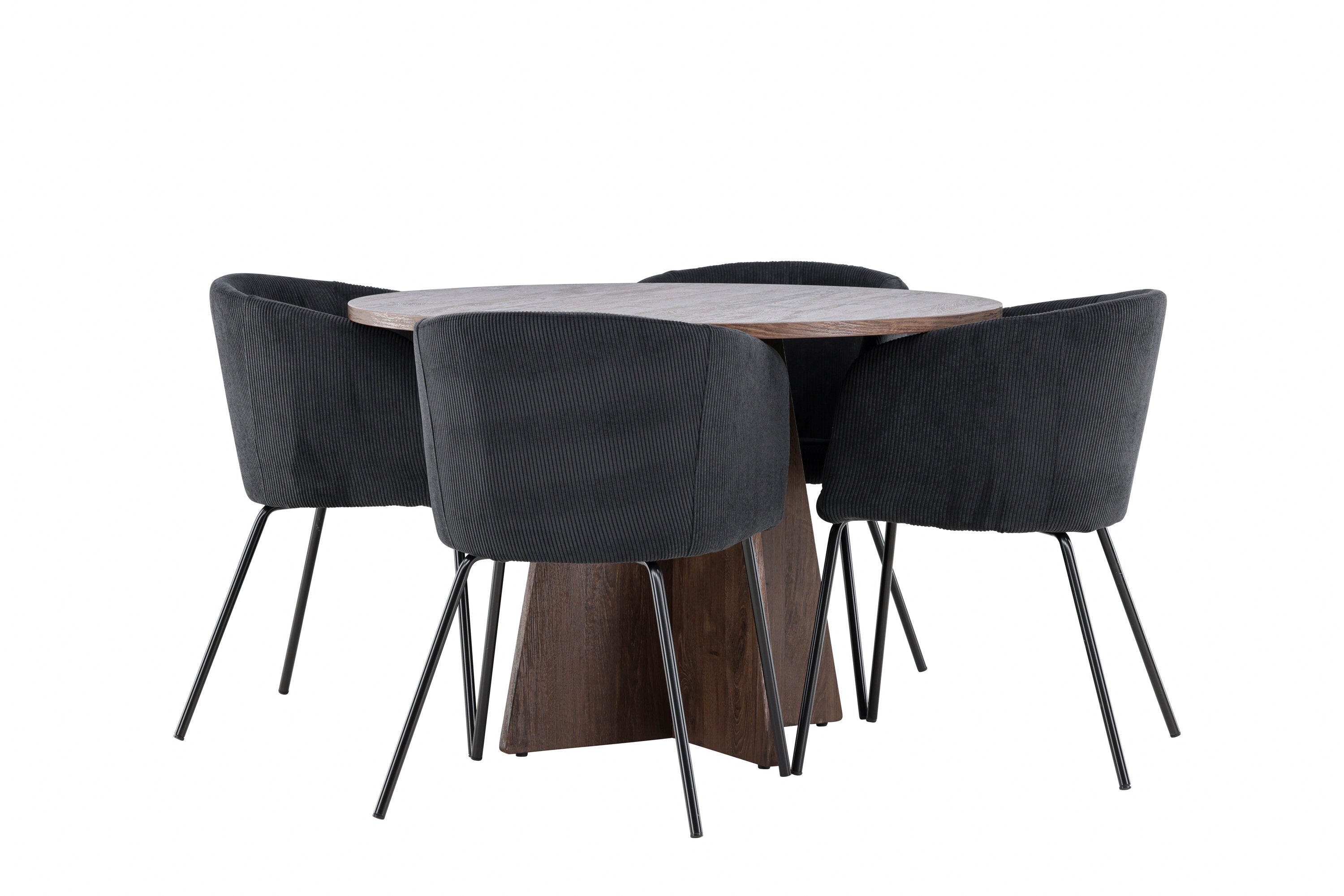 Vytvořte si elegantní a moderní jídelní kout s naší exkluzivní jídelní sadou, která kombinuje elegantní stůl Bootcut se sofistikovanými židlemi Berit. Tato jídelní sada je ideální jak pro každodenní použití, tak pro zvláštní příležitosti a dodá vaší jídelně elegantní a moderní atmosféru. Stůl Bootcut, v rafinovaném mocca odstínu, je vyroben z MDF materiálu a má průměr 110 cm. Jeho kulatý tvar a robustní konstrukce z něj dělají ideální středobod vaší jídelny, ideální pro příjemné večeře a společné chvíle. Černé židle Berit jsou čalouněny luxusním manšestrem, poskytujícím pohodlí i nádech elegance. Díky měkkým a pohodlným sedadlům jsou tato křesla navržena tak, abyste si mohli vychutnat dlouhé a chutné jídlo s rodinou a přáteli. Tato jídelní souprava je dokonalým spojením stylu a funkčnosti, takže je vynikající volbou pro ty, kteří chtějí příjemný a moderní jídelní kout. Vylepšete svou jídelnu touto krásnou kombinací stolu Bootcut a židlí Berit a vytvořte si místo, kde se budou sdílet vzpomínky a radost.