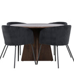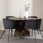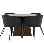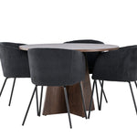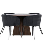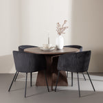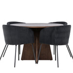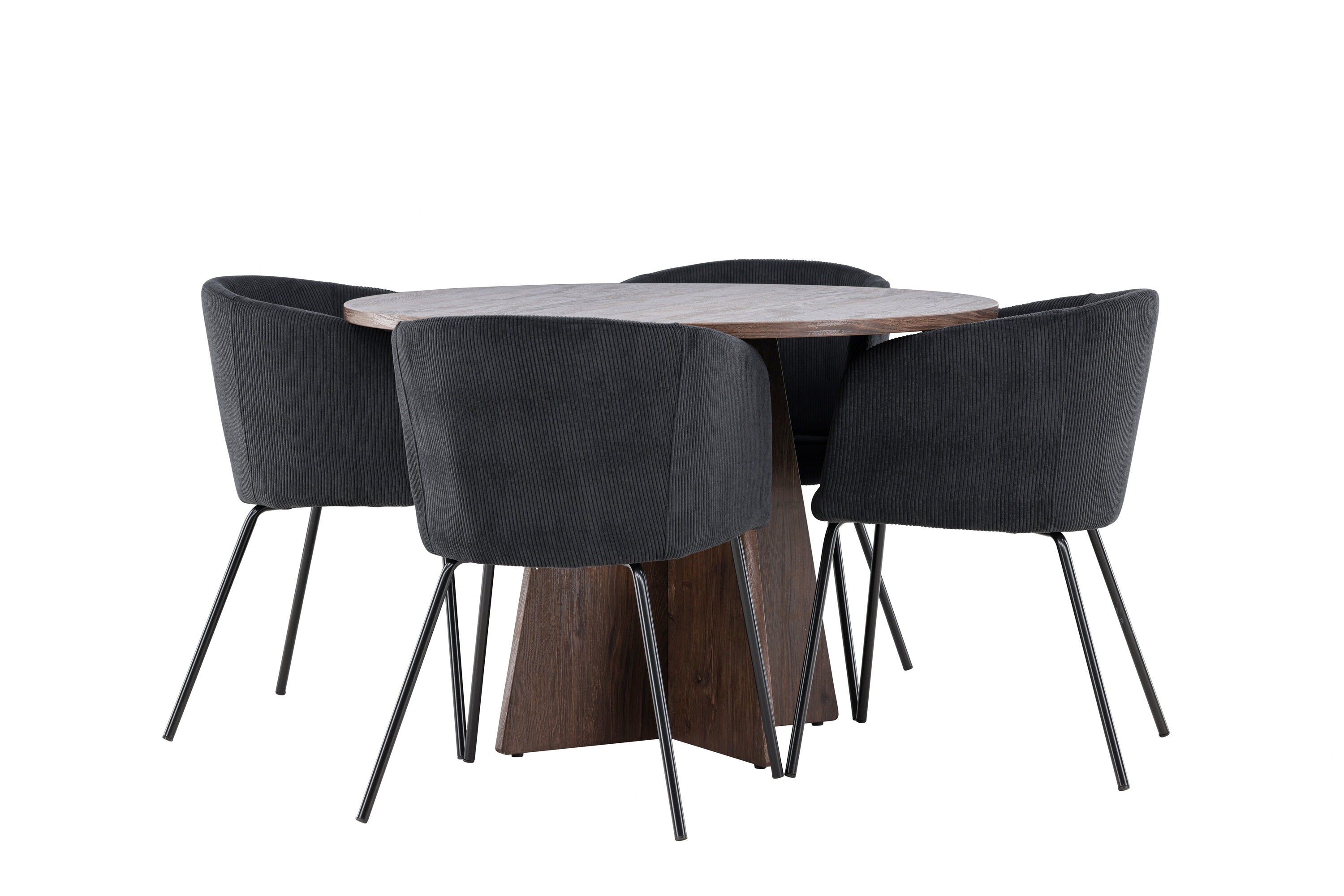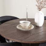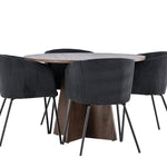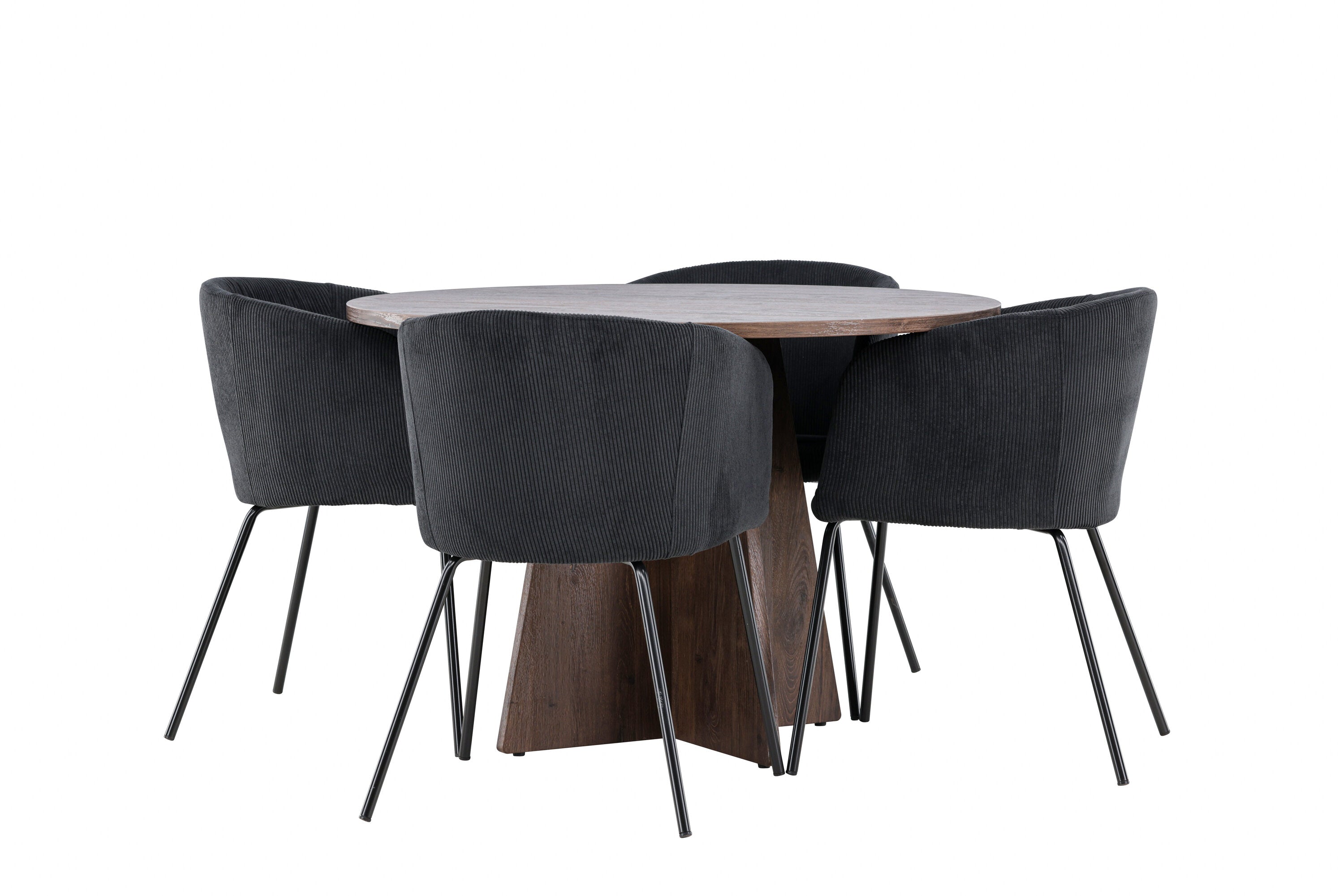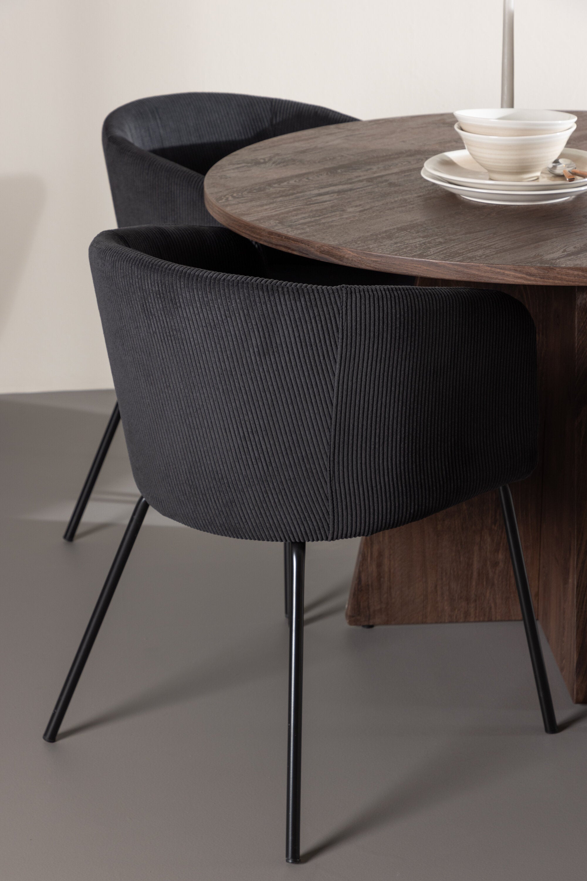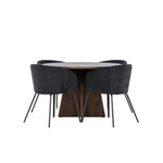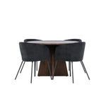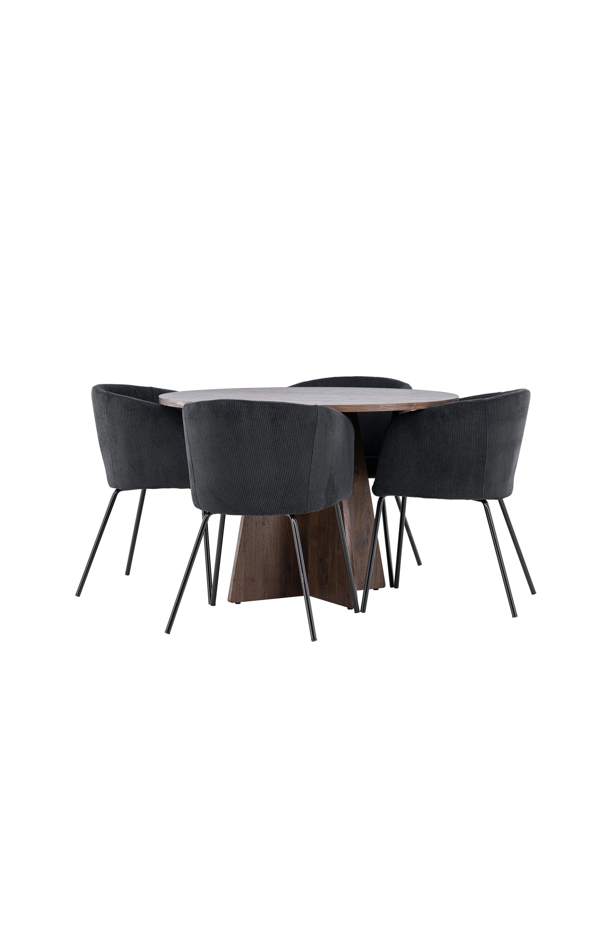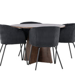 Vytvořte si elegantní a moderní jídelní kout s naší exkluzivní jídelní sadou, která kombinuje elegantní stůl Bootcut se sofistikovanými židlemi Berit. Tato jídelní sada je ideální jak pro každodenní použití, tak pro zvláštní příležitosti a dodá vaší jídelně elegantní a moderní atmosféru. Stůl Bootcut, v rafinovaném mocca odstínu, je vyroben z MDF materiálu a má průměr 110 cm. Jeho kulatý tvar a robustní konstrukce z něj dělají ideální středobod vaší jídelny, ideální pro příjemné večeře a společné chvíle. Černé židle Berit jsou čalouněny luxusním manšestrem, poskytujícím pohodlí i nádech elegance. Díky měkkým a pohodlným sedadlům jsou tato křesla navržena tak, abyste si mohli vychutnat dlouhé a chutné jídlo s rodinou a přáteli. Tato jídelní souprava je dokonalým spojením stylu a funkčnosti, takže je vynikající volbou pro ty, kteří chtějí příjemný a moderní jídelní kout. Vylepšete svou jídelnu touto krásnou kombinací stolu Bootcut a židlí Berit a vytvořte si místo, kde se budou sdílet vzpomínky a radost.