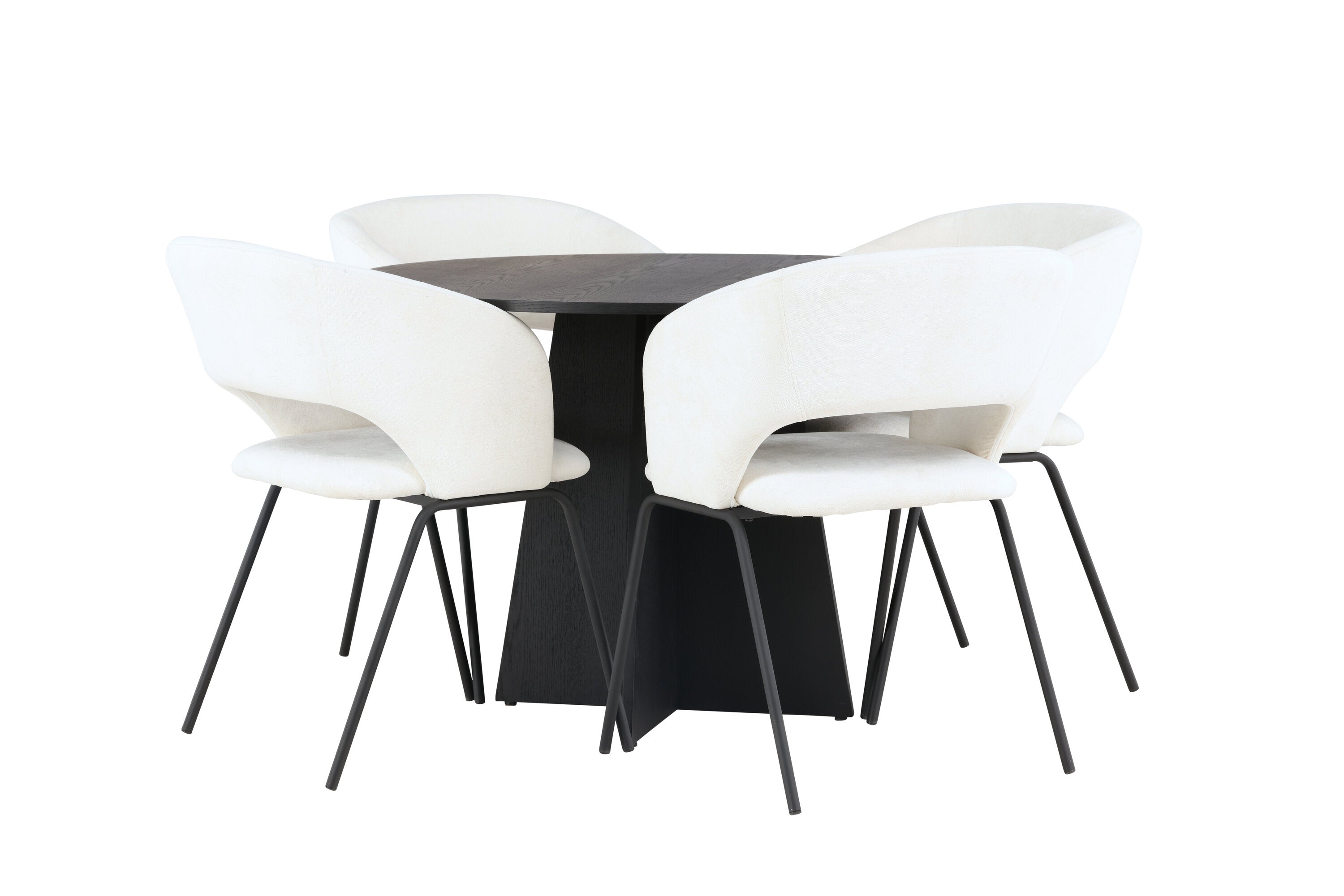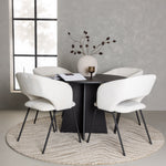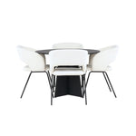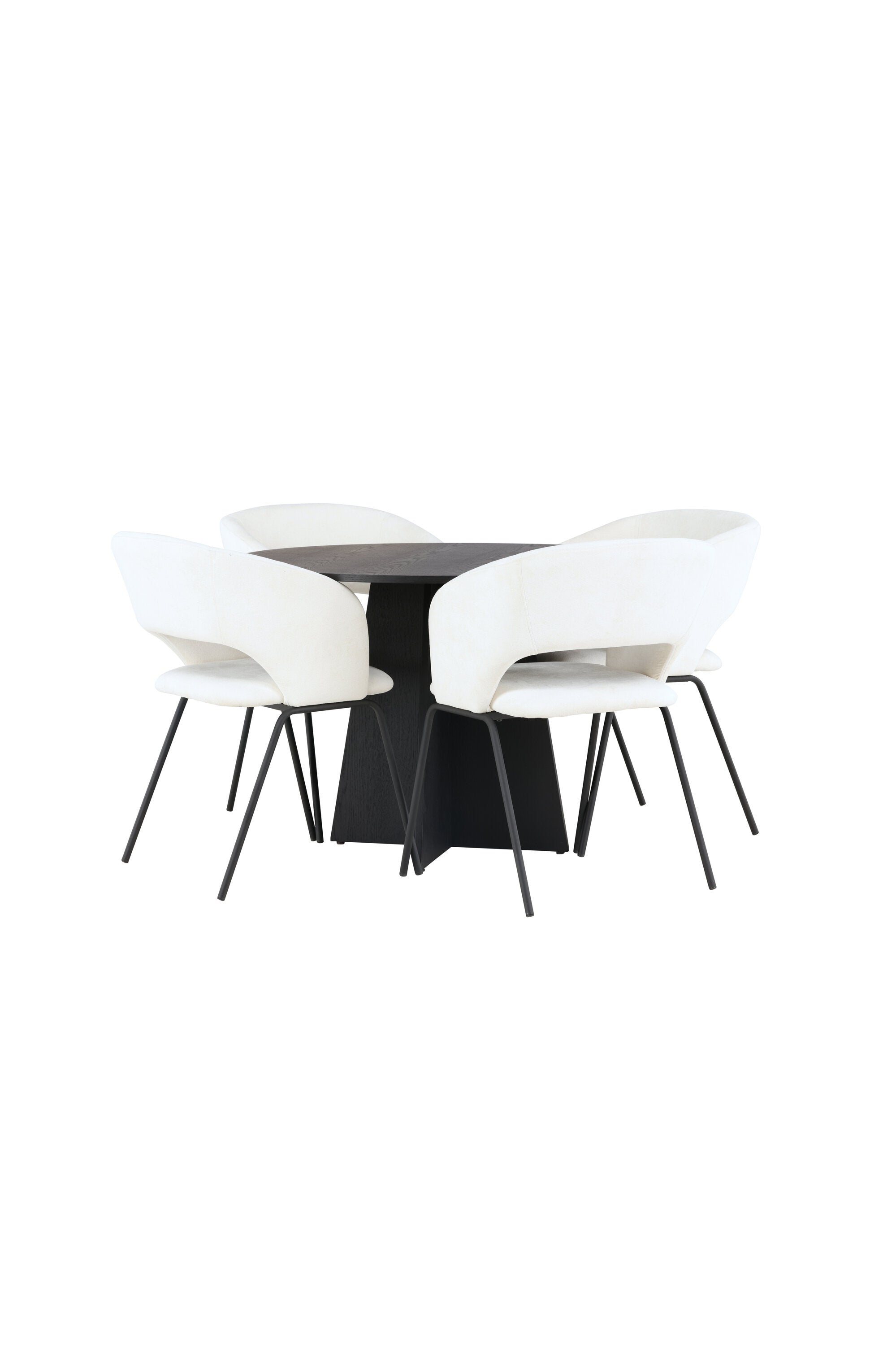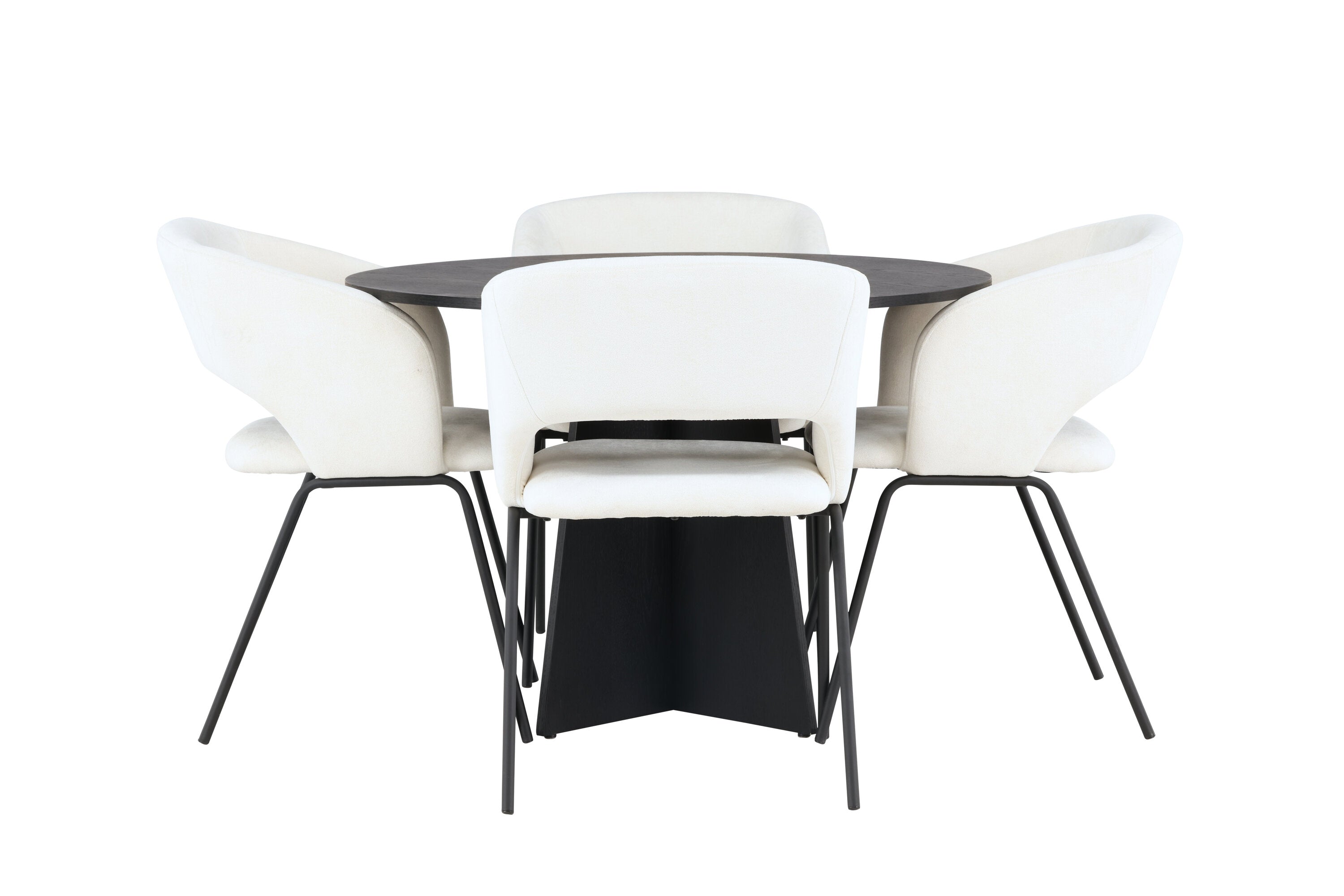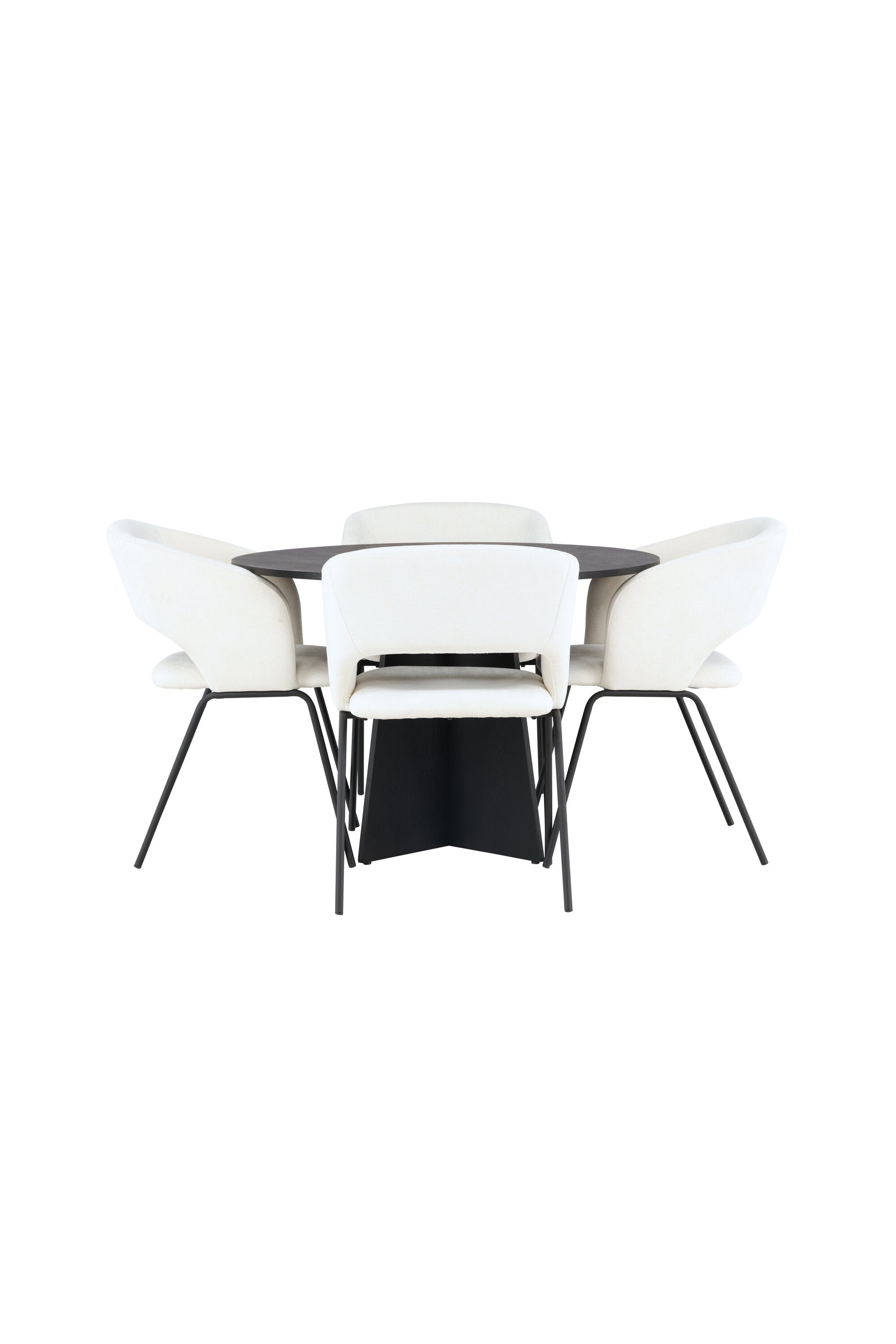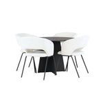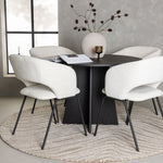 Bootcut kulatý jídelní stůl - černá / černá Fanéer + denní jídelní židle - matná černá / bílé prádlo _4
