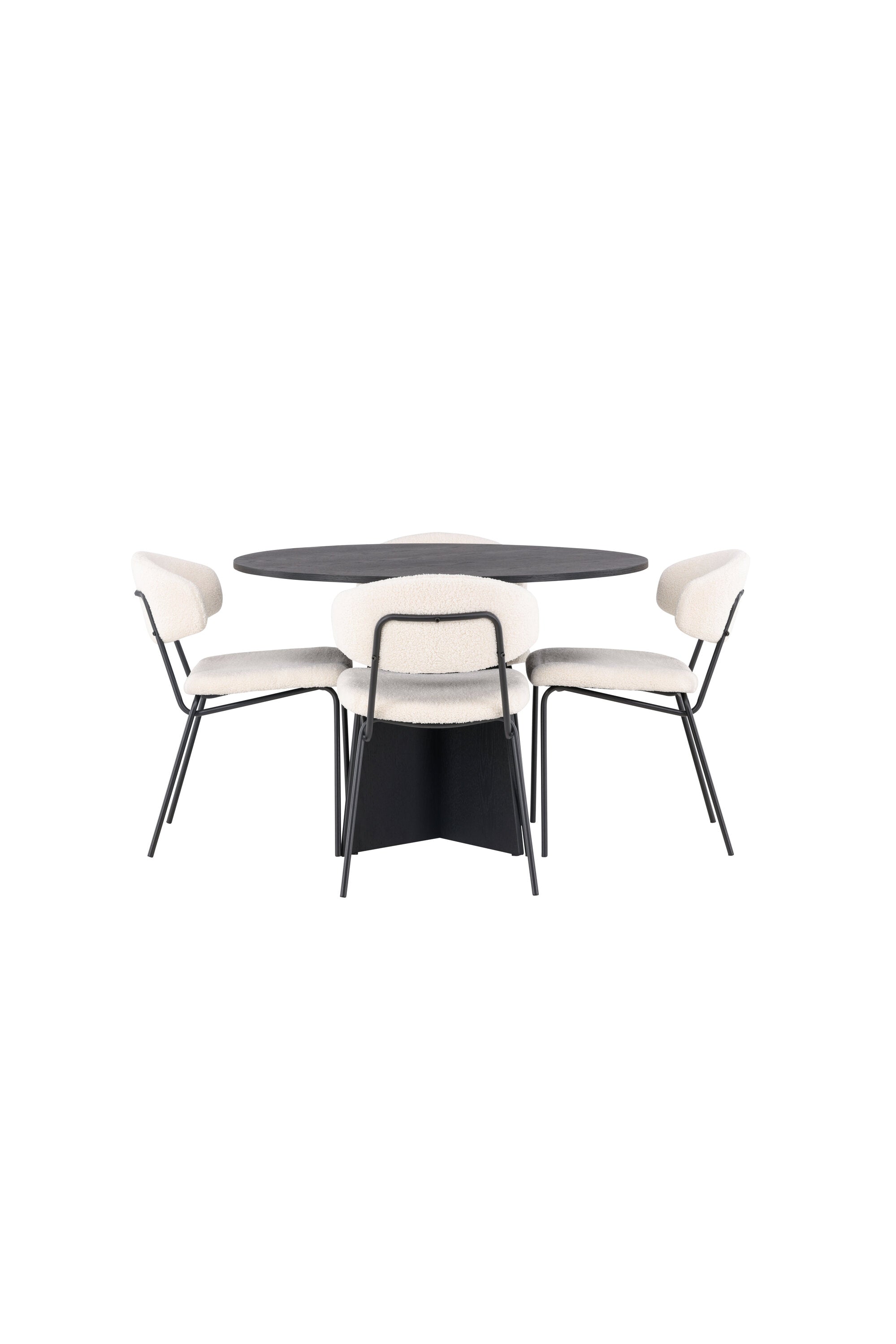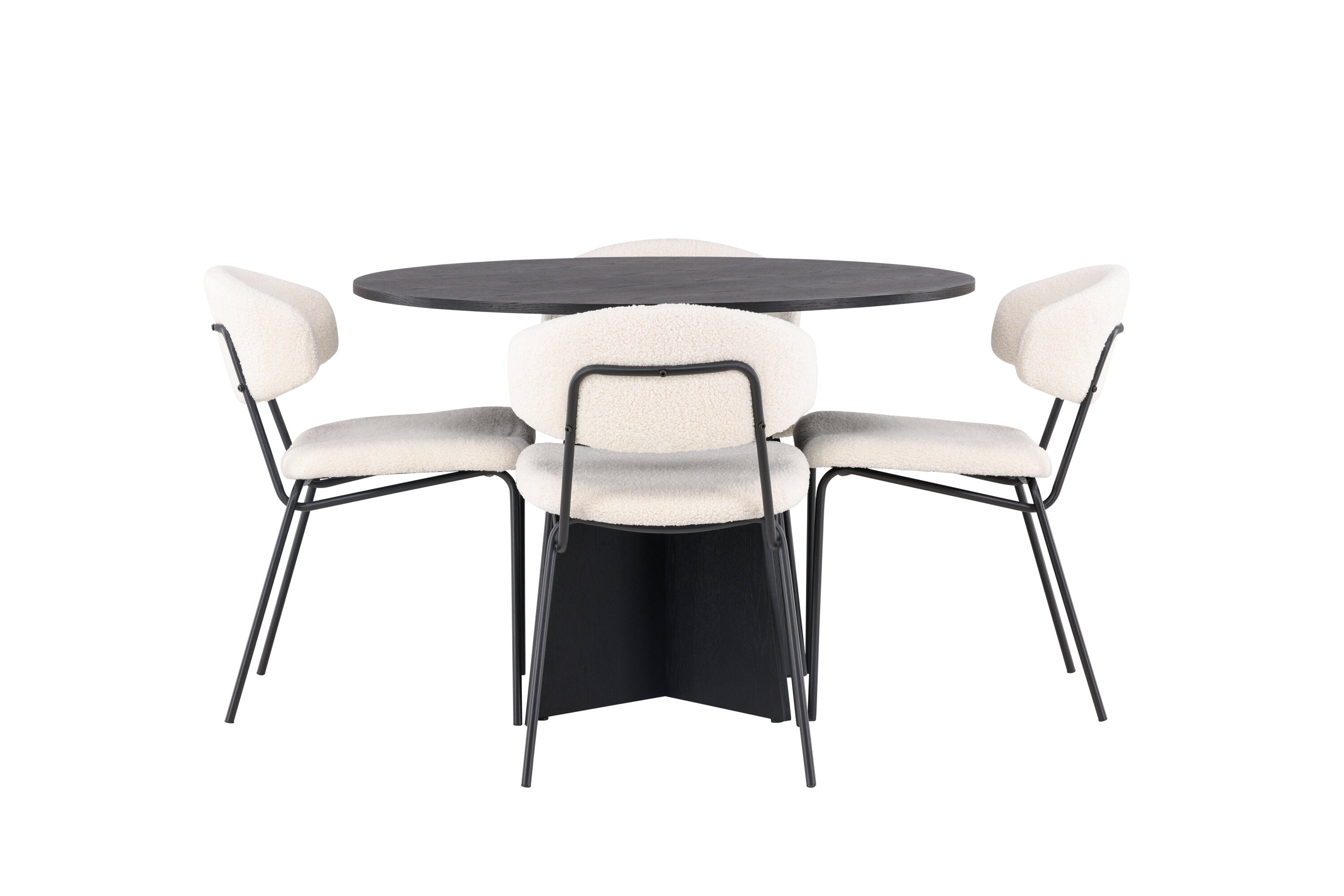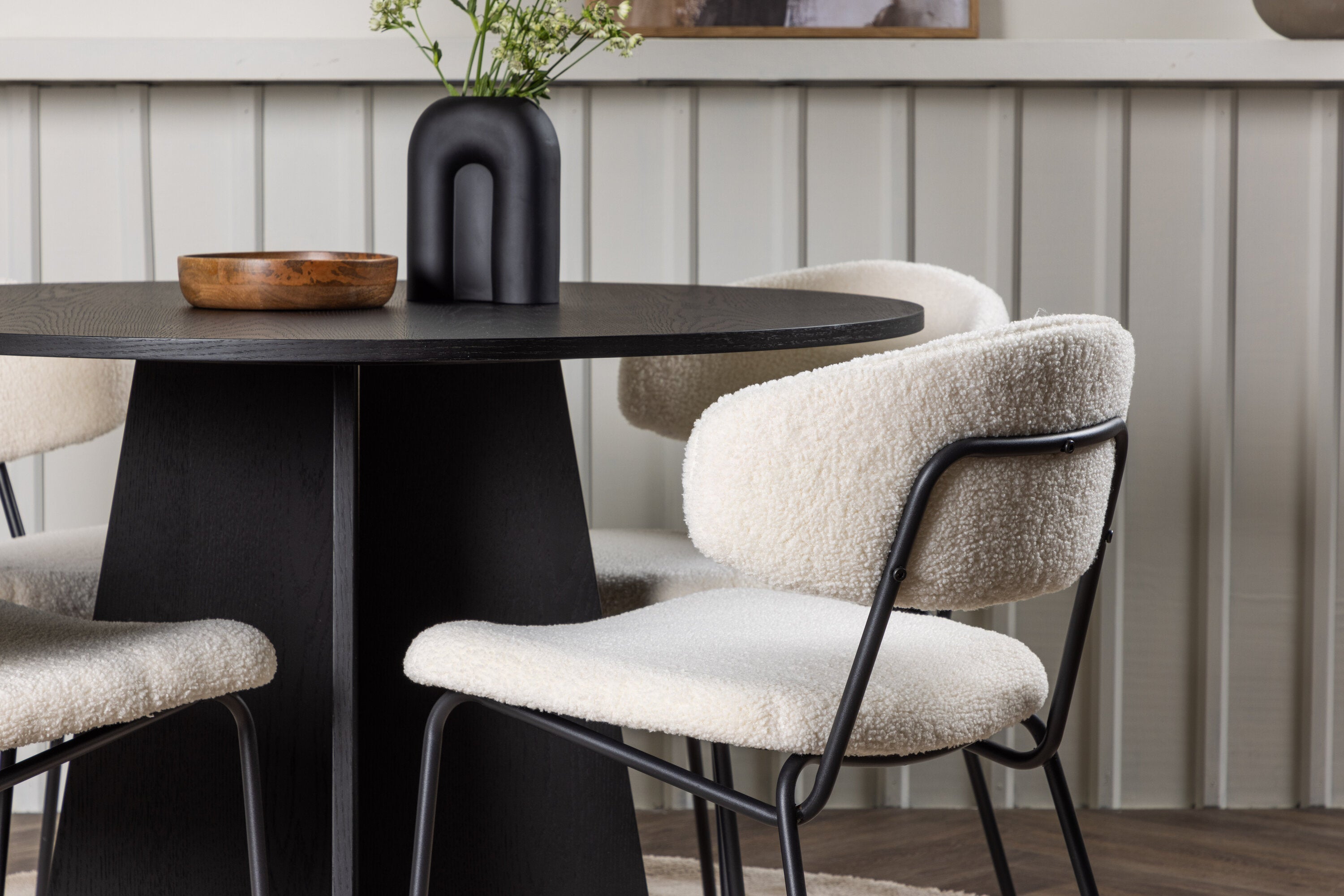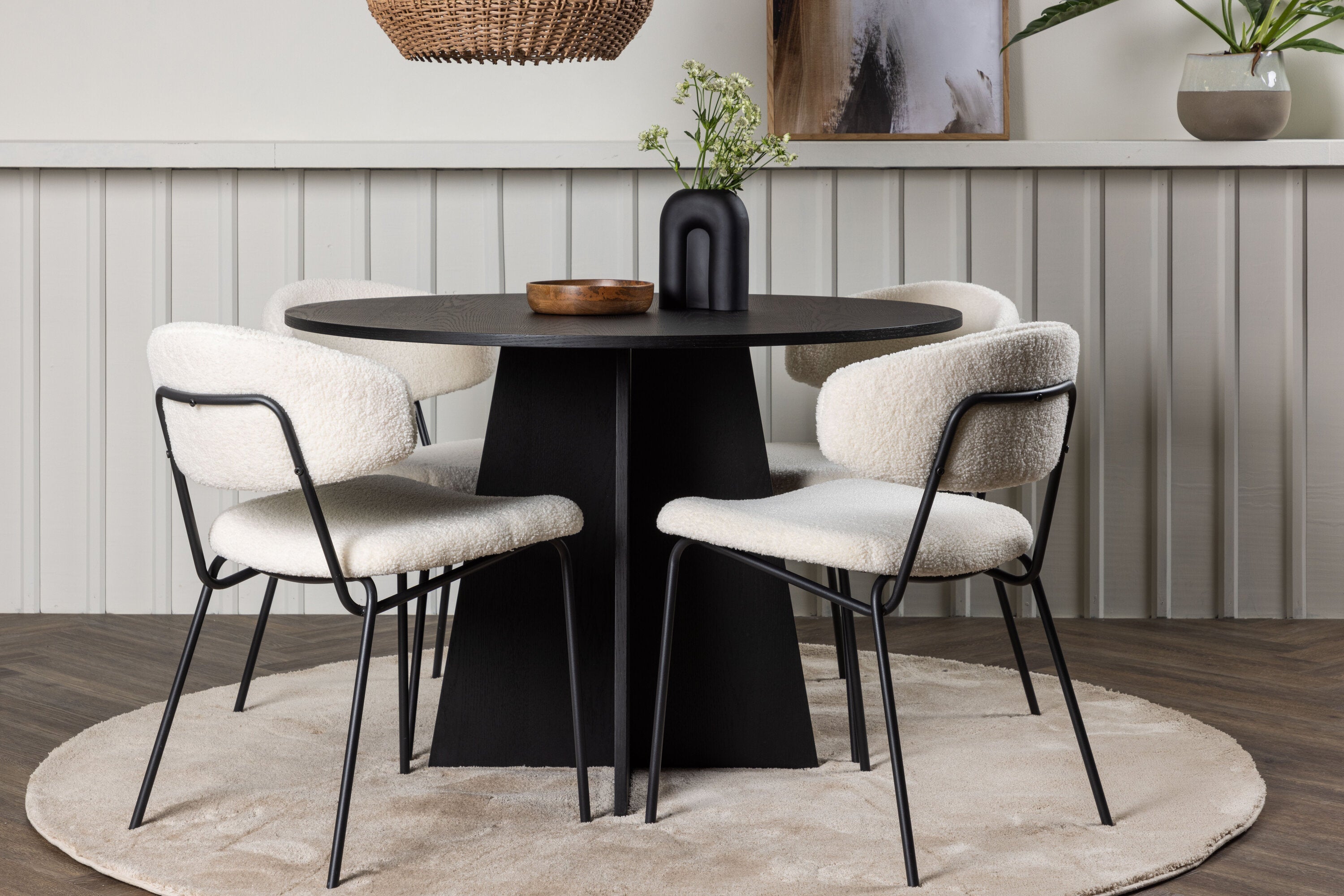 Bootcut kulatý jídelní stůl - černá / černá Fanéer + jídelní židle Chico - černá / bílá Boucle _4