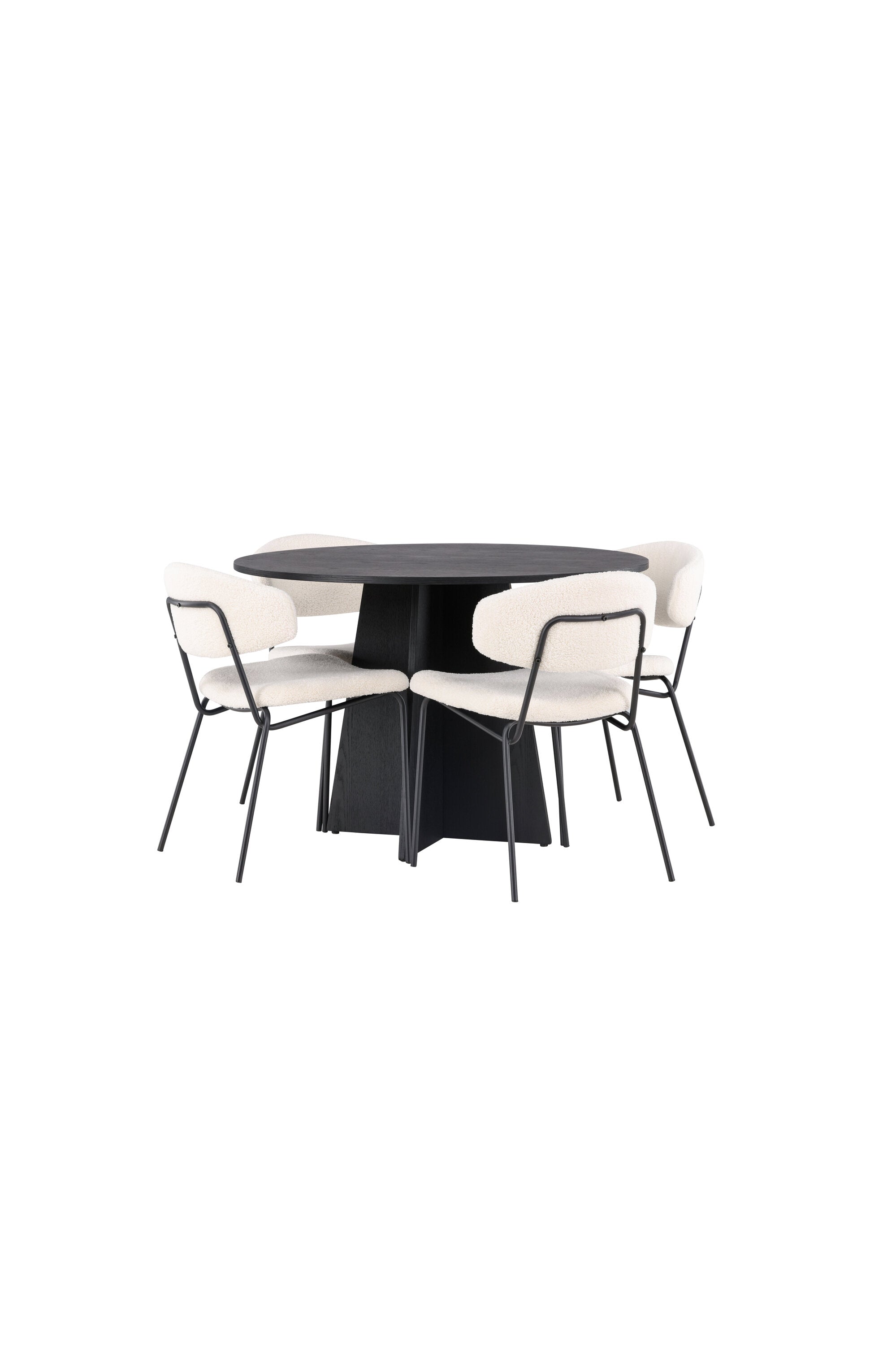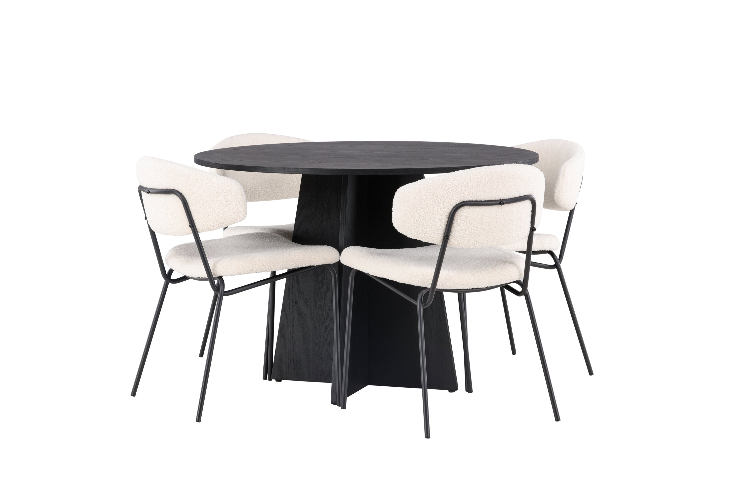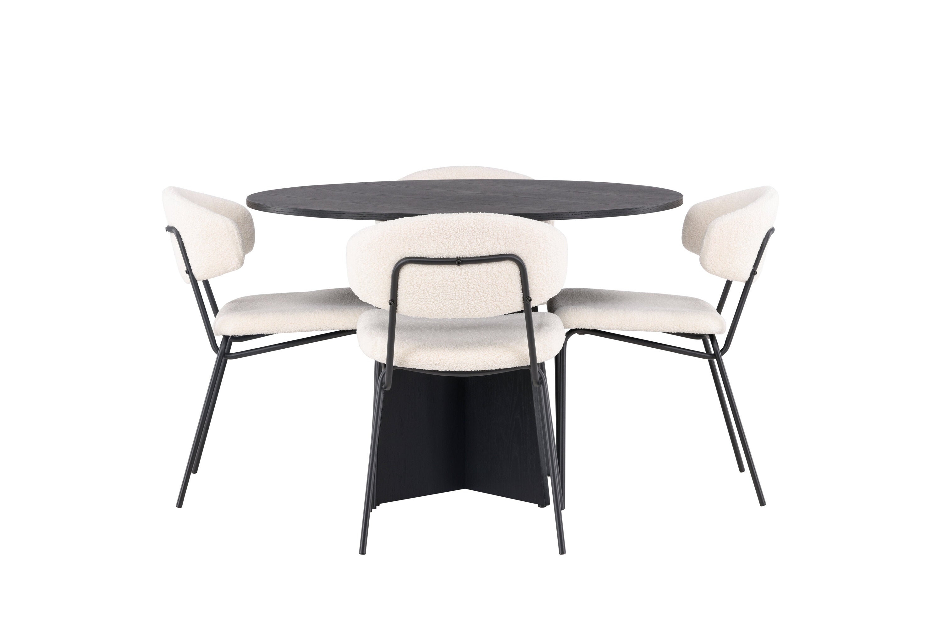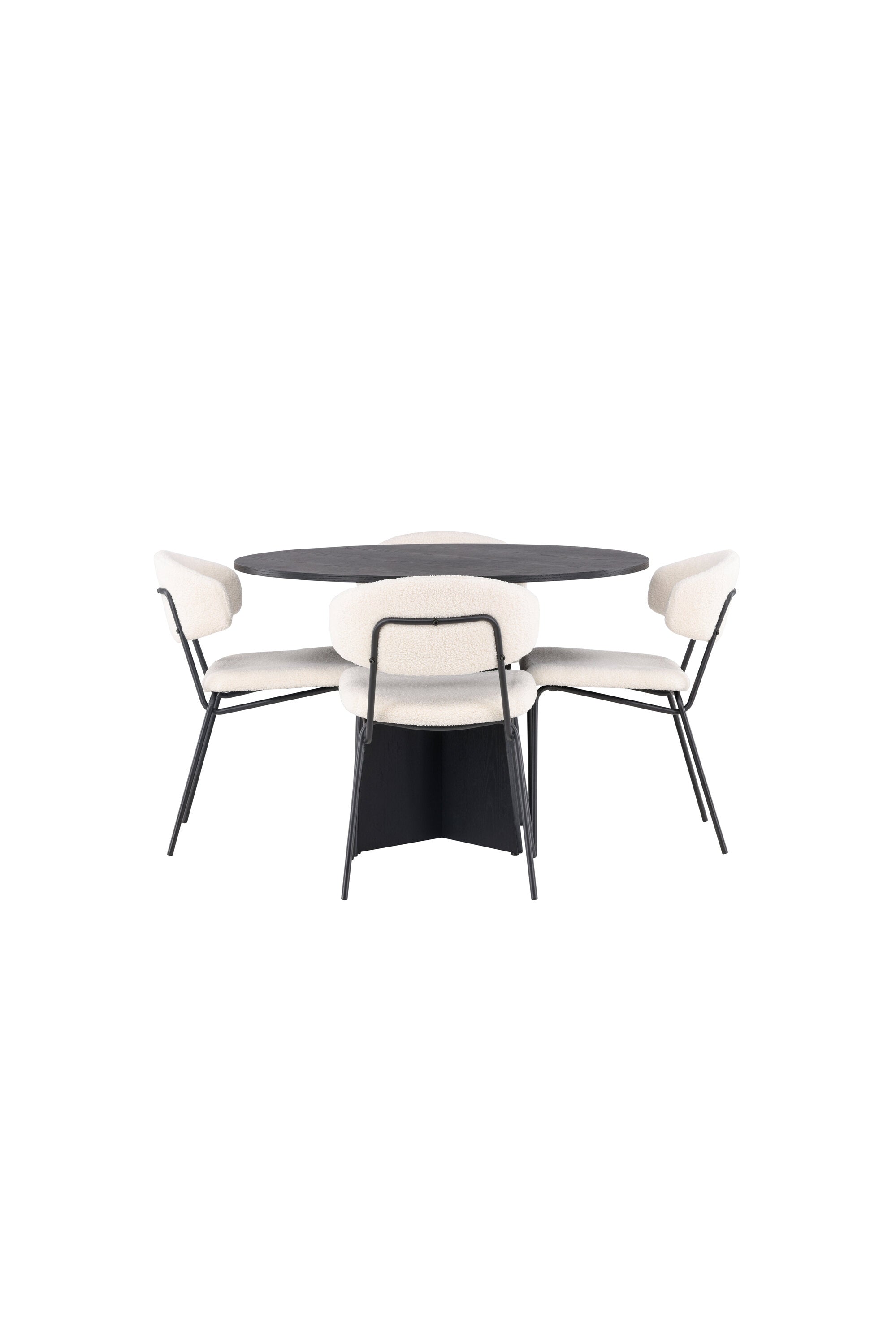 Bootcut kulatý jídelní stůl - černá / černá Fanéer + jídelní židle Chico - černá / bílá Boucle _4