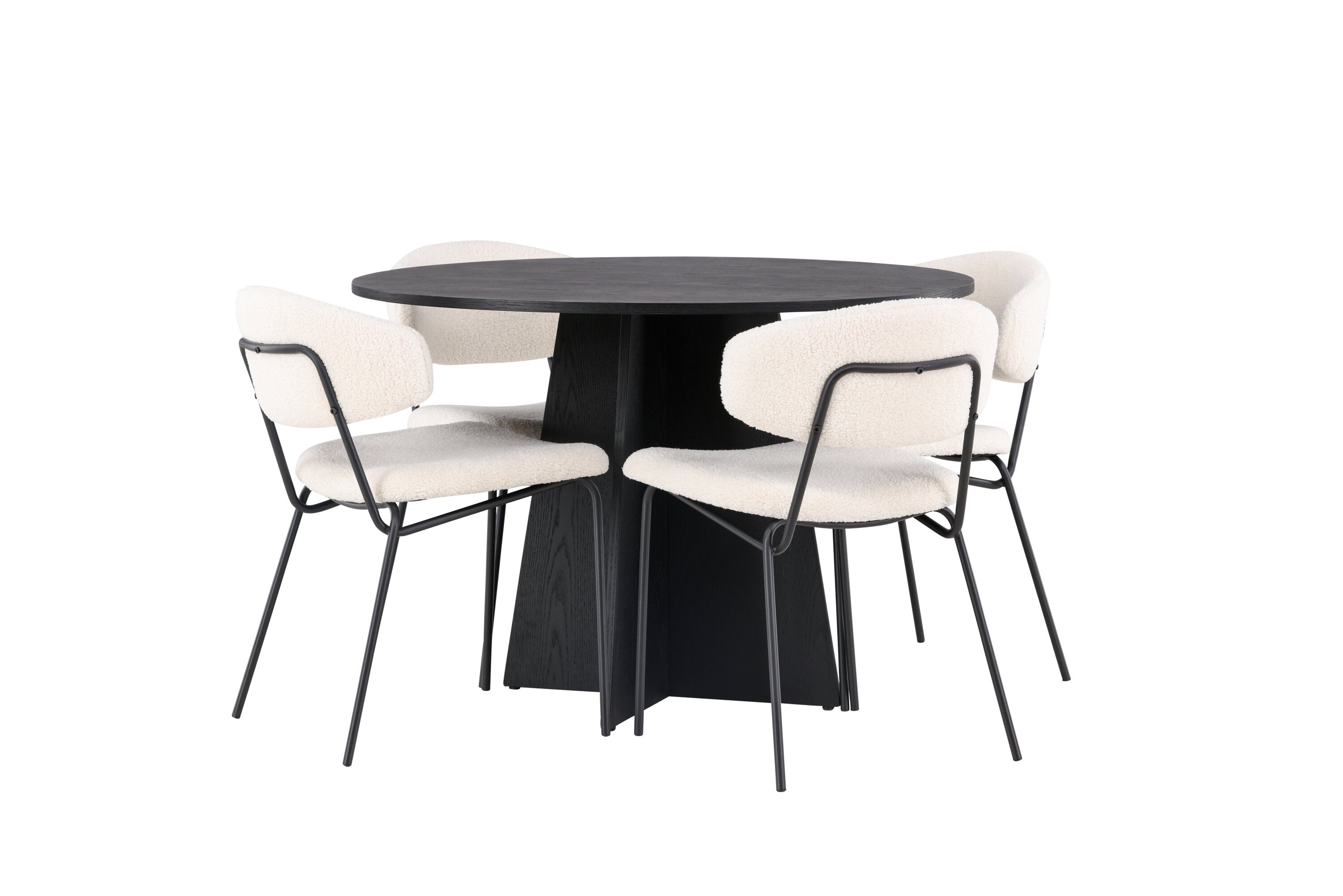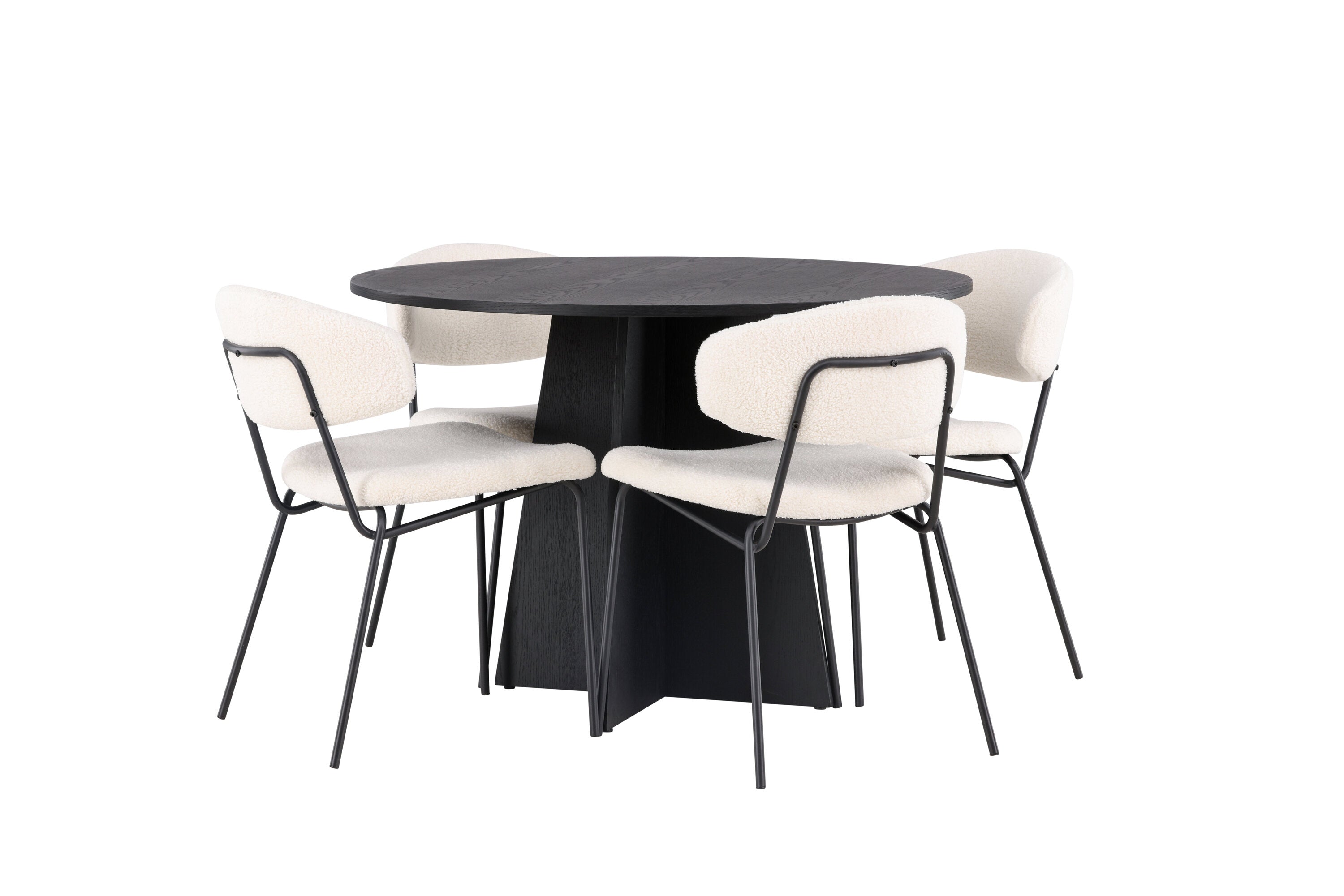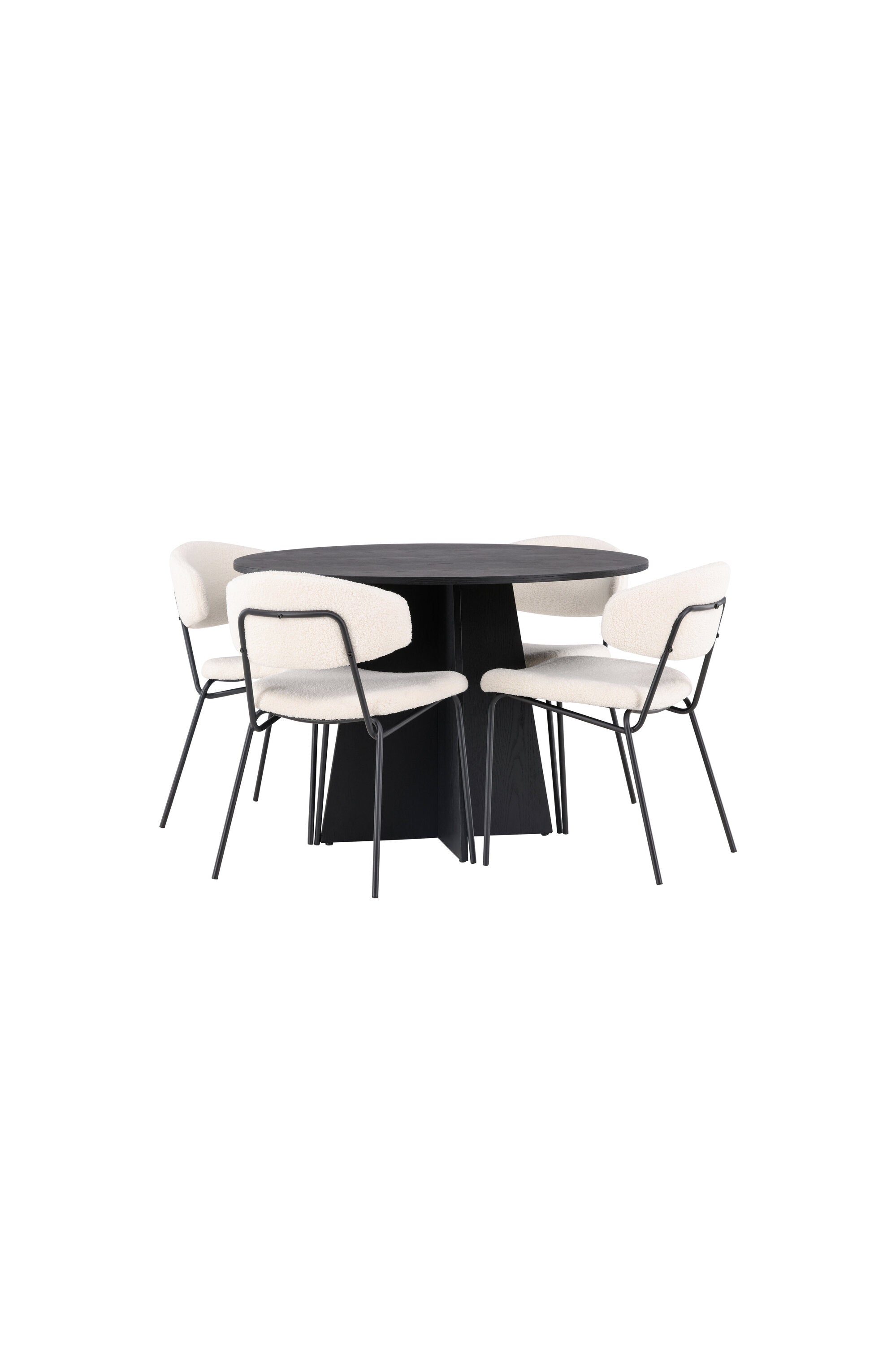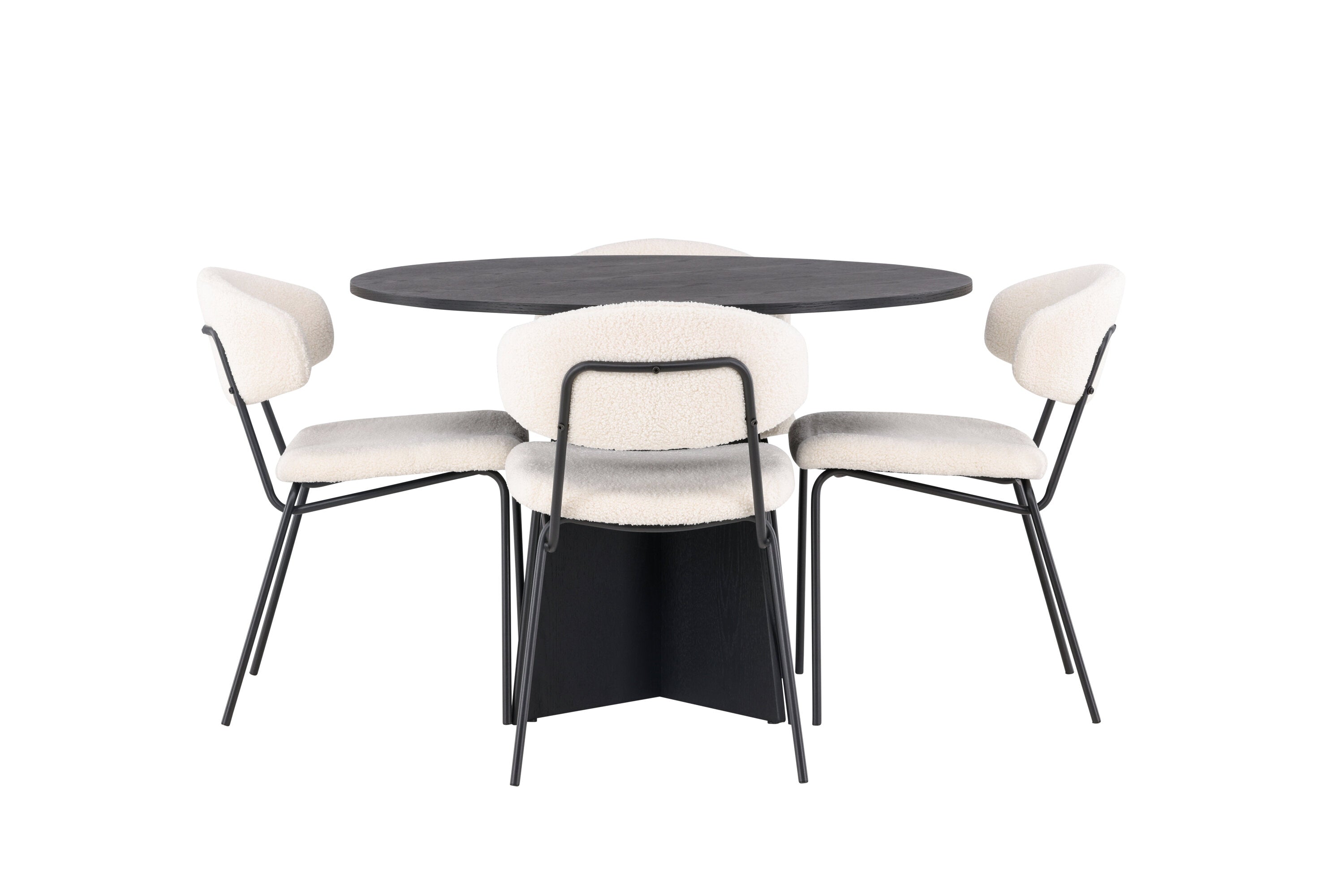 Bootcut kulatý jídelní stůl - černá / černá Fanéer + jídelní židle Chico - černá / bílá Boucle _4