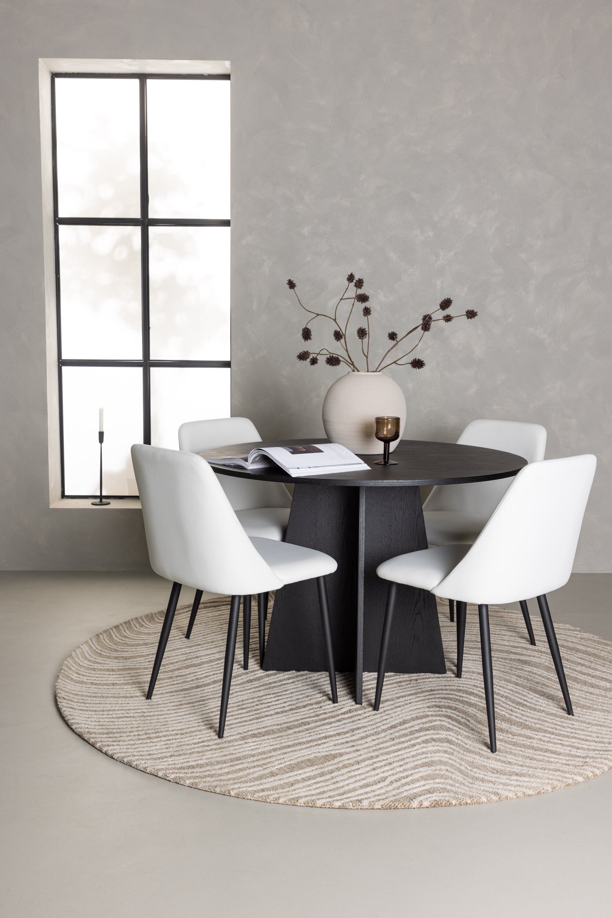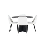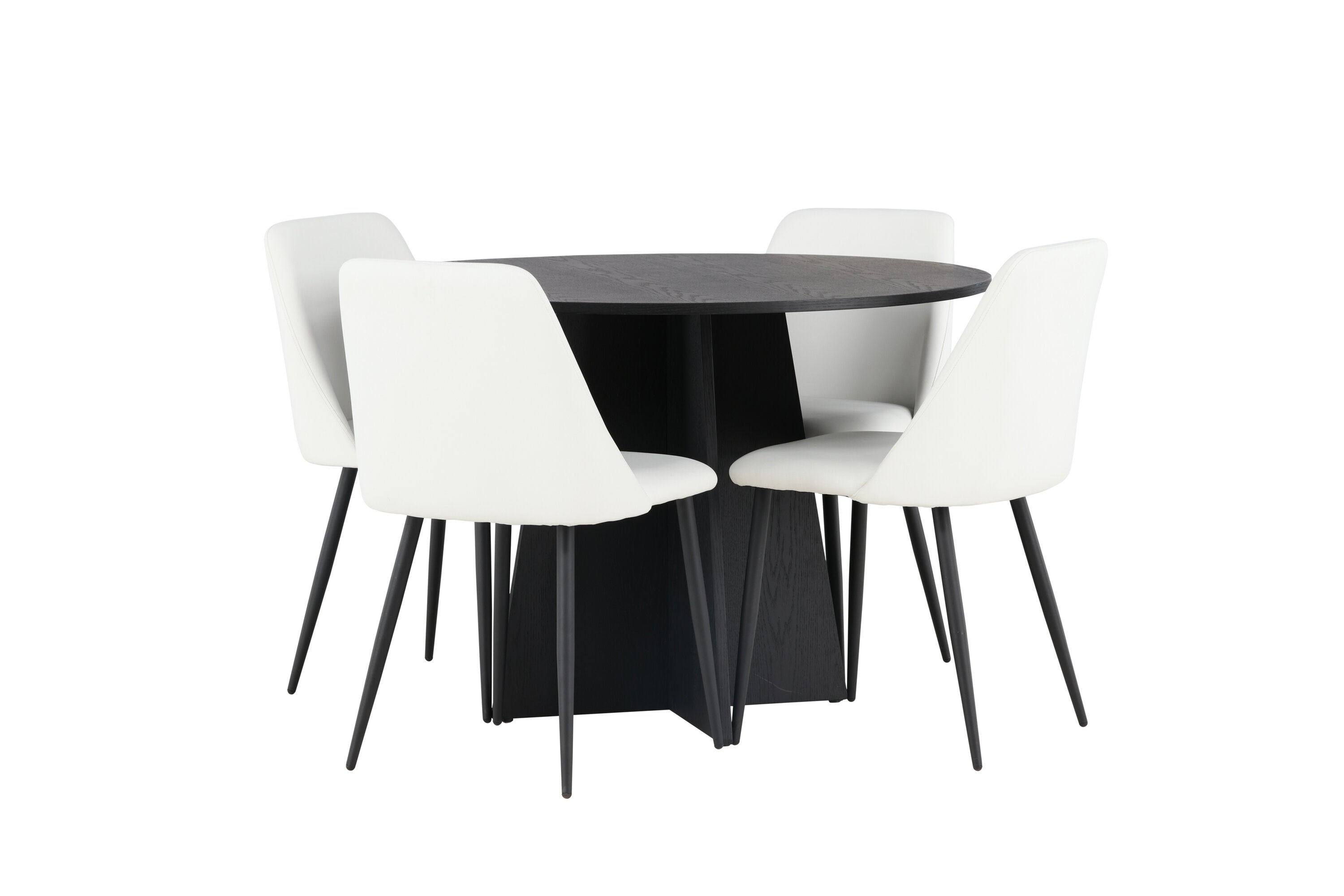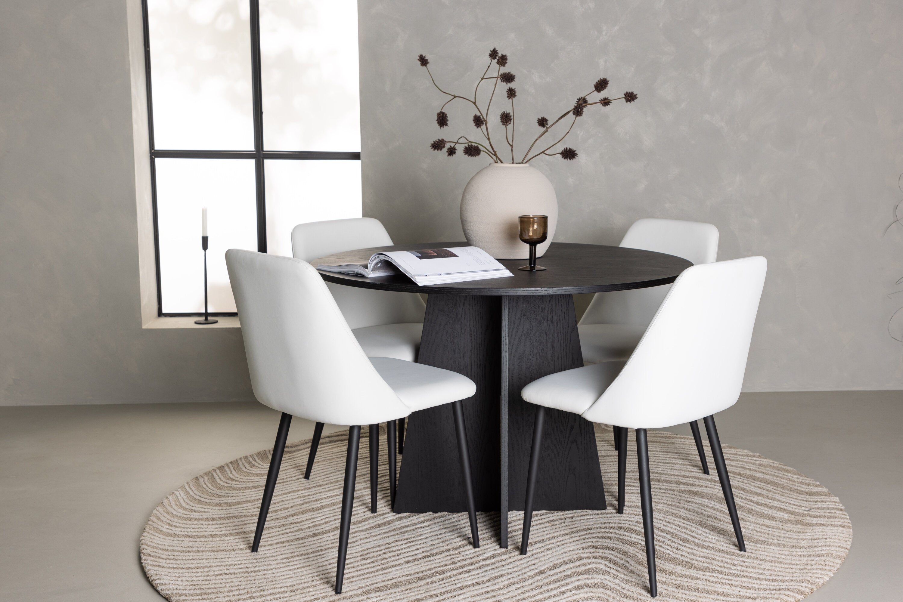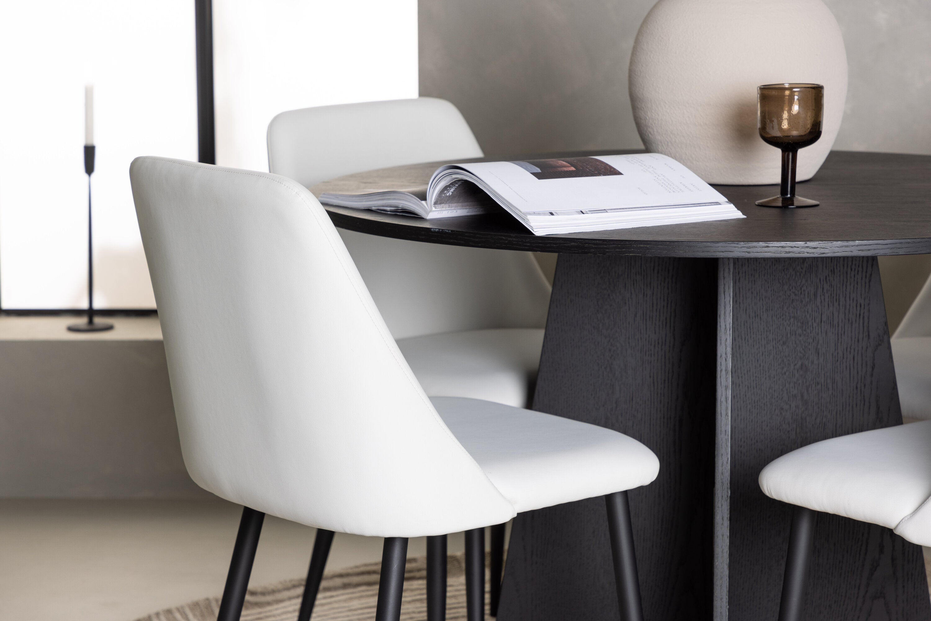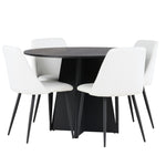 Bootcut kulatý jídelní stůl - černá / černá Fanéer + noční jídelní židle - černá / bílá PU _4