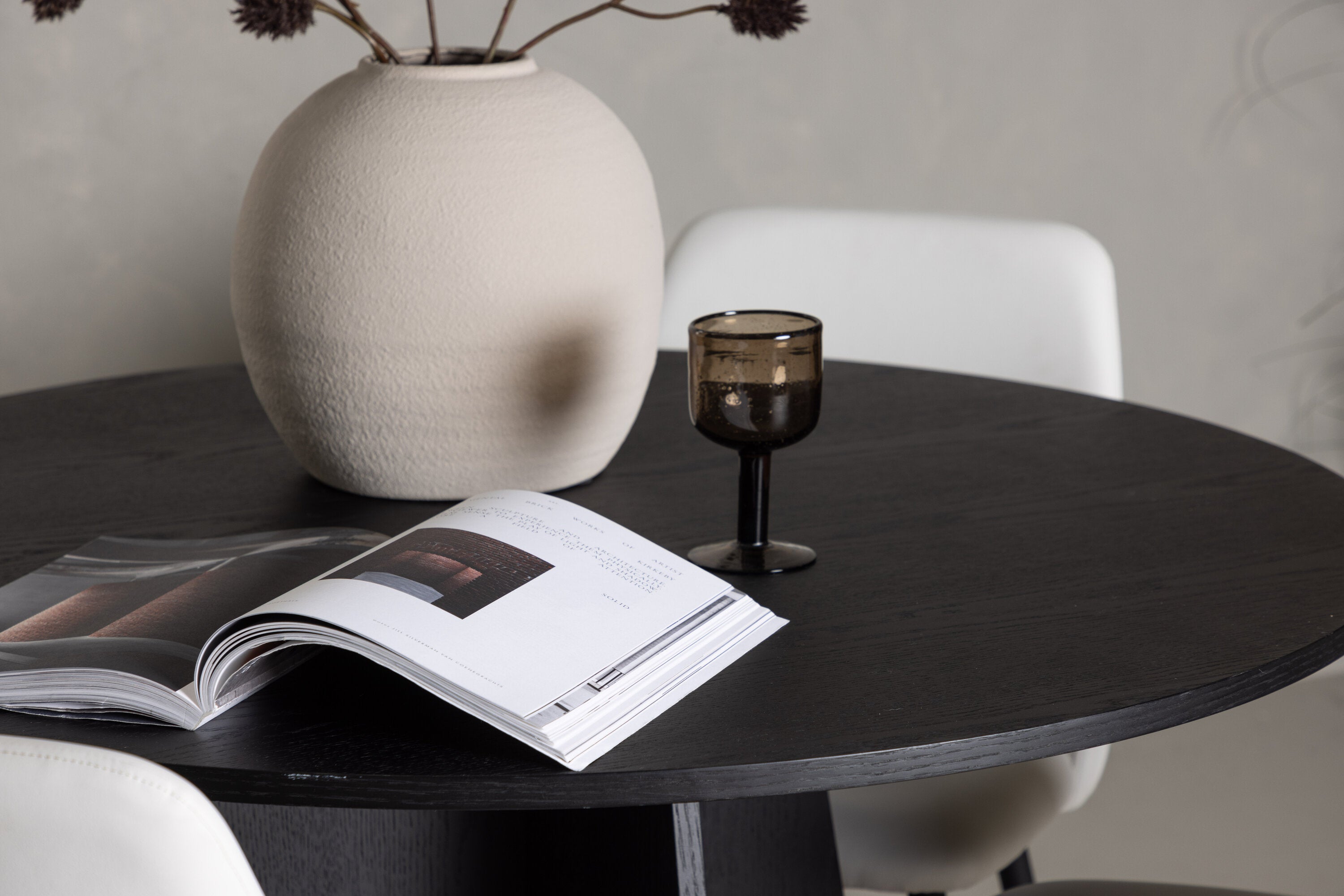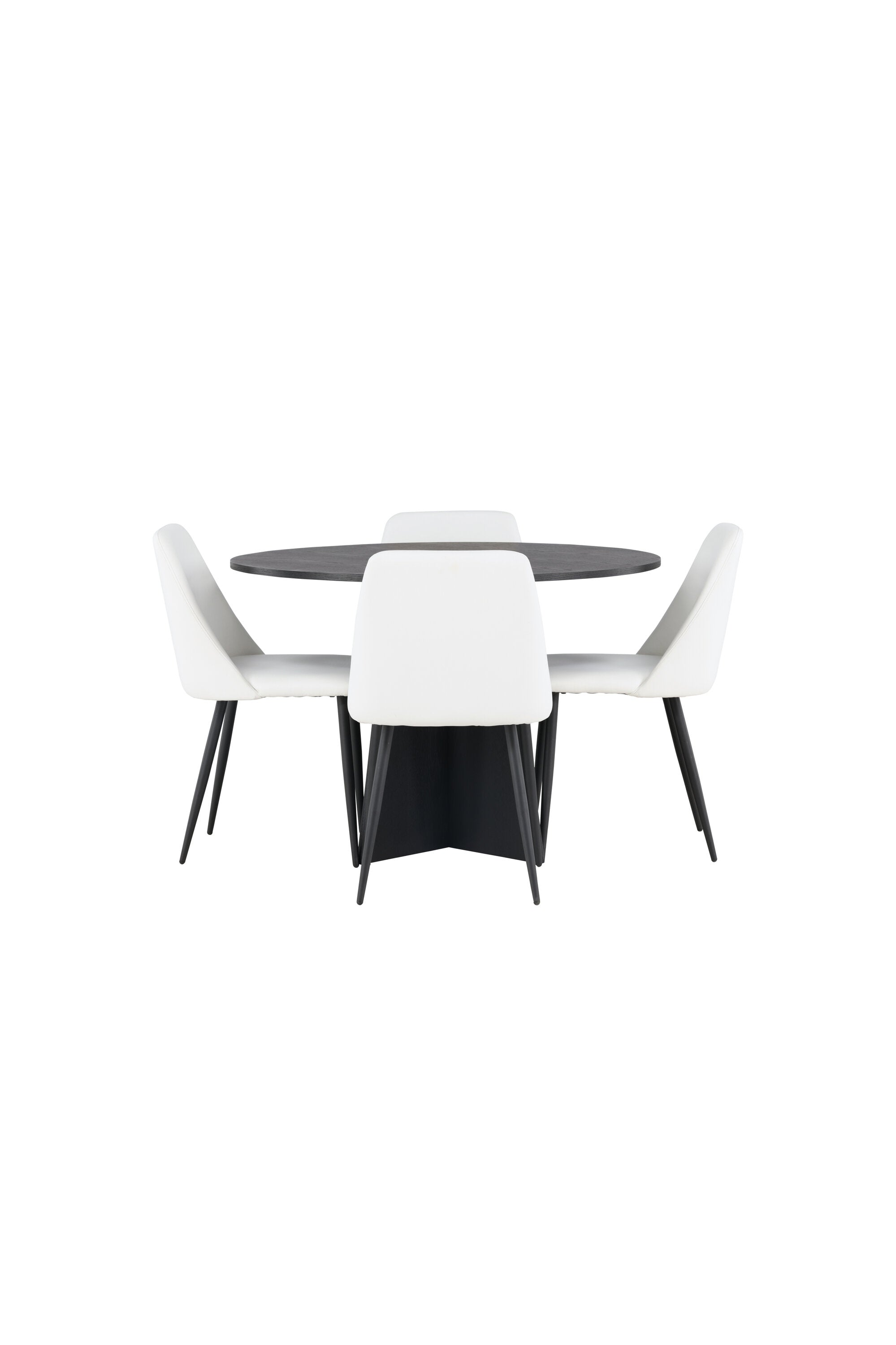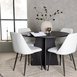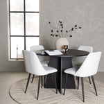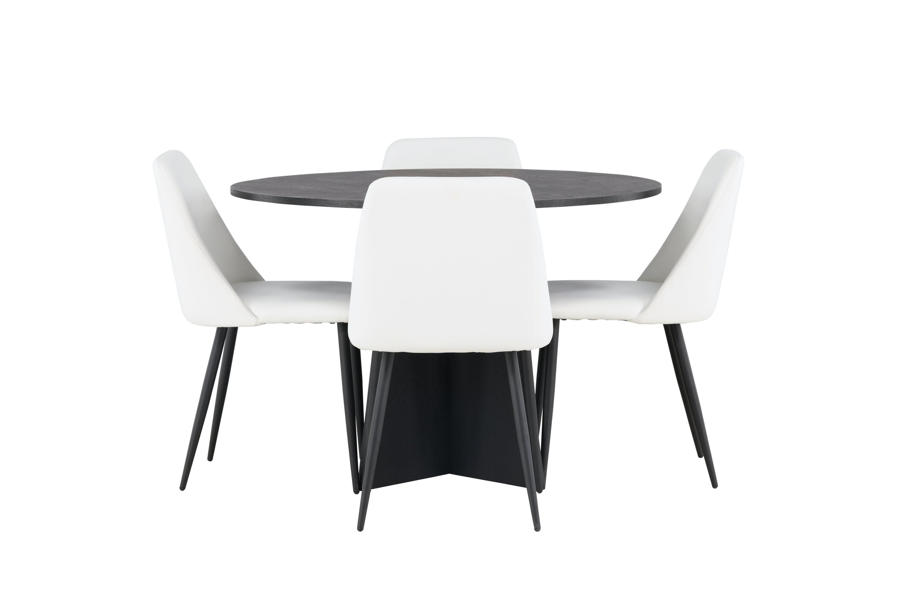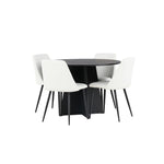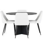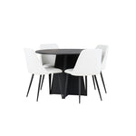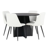 Bootcut kulatý jídelní stůl - černá / černá Fanéer + noční jídelní židle - černá / bílá PU _4