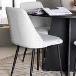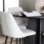Pokud jde o pohodlí a styl, naše černé židle ze série Night jsou perfektní volbou pro doplnění kulatého jídelního stolu. S bílým PU čalouněným sedákem zažijete pocit luxusu a elegance, díky kterému se budete u každého jídla cítit jako vážený host. Černé ocelové nohy židle dodávají moderní nádech, který dokonale ladí s uhlazenou atmosférou.
