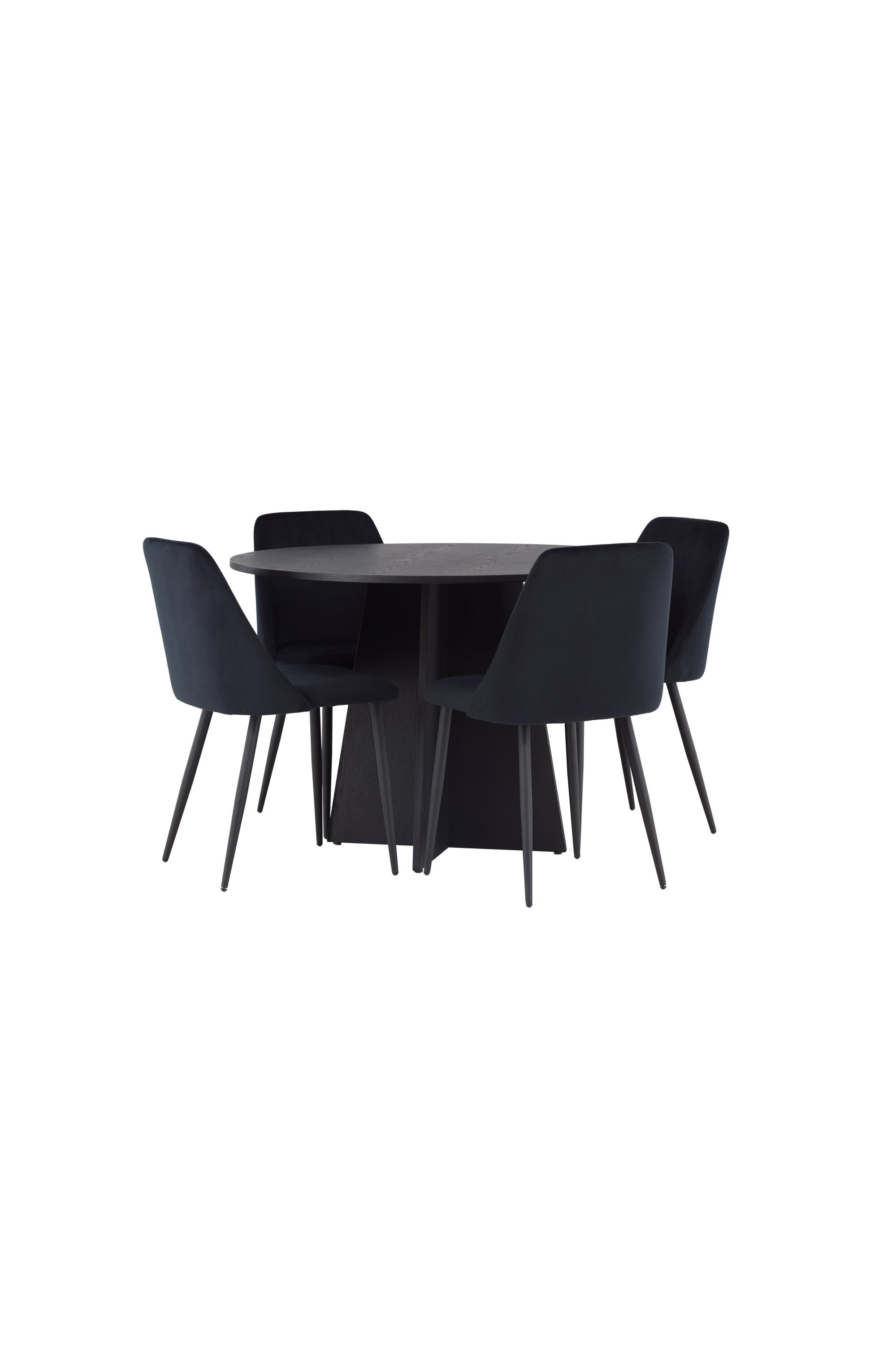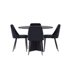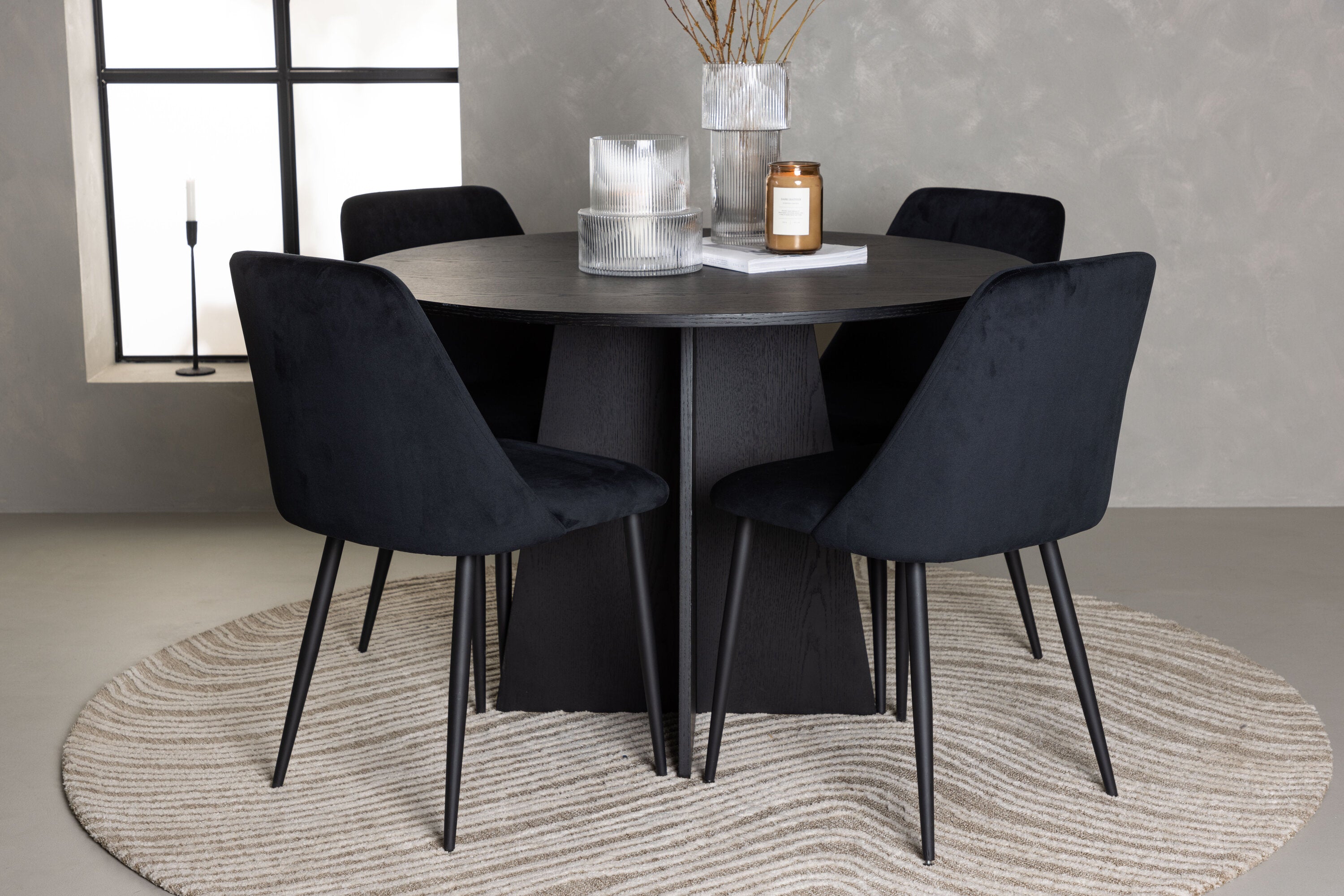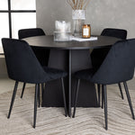 Bootcut kulatý jídelní stůl - černá / černá Fanéer + noční jídelní židle - černá / černá sametová _4