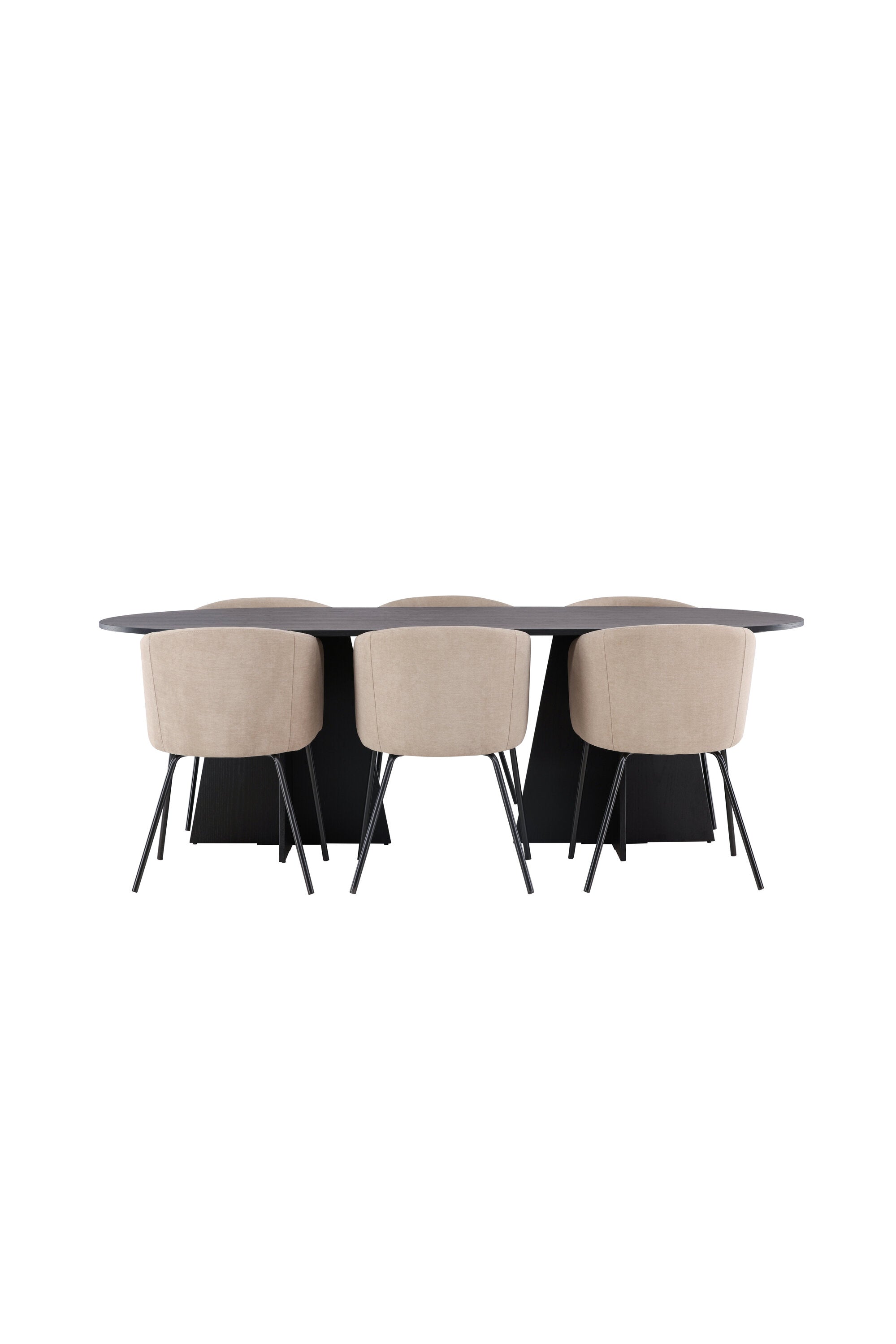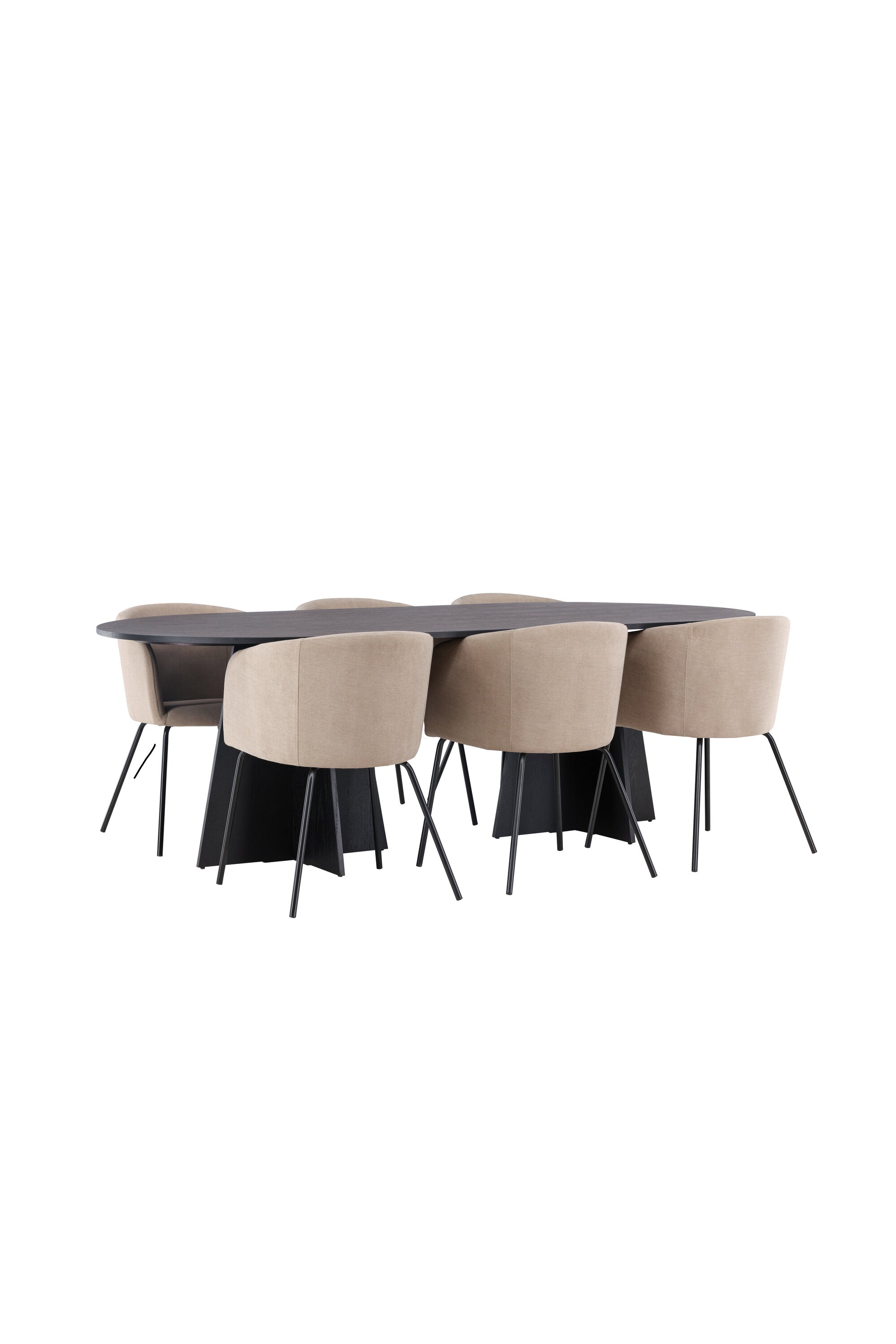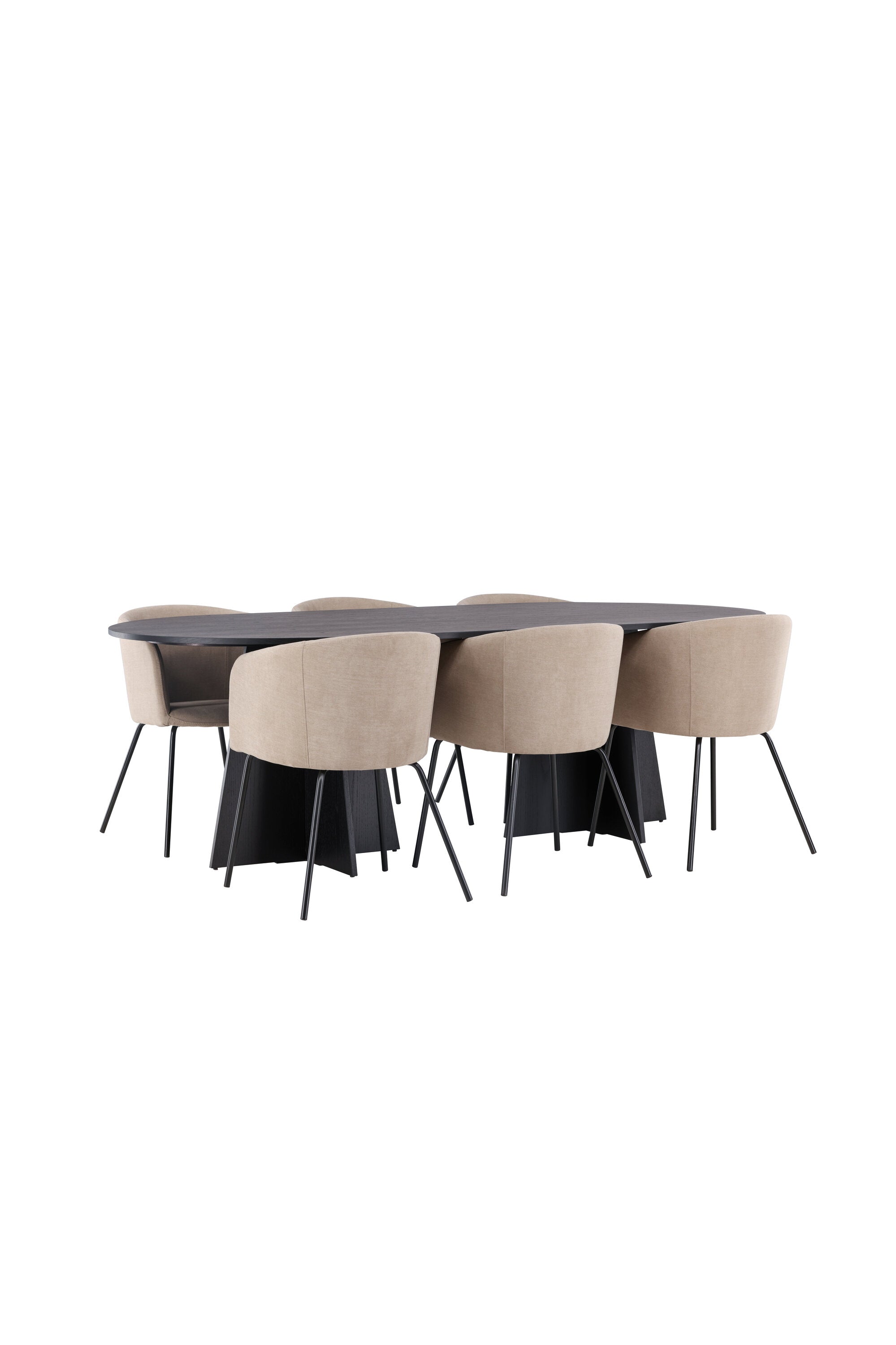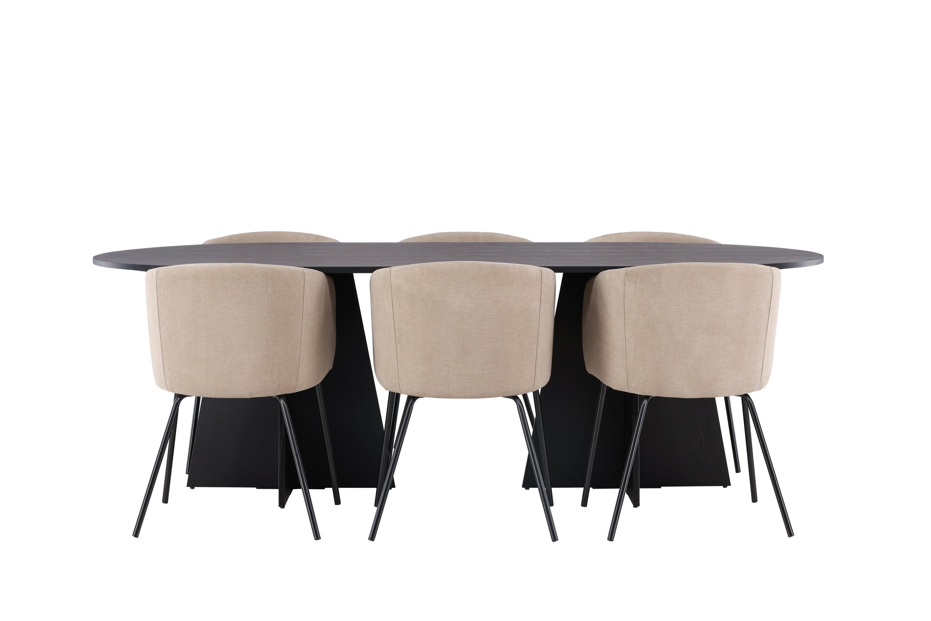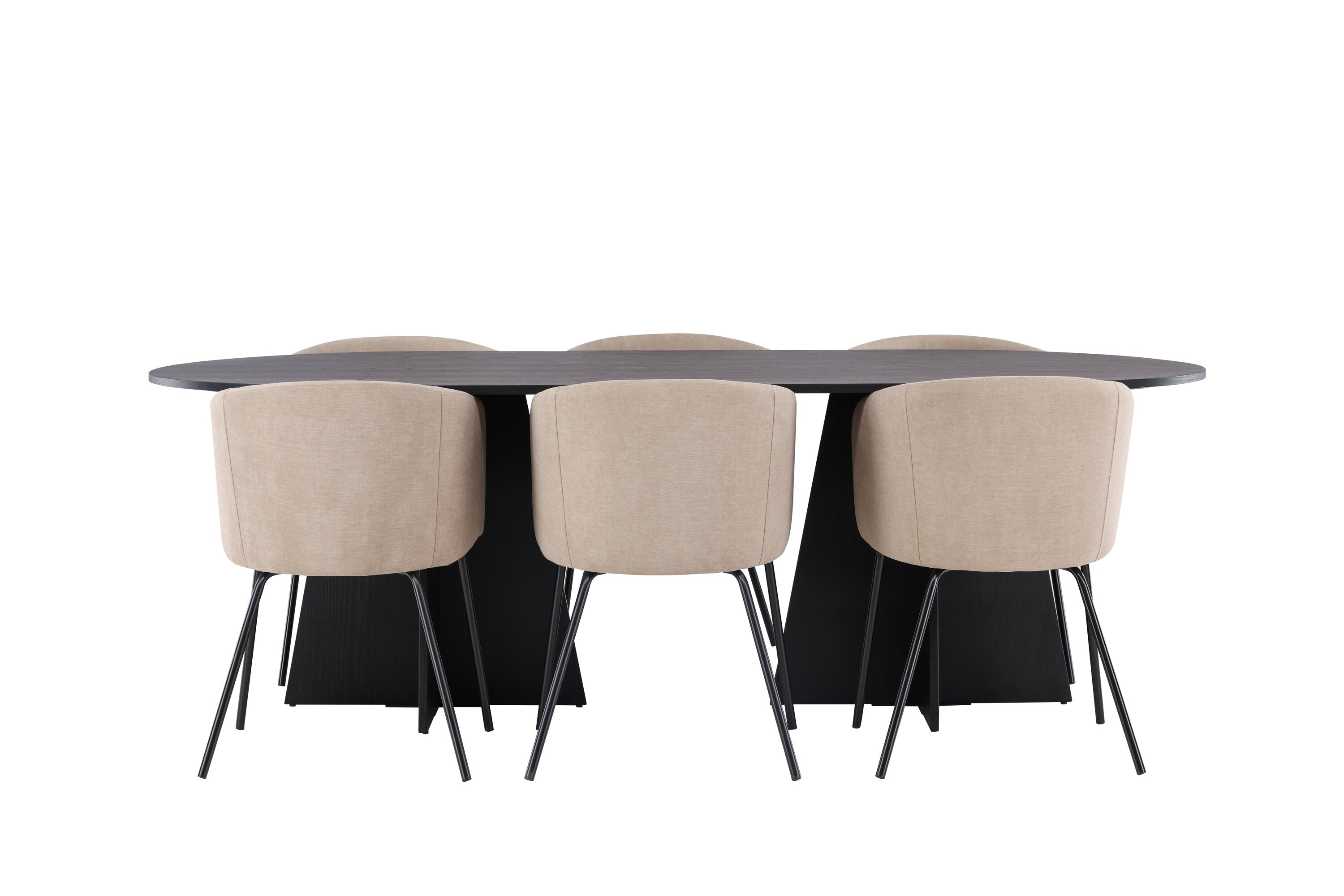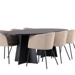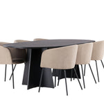 Bootcut oválný jídelní stůl - černá / černá Fanéer + židle Berit - černá / béžová látka (polyesterové prádlo) _6
