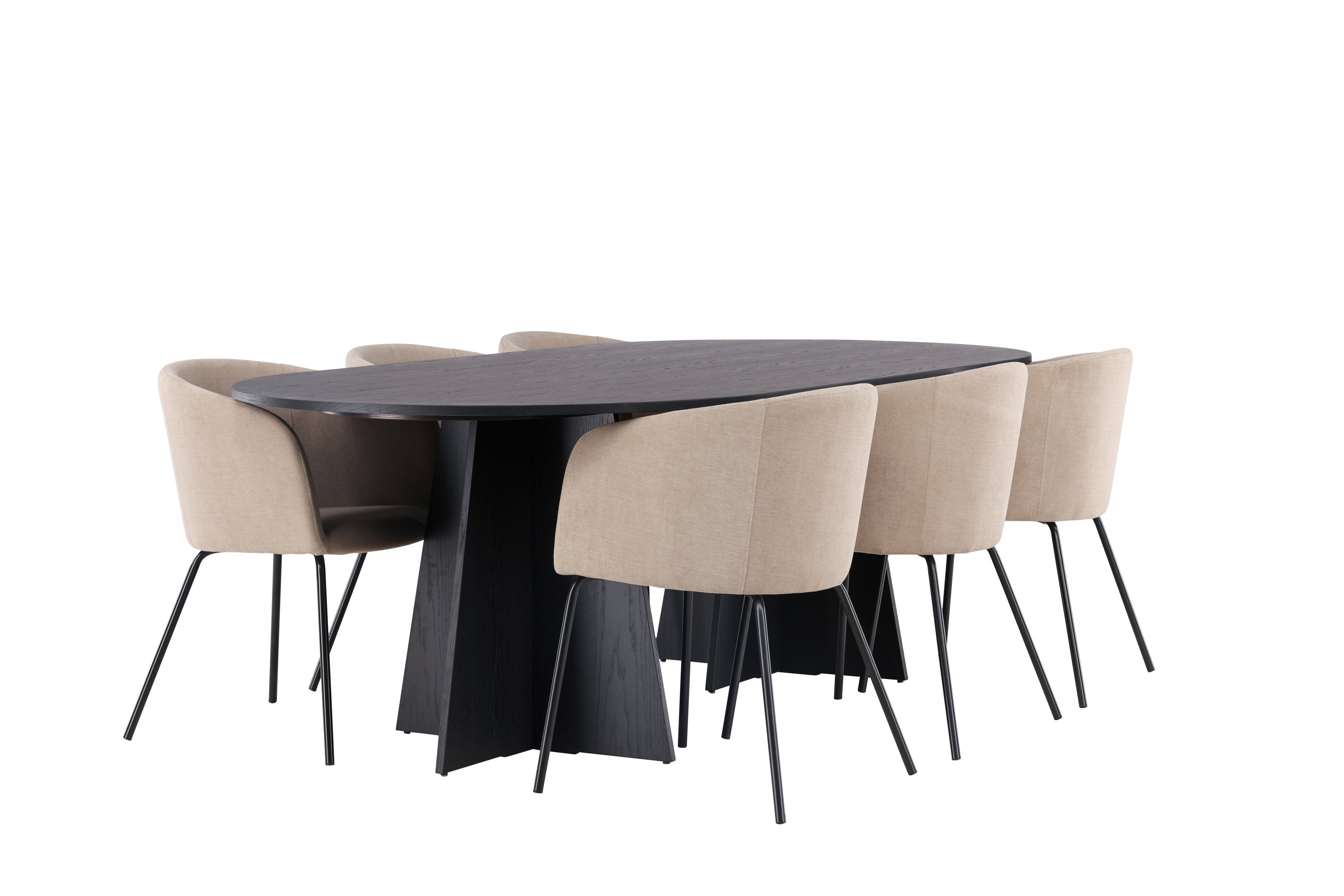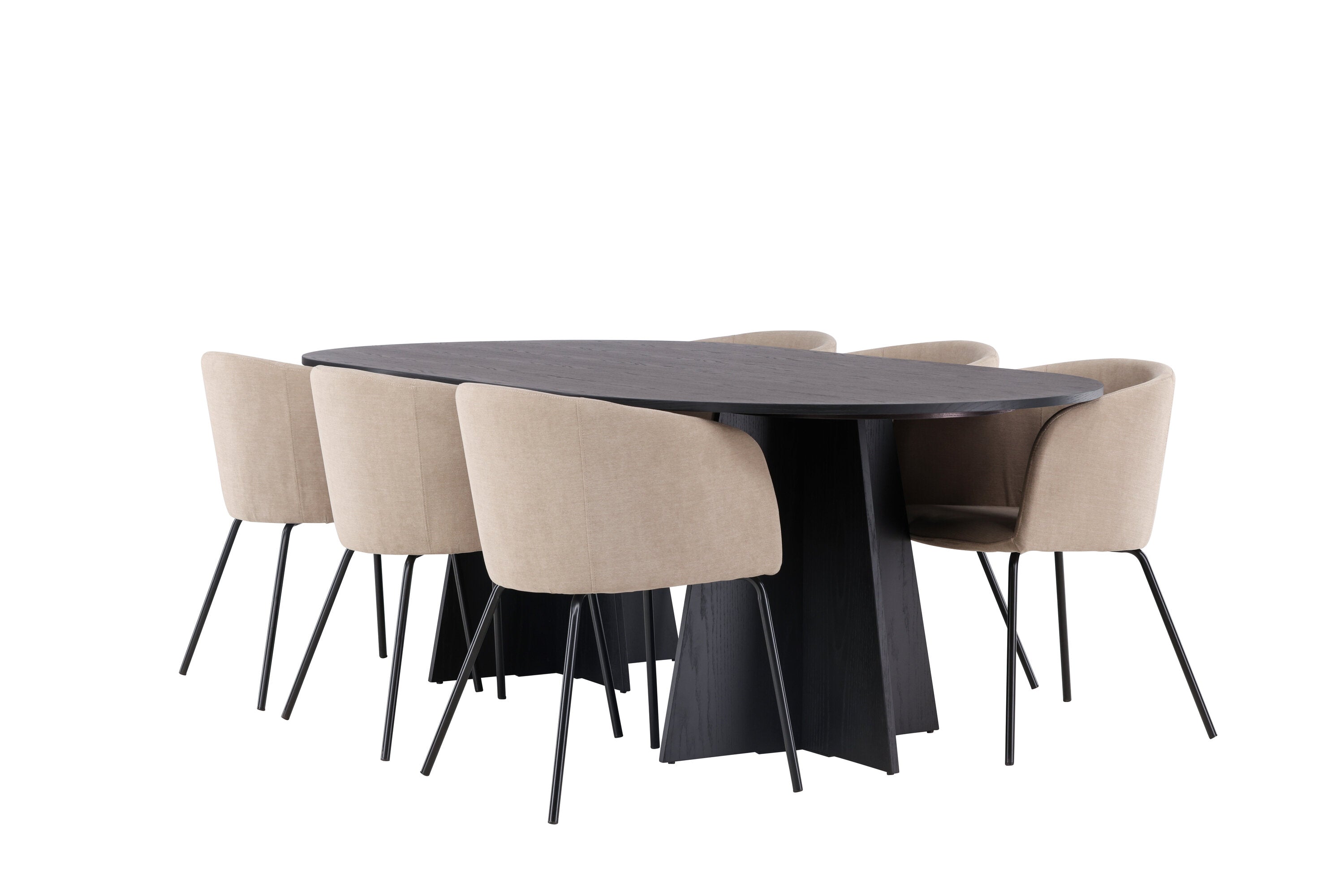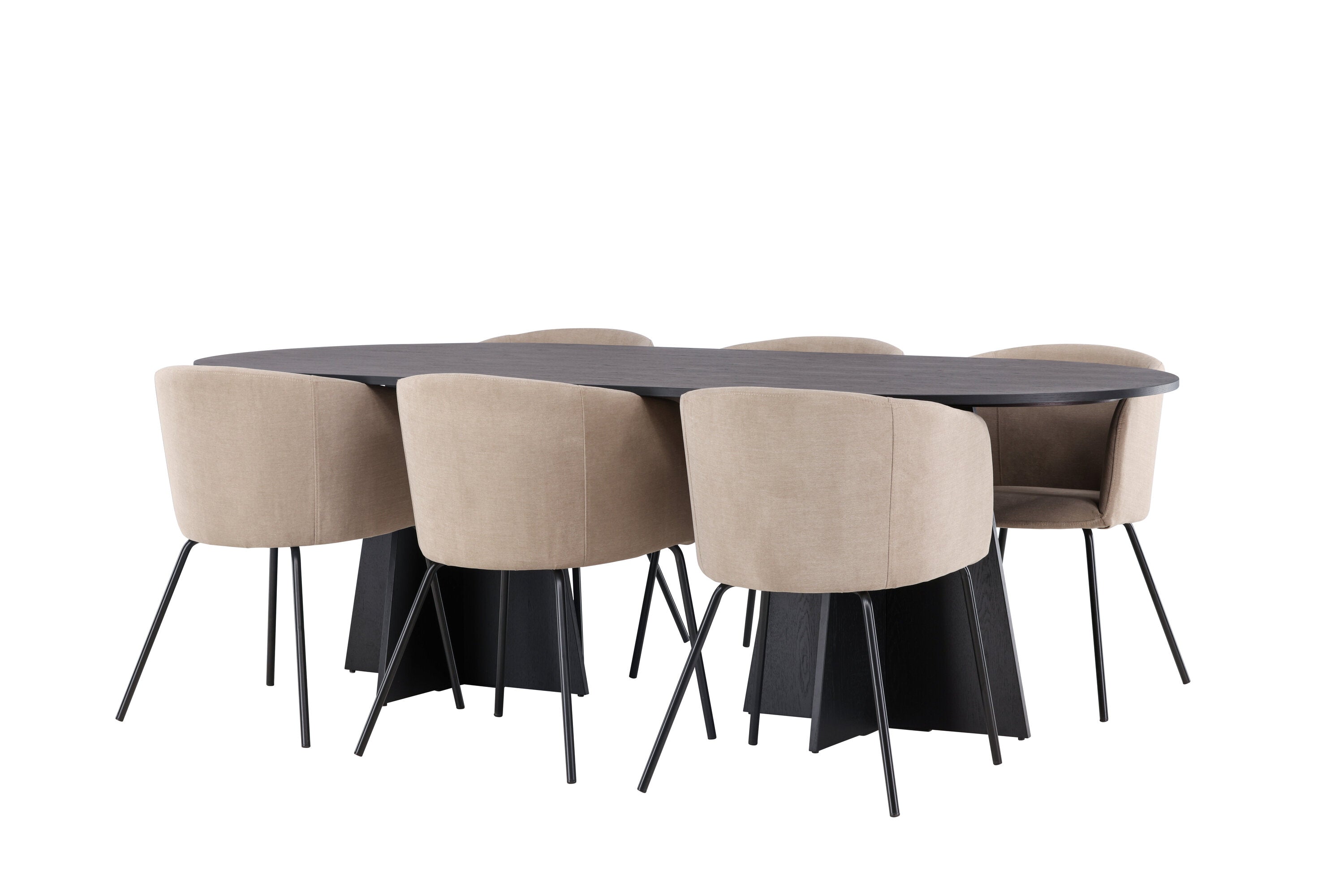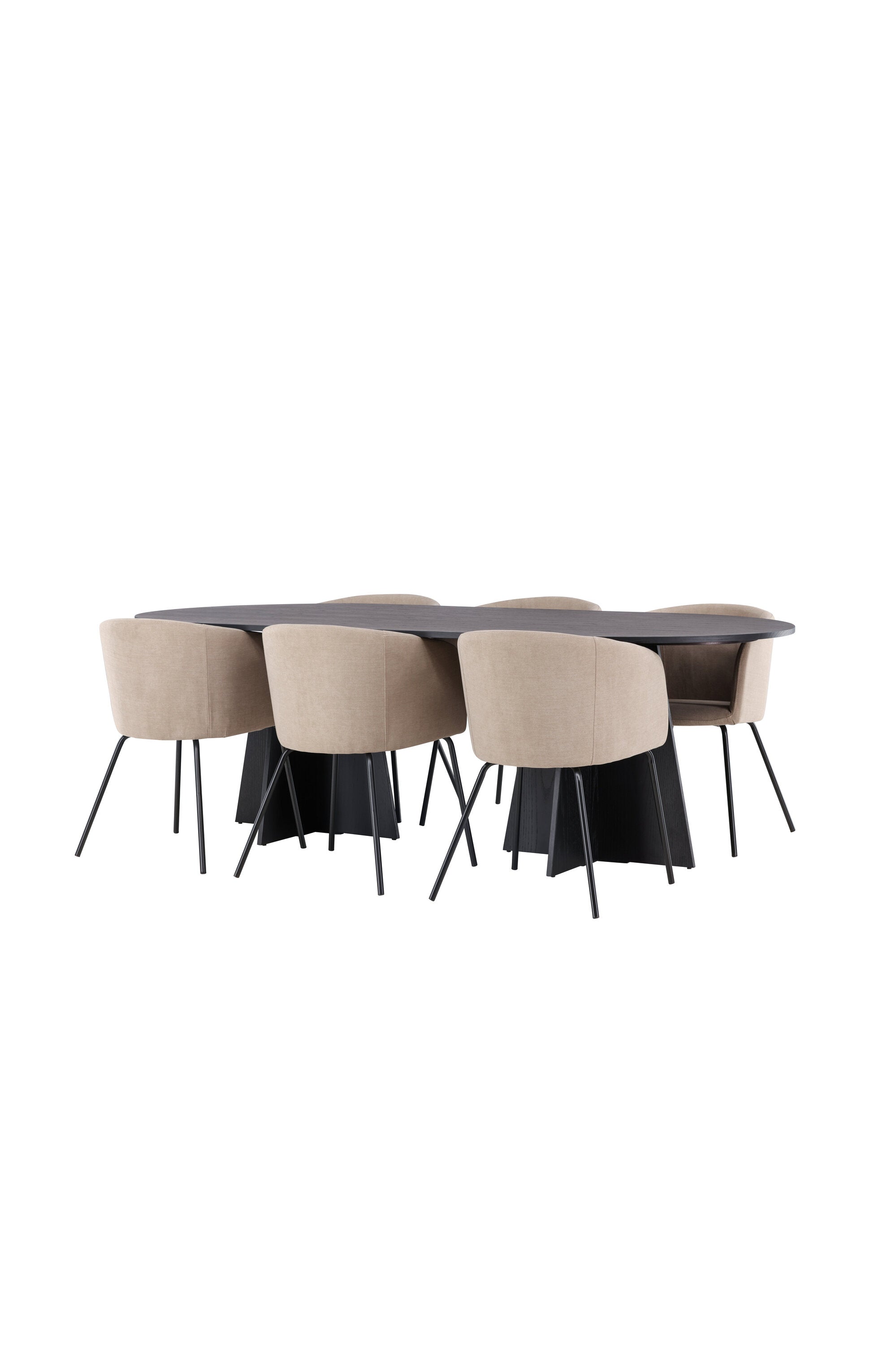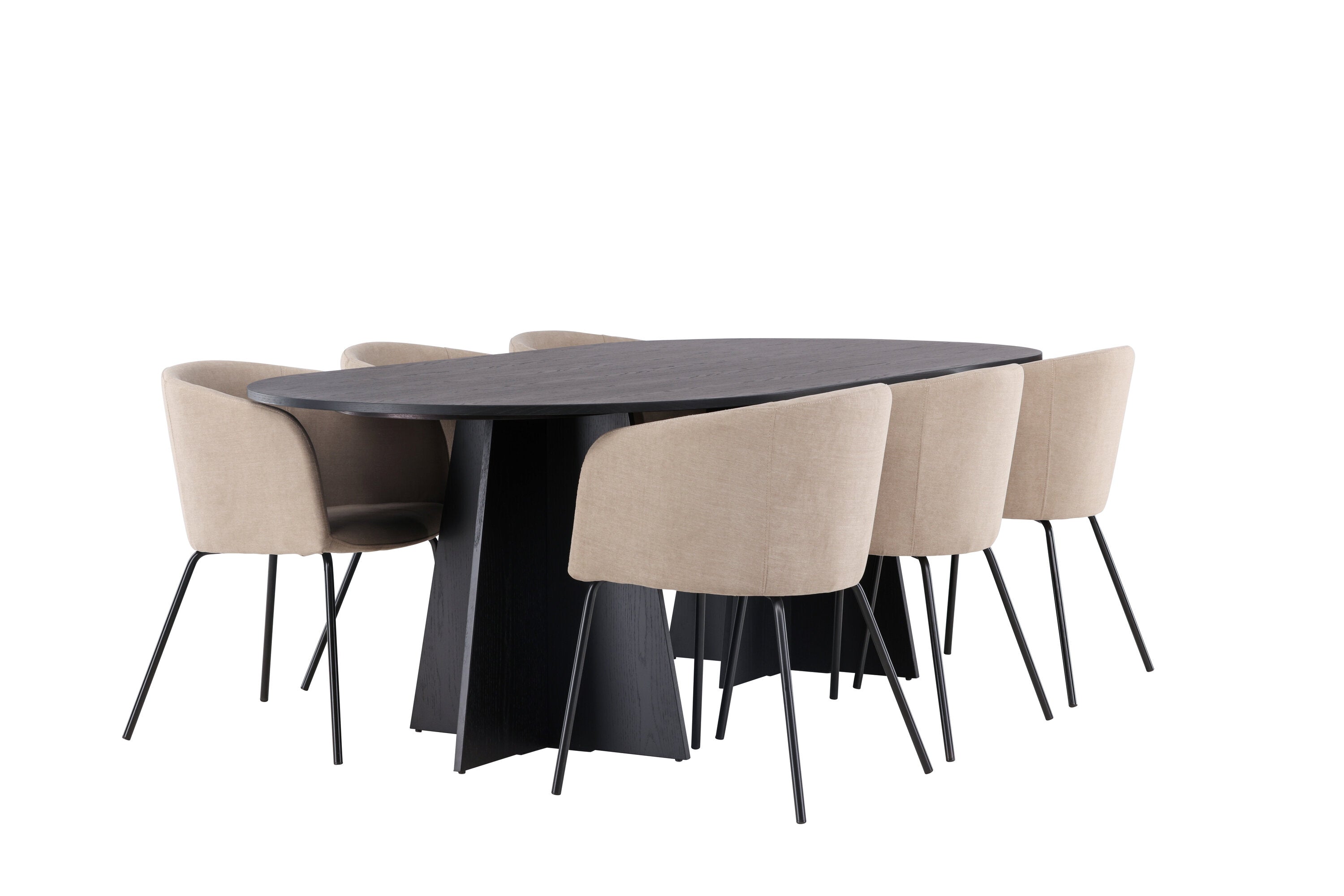 Bootcut oválný jídelní stůl - černá / černá Fanéer + židle Berit - černá / béžová látka (polyesterové prádlo) _6