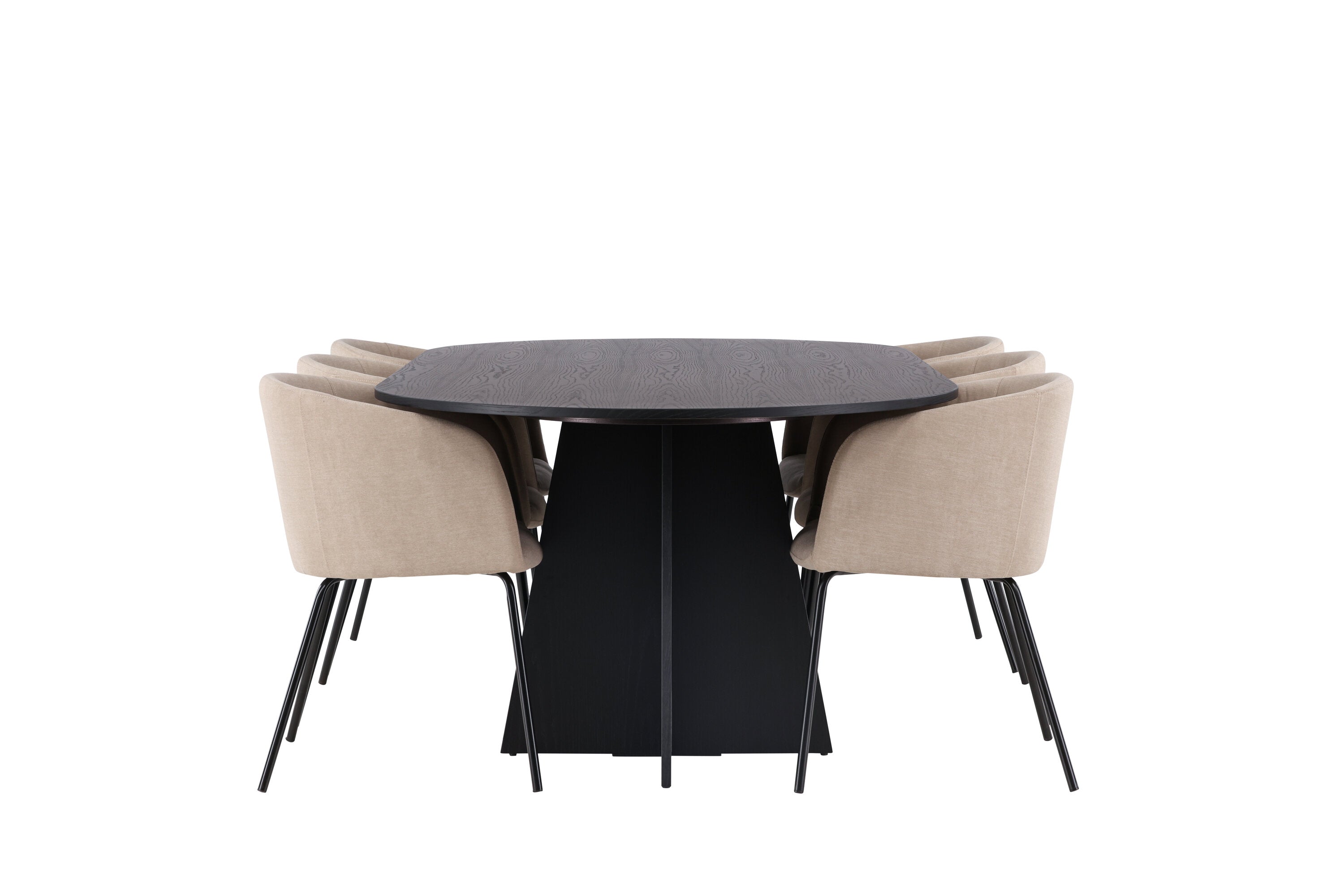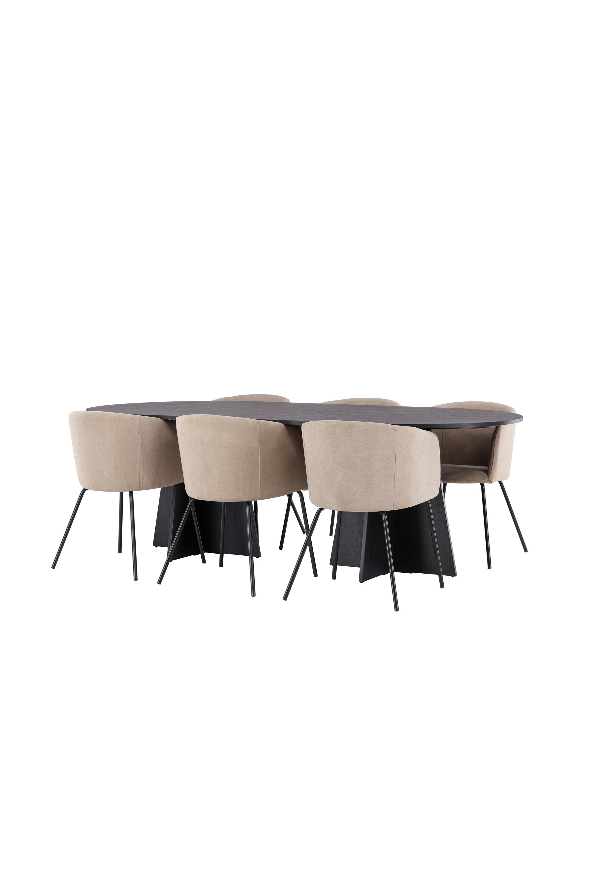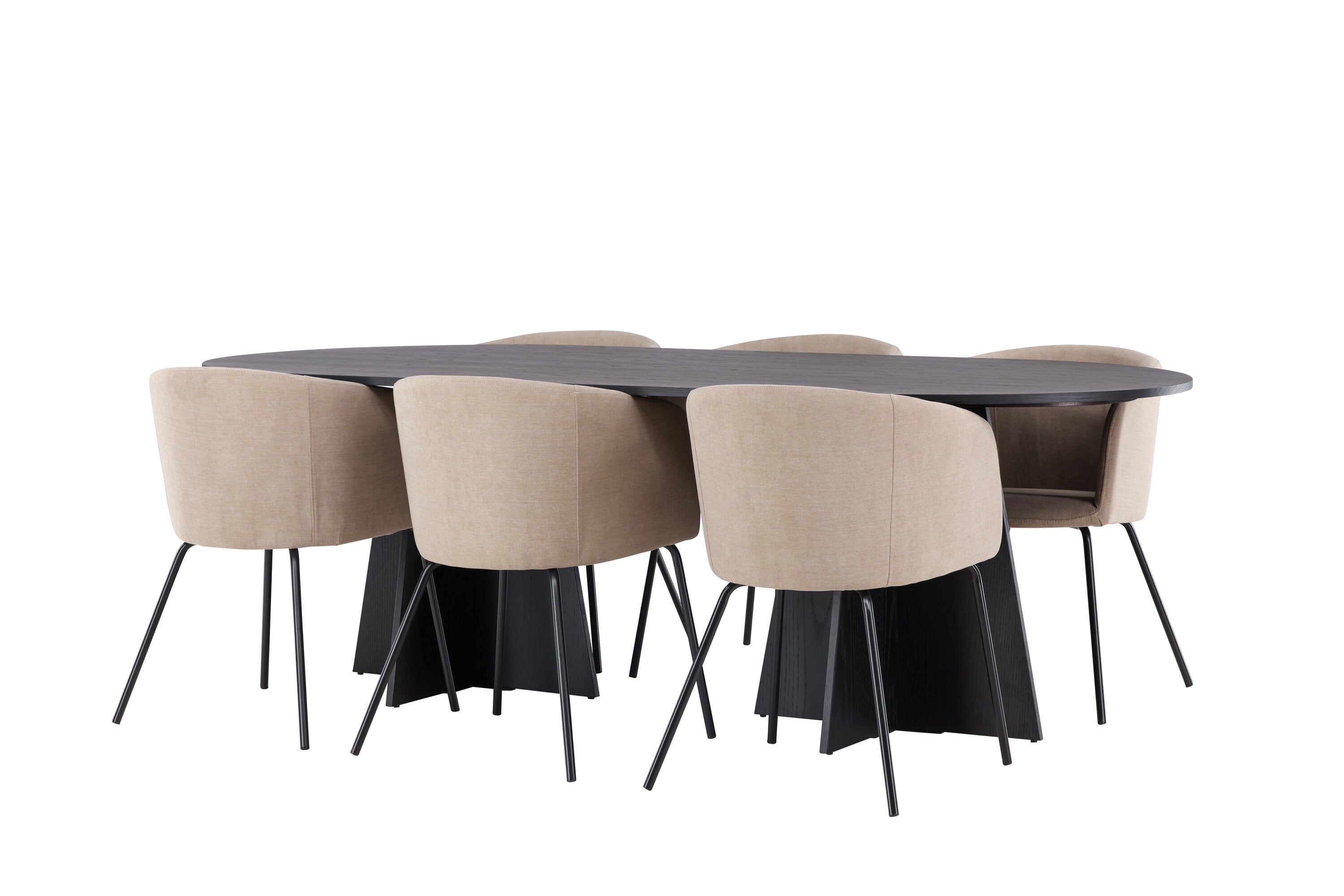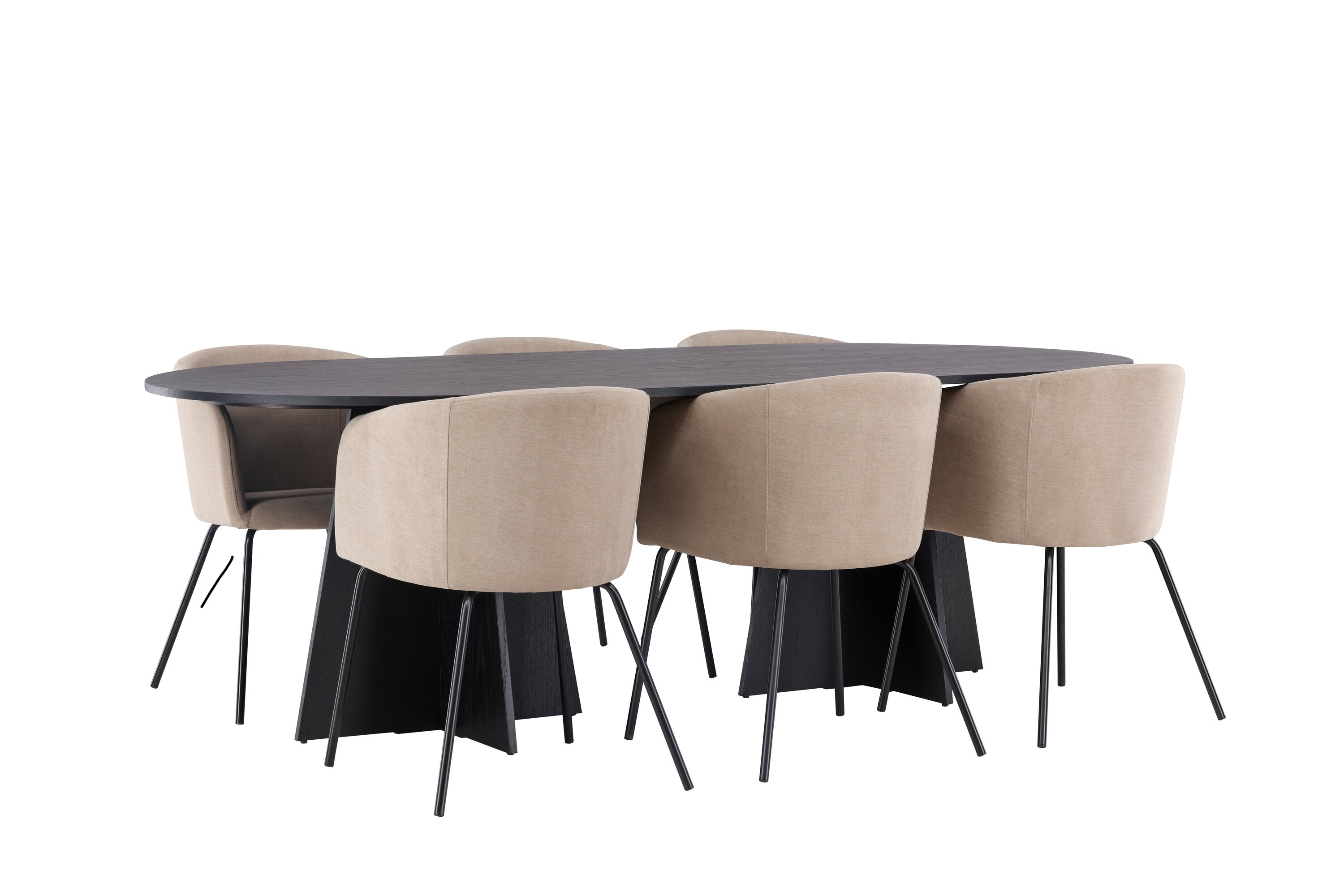 Bootcut oválný jídelní stůl - černá / černá Fanéer + židle Berit - černá / béžová látka (polyesterové prádlo) _6
