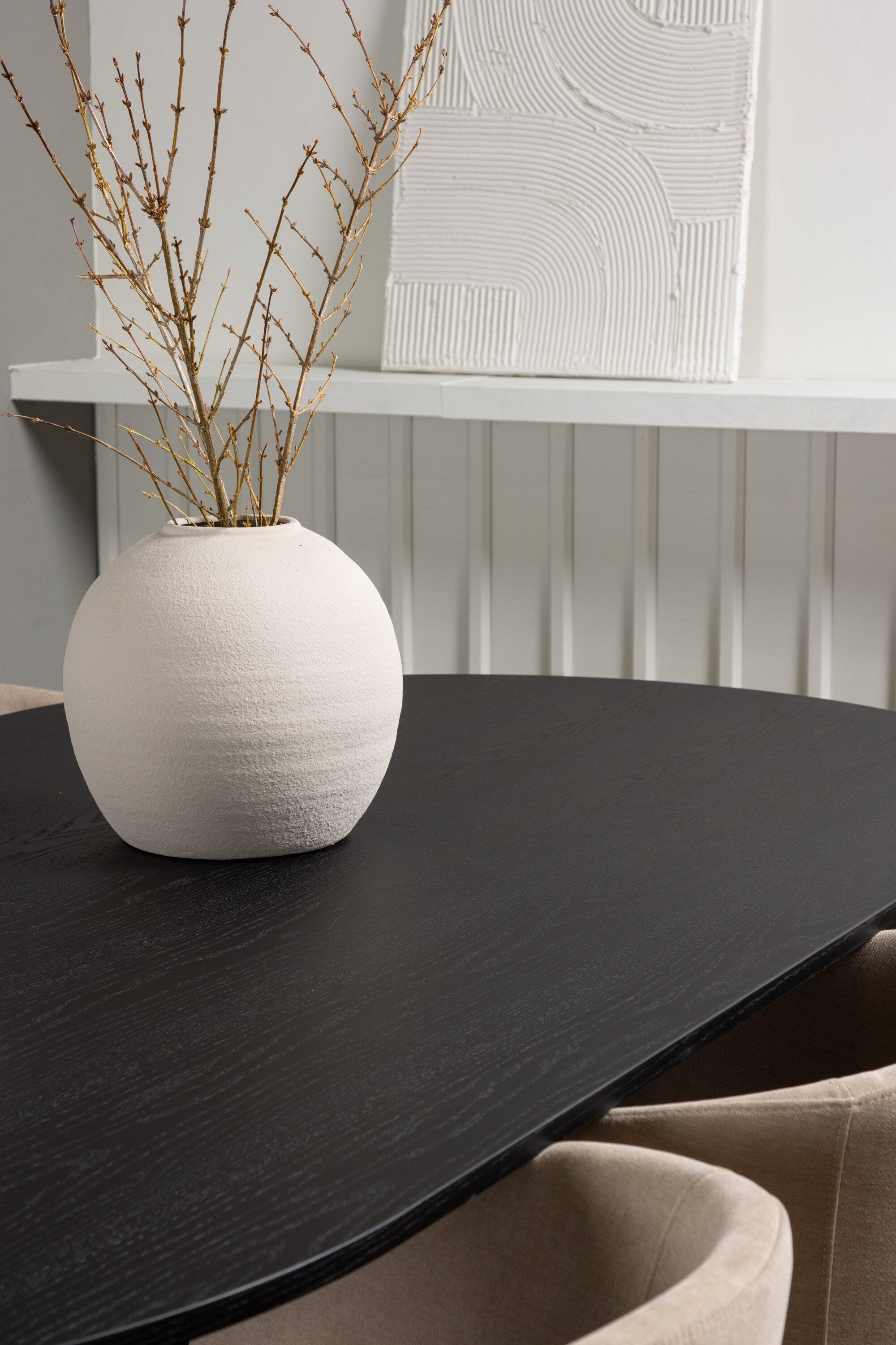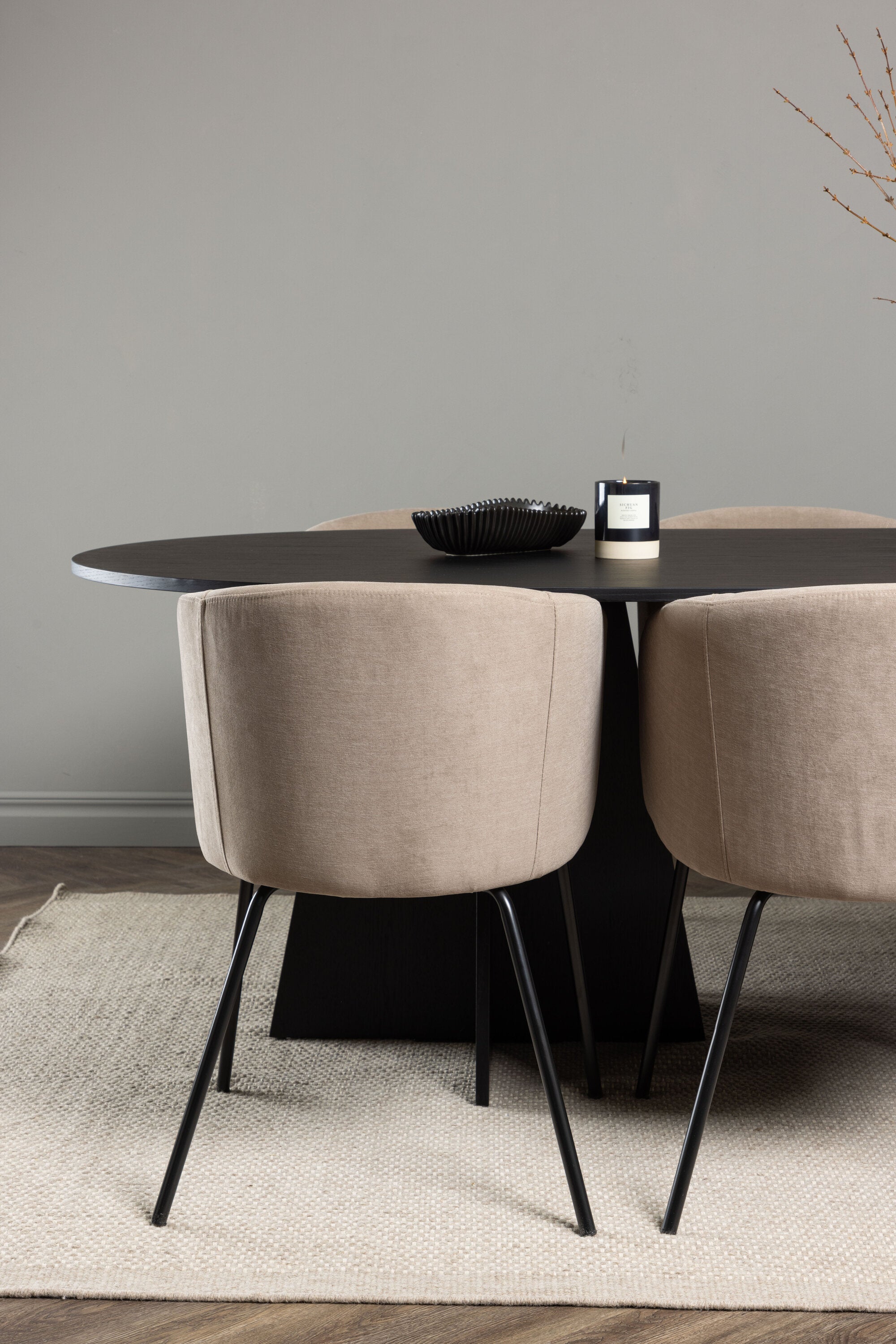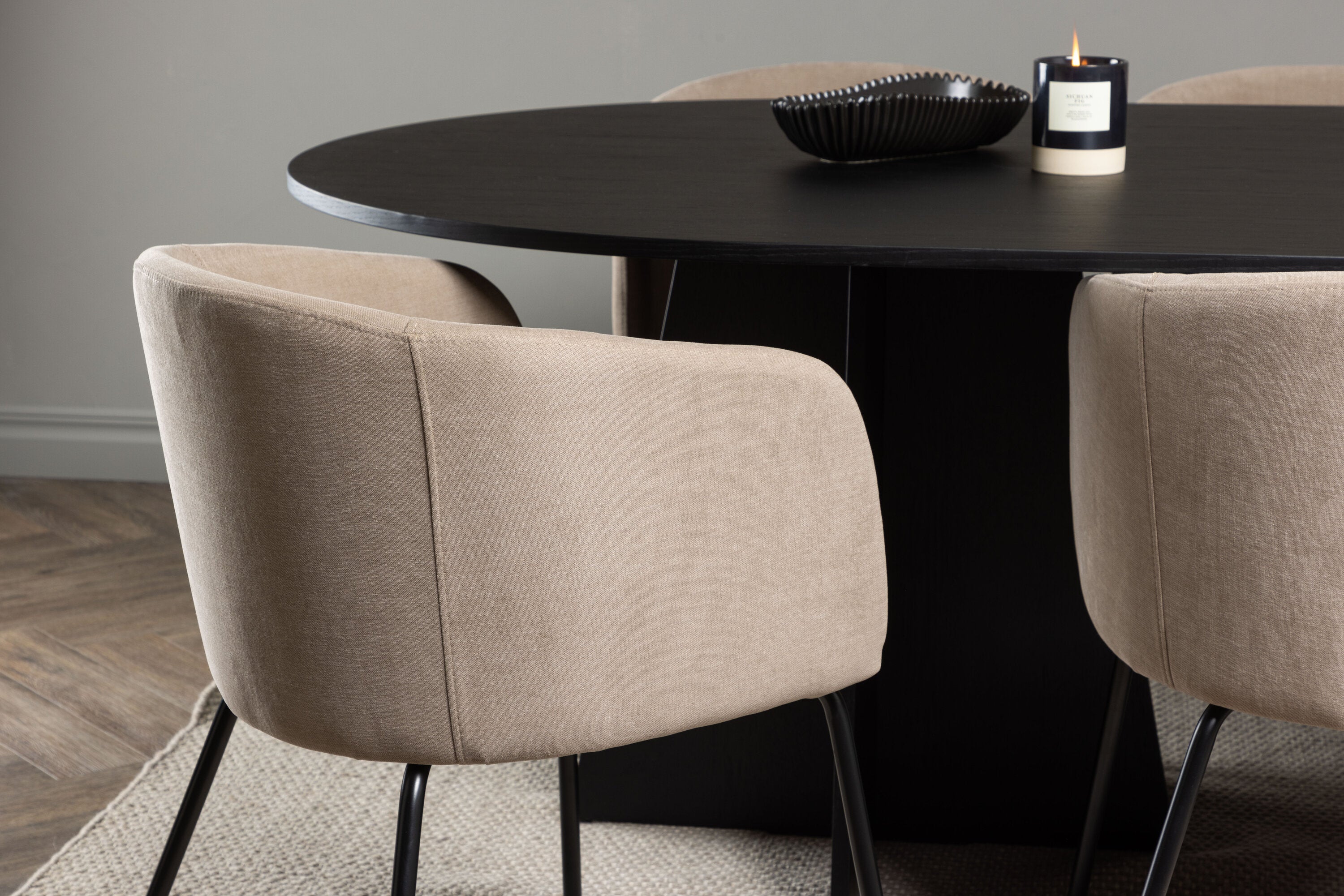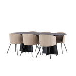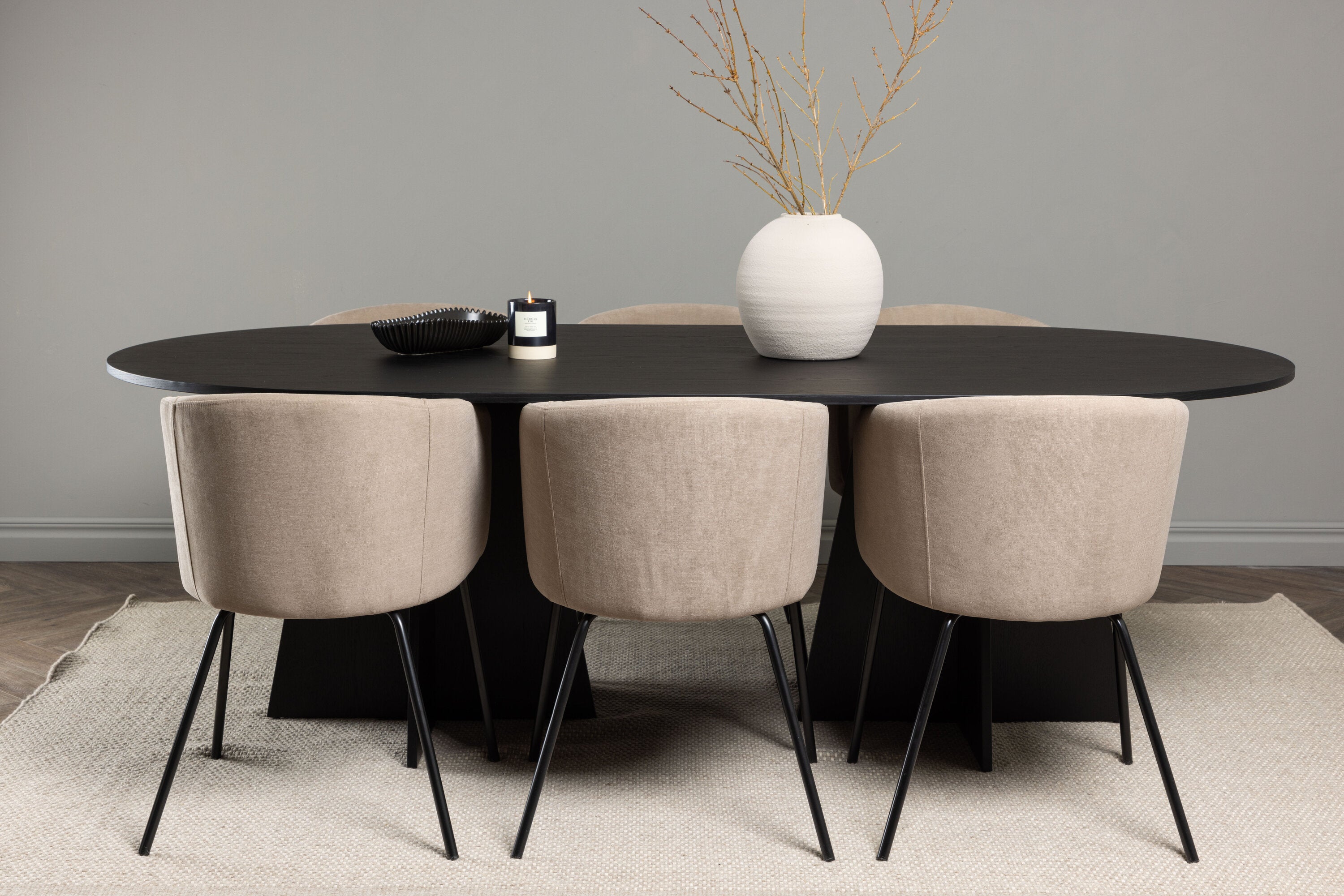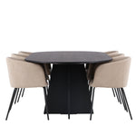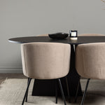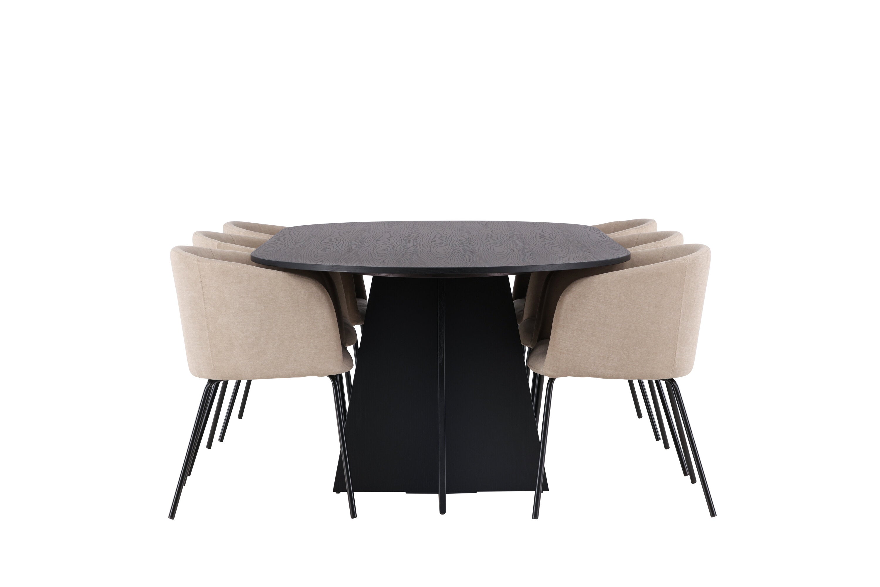 Bootcut oválný jídelní stůl - černá / černá Fanéer + židle Berit - černá / béžová látka (polyesterové prádlo) _6