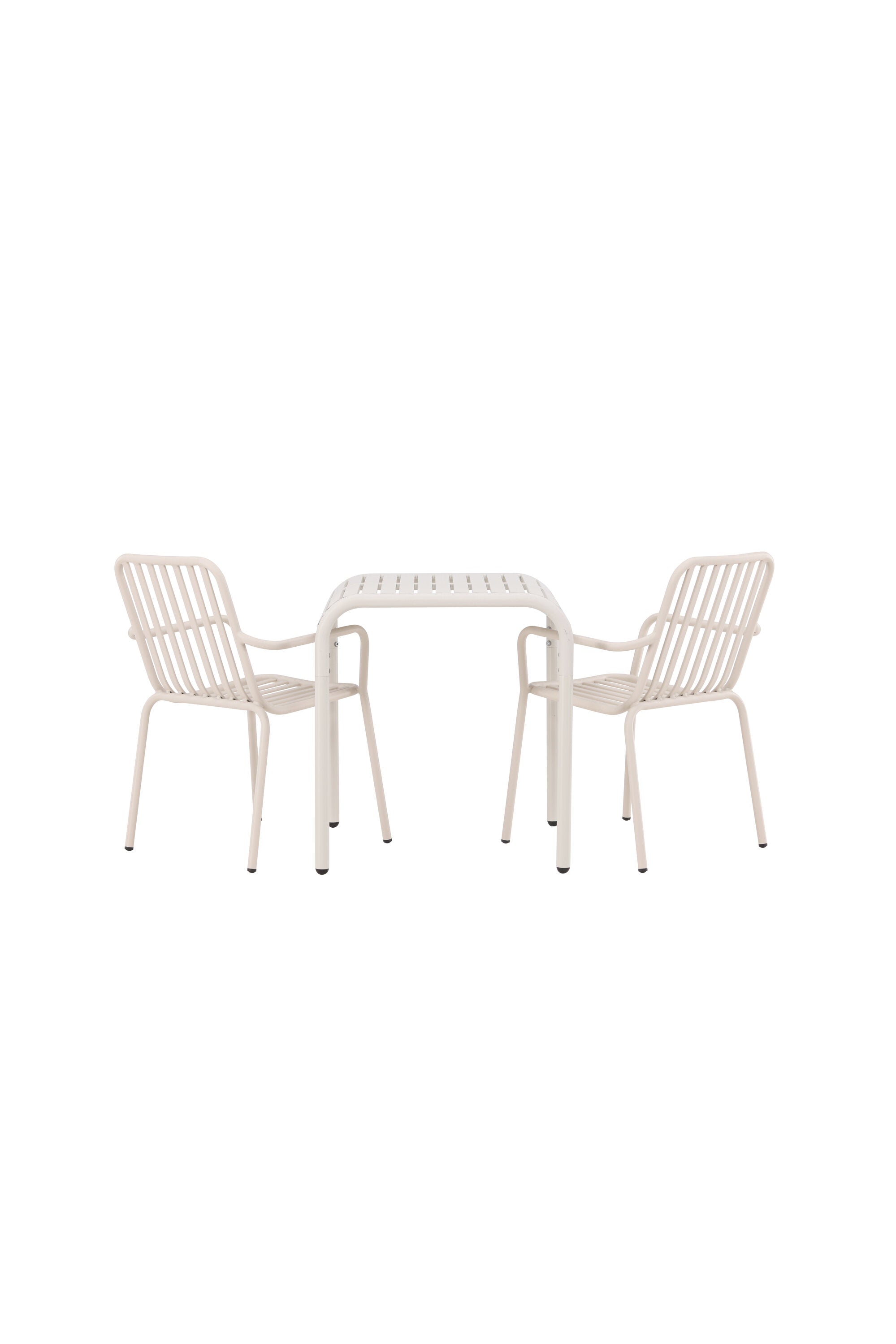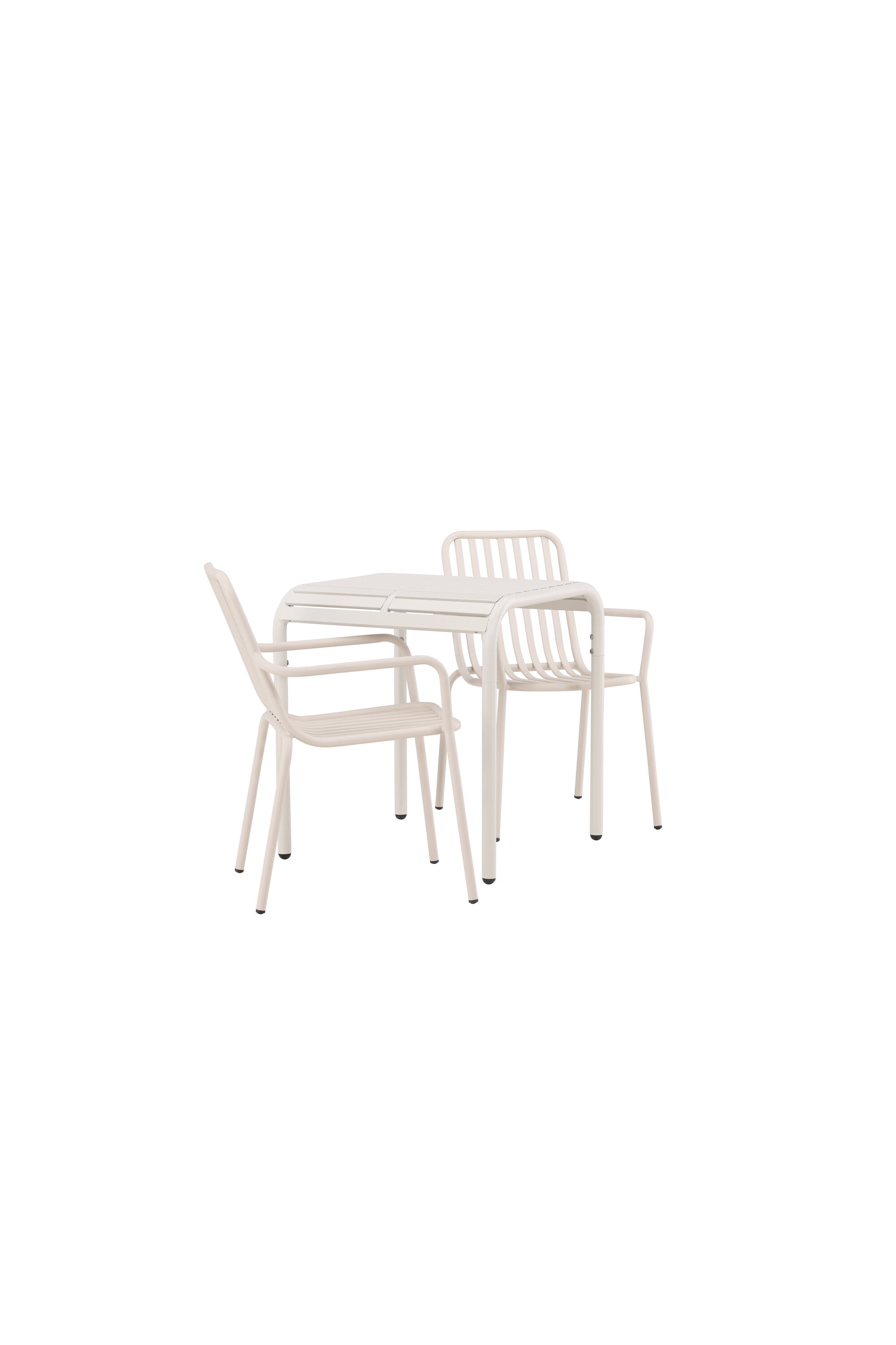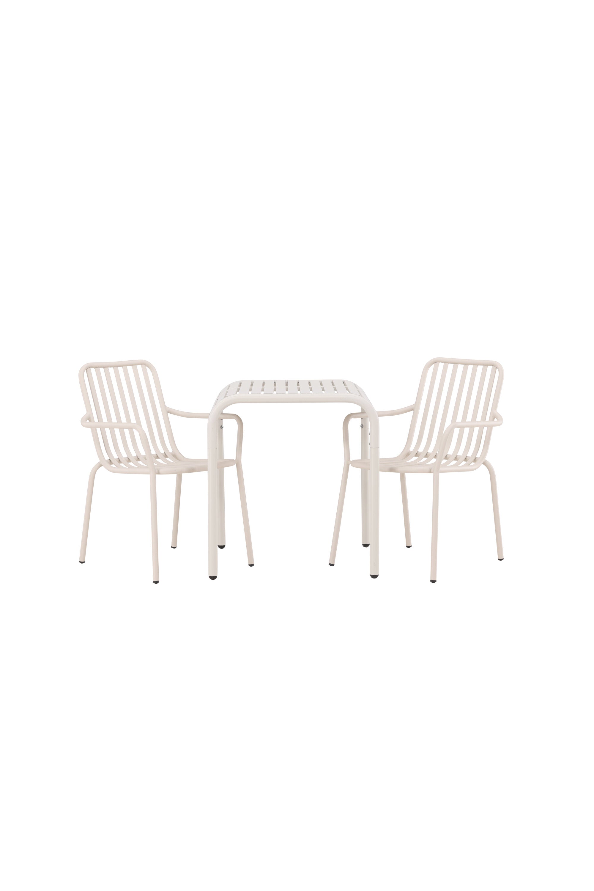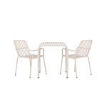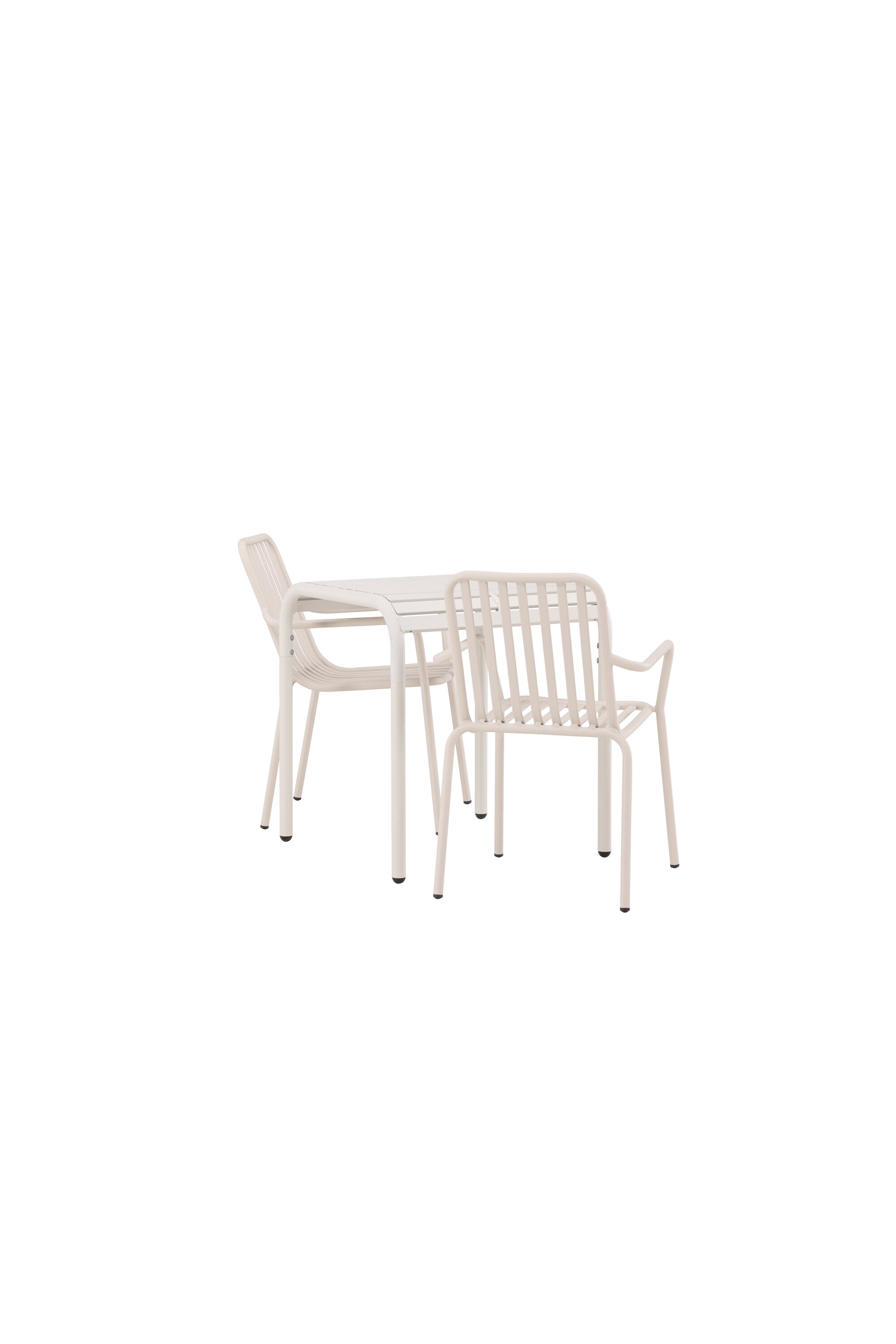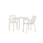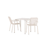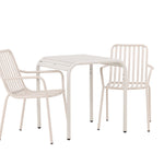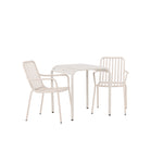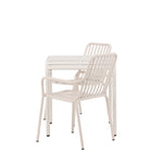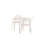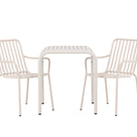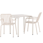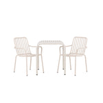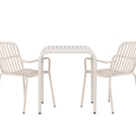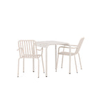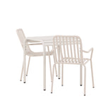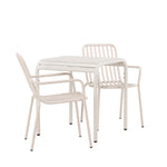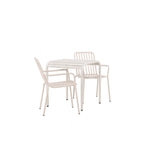 Stylová a příjemná kavárenská skupina, která vyzařuje šarm! Stůl ze série Borneo má nadčasový skandinávský design. Deska stolu je žebrovaná a podél okrajů se vlní u nohou. Vše dohromady vyrobeno z béžového hliníku, což vám poskytuje odolný stůl, který lze snadno přemisťovat. Zde ve stylové kombinaci se 2 jídelními židlemi ze série Beijing. Žebrovaný design v hliníku a lichotivá béžová barva působí, že židle působí moderně a nadčasově. Užijte si letošní letní oběd venku! Rozměry stolu: 70 x 70 cm.