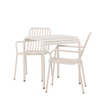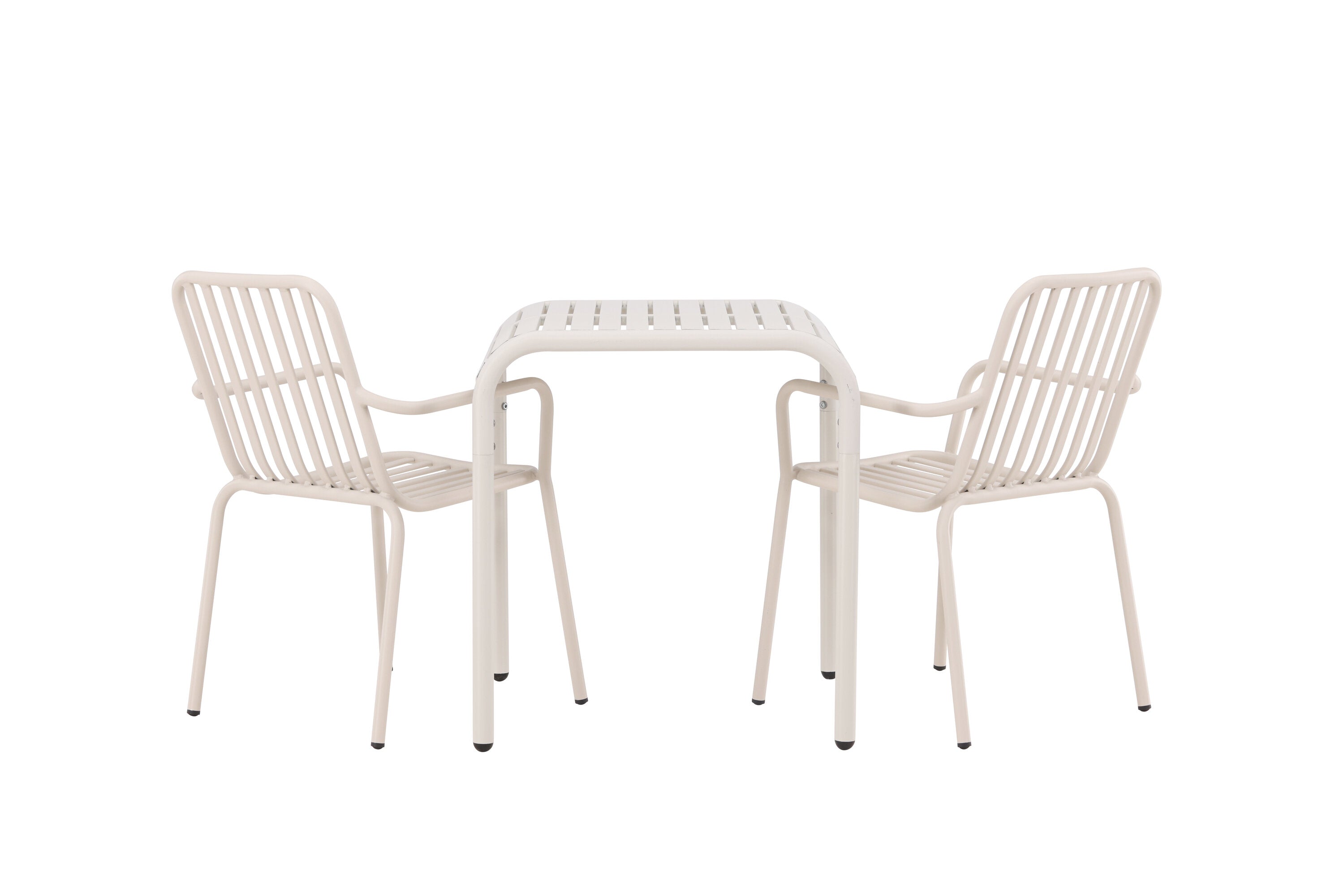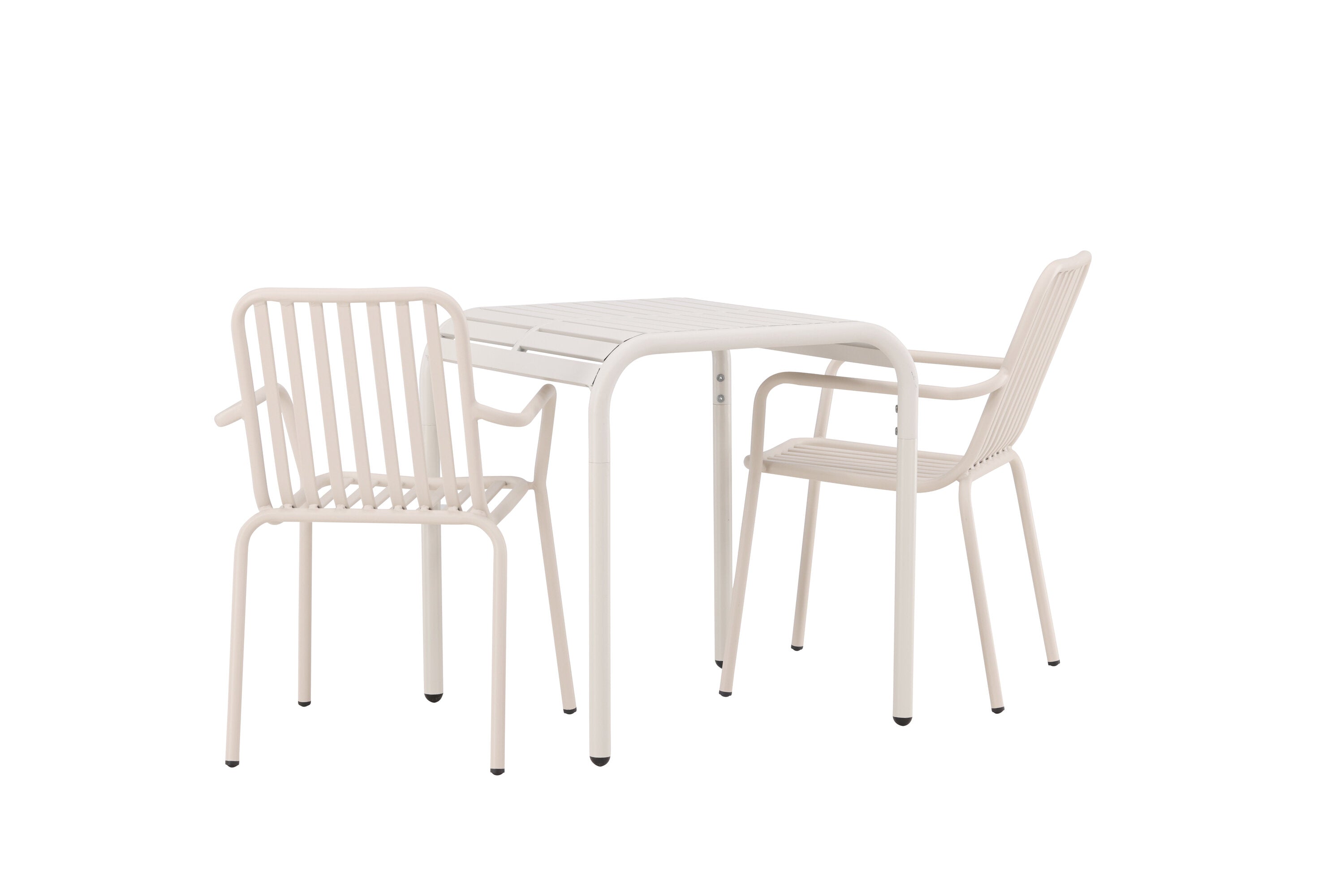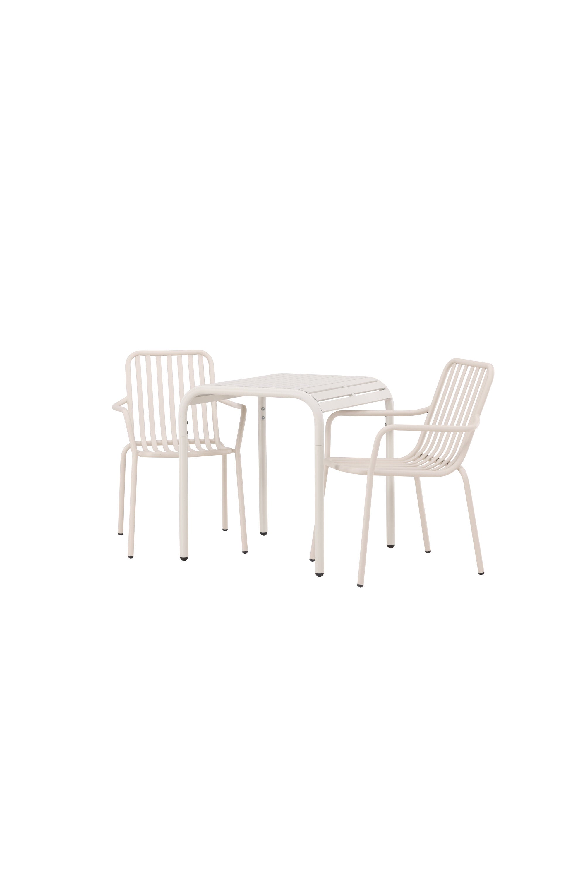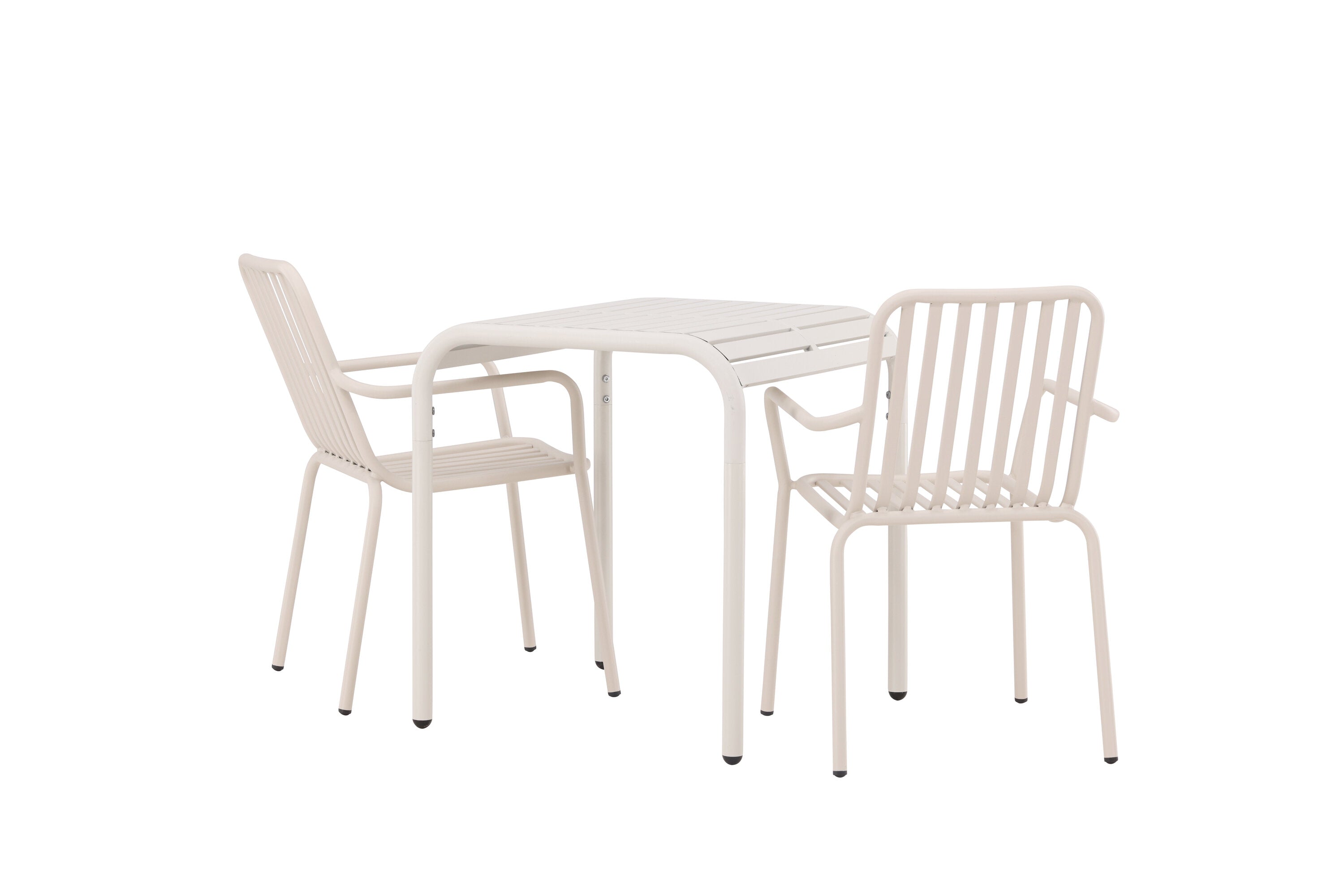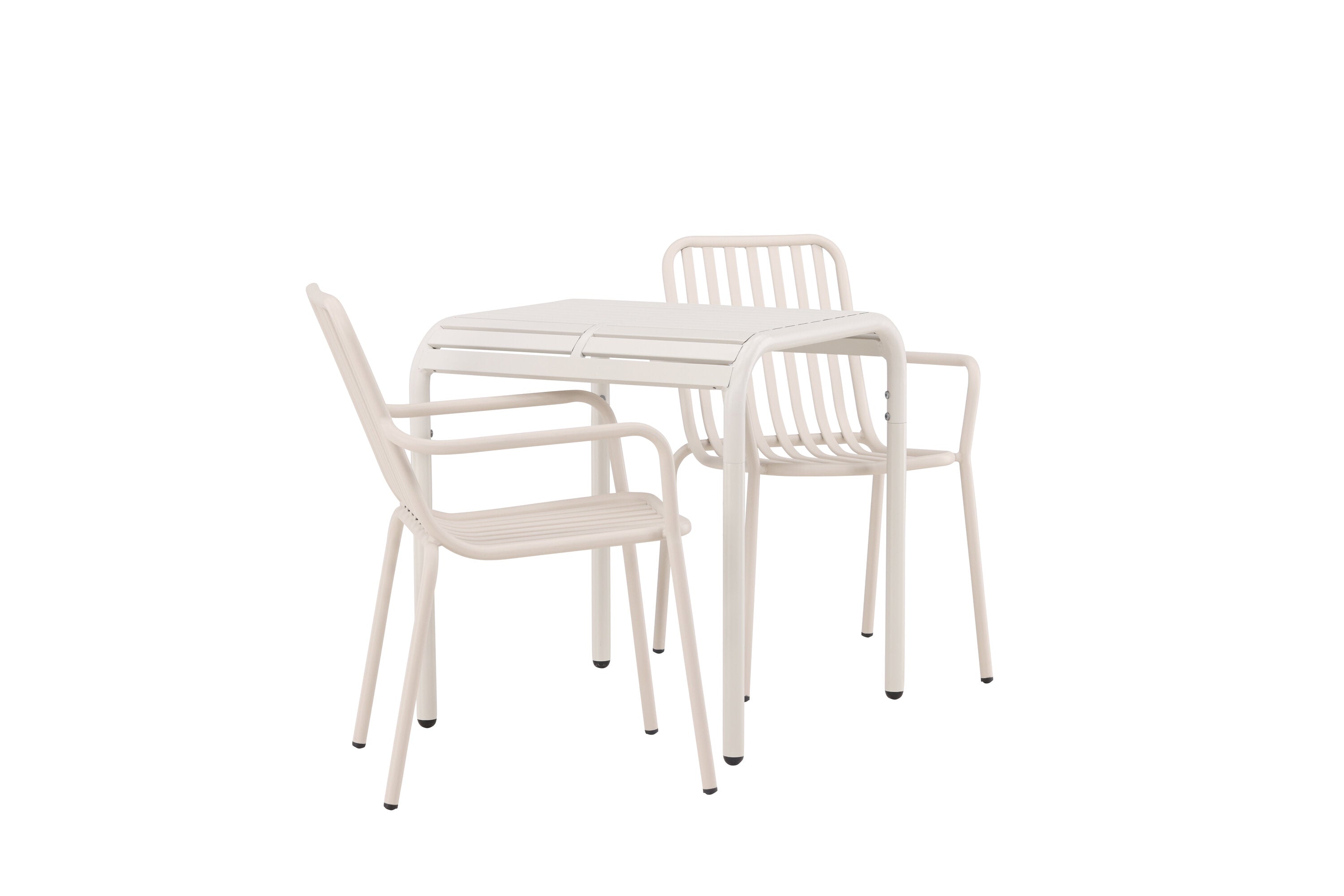 Stylová a příjemná kavárenská skupina, která vyzařuje šarm! Stůl ze série Borneo má nadčasový skandinávský design. Deska stolu je žebrovaná a podél okrajů se vlní u nohou. Vše dohromady vyrobeno z béžového hliníku, což vám poskytuje odolný stůl, který lze snadno přemisťovat. Zde ve stylové kombinaci se 2 jídelními židlemi ze série Beijing. Žebrovaný design v hliníku a lichotivá béžová barva působí, že židle působí moderně a nadčasově. Užijte si letošní letní oběd venku! Rozměry stolu: 70 x 70 cm.