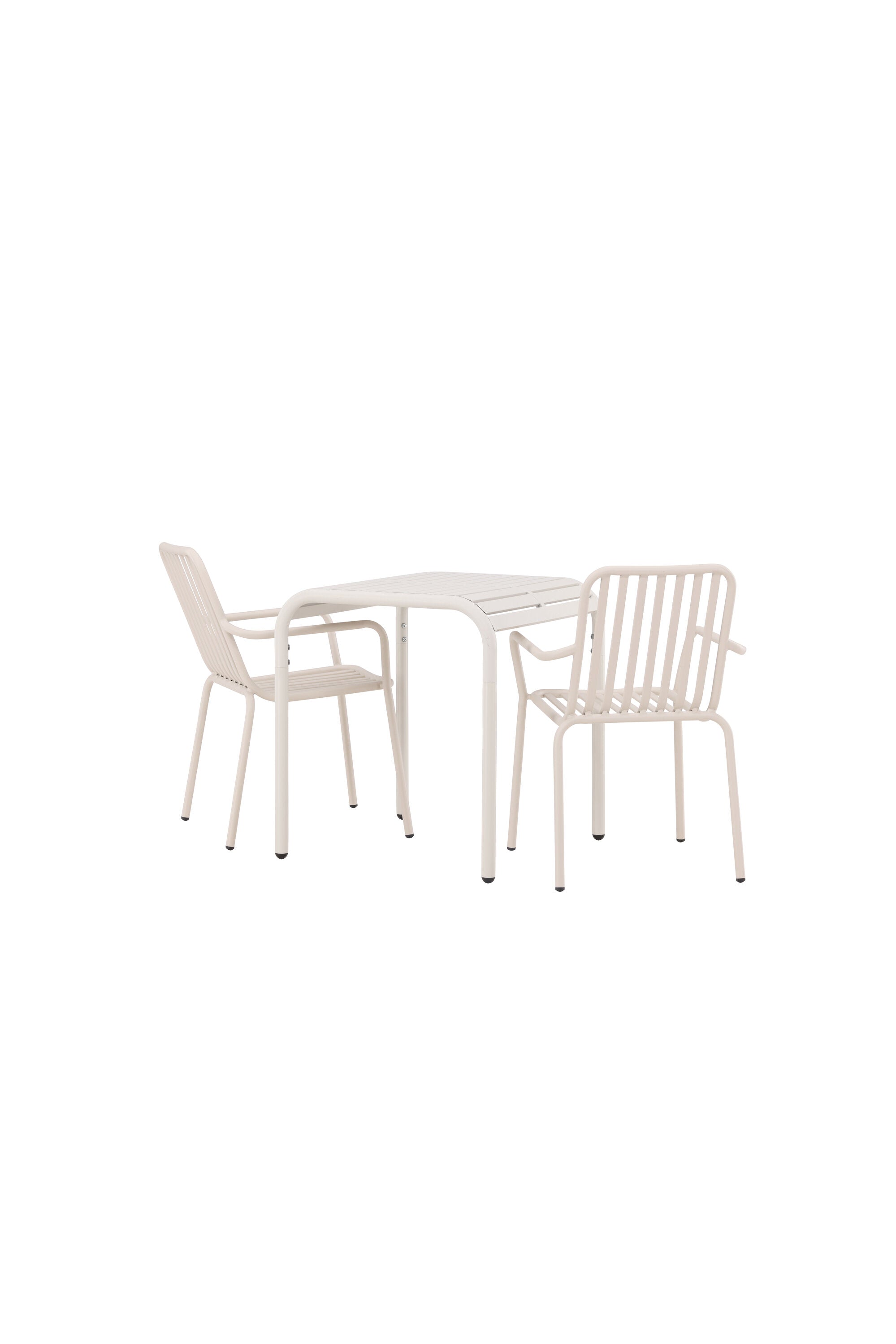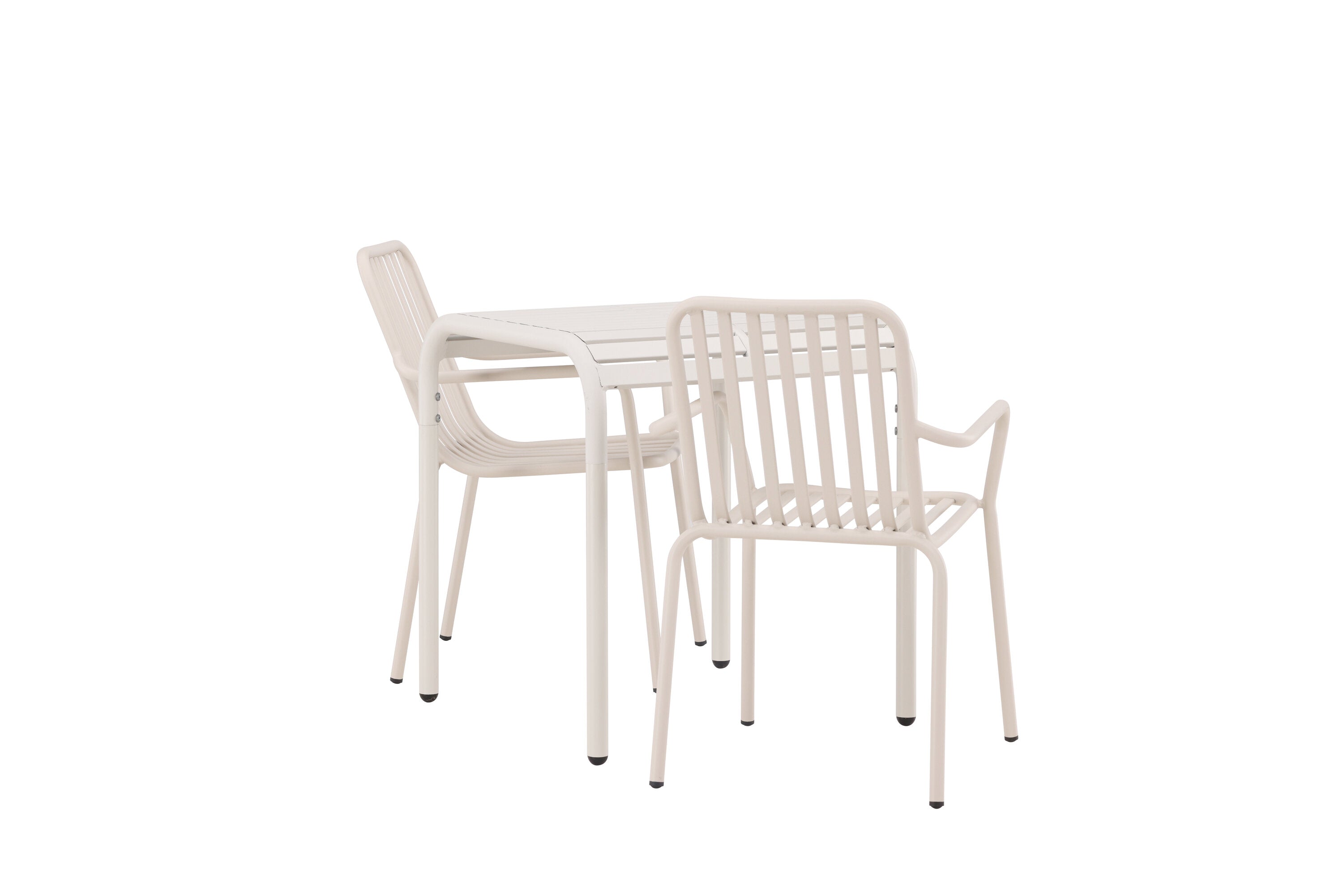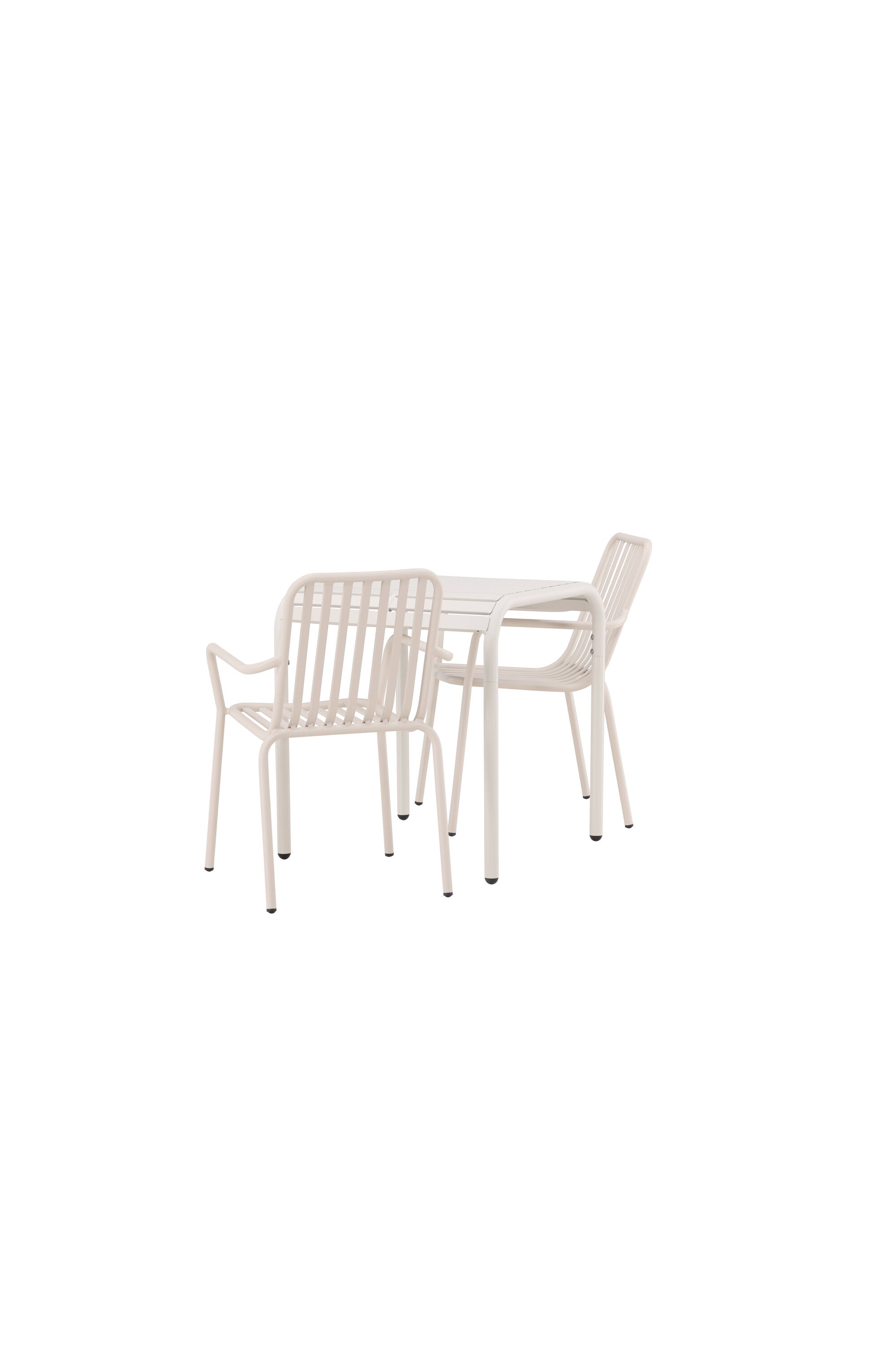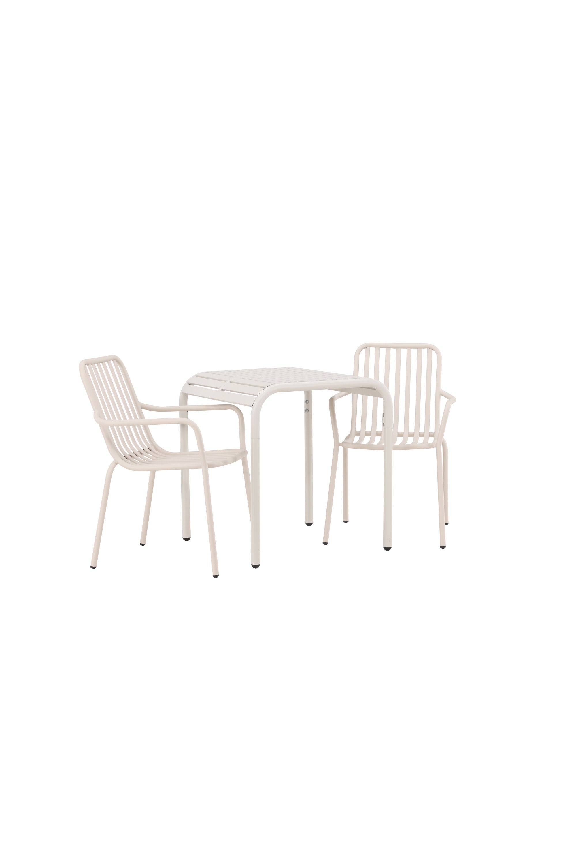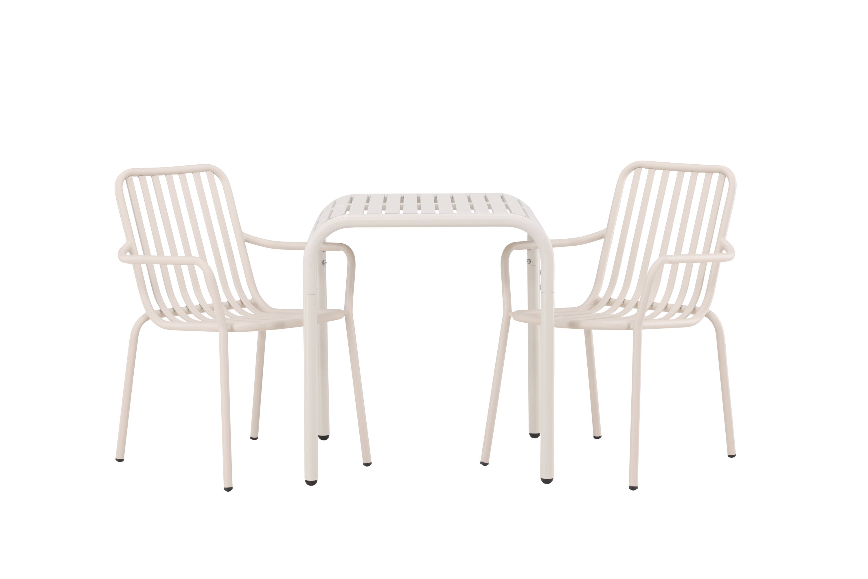 Stylová a příjemná kavárenská skupina, která vyzařuje šarm! Stůl ze série Borneo má nadčasový skandinávský design. Deska stolu je žebrovaná a podél okrajů se vlní u nohou. Vše dohromady vyrobeno z béžového hliníku, což vám poskytuje odolný stůl, který lze snadno přemisťovat. Zde ve stylové kombinaci se 2 jídelními židlemi ze série Beijing. Žebrovaný design v hliníku a lichotivá béžová barva působí, že židle působí moderně a nadčasově. Užijte si letošní letní oběd venku! Rozměry stolu: 70 x 70 cm.